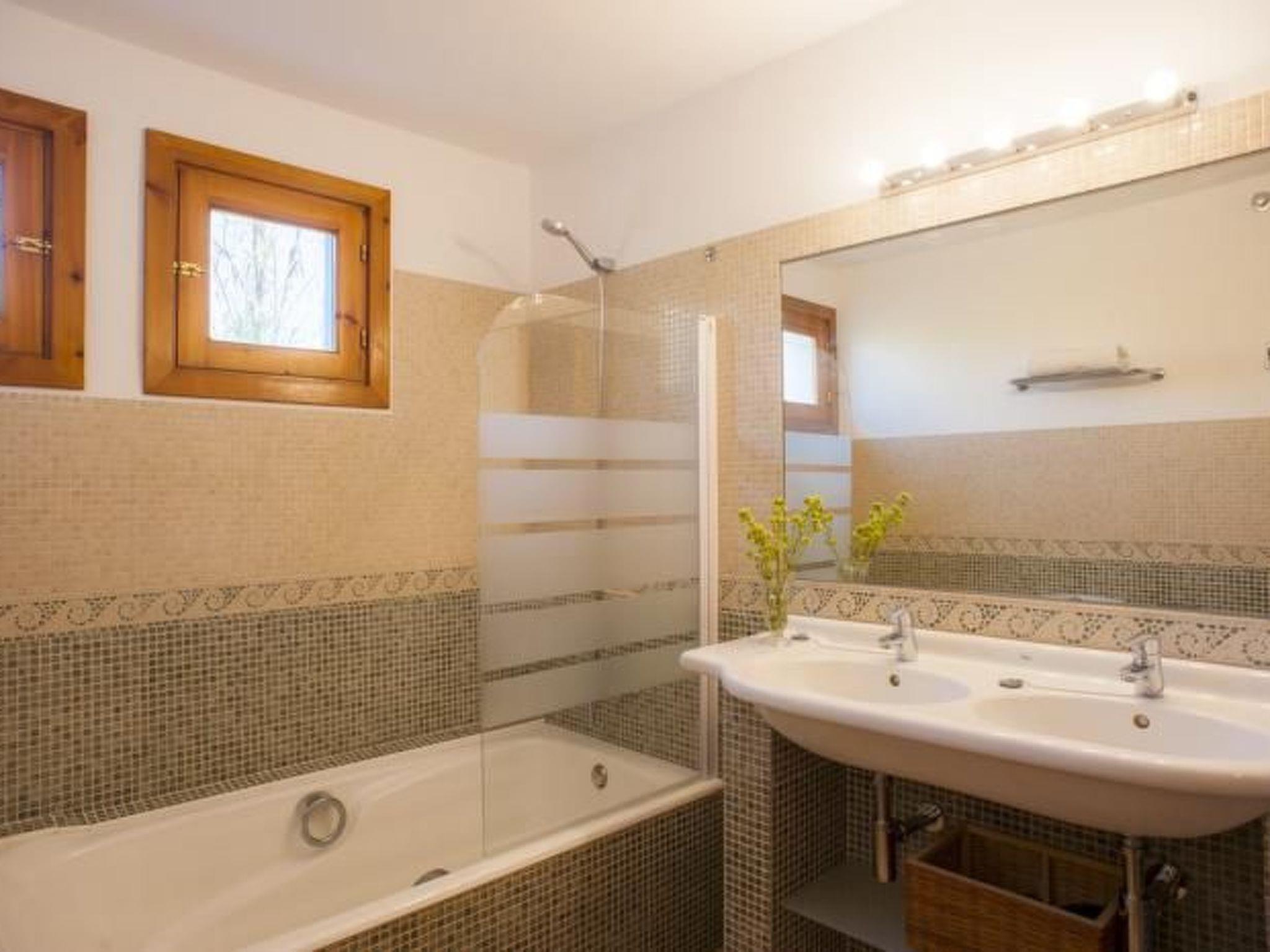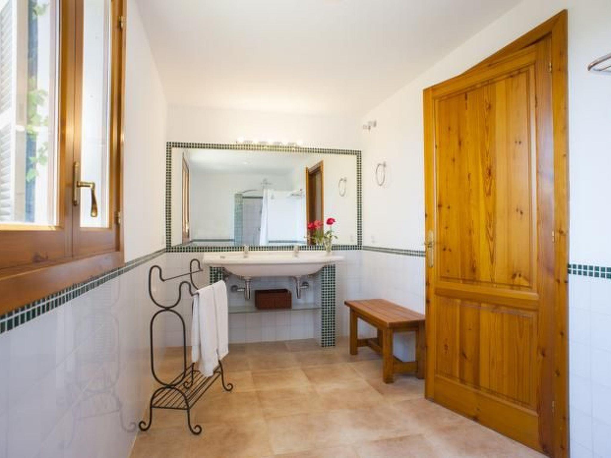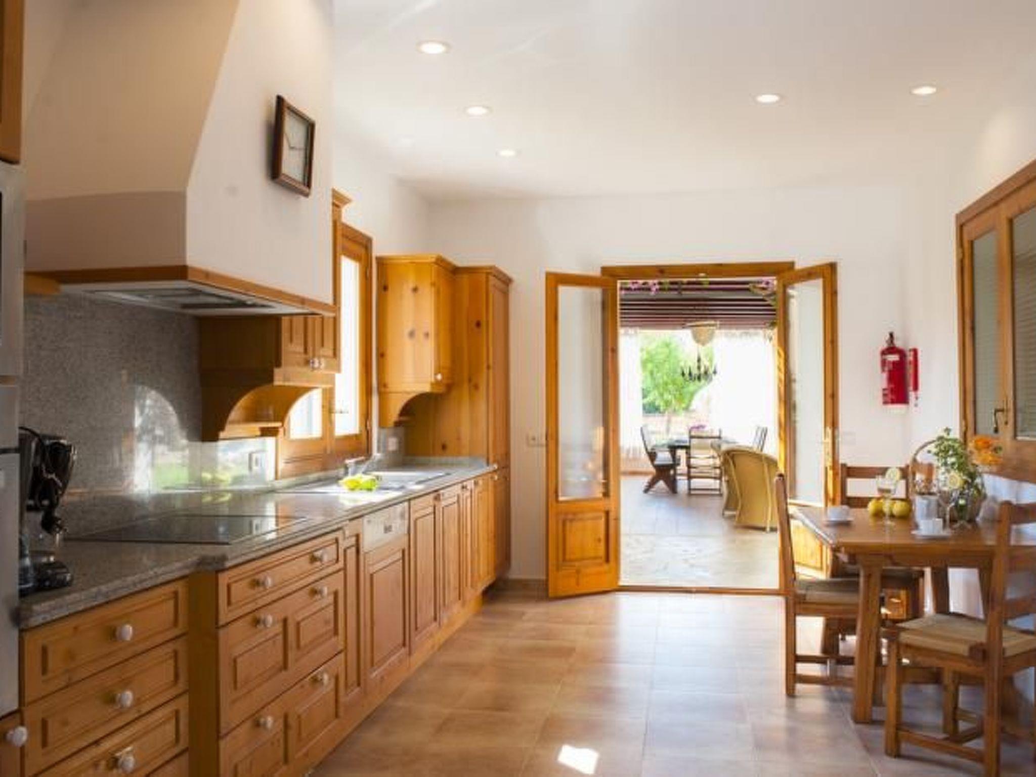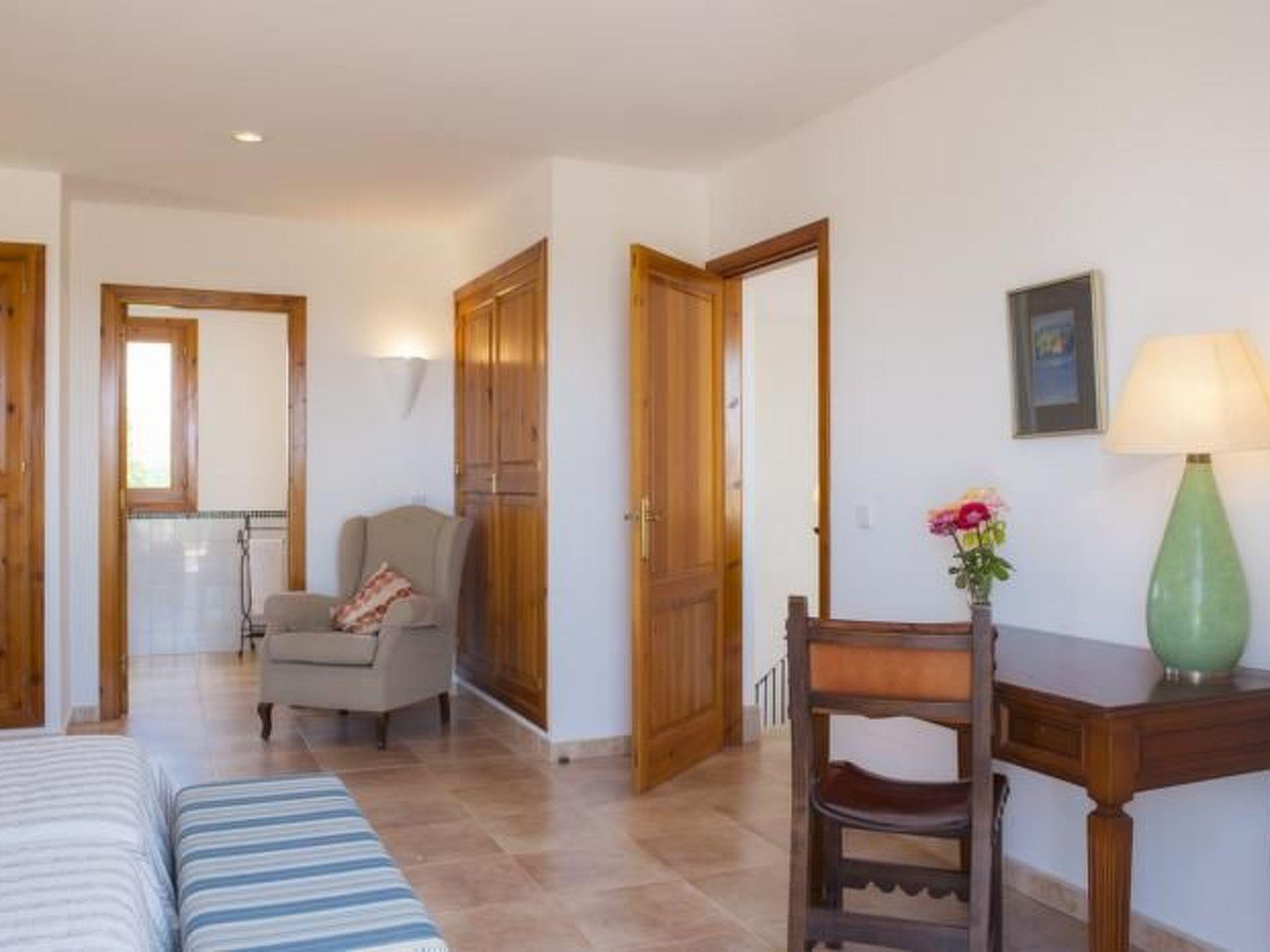 The property is accessed via a winding path through an electronic entrance gate and both the façade of the holiday home and the interior have been painted in special colours to harmonise with the natural landscape. Finca Xemarri is tastefully and comfortably furnished. A pine door leads into the spacious entrance area and on into the spacious living/dining area (approx. 50 m²) with a solid oak table and chairs. The bright, friendly room is decorated with paintings by the owner. Large doors lead out onto the garden terrace. The very well-equipped, modern kitchen has a serving hatch to the dining area and access to the large covered terrace with barbecue area, where meals can be enjoyed al fresco. One twin bedroom has an en-suite shower room and two further twin bedrooms share a bath/shower room. On the upper floor there are 2 double bedrooms and 1 twin bedroom, each with its own bathroom/shower room.