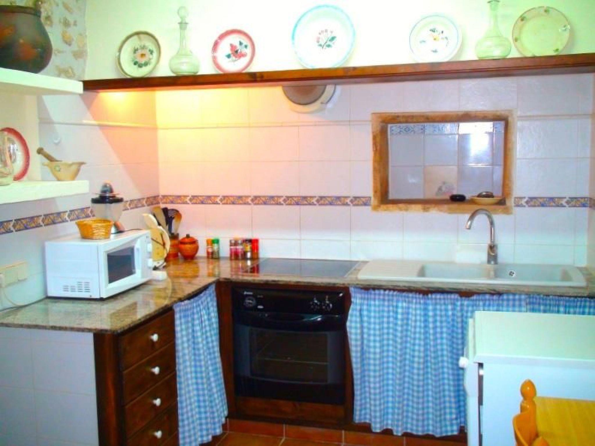 The rustic country house is equipped with everything to make your stay a pleasant one. There are three bedrooms and two bathrooms as well as a separate kitchen, a dining room and a living room. There is a further dining area in the outdoor kitchen, which is ideal for barbecues with its large barbecue. The house can be heated via the fireplace.