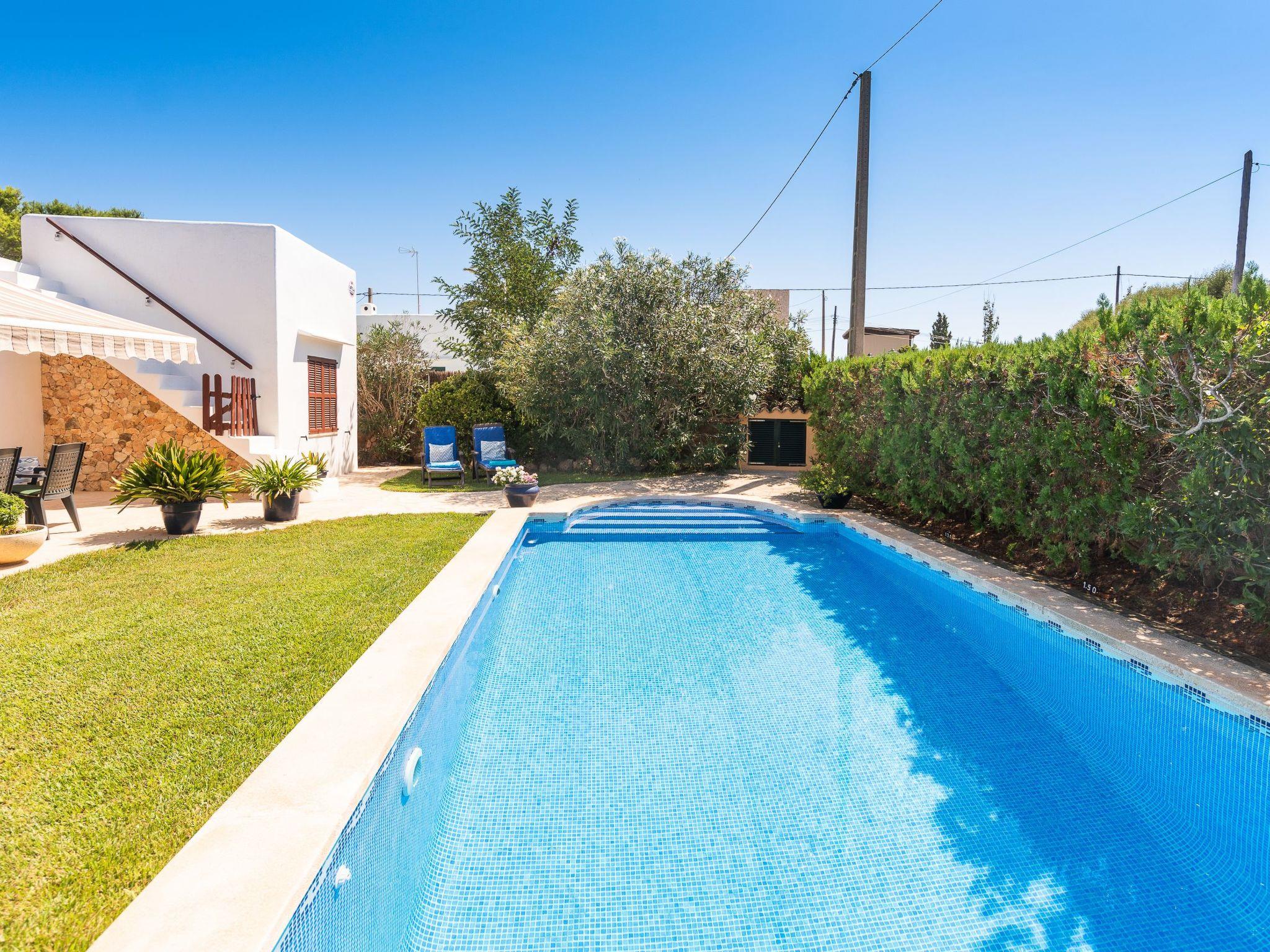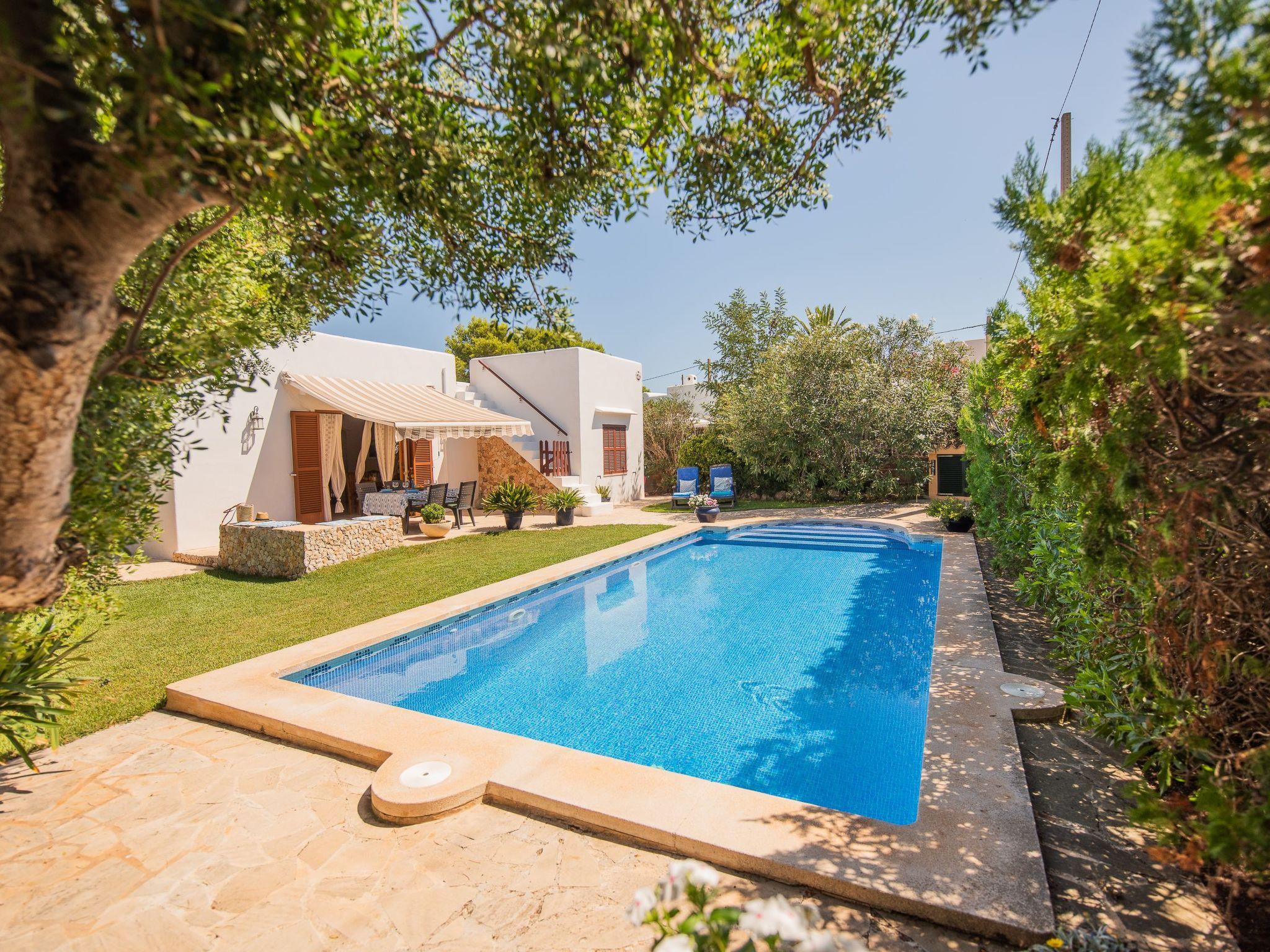 The house is all on one floor, in ibicencan style, with a very well cared decoration and offers two double bedrooms and a bathroom, equipped kitchen, living room, garden with lawn and a beautiful private swimming pool of 4 x 8 m, the house has a living area of 100 m2 and the plot is completely closed for a total privacy.