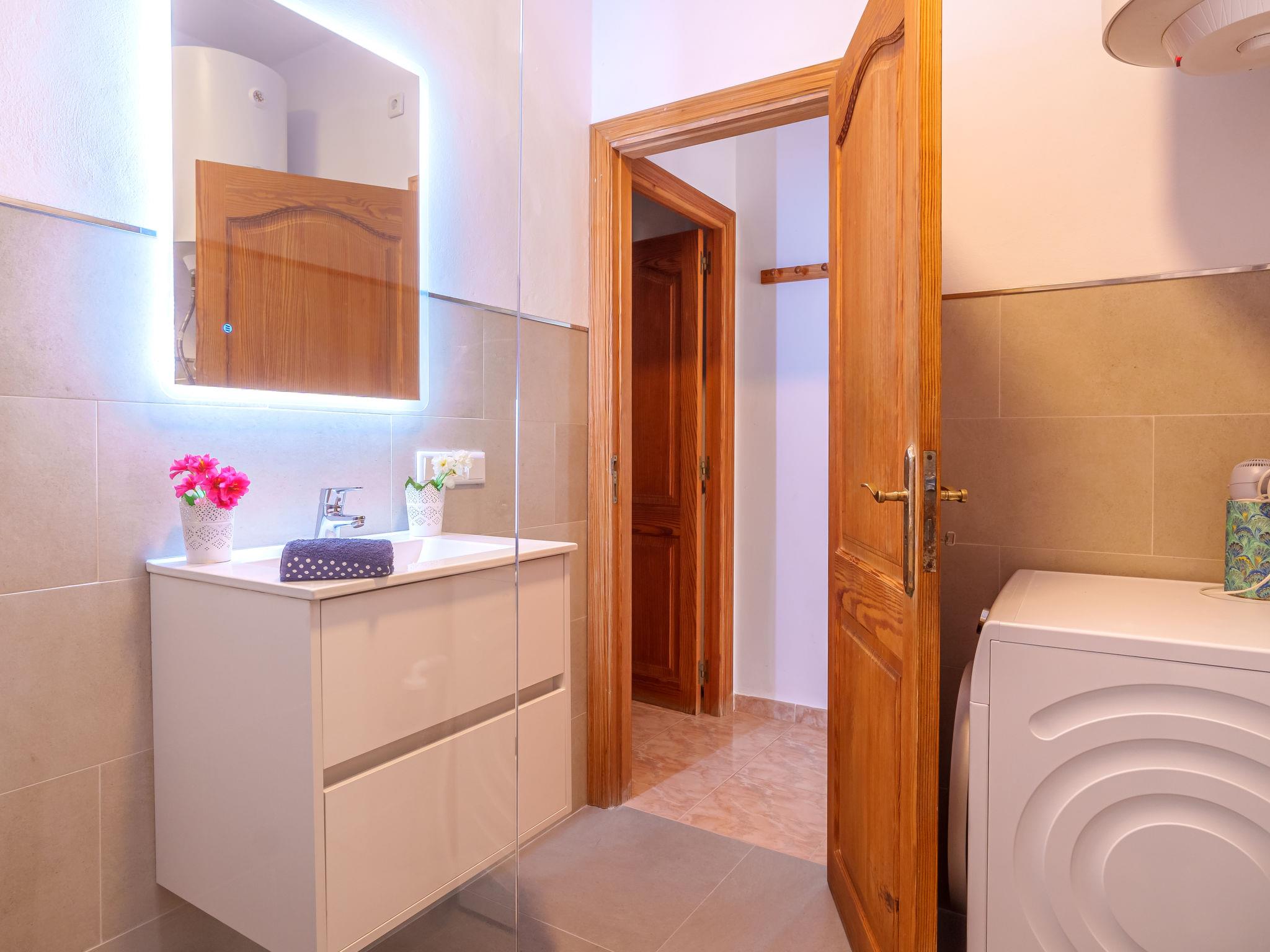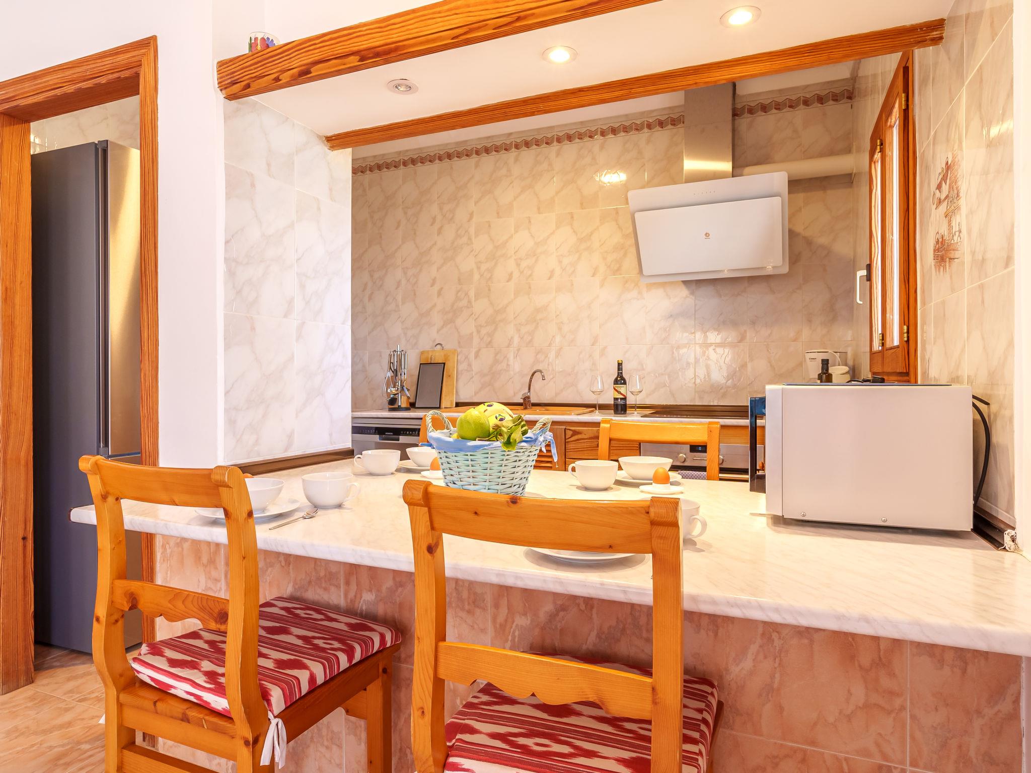 "Bella Vista", 3-room apartment 70 m2 on 1st floor. Practical furnishings: living/dining room with bar, satellite TV, radio, CD-player, electric heating and air conditioning. Exit to the terrace. 1 room with 1 double bed and electric heater. Exit to the terrace. 1 room with 1 double bed. Open kitchen (oven, dishwasher, 4 ceramic glass hob hotplates, kettle, microwave, freezer, grill, electric coffee machine). Shower/WC. Terrace 20 m2, roofed, terrace 15 m2, roofed. Terrace furniture, deck chairs. Facilities: washing machine, safe, iron, children's high chair, baby cot, hair dryer. Internet (WiFi, free). Please note: non-smokers only. ETVPL/15692 // Reg. Nr.: ESFCTU00000700800010717300000000000000000ETVPL/156923