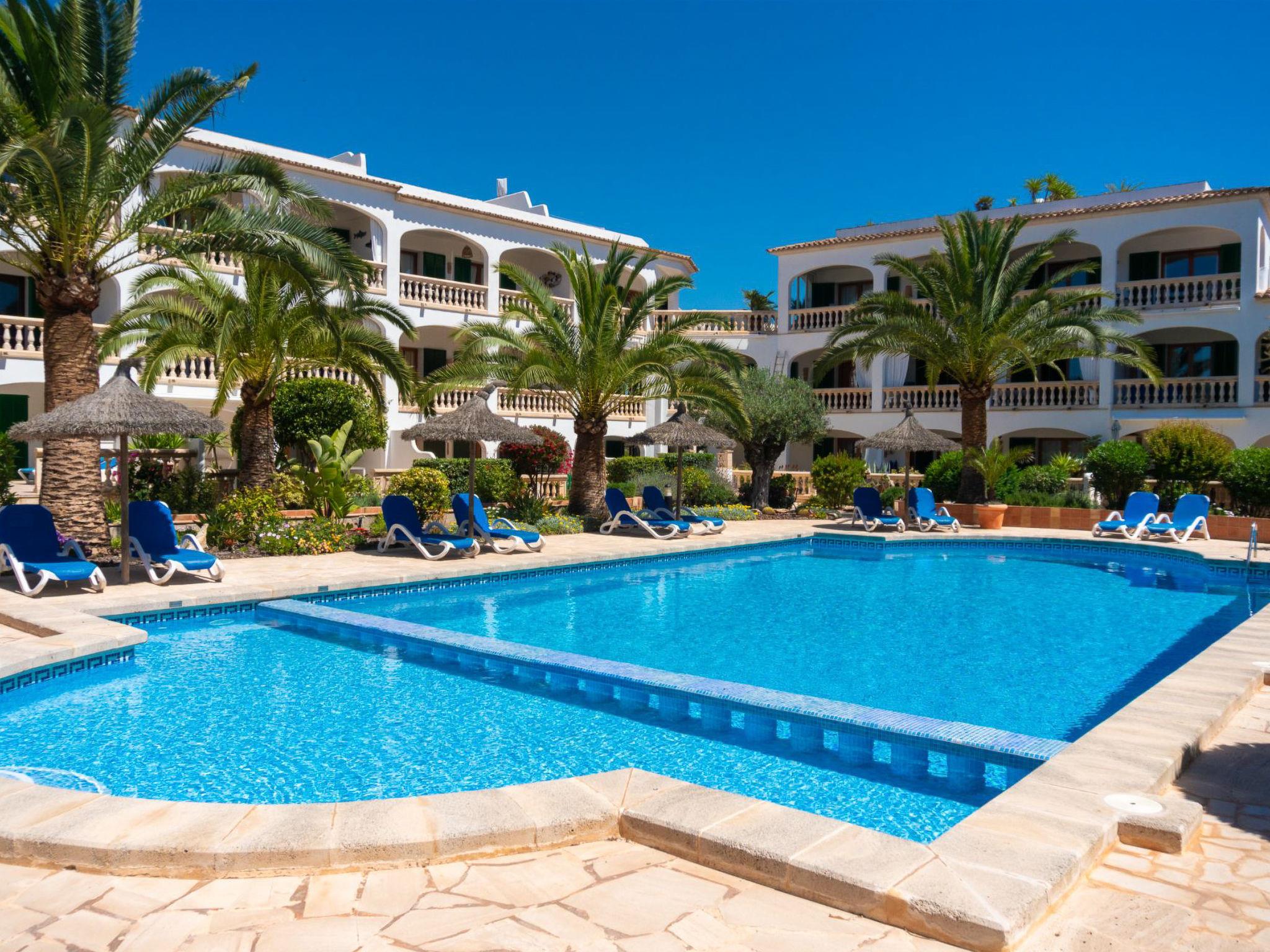 Resort "Bella Vista". 22 apartments in the residence. 400 m from the centre of Cala Santanyi, on the outskirts, 4 km from the centre of Santanyi, 18 km from the centre of Campos, 300 m from the sea. For shared use: well-kept garden with plants and flowers, swimming pool (12 x 6 m, seasonal availability: 01.Jan. - 31.Dec.). Children's pool, outdoor shower, terrace, children's playground, public parking on the road. Grocery, restaurant 400 m, bus stop "Cala Santanyi" 1.5 km, sandy beach "Cala Santanyi" 300 m.