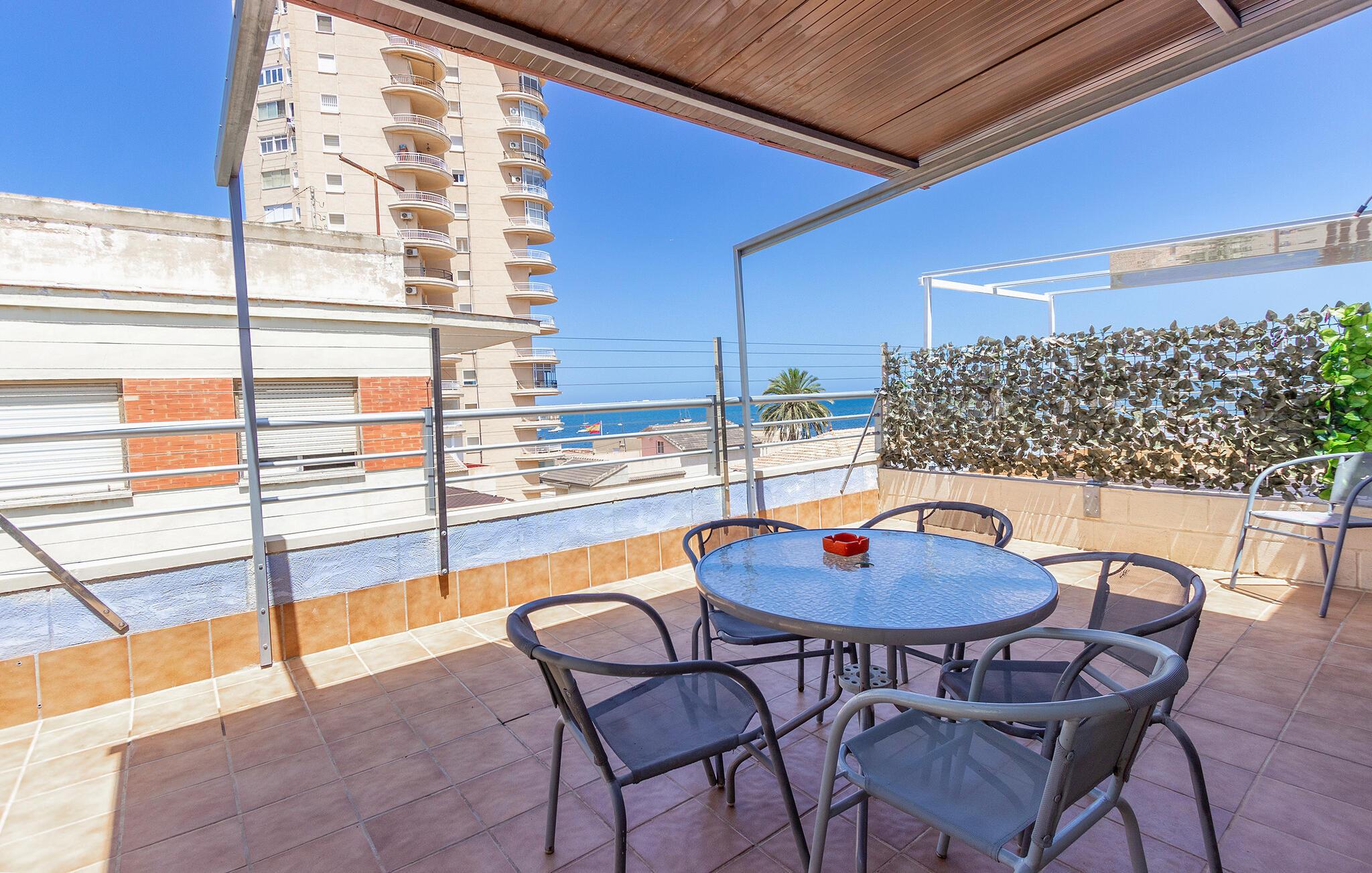 En afslappet ferie med høj feel-good-faktor venter jer i denne hyggeligt indrettede ferielejlighed. Den rummelige udestue, der fungerer som en hyggelig opholds- og spiseplads, er lejlighedens hjerte. Omgivet af en stor tagterrasse kan I nyde en vidunderlig udsigt over det nærliggende hav. De lyse, venlige værelser er komfortabelt indrettet, så I straks vil føle jer hjemme. Det ideelle sted at slappe af og lade middelhavslivsstilen få effekt på jer.