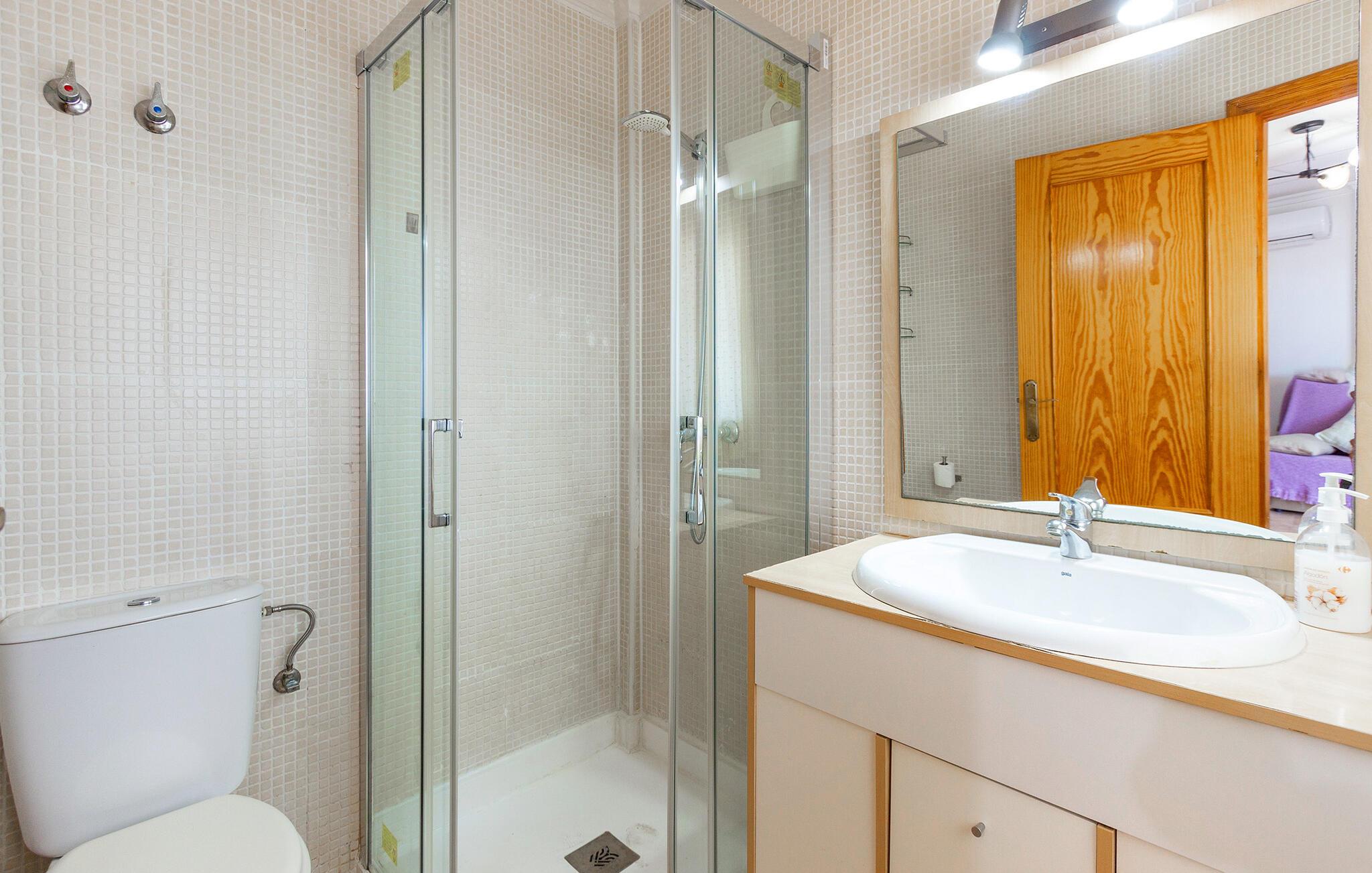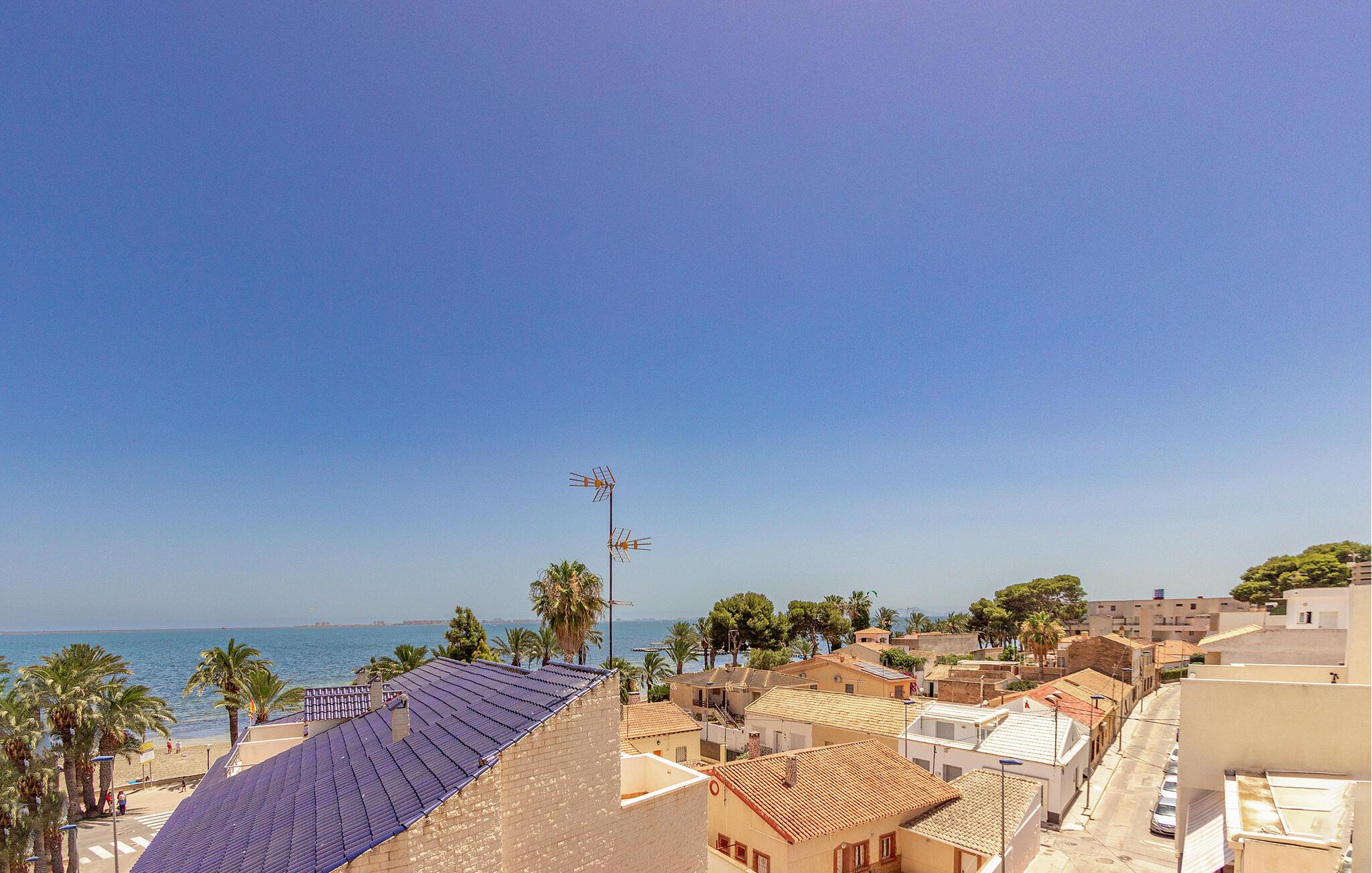 Placeringen i Santiago de la Ribera er perfekt for strandelskere og aktive feriegæster. Kun få skridt adskiller jer fra de smukke strande ved Mar Menor, hvor I kan svømme i det lave, varme vand eller prøve vandsport som sejlads og windsurfing. Strandpromenaden lægger op til afslappende gåture, mens det nærliggende Murcia med kulturelle seværdigheder, restauranter og butikker lokker til dagsture. I kan også opleve den omkringliggende natur på vandre- eller cykelture langs kysten.