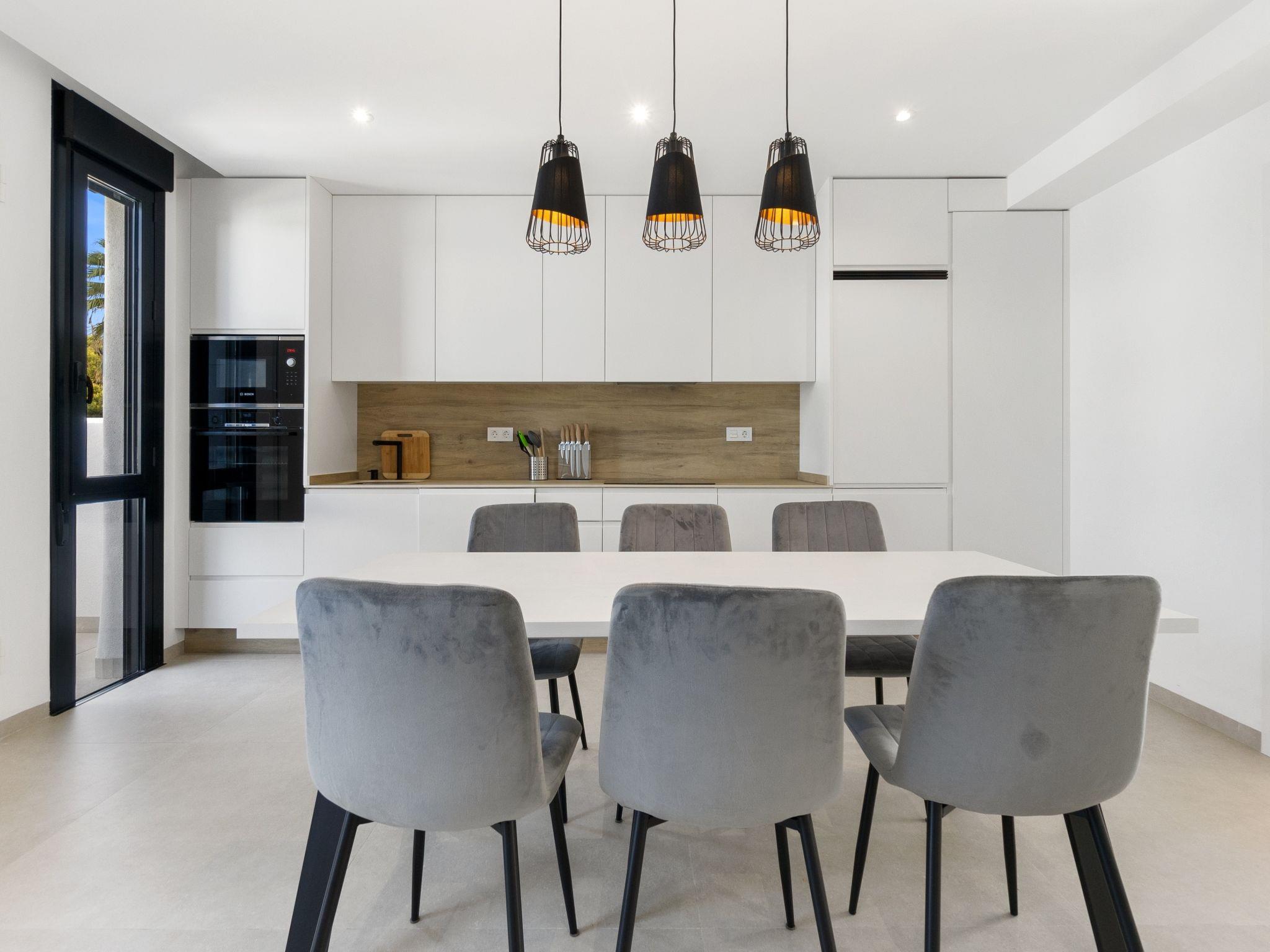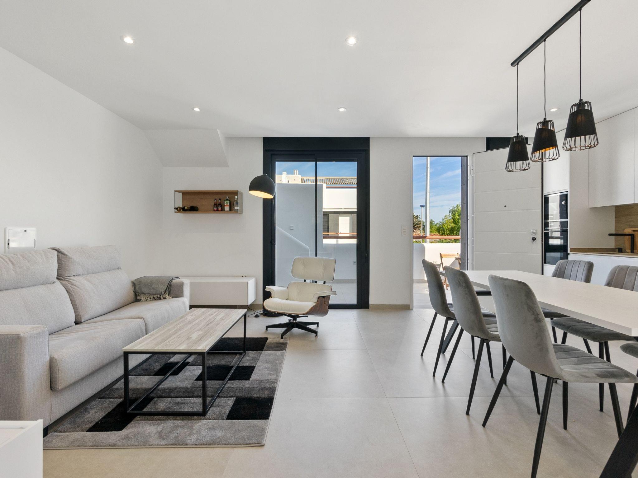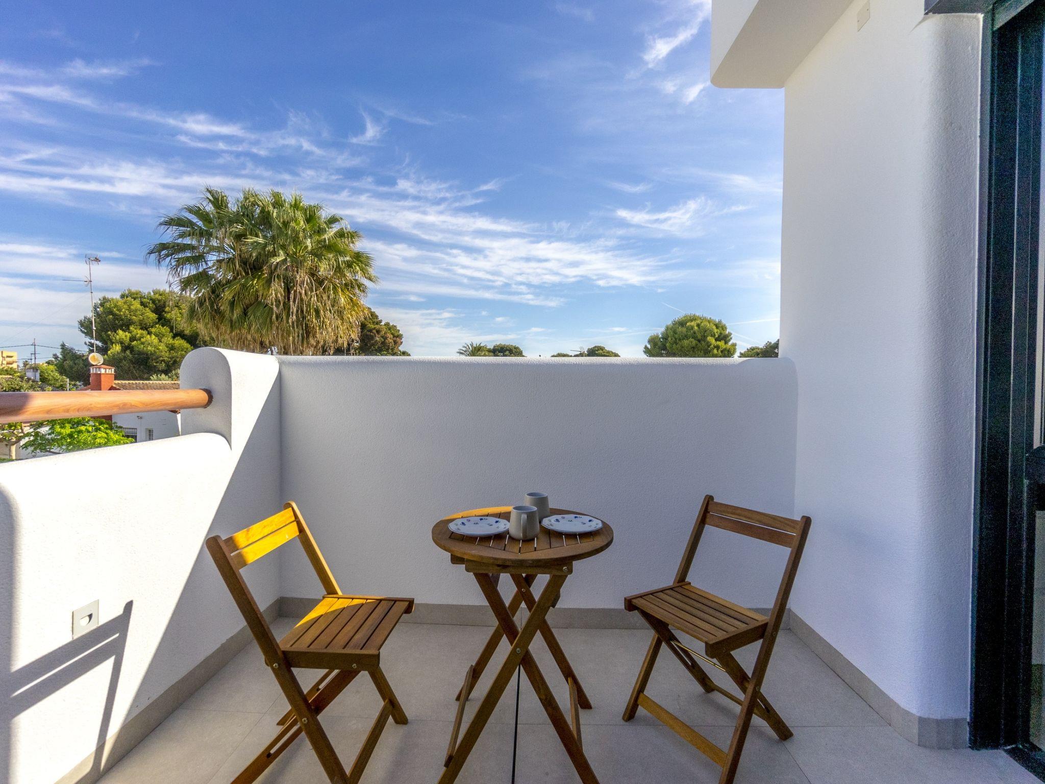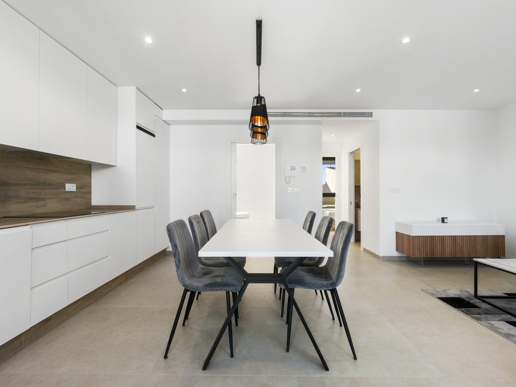 "Tropical Beach Penthouse", 3-room penthouse 64 m2 on 1st floor. Practical and comfortable furnishings: large living/dining room with 1 double sofabed (140 cm, length 190 cm), air conditioning and forced-air heating. Exit to the balcony. 1 room with 1 french bed (150 cm, length 190 cm), shower/WC, air conditioning and forced-air heating. 1 room with 1 french bed (150 cm, length 190 cm), air conditioning and forced-air heating. Open kitchen (oven, dishwasher, 4 ceramic glass hob hotplates, kettle, microwave, freezer, electric coffee machine). Shower/WC. Balcony, large terrace 80 m2. Terrace furniture, deck chairs. View of the resort. Facilities: washing machine, iron, children's high chair, baby cot for up to 2 year olds, hair dryer. Internet (WiFi, free). Please note: suitable for families. Non-smokers only. No lift. Outdoor kitchen, outdoor shower and outdoor WC on the rooftop. VV.MU.4442-1 // Reg. Nr.: ESFCTU0000300320008092230000000000000000VV/MU/4442-10