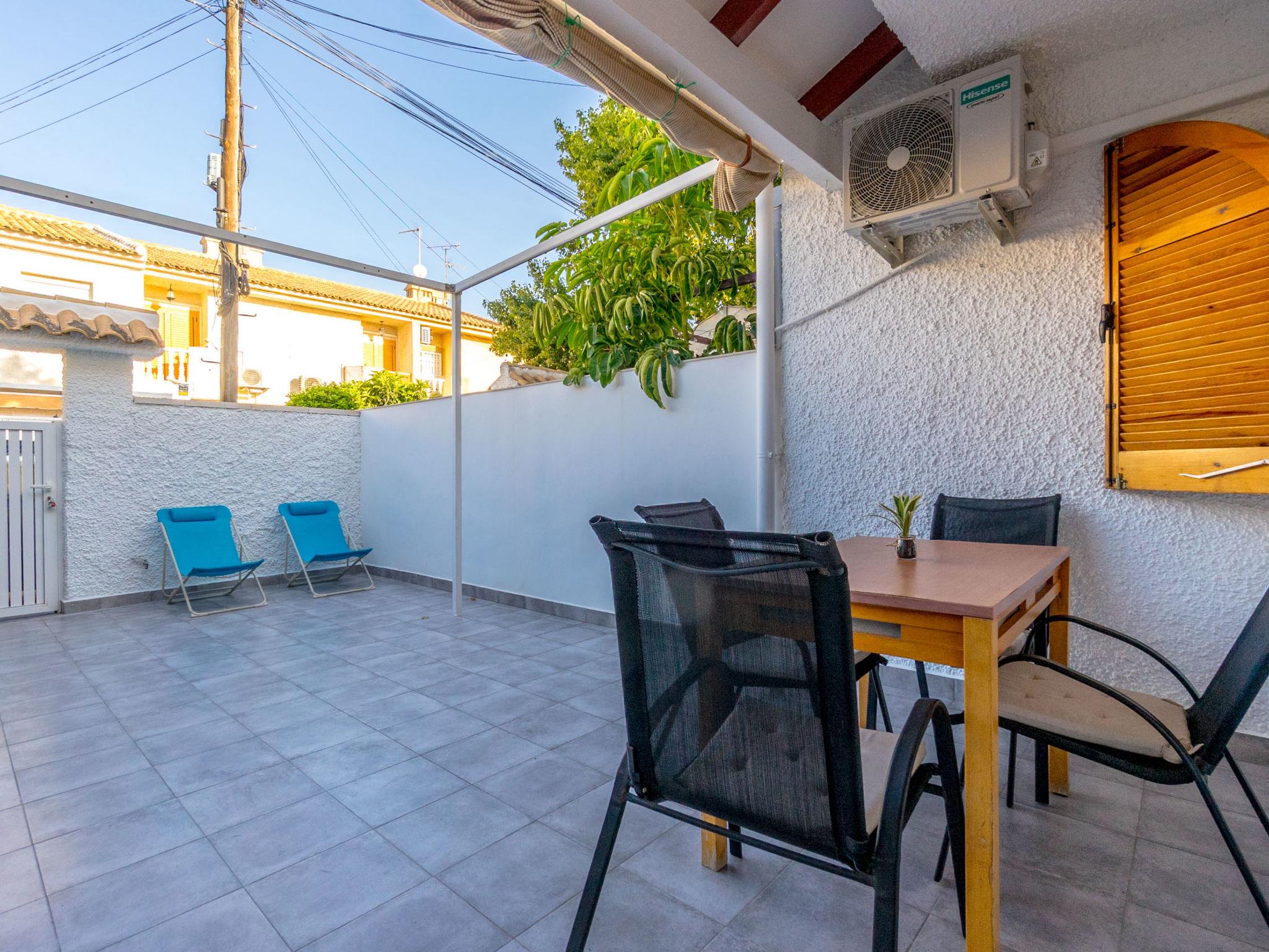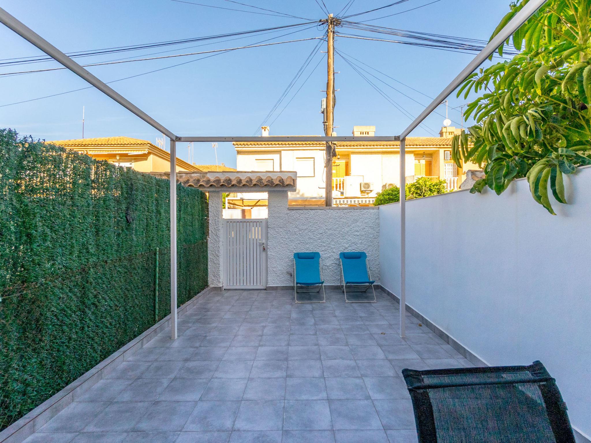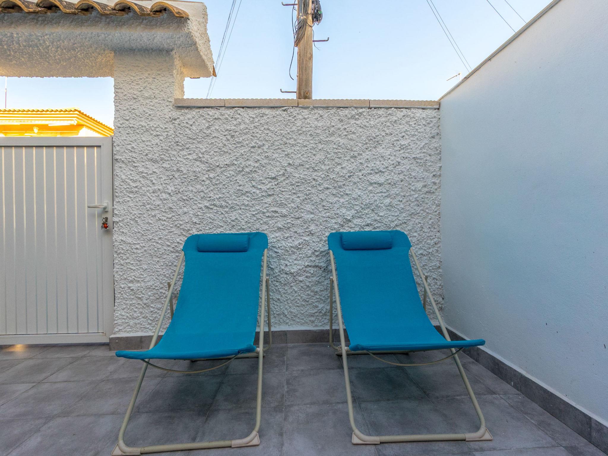 "Carpa", 3-room terraced house 60 m2 on 2 levels. Practical and comfortable furnishings: living/dining room with dining table, digital TV, flat screen, air conditioning, fan and forced-air heating. Exit to the garden, to the patio. Open kitchen (oven, 2 ceramic glass hob hotplates, toaster, microwave, freezer, electric coffee machine). Shower/WC. Upper floor: 1 room with 1 french bed (135 cm, length 190 cm), air conditioning, fan and forced-air heating. 1 room with 2 beds (90 cm, length 190 cm), air conditioning, fan and forced-air heating. Bath/bidet/WC. Heating not available in all rooms. Large terrace 27 m2. Terrace furniture. Facilities: washing machine, iron, children's high chair, baby cot for up to 2 year olds, hair dryer. Internet (WiFi, free). Please note: suitable for families. Non-smokers only. VV.MU.8077-1 // Reg. Nr.: ESFCTU0000300320002564090000000000000000VV.MU.8077-12