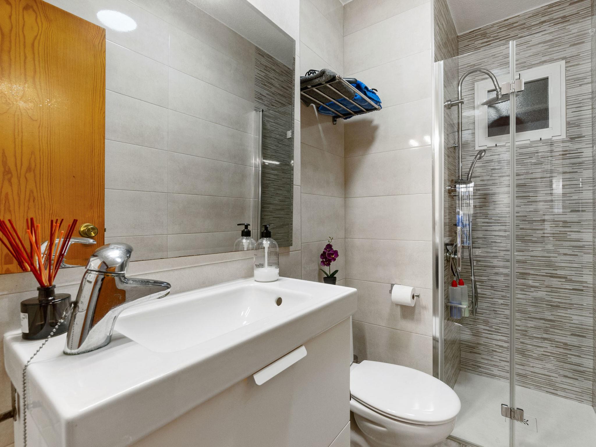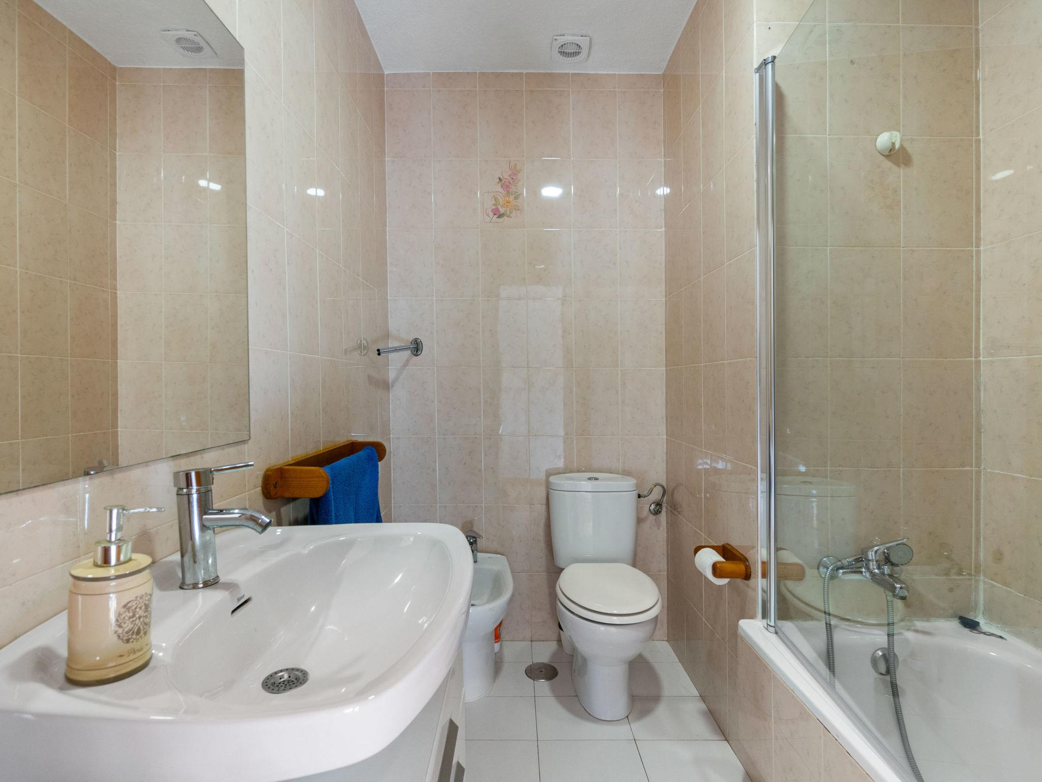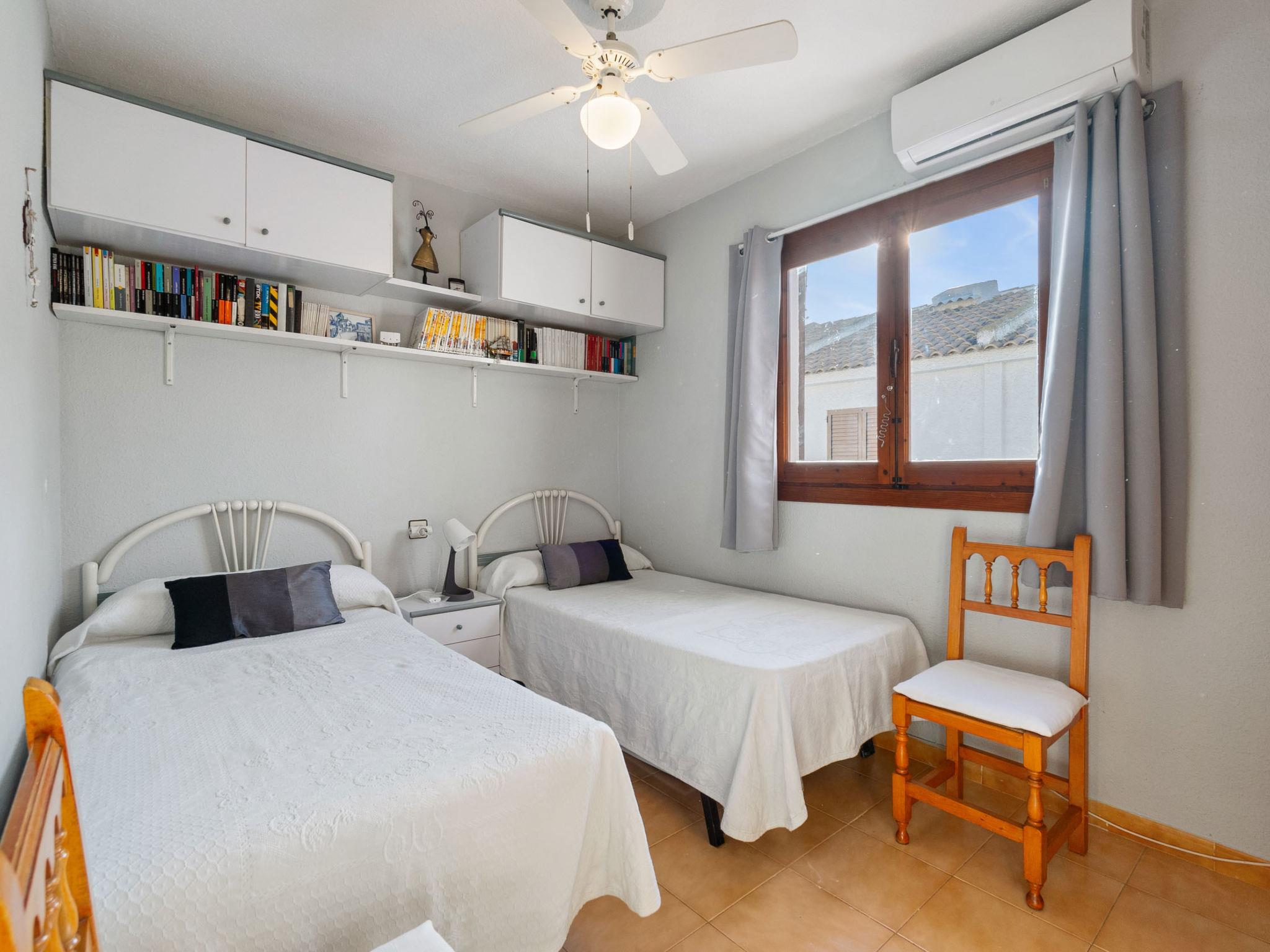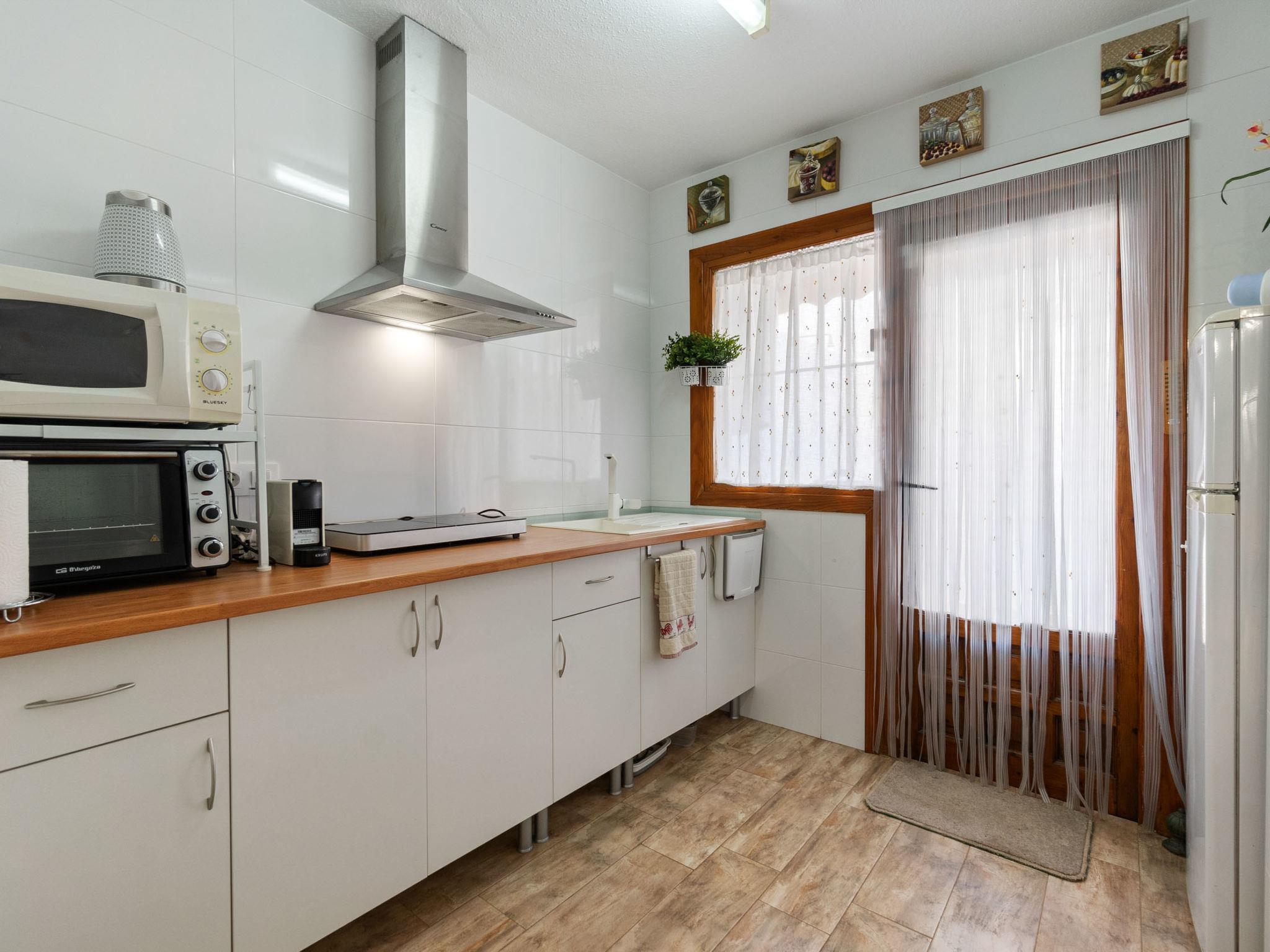 "Carpa", 3-room terraced house 60 m2 on 2 levels. Practical and comfortable furnishings: living/dining room with dining table, digital TV, flat screen, air conditioning, fan and forced-air heating. Exit to the garden, to the patio. Open kitchen (oven, 2 ceramic glass hob hotplates, toaster, microwave, freezer, electric coffee machine). Shower/WC. Upper floor: 1 room with 1 french bed (135 cm, length 190 cm), air conditioning, fan and forced-air heating. 1 room with 2 beds (90 cm, length 190 cm), air conditioning, fan and forced-air heating. Bath/bidet/WC. Heating not available in all rooms. Large terrace 27 m2. Terrace furniture. Facilities: washing machine, iron, children's high chair, baby cot for up to 2 year olds, hair dryer. Internet (WiFi, free). Please note: suitable for families. Non-smokers only. VV.MU.8077-1 // Reg. Nr.: ESFCTU0000300320002564090000000000000000VV.MU.8077-12