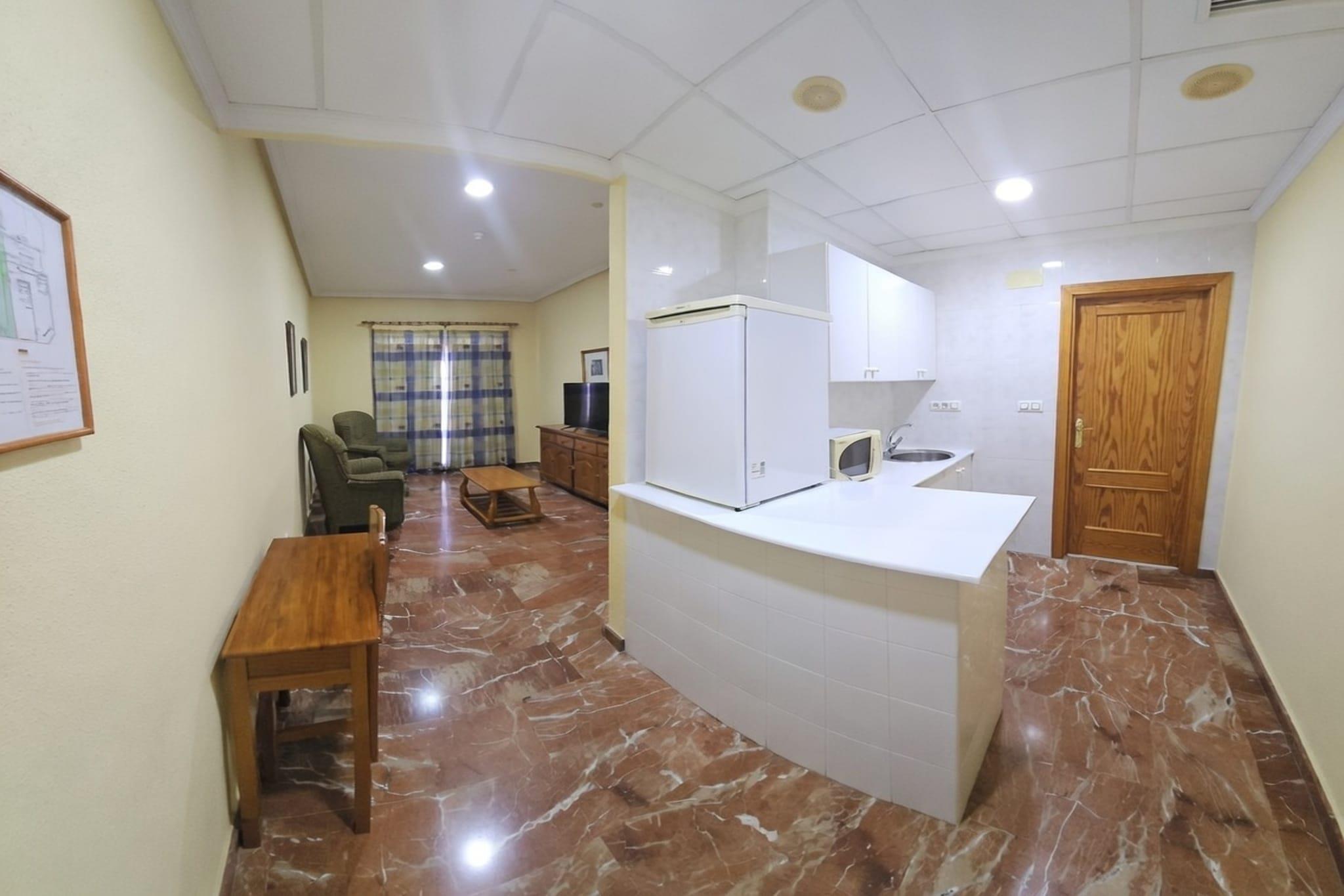 Albohera Playa Hotel by Resorts ligger i hjertet af Santiago de la Ribera og tilbyder et afslappet ophold ved havet, kun få minutter fra Mar Menors rolige vand. Suiten er ideel for par eller gæster, der søger ekstra plads, privatliv og komfort, mens de bor tæt på stranden, promenaden og lokale attraktioner. Suitefaciliteter – opholdsstue, soveplads og køkken 1. Rummelig suite på 30 m² med udsigt over byen 2. Separat soveværelse med en komfortabel dobbeltseng 3. Lys opholdsstue med sofa, spiseplads og fladskærms-tv 4. Privat tekøkken med køleskab, mikrobølgeovn, køkkenudstyr og basale redskaber, ideelt til enkle måltider og snacks 5. Privat badeværelse med bruser eller badekar, bidet, hårtørrer, toiletpapir og gratis toiletartikler 6. Aircondition og varme for komfort året rundt 7. Sikkerhedsboks, garderobe eller skab og tøjstativ 8. Telefon, vækning efter anmodning, håndklæder og sengelinned inkluderet 9. Stikkontakt i nærheden af sengen 10. Suite tilpasset kørestolsbrugere 11. Øvre etager tilgængelige med elevator eller trapper Hotelfaciliteter 1. Gratis højhastigheds-Wi-Fi på hele hotellet 2. Morgenmad tilgængelig 3. Restaurant, café og bar på stedet 4. Fitnesscenter 5. 24-timers reception og bagageopbevaring 6. Lufthavnstransport efter anmodning (mod gebyr) 7. Lydisolerede værelser og familievenlige muligheder 8. Faciliteter for gæster med nedsat mobilitet 9. Daglig rengøring 10. Sikker adgang med CCTV-overvågning 11. Sprog der tales: Spansk og portugisisk Omgivelser og aktiviteter 1. Mar Menor strande med varmt, lavt vand 2. Strandpromenade til gåture og cykling 3. Vandsport såsom sejlads og windsurfing 4. Lokale restauranter, barer og butikker i nærheden 5. Golfbane inden for 3 km (mod betaling) Sådan kommer du dertil 1. Murcia Internationale Lufthavn – ca. 35 minutter i bil 2. Nem adgang med lokale busser og taxaer 3. Lufthavnstransport tilgængelig efter anmodning