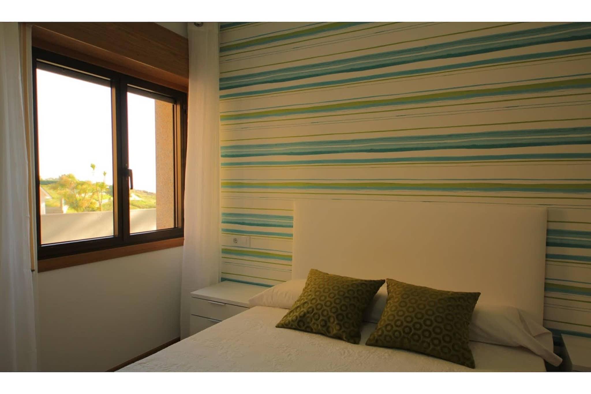 Rummelig og solrig lejlighed lige ved stranden Montalvo, en af de mest berømte og smukke strande i Galicien. Huset har 2 soveværelser, 2 badeværelser og et stort fuldt udstyret køkken. Huset har privat parkering og direkte adgang til stranden. Perfekt til en afslappende ferie og nyde solen, stranden, mad og gæstfrihed. Huset ligger kun 1,5 af turistcentret Sanxenxo og fiskerbyen Porto Novo, kendt for sit fine køkken, klima og smukke strande. I Sanxenxo kan du lave en masse aktiviteter som karting, vandsport, ridning, bådudlejning, guidede ture til øen Ons, Casino Toxa, prestigefyldte golfbaner og Monte Toxa Castrove.