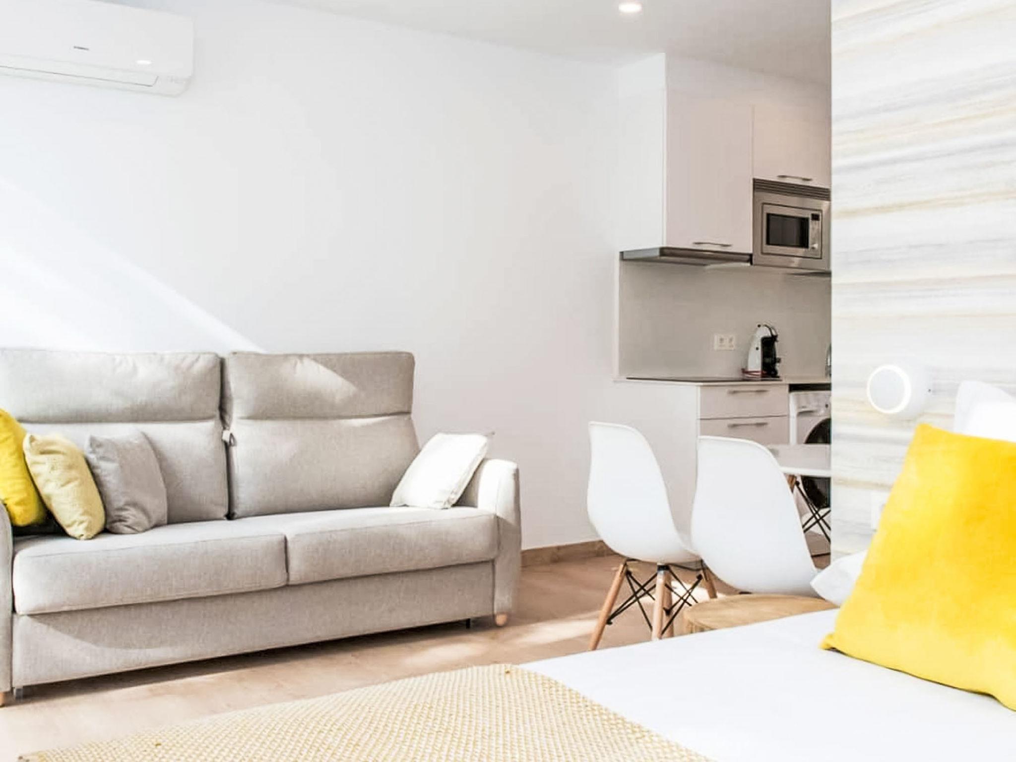 "Pillaras da Lanzada - Nasa", 1-room studio 30 m2 on 1st floor. Practical and comfortable furnishings: open living/dining room with 1 double sofabed and 1 french bed (150 cm, length 190 cm), digital TV and flat screen. Open kitchen (4 ceramic glass hob hotplates, toaster, kettle, microwave, grill, electric coffee machine). Shower/WC. Air-conditioning, forced-air heating. Small terrace. View of the swimming pool. Facilities: washing machine, iron, hair dryer. Internet (WiFi, free). Please note: suitable for families. Non-smokers only. TU984F RITGA-E-2021-009789