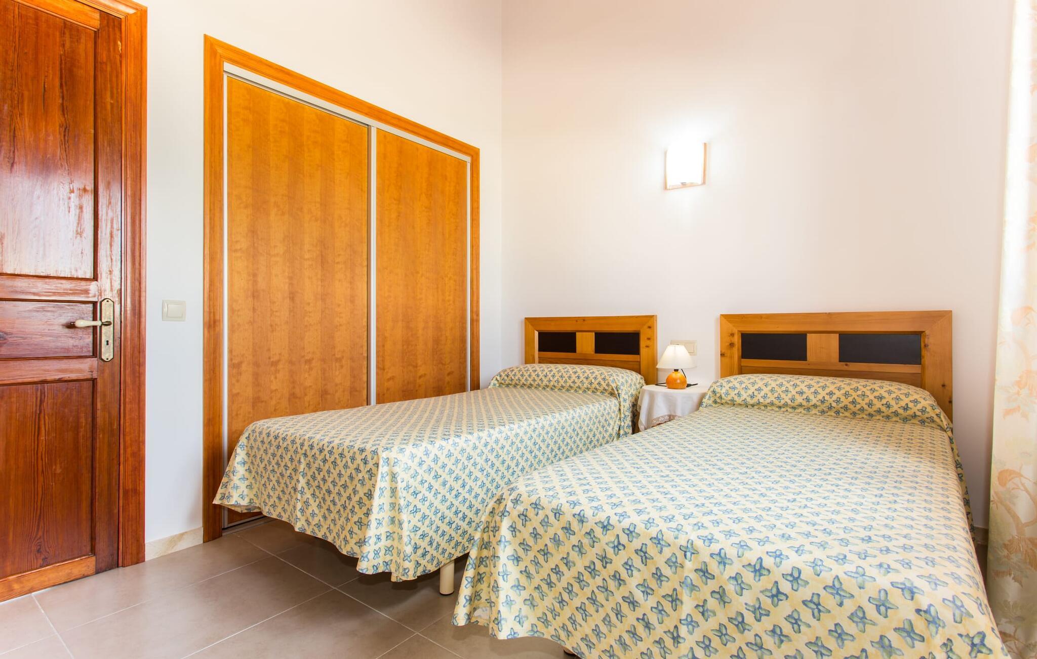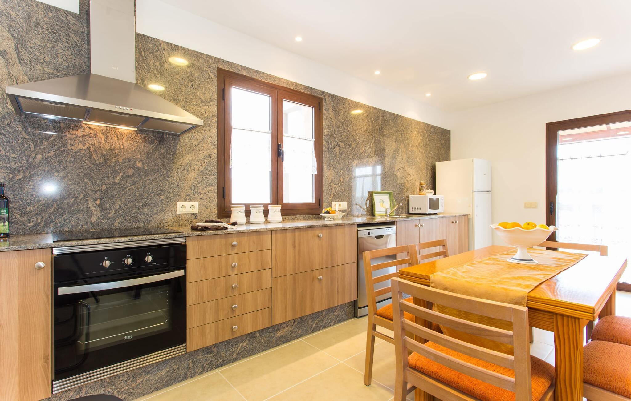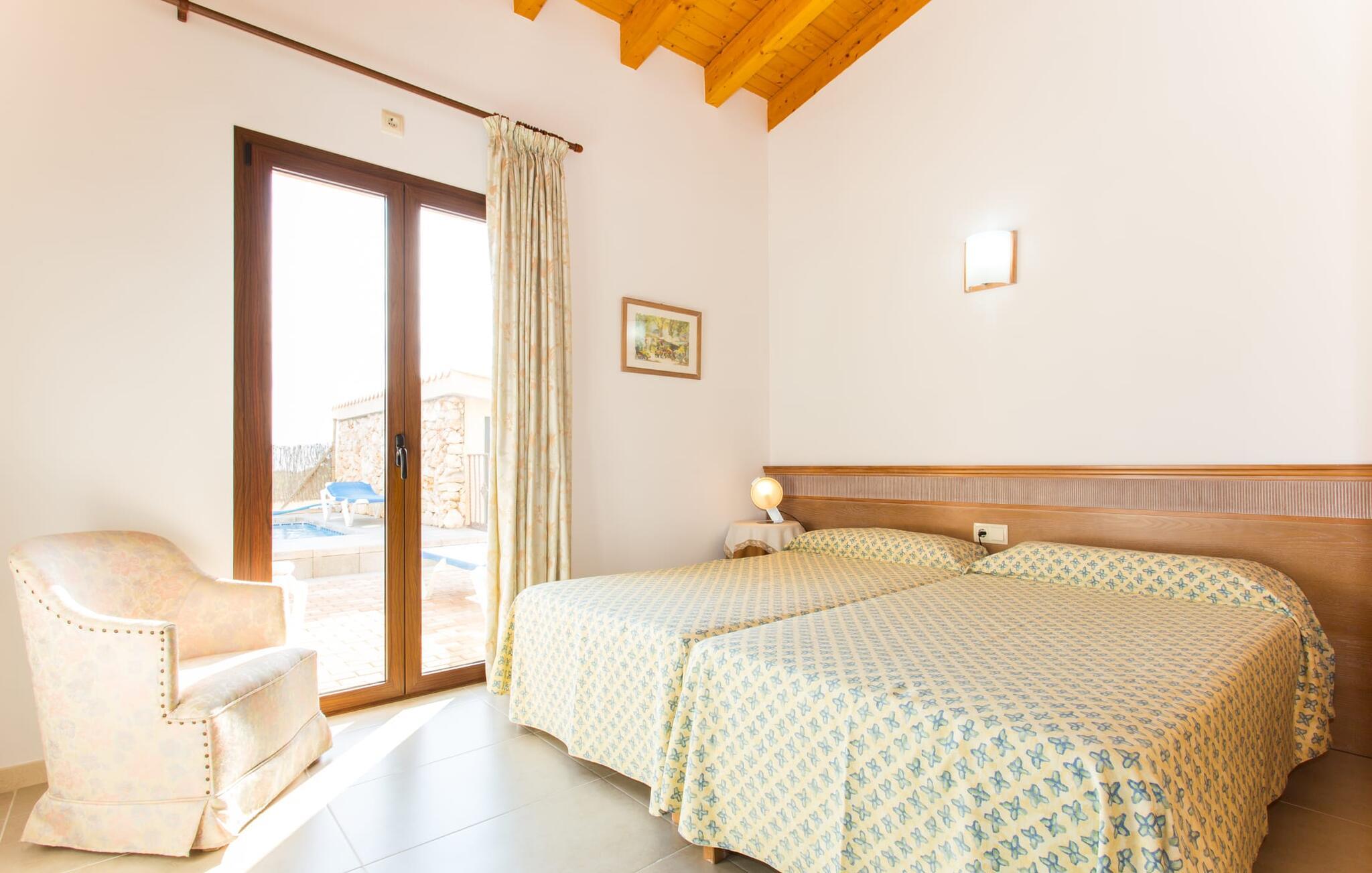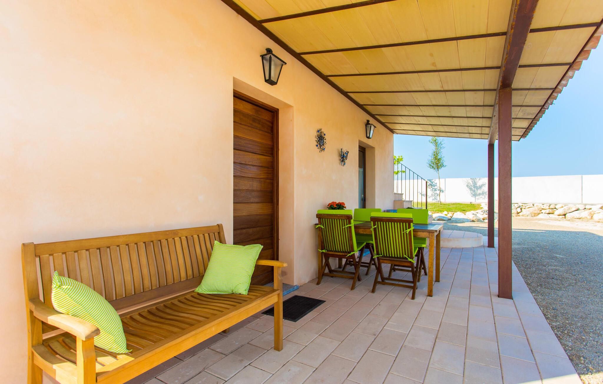 Den traditionelle, sydvendte villa "Saraix" blev fuldstændig restaureret i 2014. Den solbeskinnede villa byder os hjertelig velkommen i en delikat terracotta farve på en ejendom omgivet af fyrretræer. Mellem villaen og poolen er der en solterrasse med i alt 8 liggestole og 1 parasol. Efter svømning kan I nyde den varme sydlige sol på liggestolene eller se jeres børn lege i poolen. En træbænk og et polyrattanbord med komfortable stole og æblegrønne hynder giver mulighed for at tilbringe sociale stunder. Under en overdækket terrasse på siden af huset er der endnu en udendørs siddeplads med træmøbler og de samme spændende grønne hynder, samt endnu en træbænk i skyggen. Sætter I begge ensembler sammen, kan I nyde en underholdende grillaften, da hver af de to terrasser har en muret grill. En udvendig trappe på siden af huset fører jer til øverste etage. Over tagterrassen er der adgang til en slags tårnværelse, der er indrettet som en ekstra opholdsstue til afslapning eller som læsesal og byder på en smuk udsigt over den landlige struktur i det omkringliggende område og grunden. Et særligt højdepunkt for os er villaen "Saraix". Ejendommen, der hører til villaen, er faktisk meget mere rummelig, så I kan tage lange ture rundt i ejendommen. Får, grise og høns holdes stadig i en vis afstand fra huset, men de kan selvfølgelig ikke nå Villa “Saraix”. I kan nyde freden og rummet i den landlige beliggenhed. Med undtagelse af tårnrummet ligger alle andre rum i villaen i stueetagen, som er tilgængelig via flere gulv-til-loft terrassedøre. Dette gælder også delvist for soveværelser, hvor man kan få adgang til haven direkte om morgenen. Villaens indretning er meget ny og har en tidløs smag. Hvide, glatte vægge med store gulvfliser i lys jordfarve suppleres af lyspunkter indlejret i lofterne og sikrer en moderne standard. Det fritlagte bjælkeloft og de antikke træstole giver lidt mallorcansk hygge i stuen, som er indrettet med en orange og en chokoladebrun sofa. Perfekt til en hyggelig aften med fjernsyn eller en social aften. Det separate køkken er meget stilfuldt udstyret. Et langt tekøkken med ønskværdig teknisk komfort og fuldt udstyr, som I ikke vil undvære, når I er på ferie, imponerer med træfronter, der suppleres af marmor af høj kvalitet. Her er også monteret loftspots; Spisebordet kan trækkes ud og giver alle gæster plads nok til fælles måltider. De 4 soveværelser har enten dobbeltsenge eller separate enkeltsenge; Brugen eller distributionen kan ændres af gæsterne efter behov. Der er plads nok til jeres ferietøj i de indbyggede skabe. De to højkvalitetsbadeværelser med brusekabine er yderst moderne. Bruserne er designet med sten af høj kvalitet. De indmurede bruseområders mørke marmor danner en elegant kontrast til den lyse, højglans natursten, der blev lagt på de øvrige vægge. Uanset om I rejser med venner eller med to familier - villaen byder på plads nok til alle gæster til en yderst moderat pris i en vidunderlig landlig beliggenhed og alligevel tæt på stranden og byen. Placeringen af den ukomplicerede villa "Saraix" er et overbevisende argument for os. Det tager cirka 7 minutter at komme til den smukke kystby Can Picafort, mens der kun er cirka 4 km til Santa Margalida. Den attraktive villa ligger cirka 450 m fra vejen, der forbinder begge populære byer. Begge byer er nemme at nå for shopping. Der er et fantastisk ugentligt marked i Santa Margalida om tirsdagen og lørdagen, og om fredagen kan I køre til Can Picafort-markedet. Can Picafort er en del af Bahiá de Alcúdia, som forbinder kilometervis af meget smukke sandstrande som en perlehalskæde. I Can Picafort finder I adskillige barer og restauranter samt et pulserende natteliv i de lokale klubber. I får en helt anden oplevelse i smukke Santa Margalida, en af de smukkeste og mest maleriske landsbyer på øen, hvor I stadig kan opleve det originale Mallorca. På grund af den bekvemme beliggenhed har I valget mellem mange forskellige ting på ferien og på Villa “Saraix” kan I forvente begivenhedsrige dagsture, hvor I kan runde en afslappende dag af med en afslappende grill. Vi hos Fincallorca ønsker jer en varieret, afslappende og behagelig ferie. Villaen “Saraix” blev restaureret i 2014 og er beliggende i landlige omgivelser mellem byerne Santa Margalida og Can Picafort. Santa Margalida ligger kun 4 km væk, og Can Picafort ligger også kun 7 km væk. Her kan I gøre jeres indkøb og gå til markederne på forskellige dage i ugen, hvor I kan finde frisk frugt og grøntsager. Strandene i Alcúdia-bugten, som alle er opstillet som en perlerække, ligger kun få minutter væk i bil.