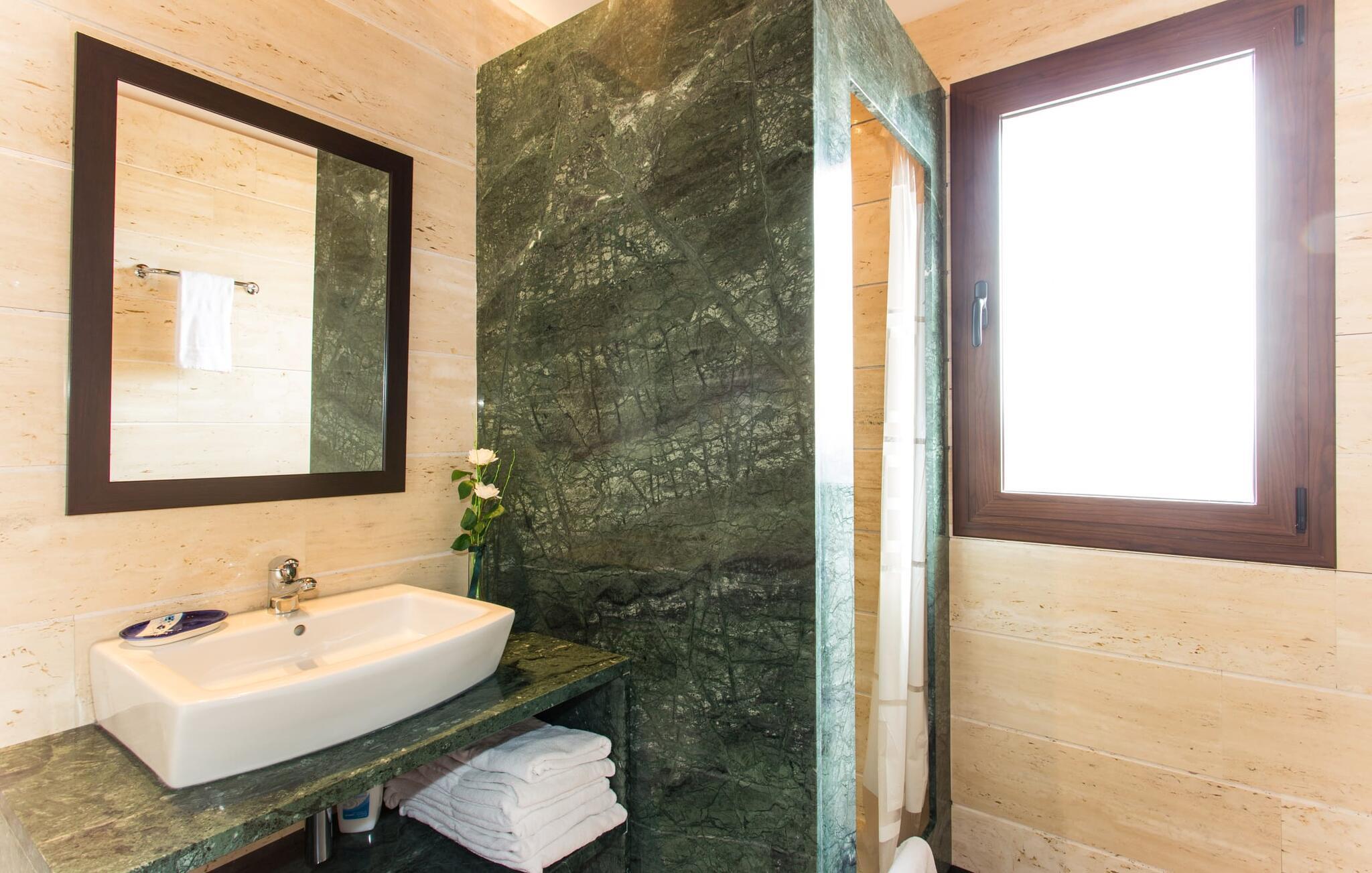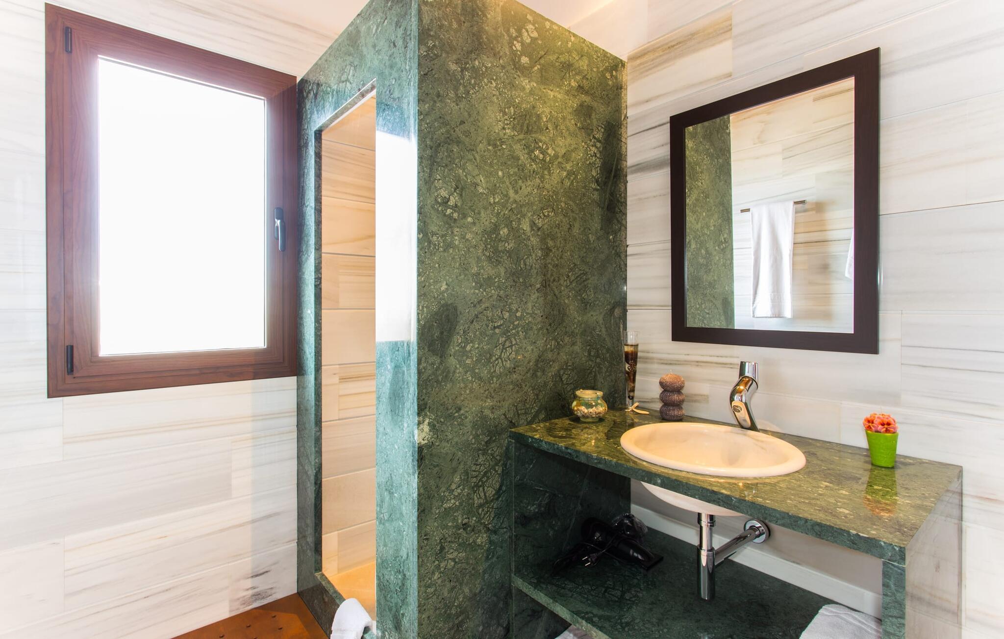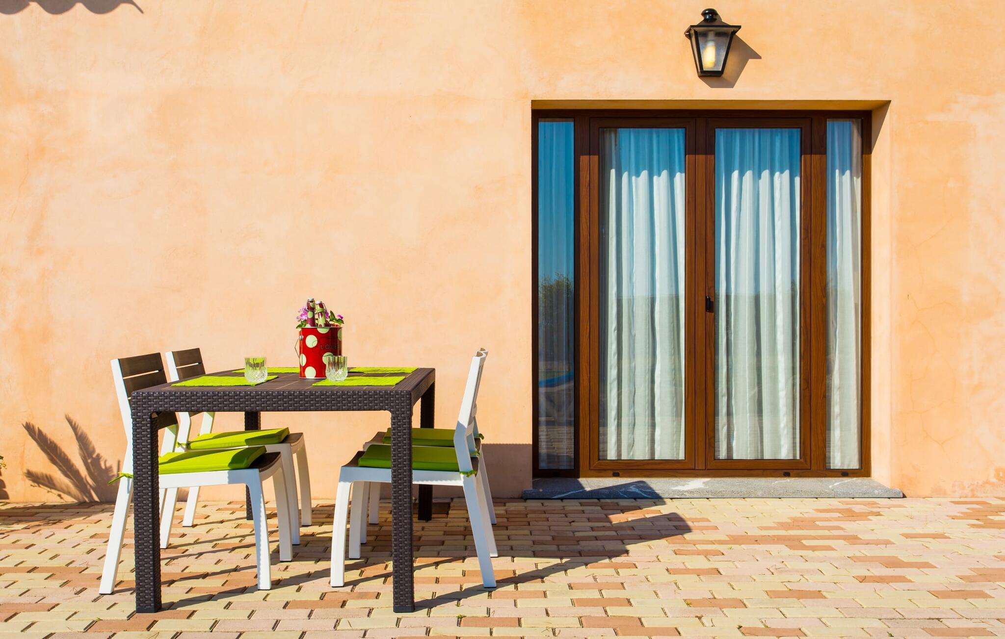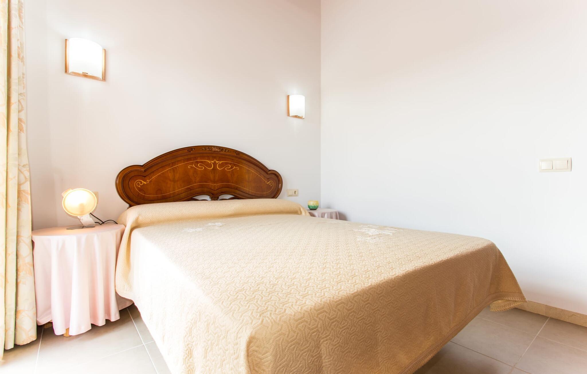 Den traditionelle, sydvendte villa "Saraix" blev fuldstændig restaureret i 2014. Den solbeskinnede villa byder os hjertelig velkommen i en delikat terracotta farve på en ejendom omgivet af fyrretræer. Mellem villaen og poolen er der en solterrasse med i alt 8 liggestole og 1 parasol. Efter svømning kan I nyde den varme sydlige sol på liggestolene eller se jeres børn lege i poolen. En træbænk og et polyrattanbord med komfortable stole og æblegrønne hynder giver mulighed for at tilbringe sociale stunder. Under en overdækket terrasse på siden af huset er der endnu en udendørs siddeplads med træmøbler og de samme spændende grønne hynder, samt endnu en træbænk i skyggen. Sætter I begge ensembler sammen, kan I nyde en underholdende grillaften, da hver af de to terrasser har en muret grill. En udvendig trappe på siden af huset fører jer til øverste etage. Over tagterrassen er der adgang til en slags tårnværelse, der er indrettet som en ekstra opholdsstue til afslapning eller som læsesal og byder på en smuk udsigt over den landlige struktur i det omkringliggende område og grunden. Et særligt højdepunkt for os er villaen "Saraix". Ejendommen, der hører til villaen, er faktisk meget mere rummelig, så I kan tage lange ture rundt i ejendommen. Får, grise og høns holdes stadig i en vis afstand fra huset, men de kan selvfølgelig ikke nå Villa “Saraix”. I kan nyde freden og rummet i den landlige beliggenhed. Med undtagelse af tårnrummet ligger alle andre rum i villaen i stueetagen, som er tilgængelig via flere gulv-til-loft terrassedøre. Dette gælder også delvist for soveværelser, hvor man kan få adgang til haven direkte om morgenen. Villaens indretning er meget ny og har en tidløs smag. Hvide, glatte vægge med store gulvfliser i lys jordfarve suppleres af lyspunkter indlejret i lofterne og sikrer en moderne standard. Det fritlagte bjælkeloft og de antikke træstole giver lidt mallorcansk hygge i stuen, som er indrettet med en orange og en chokoladebrun sofa. Perfekt til en hyggelig aften med fjernsyn eller en social aften. Det separate køkken er meget stilfuldt udstyret. Et langt tekøkken med ønskværdig teknisk komfort og fuldt udstyr, som I ikke vil undvære, når I er på ferie, imponerer med træfronter, der suppleres af marmor af høj kvalitet. Her er også monteret loftspots; Spisebordet kan trækkes ud og giver alle gæster plads nok til fælles måltider. De 4 soveværelser har enten dobbeltsenge eller separate enkeltsenge; Brugen eller distributionen kan ændres af gæsterne efter behov. Der er plads nok til jeres ferietøj i de indbyggede skabe. De to højkvalitetsbadeværelser med brusekabine er yderst moderne. Bruserne er designet med sten af høj kvalitet. De indmurede bruseområders mørke marmor danner en elegant kontrast til den lyse, højglans natursten, der blev lagt på de øvrige vægge. Uanset om I rejser med venner eller med to familier - villaen byder på plads nok til alle gæster til en yderst moderat pris i en vidunderlig landlig beliggenhed og alligevel tæt på stranden og byen. Placeringen af den ukomplicerede villa "Saraix" er et overbevisende argument for os. Det tager cirka 7 minutter at komme til den smukke kystby Can Picafort, mens der kun er cirka 4 km til Santa Margalida. Den attraktive villa ligger cirka 450 m fra vejen, der forbinder begge populære byer. Begge byer er nemme at nå for shopping. Der er et fantastisk ugentligt marked i Santa Margalida om tirsdagen og lørdagen, og om fredagen kan I køre til Can Picafort-markedet. Can Picafort er en del af Bahiá de Alcúdia, som forbinder kilometervis af meget smukke sandstrande som en perlehalskæde. I Can Picafort finder I adskillige barer og restauranter samt et pulserende natteliv i de lokale klubber. I får en helt anden oplevelse i smukke Santa Margalida, en af de smukkeste og mest maleriske landsbyer på øen, hvor I stadig kan opleve det originale Mallorca. På grund af den bekvemme beliggenhed har I valget mellem mange forskellige ting på ferien og på Villa “Saraix” kan I forvente begivenhedsrige dagsture, hvor I kan runde en afslappende dag af med en afslappende grill. Vi hos Fincallorca ønsker jer en varieret, afslappende og behagelig ferie. Villaen “Saraix” blev restaureret i 2014 og er beliggende i landlige omgivelser mellem byerne Santa Margalida og Can Picafort. Santa Margalida ligger kun 4 km væk, og Can Picafort ligger også kun 7 km væk. Her kan I gøre jeres indkøb og gå til markederne på forskellige dage i ugen, hvor I kan finde frisk frugt og grøntsager. Strandene i Alcúdia-bugten, som alle er opstillet som en perlerække, ligger kun få minutter væk i bil.