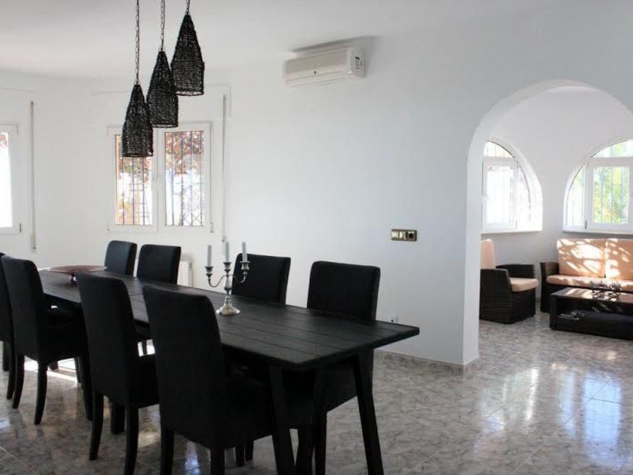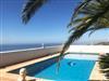 The spacious, one level holiday home is accessible via two steps at the entrance. There is a living area with a modernly furnished living and dining room, the adjacent kitchen, equipped with all necessities and adjacent to that a glass enclosed room with a fireplace with views of the patio, the pool, the ocean and the mountains. The two bedrooms are furnished with a 180 x 200 cm double bed and built in closets; one of the bedrooms has an ensuite bathroom. There is also a walk through room, furnished with two sofa beds each accommodating two people (140 x 200 cm). There are two additional beds, which can be placed into the larger bedroom. The maximum capacity of the house is eight people. Furthermore, there is a spacious second bathroom. The two bathrooms offer a sink, a shower, a bidet and a toilet; the larger bathroom also has a urinal. The house has central gas heating, three air conditioning units (dining room, bedroom, tv/bedroom), as well as a sauna, making it a comfortable property year round. Wireless internet access is available in all rooms.