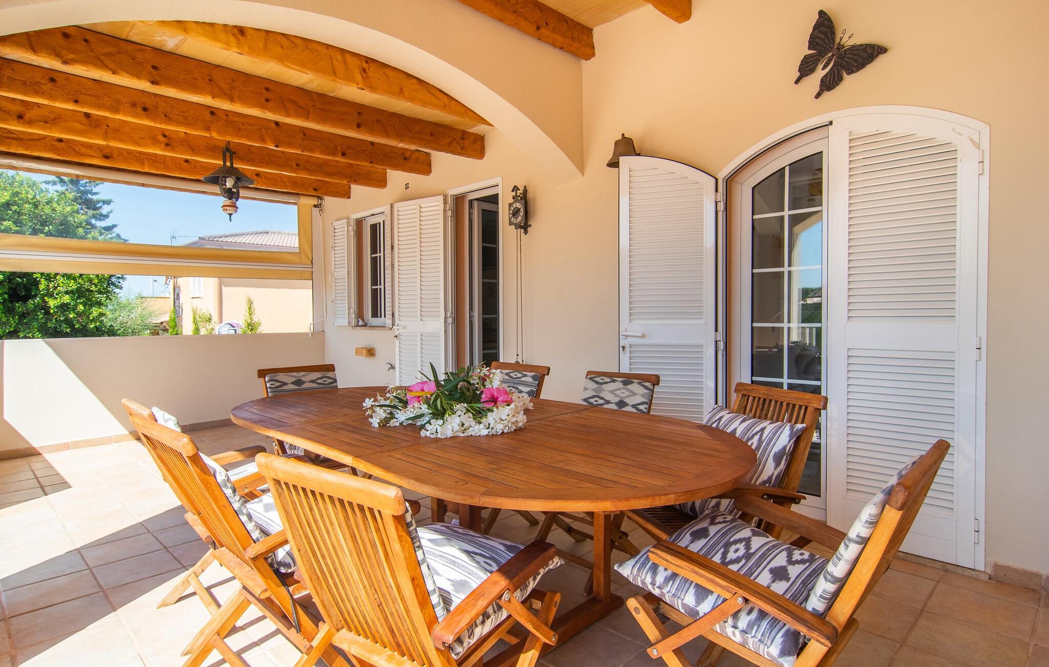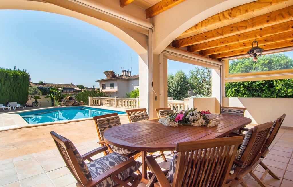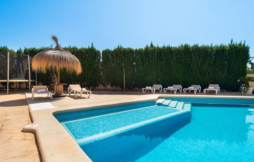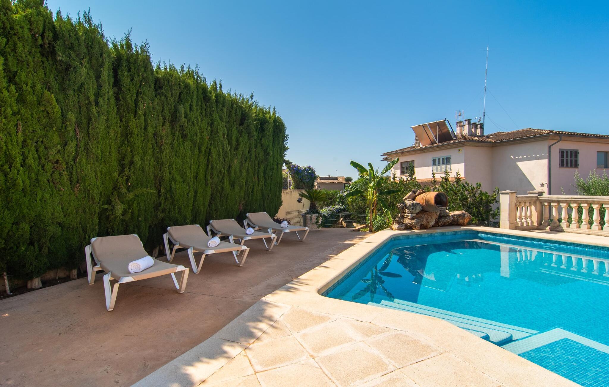 Villa "Sayana" er det perfekte tilflugtssted for gæster, der ønsker at udforske Palma og nyde en fredelig ferie på samme tid. Dette omhyggeligt vedligeholdte feriehus ligger lige uden for hovedstaden og har en privat pool og en frodig have med oliven- og palmetræer. Slap af på liggestolene ved poolen, mens de små morer sig på trampolinen og spiller bordtennis. Den skyggefulde veranda, der støder op til huset, giver et behageligt sted at slappe af på varme sommerdage eller køligere aftener, suppleret med en grill til afslappet spisning. Indenfor byder villaen på moderne komfort med lyse, luftige rum. Den indbydende opholds- og spisestue åbner direkte ud til terrassen gennem gulv-til-loft glasdøre. Det fuldt udstyrede køkken giver mulighed for nem selvforplejning. Villaen kan rumme op til seks gæster og har tre smukt designede soveværelser samt en ekstra sovemulighed på et åbent galleri, der er tilgængeligt fra stuen. To moderne badeværelser, hvoraf det ene har spabad, fuldender den luksuriøse oplevelse. Villa "Sayana" lover et behageligt ophold - book jeres ferie i dag! Den smarte byvilla "Sayana" i et boligområde i Palma. Byejendommen ligger i udkanten af byen og er derfor strategisk placeret for udflugter til fods eller i bil. Strandene i Palma-bugten kan også nås på en kort køretur. Elektricitet er inkluderet i prisen, hvis den anvendes hensigtsmæssigt. I sjældne tilfælde vil I blive opkrævet gebyret kontant på stedet. Den valgfri brug af varmen faktureres kontant på stedet.