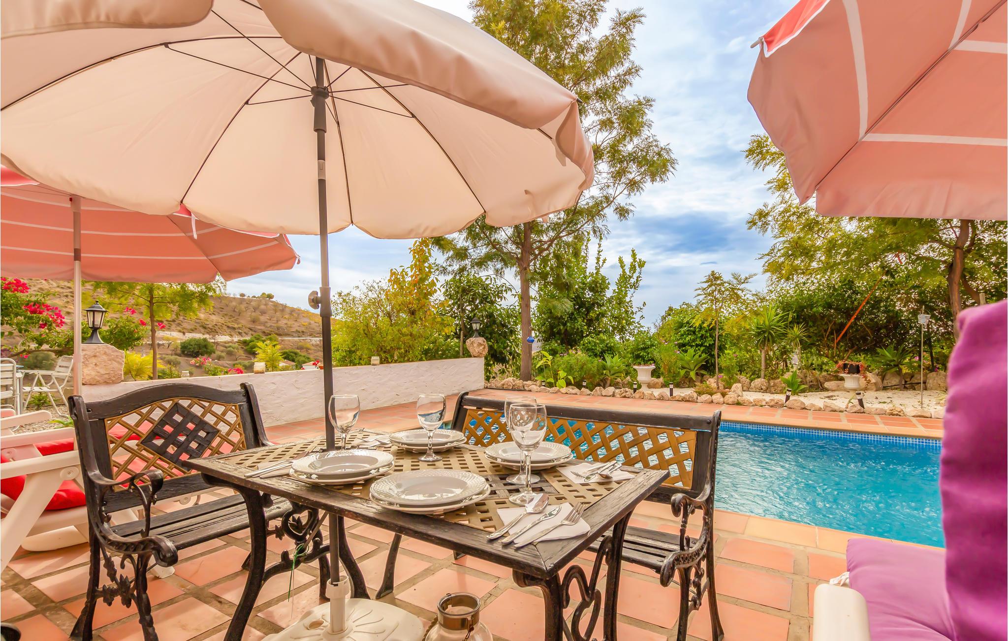 I den smukke landsby Sedella ved foden af ??Sierra Nevada inviterer dette solide hus jer til at tilbringe en afslappende ferie. Huset har en rolig beliggenhed med udsigt over de bjergrige landskaber. Den er indrettet i lyse farver og tilbyder alt, hvad I behøver for en tilfredsstillende ferie. Tilbered jeres feriemåltider i køkkenet og tilbring kvalitetstid med jeres venner eller familie i stuen.