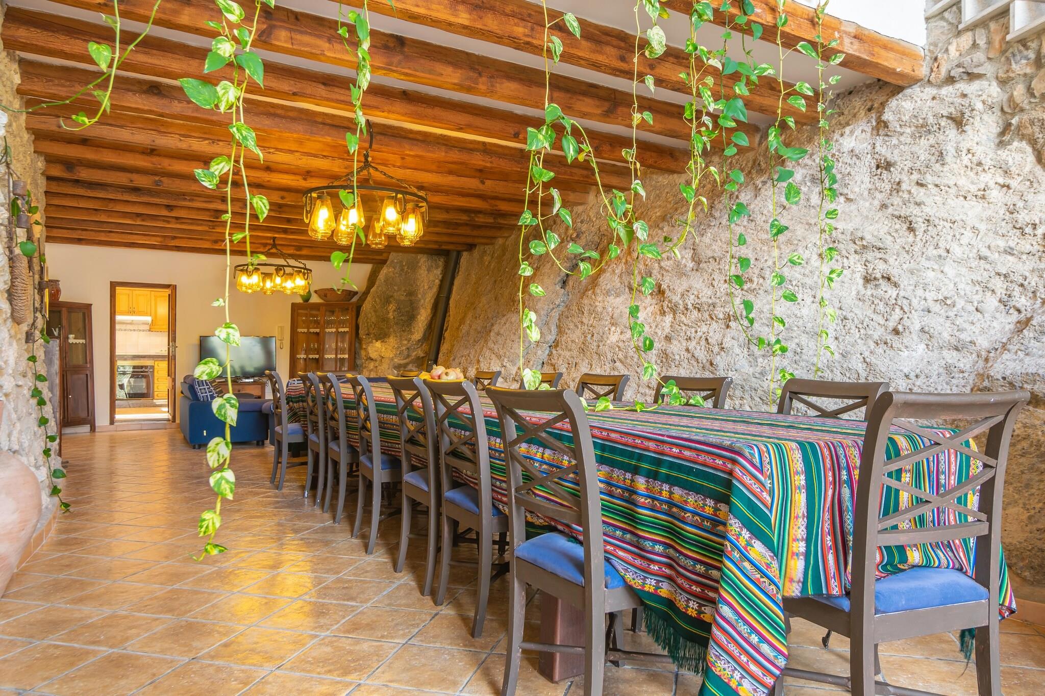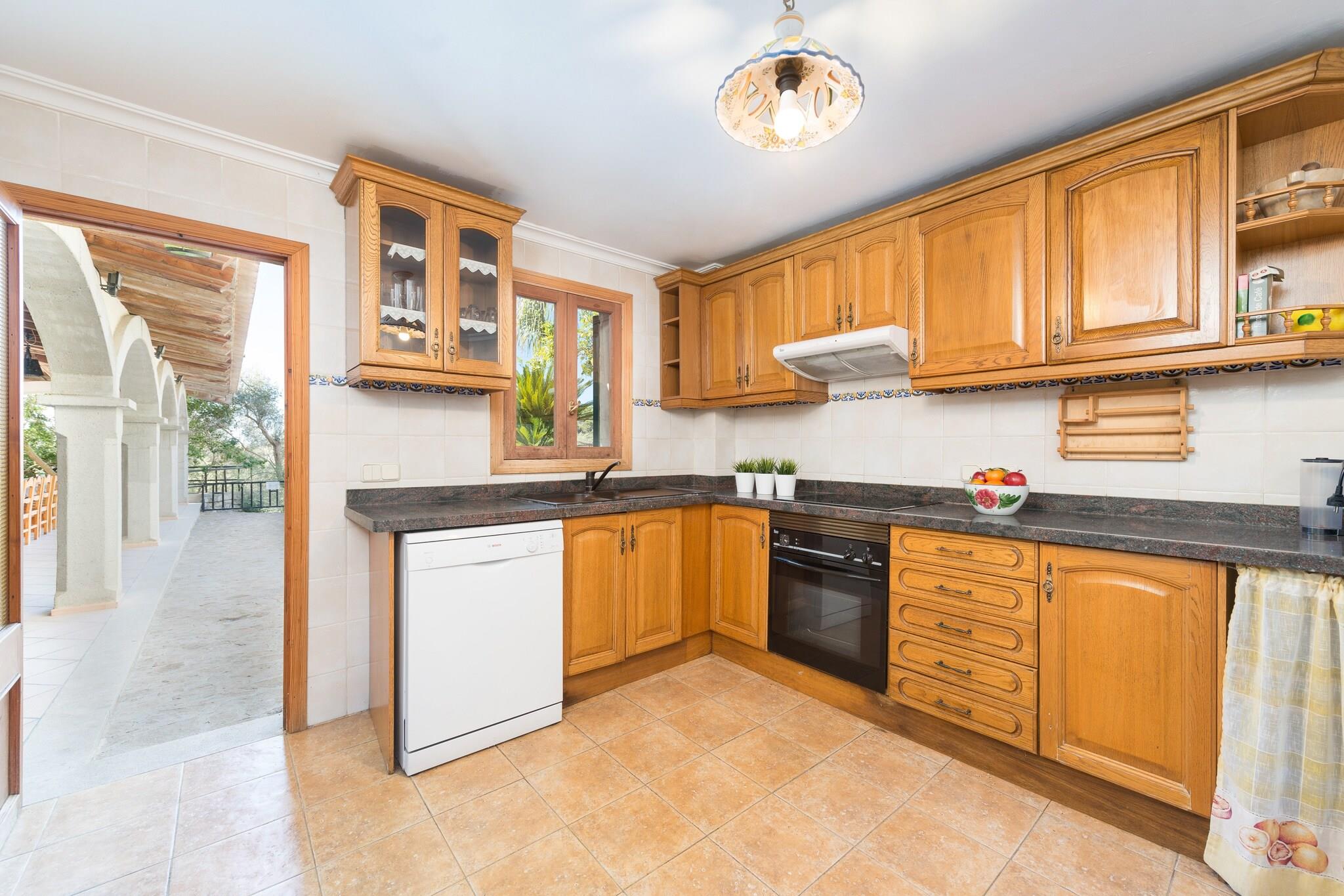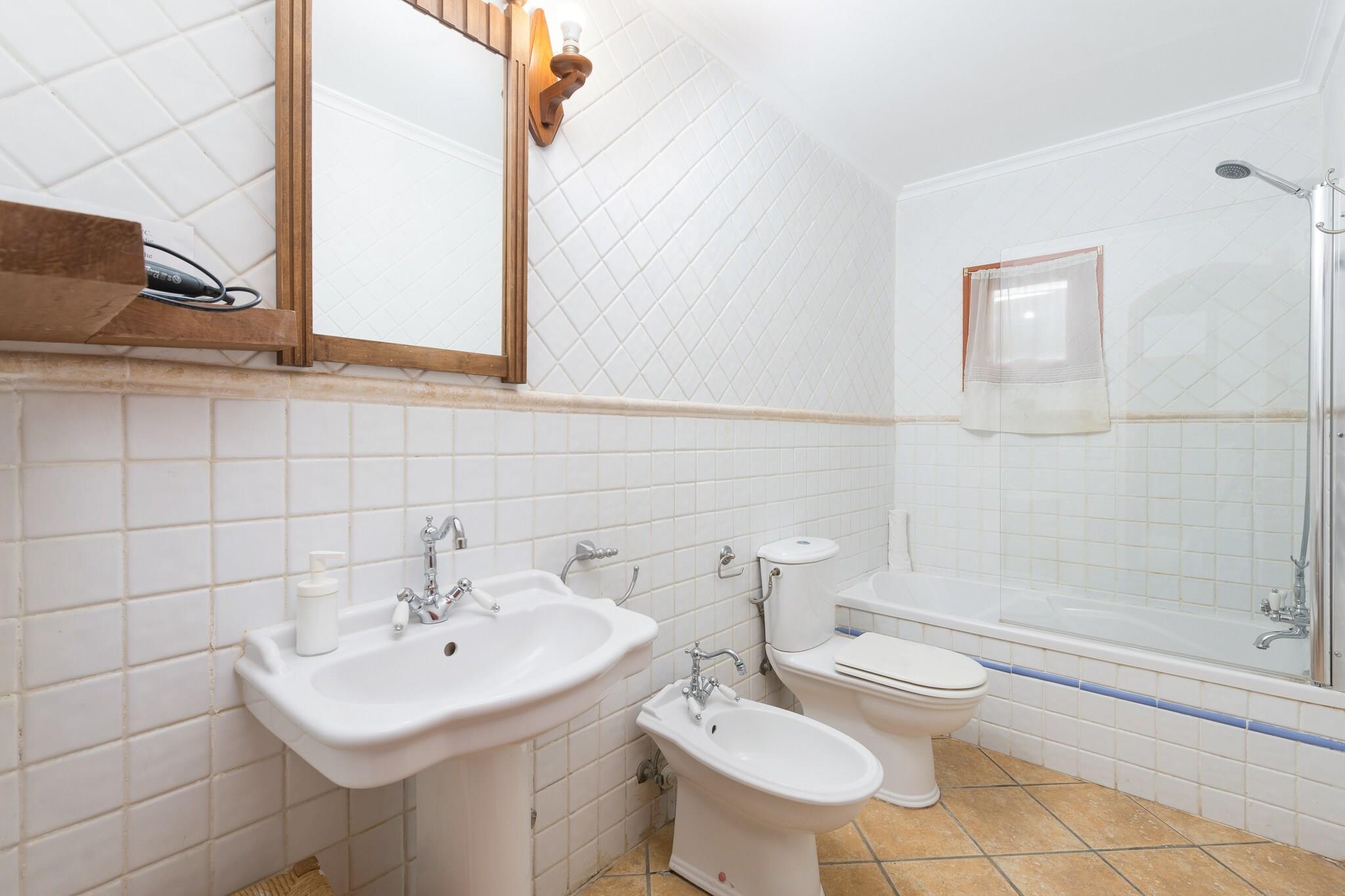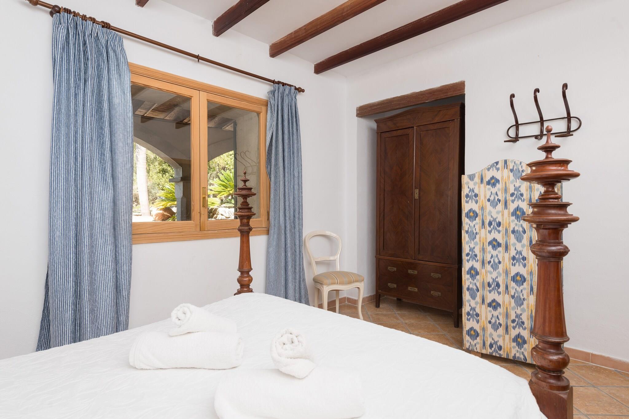 Denne fantastiske finca, beliggende i et landligt og skovklædt miljø, tilbyder et fredeligt tilflugtssted med en betagende udsigt. Den private klorpool (18 x 7 meter, 0,6–1,7 meter dyb) er omgivet af 12 liggestole, perfekt til solbadning og svømning. Det store udendørs bord er ideelt til at nyde måltider under åben himmel, og ejendommen er fuldt indhegnet for fuldstændig privatliv. Huset er fordelt på to etager, der kombinerer traditionel mallorcinsk charme med moderne bekvemmeligheder. Stueetagen har en rummelig foyer og en stue-spisestue med tv, perfekt til at slappe af efter en dag med udforskning. Det fuldt udstyrede køkken har en keramisk kogeplade, og på køligere dage kan du hygge dig ved brændeovnen eller bruge olieradiatoren. Der er også et badeværelse med badekar og to soveværelser med dobbeltsenge. Ovenpå sørger et spillerum med to poolborde og et bordfodboldbord for underholdning. Yderligere fire dobbeltværelser, alle med en-suite badeværelser og badekar, tilbyder komfort og privatliv. Alle soveværelser har garderobeskabe og aircondition, og en vugge og høj stol er til rådighed. Vaskerummet indeholder vaskemaskine, strygejern og strygebræt. Beliggende kun 850 meter fra Selva, en charmerende by ved foden af Tramuntana-bjergene, er denne finca ideel til vandre- og cykelture. Puerto de Alcúdia-stranden ligger 25,9 km derfra. Kæledyr er ikke tilladt, og arrangementer er forbudt. Udvendig parkering til 4 biler er tilgængelig. Afstande: Strand: 25,9 km (Puerto de Alcúdia) Lufthavn: 42,1 km (Son Sant Joan) By: 0,85 km (Selva) Hospital: 4,6 km (Hospital Comarcal d"Inca) Turistlicens: ETV/4072. Ecotasa (turistskat) gælder. Som reaktion på Coronavirus (COVID-19) er yderligere sikkerheds- og sanitære foranstaltninger i kraft på denne ejendom.