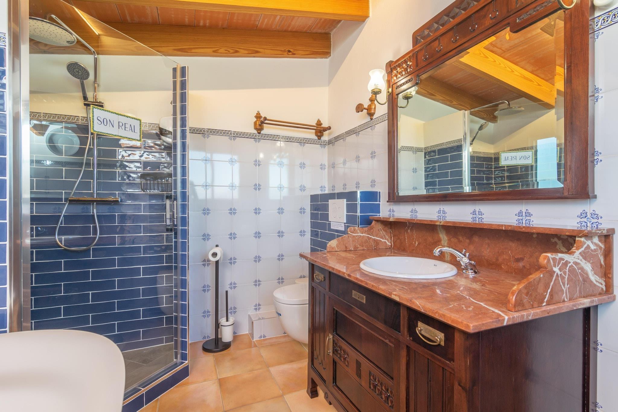 Welkom in een van de rustigste gebieden en in een huis dat de charme en essentie van een Mallorcaans bouwwerk uit het jaar 1800 volledig behoudt. De buitenkant van het huis is buitengewoon. Net buiten het hoofdgebouw vinden we een perfecte veranda om van de leestijd te genieten. In het zwembadgedeelte (chloor en 4,2 x 11 meter) en het kinderbad zijn er verschillende schaduwplekken: een klein hoekje om jezelf 's middags tegen de zon te beschermen, een groot gedeelte met een tafel die ideaal is voor koele zomerse lunches en diners, en een zitgedeelte waar u kunt genieten van een drankje. Rond het zwembad is er een terras waar we 10 hangmatten vinden, perfect om te profiteren van het goede weer en de Mallorcaanse zon. Er is ook een tuingedeelte van 140 m2 met gras. In het grasveld bevindt zich een watertank die niet als zwembad gebruikt kan worden. Het terrein is volledig omheind. In de ruimte achter het hoofdgebouw vinden we een groot terras met tafels en stoelen voor alle bewoners met een indrukwekkend uitzicht op de bergen en een vaste barbecue. Er is ook een buitentoilet. De accommodatie bestaat uit twee naast elkaar gelegen woningen, die in totaal plaats bieden aan 12 personen. Het is een groot pand van ongeveer 350 m2 bebouwd en 35.000 m2 grond in de gemeente Sencelles. De Mallorcaanse essentie is aanwezig in elk van de kamers van de twee huizen. De grootste heeft een grote eetkamer met ruimte voor 12 personen en een zeer comfortabele woonkamer met een bank en twee fauteuils. De kamer beschikt over airconditioning, WIFI en Smart TV. De aparte keuken is uitgerust met alles wat u nodig heeft tijdens uw verblijf, inclusief een keramische kookplaat. De accommodatie beschikt ook over een wasmachine, strijkijzer en strijktafel (de was is gemeenschappelijk voor beide huizen). Het grote huis heeft 4 tweepersoonskamers, waarvan één op de begane grond en de andere drie op de eerste verdieping. Twee van de kamers hebben een tweepersoonsbed en de andere twee hebben elk twee eenpersoonsbedden. In het kleine huis vinden we de andere twee slaapkamers, één met een tweepersoonsbed en de andere met twee eenpersoonsbedden. Alle kamers in beide huizen zijn voorzien van airconditioning en kasten (behalve één kamer die deze in de gang heeft, direct bij de uitgang van de kamer). Het hoofdhuis heeft 3 badkamers, één in de kelder met douche, en de andere twee op de eerste verdieping, één met douche en de andere met een bubbelbad. De badkamer in het kleine huis heeft een douche. Wat het kleine huis betreft, vinden we ook een woon-eetkamer van 25 m2 met een bank en twee fauteuils, en een tafel met ruimte voor zes personen om te eten. Tevens beschikt deze ruimte over airconditioning en TV met chromecast. Het huis ligt op slechts 2,4 km van Sencelles, waar u alles kunt vinden wat u nodig heeft tijdens uw verblijf; supermarkt, medisch centrum, apotheek, bars, restaurants, etc. Slechts 30 minuten rijden brengt u naar Ses Casetas des Capellans en Ca'n Picafort. Geniet van een dag op het fijne zandstrand en maak een cocktail terwijl u de zonsondergang bewondert. In de omgeving vindt u goede restaurants waar u een goede paella kunt eten, sommige met een fantastisch uitzicht op de baai van Alcúdia. De promenade van Ca'n Picafort is zeer levendig en contrasteert met de rust van de Playas de Muro. Het is ook raadzaam om naar het gebied van Alcúdia te gaan, waar baaien zijn met kristalhelder water. Naast het noordelijke deel kunt u de stranden van het oostelijke deel van Mallorca bezoeken, zand- en rotsstranden die perfect zijn voor natuurliefhebbers. Opmerking: deze huuraccommodatie accepteert geen klanten jonger dan 30 jaar, behalve in gevallen waarin het om een ??gezinsverblijf gaat. We hebben kopieën van het identiteitsbewijs van elke persoon nodig om de reservering te kunnen accepteren. Voor eventuele extra kosten kunt u contact opnemen met de adverteerder. Wij accepteren geen huisdieren. Het vieren van evenementen is niet toegestaan. Er is buiten parkeergelegenheid voor 4 auto's. Afstanden Strand: 34,5 km - Ses Casetes des Capellans Luchthaven: 24,6 km - Son Sant Joan Golfbaan: 23,5 km - Son Termens Stad: 1,5 km - Sencelles Treinstation: 10,9 km - Estació d'Inca Bushalte: 2 km - Carrer de Ramon Llull, Sencelles Veerboot: 39,1 km - Port de Alcúdia Ziekenhuis: 11 km - Comarcal d'Inca-ziekenhuis Toeristenvergunning: VT/538Bij de ingang dient u de Ecotasa (toeristenbelasting van de Balearen) contant te betalen. Het bedrag varieert tussen EURO 0,55 / per nacht per persoon in het laagseizoen en EURO 2,2 / per nacht per persoon in het hoogseizoen. Vanaf de negende dag wordt het met de helft verminderd. Personen onder de 16 jaar uitgesloten. Bij de ingang dient u de borg rechtstreeks aan de eigenaar te betalen. Airconditioning (januari - december): 0,37 EUR/Kw (optioneel)