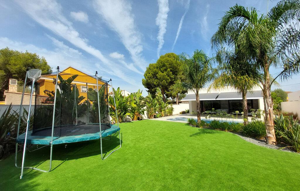 Dette sensationelle designerhus i ét plan ligger i et lukket område i den maleriske naturpark Sierra Calderona og giver jer en helt særlig oase i rolige omgivelser. Træd indenfor og bliv betaget af det rummelige og smagfulde interiør. Fremtryl kulinariske lækkerier i det eksklusive køkken, og efter en lang dag kan I slå jer ned på de indbydende siddepladser til en spændende film.