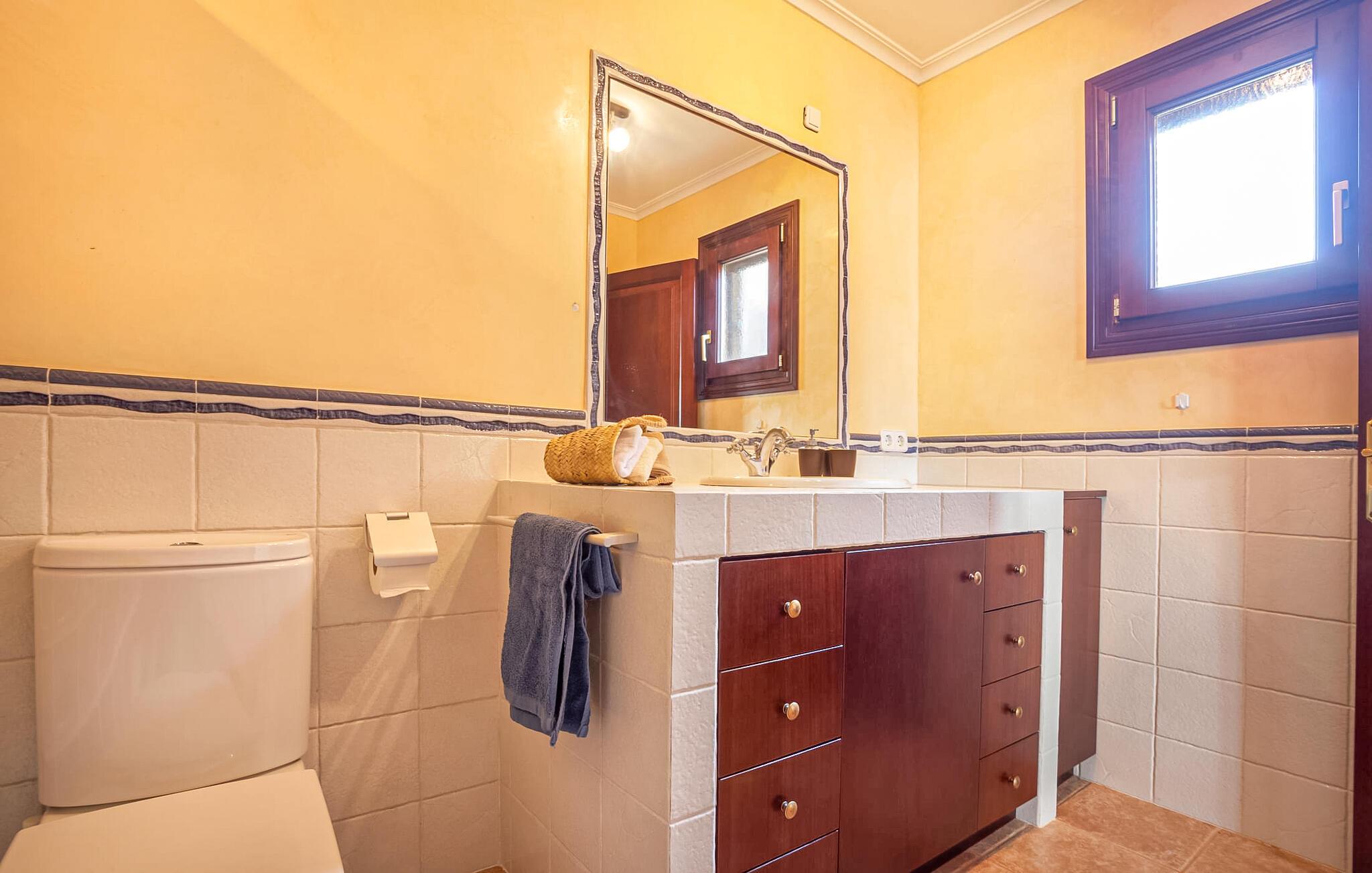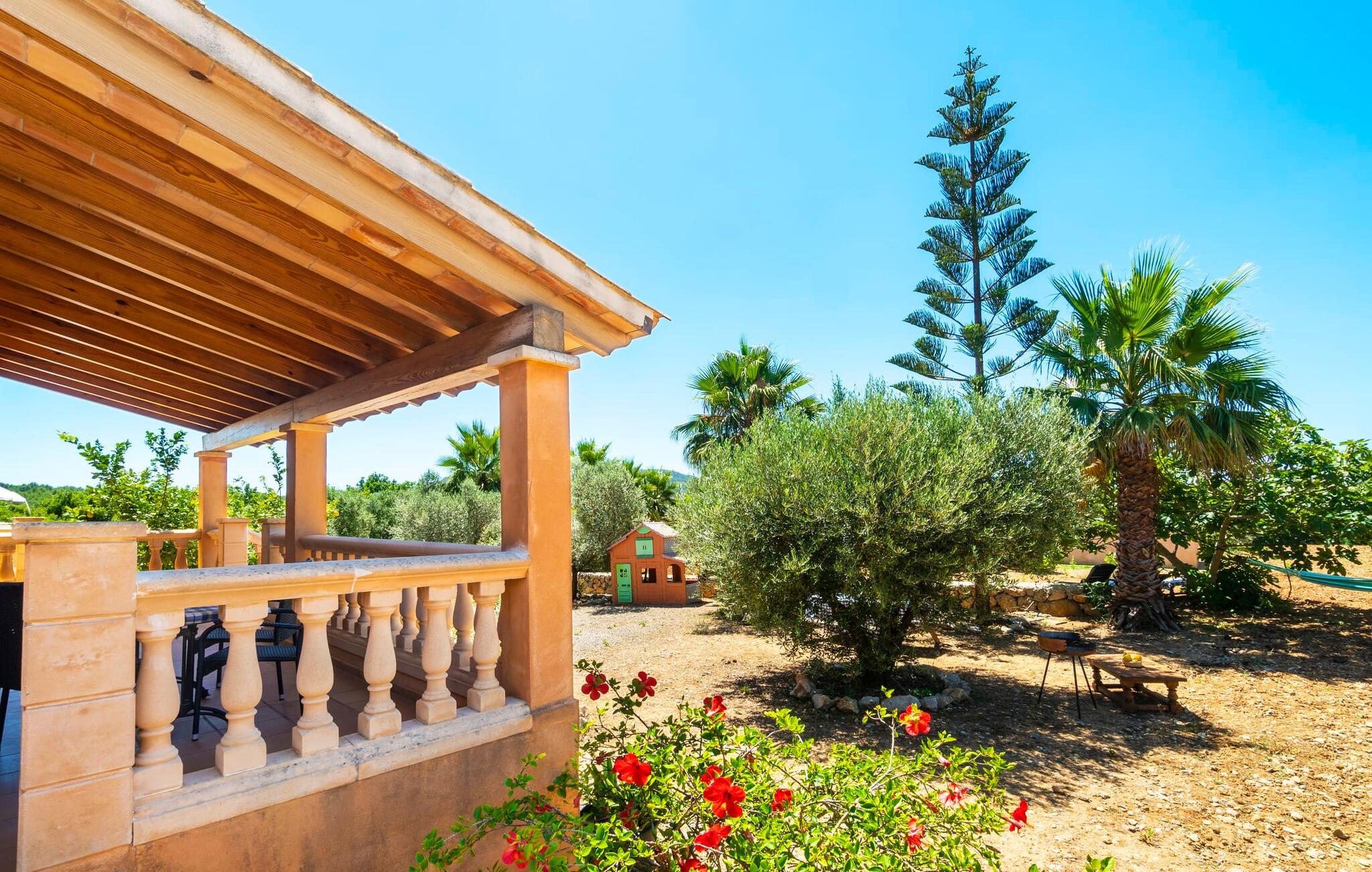 Det ydre af bygningen, som består af stenbrud og honningfarvede gipsflader, kombineret med en middelhavshave fuld af palmer og frugttræer, skaber det harmoniske billede af en rustik villa med naturlig charme. "Ses Camesroges" passer harmonisk ind i det blide landskab. Ved solopgang og solnedgang kan I nyde lysets magi med pastelfarver på de bølgende bakker fra det udendørs opholdsområde. jeres venlige udlejer inviterer gæster til at hjælpe sig selv til frugten fra frugttræerne for at berige deres måltider. Efter en overdådig morgenmad på den overdækkede terrasse kan I gå en tur gennem haven og aflægge et besøg hos villaens gode sjæl, den elskelige pony ved navn Boira. Erfaring har vist, at Boira vil vinde hjerterne hos både vores yngste besøgende og voksne på ingen tid. På jeres gåtur kommer I forbi poolområdet, som ligger lidt længere væk fra hovedhuset. Den forhøjede pool (kaldet Safreig på Mallorca) er tilgængelig via trapper. For lidt afslapning efter svømning venter liggestole på en anden terrasse lige ved siden af huset. Hvis det er nødvendigt, kan I åbne parasollen og fordybe jer i en spændende bog. Interiøret i denne charmerende antikke villa emmer også af forførende optimisme og en imødekommende energi. Her skaber naturmaterialer som træ, terracotta fliser og talrige vinduer behageligt lyse rum i en vellykket blanding af stilarter. Den rummelige stue med storslåede møbler lover hyggelige aftener ved pejsen. Den tilstødende stue med køkken med landstedsinventar byder på endnu en udgang til terrassen - så I kun skal gå et kort stykke, uanset hvor I spiser jeres måltider. I kan tilføje en vis variation til jeres kulinariske aktiviteter ved at lave mad enten på gaskomfuret eller udenfor på grillen. De to soveværelser og et enkeltværelse med masser af opbevaringsplads er ideelle til en familie eller endda fem venner. Mens det store soveværelse har eget badeværelse med badekar og bidet, er det andet badeværelse tilgængeligt for alle gæster og har et stort brusekabine. Neurale keramiske fliser og smukke, håndmalede dekorative kanter tilføjer dygtigt farveaccenter til det autentiske interiør i dette smukke sommerhus, som kan lejes til en overkommelig pris selv i højsæsonen. "Ses Camesroges" ligger i nærheden af middelalderbyen Capdepera. Med sine smalle gader mellem huse dekoreret med blomster, har byen bevaret sin autenticitet. Fra slottet kan I nyde en fantastisk udsigt over kystlandskabet hele vejen til Cala Ratjada. Om sommeren er det livligt og byder på en bred vifte af gode restauranter. På grund af sin nærhed til landevejen, som kun lejlighedsvis er hørbar, er villaen også ideel for strandelskere. Cala Mesquida vil glæde jer ikke kun med sit fine sand og turkise vand, men også med det tilstødende klitlandskab, som kan nås til fods via trægange og ender i en fyrreskov. Som afslutning på jeres spændende ferieudflugter i denne smukke nordøstlige region, kan I trække jer tilbage til jeres usædvanligt indbydende villa og nyde en afslappende aften. Den historiske villa "Ses Camesroges" er beliggende i en behagelig landlig beliggenhed mellem middelalderbyen Capdepera og Cala Mesquida. I kan gøre jeres indkøb kun få kilometer væk i byen i de lokale supermarkeder eller om onsdagen på det ugentlige marked. Stranden i Cala Mesquida med turkisblåt vand og vidunderlige bølger kan nås på mindre end 10 minutter. Andre naturlige strande inviterer til aktive besøg.