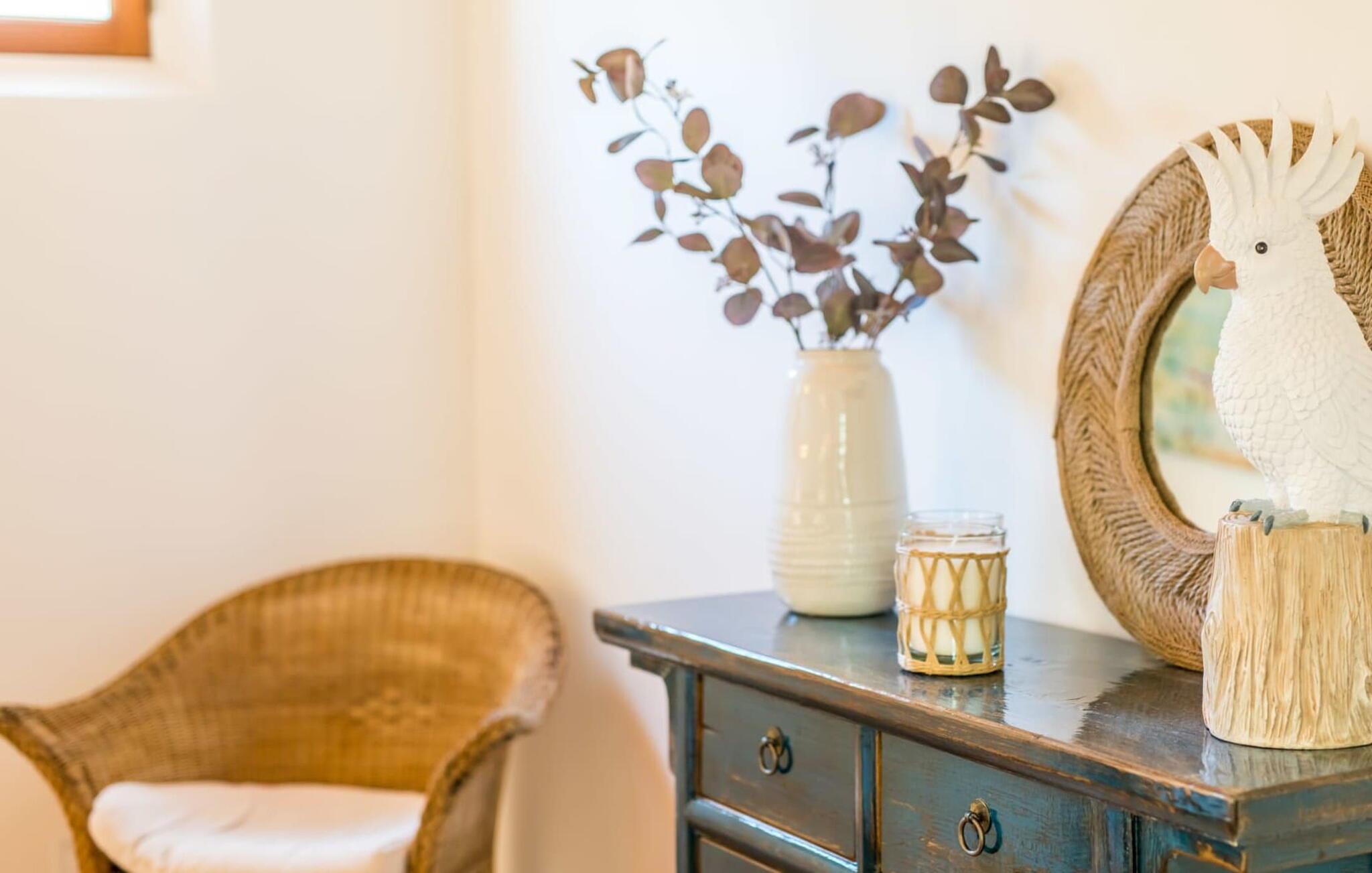 Selve fincaen fortryller også med sin ekstremt stilfulde stemning: alle værelser er venlige og lyse, de to fuldt glaserede terrasser lader middelhavslyset strømme ind i huset, hvoraf den ene endda har en ekstra pejs. Det indre af huset byder på trendy møbler og tekstiler samt moderne kunst. Vægten på træ og sten skaber en masse naturlig hygge. I den åbne stue er der et hyggeligt opholdsområde med pejs. Dette område fører direkte ind i spisepladsen, som igen er forbundet med det fuldt udstyrede køkken. Konceptet med stilfuld hygge er konsekvent videreført i de to soveværelser. De moderne, hvide flisebadeværelser passer også ind i hele fincaens smagfulde design. Det er placeret under det overdækkede opholdsområde ved poolen og tilbyder derfor en ekstra dosis af privatliv. Apropos det: Denne bolig er vidunderlig hyggelig selv om vinteren, fordi den har gulvvarme. Om sommeren er det dog behageligt køligt takket være dets design. En utrolig smuk juvel på landet - det er den bedste måde at beskrive villaen "Ses Eretes". Takket være dens romantiske atmosfære er den perfekt til par. Den maleriske kunstnerby Artà ligger kun 4,7 km væk og byder på adskillige indkøbsmuligheder til jeres daglige behov. Smukke sandstrande som Sa Marjal er omkring 18 minutter væk i bil.
