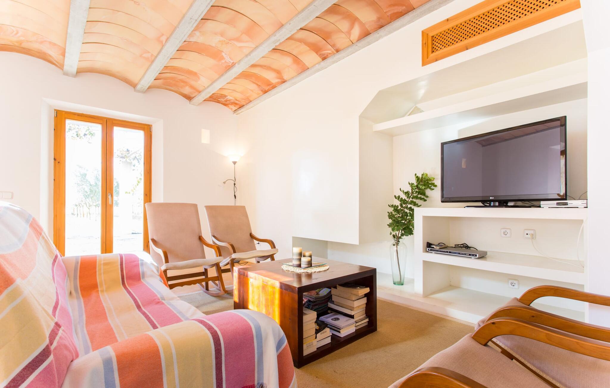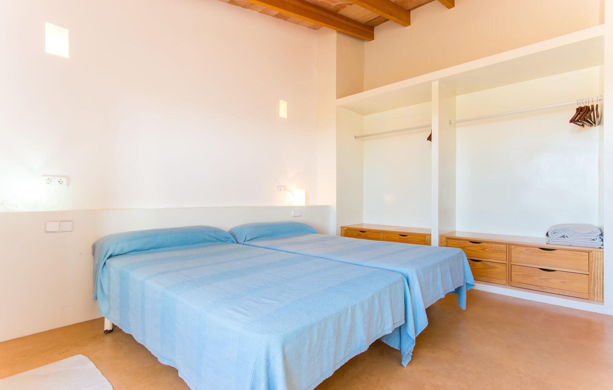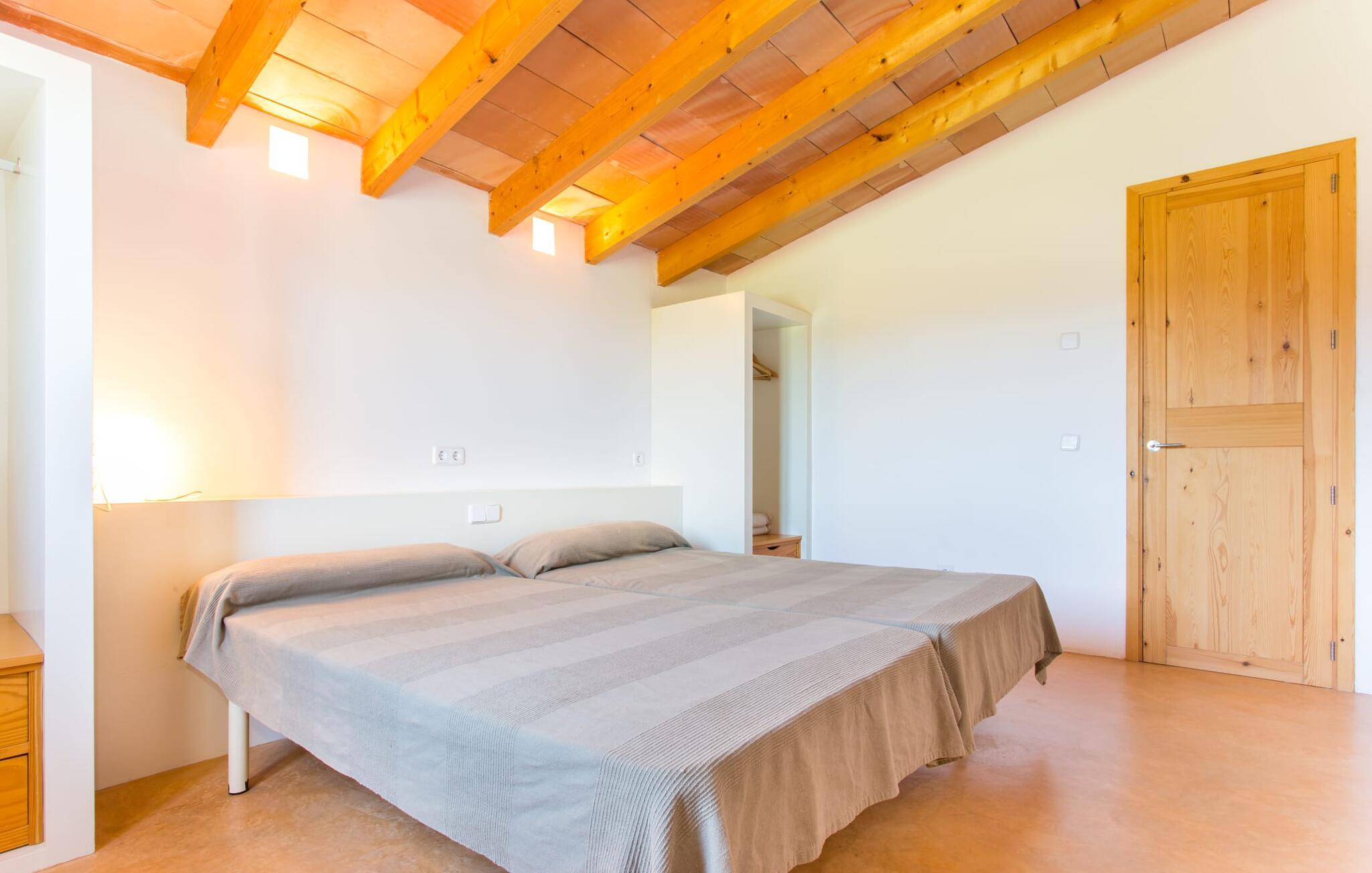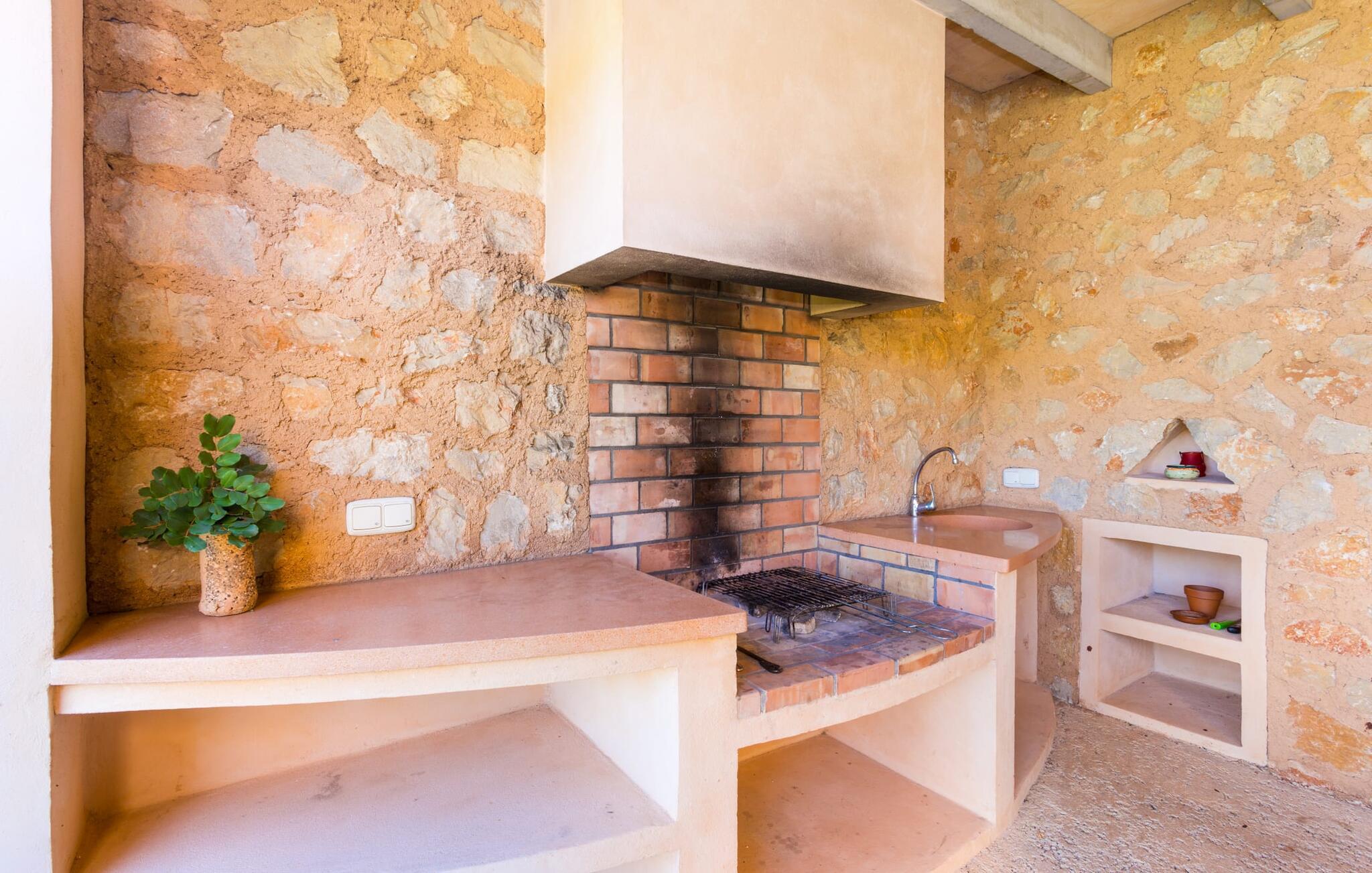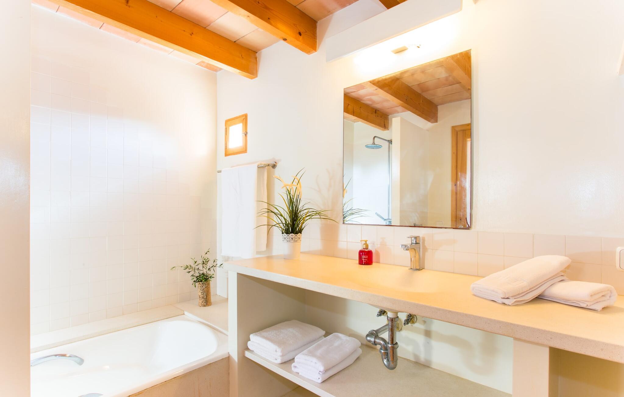 Malerisk indlejret i det grønne landskab i kystsamfundet Son Servera, tilbyder denne moderne villa det ideelle tilflugtssted for feriegæster, der søger fred og afslapning i landlige omgivelser, men også ønsker at køre ad sideveje til de smukke badebyer på østkysten med deres mange forskellige aktiviteter. Den yderst velbevarede ejendom er beklædt med oliventræer, som understreger middelhavsstemningen i naturstensfincaen. Den smukke, åbne plads fungerer også som en græsplæne til at fange solen, samt et godt sted for børn at løbe rundt. Udeområdets store højdepunkt er naturligvis den glitrende turkise pool, som ligger perfekt på den store solterrasse (10 m lang, tilgængelig via brede trin, maksimal dybde mellem 0,60 m og 1,60 m). Her kan I lægge hverdagen langt bag jer, tage et par forfriskende svømmeture og derefter slappe af i den mallorcanske sol på en af liggestolene ved poolen. For at læse lidt ferielæsning eller have en lille snack efter at have brugt tid ved poolen, kan I gøre jer rigtig godt tilpas på terrassen under markiserne draperet med vinstokke. Til siden af huset er der endnu en halvåben terrasse med spisebord og en fantastisk udsigt over de bølgende bakker i det fjerne. Udover køkkenet og med en stor grill er dette et dejligt rum, perfekt til udendørs spisning sammen. Interiøret i villaen "Ses Fonolleres" har et harmonisk rumligt design - moderne og alligevel varmt. Villaen er oversvømmet med lys gennem de mange gulv-til-loft vinduer og adgangsdøre til haven. Rummet i stueetagen er særligt imponerende. Høje hvælvede lofter understreger den rummelige følelse, mens runde buer giver indtryk af en flydende kombination af ophold, spisning og madlavning. Hylder og belysningselementer indbygget i væggene tjener et praktisk og æstetisk formål i hele villaen. Det fuldt udstyrede køkken med ø og disk giver plads til alle til at hjælpe med at tilberede måltider. Har I lyst til at underholde, eller vejret ikke er godt, kan I slappe af i sofaen foran fladskærms-tv'et eller se en spændende dvd sammen. Tre soveværelser (1 x med dobbeltseng, 2 x med to enkeltsenge, masser af opbevaringsplads) tilbyder en afslappende, fredelig søvn. Værelserne har typisk mallorcansk indretning med kridhvide vægge og traditionelle bjælkelofter. Det ene af de to badeværelser med naturligt lys i stueplan er adskilt og er derfor praktisk som gæstebadeværelse. En bred trappe fører fra indgangspartiet til øverste etage. I et lille galleri er der en sofa, hvor I kan nyde en bog. Bag galleriet ligger det tredje soveværelse med tilhørende badeværelse og direkte udgang til altanen, som byder på en vidunderlig, uhindret udsigt over det omkringliggende landskab. Havde I tid nok til at nyde komforten i villaen? Vil I have lidt strandsjov? I er kun 12 minutters gang fra Cala Bona, hvor adskillige aktiviteter og faciliteter er tilgængelige. Den nærliggende bugt er velegnet til familier med små børn - bølgebrydere markerer et eksklusivt badeområde med en svag skråning, der fører til dybere vand. Er større bølger og mindre travlhed mere jeres ting? Derefter tager vi til Sa Marjal strand med en smuk udsigt over det grønne landskab. Det lokkende turiststed Cala Millor, med en attraktiv shoppingpromenade og et bredt udvalg af barer, caféer og restauranter, ligger kun 5 minutter fra villaen. For at lære stedet lidt bedre at kende og nyde helt friske produkter og mallorcanske specialiteter, anbefaler vi, at I tager et kig på det ugentlige marked i Son Servera, som finder sted fredag eftermiddag. Denne smukke villa ligger på en 8.000 m² stor grund i en solrig, sydvendt beliggenhed i et landligt område på den sydlige del af øen. På grund af de landlige omgivelser nyder dette sted absolut fred, selvom det kun ligger et stenkast fra badebugter som Cala Bona og andre smukke sandstrande. Den lille by Son Servera og den nærliggende kystby Cala Millor ligger kun 5 minutter væk i bil og byder på shopping og restauranter.