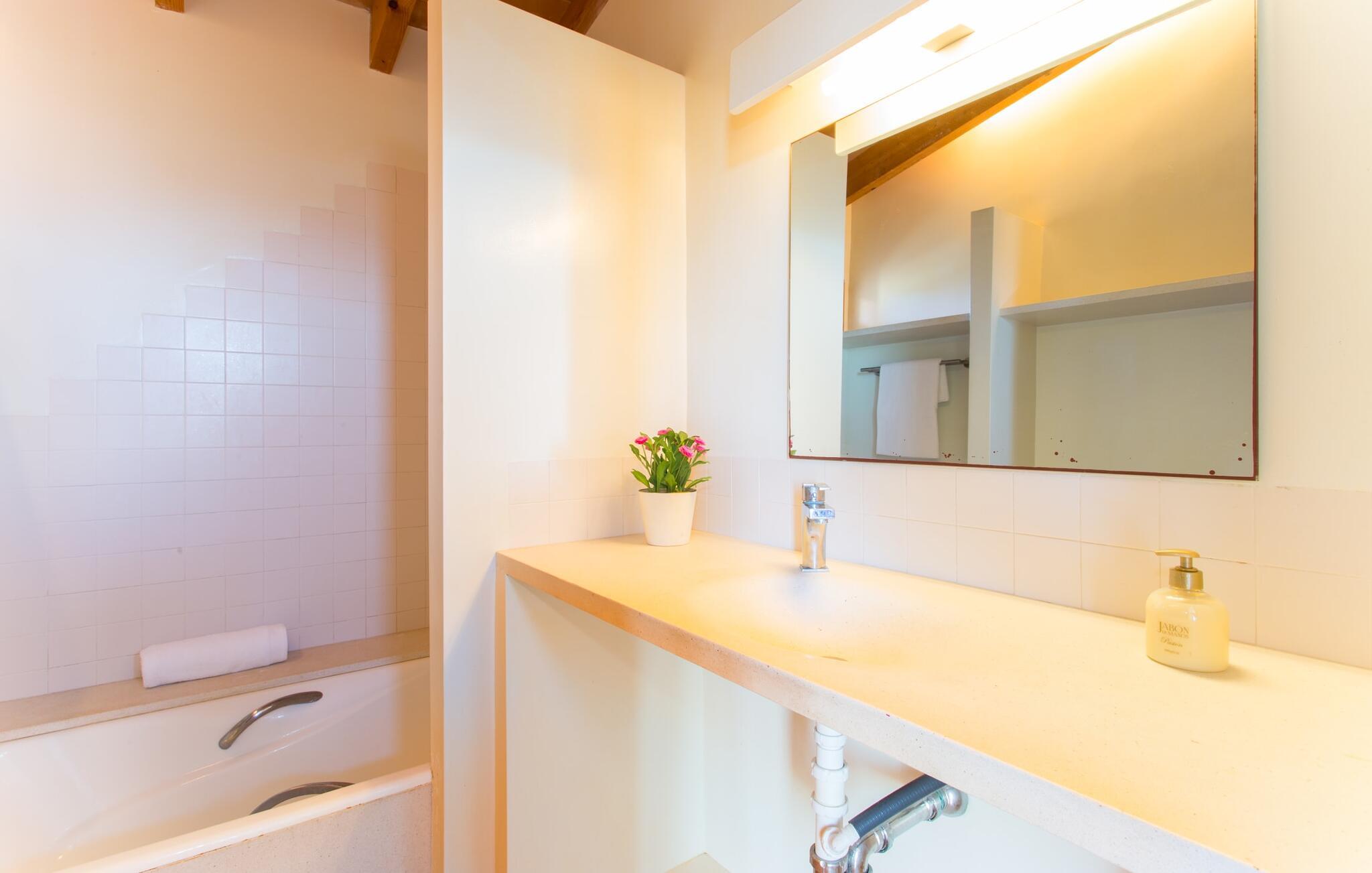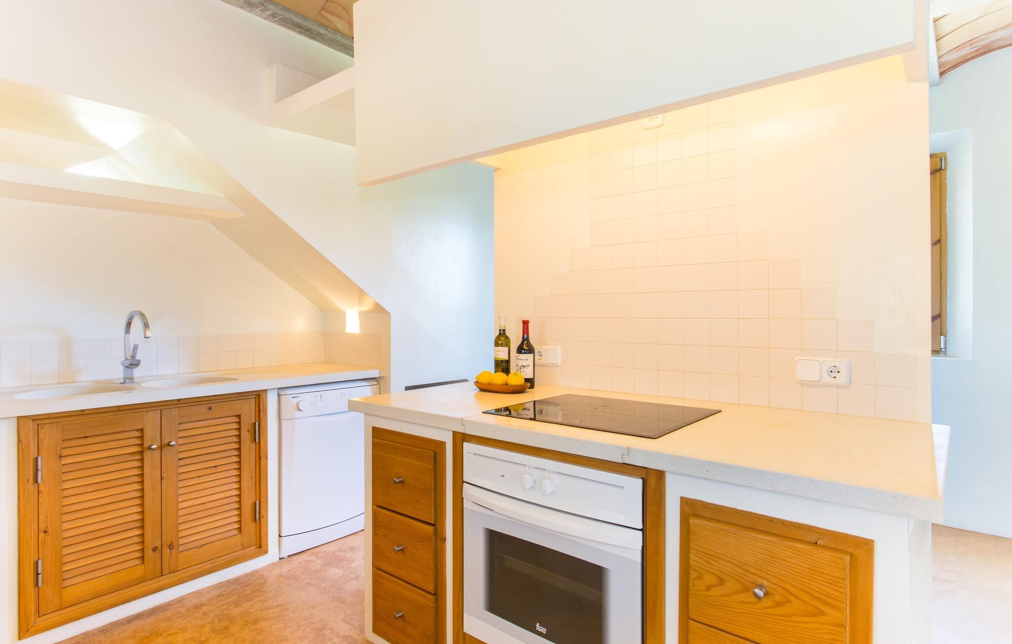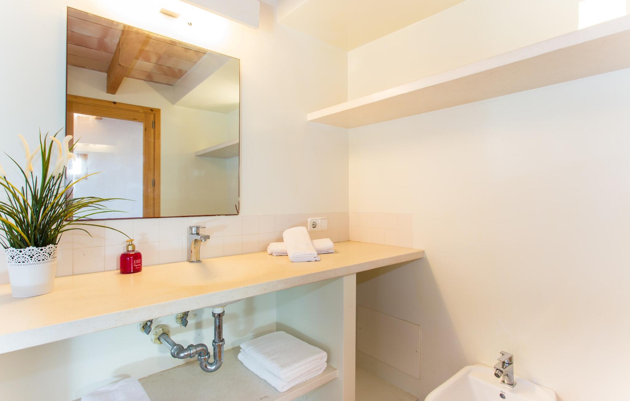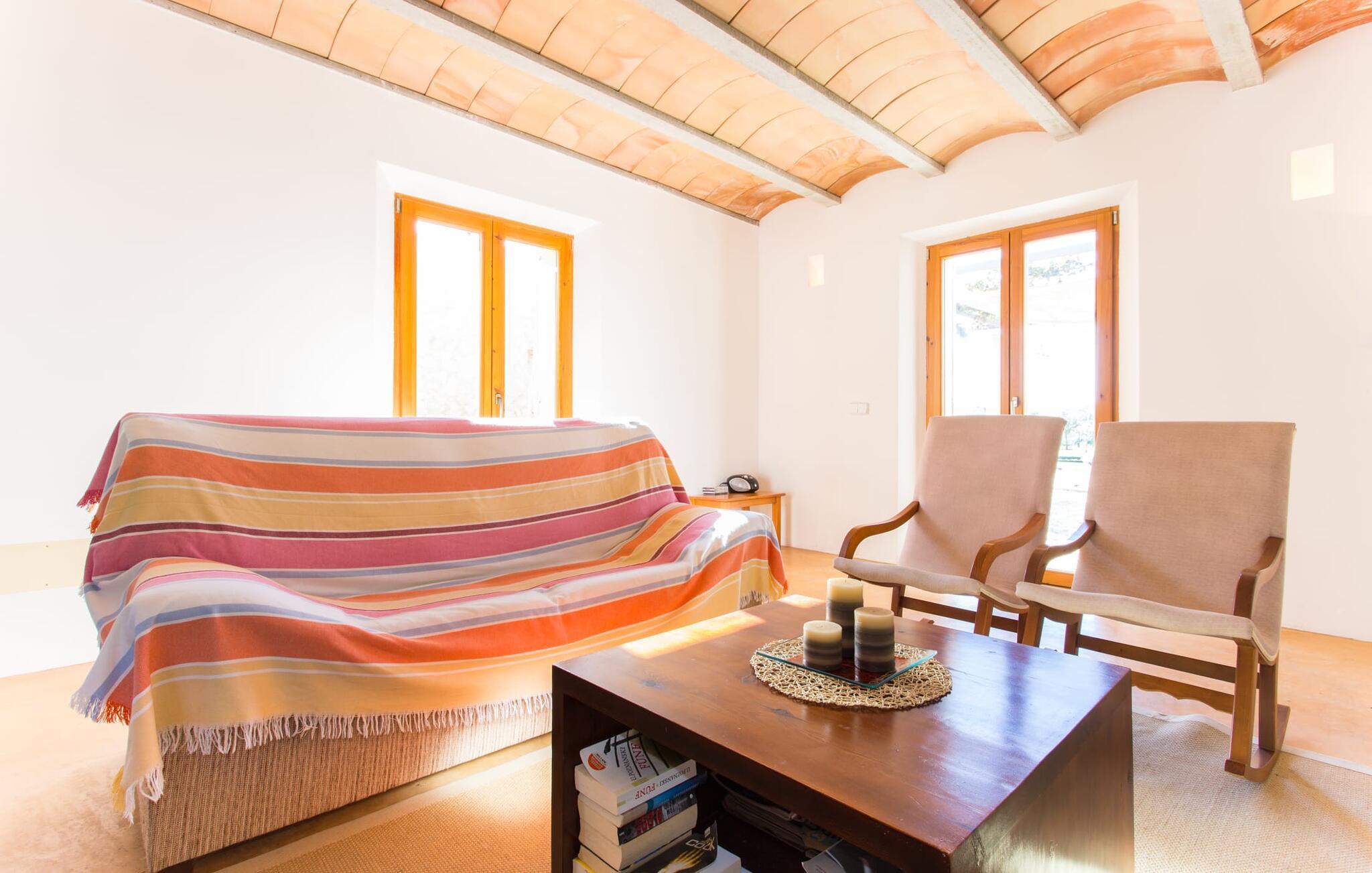 Malerisk indlejret i det grønne landskab i kystsamfundet Son Servera, tilbyder denne moderne villa det ideelle tilflugtssted for feriegæster, der søger fred og afslapning i landlige omgivelser, men også ønsker at køre ad sideveje til de smukke badebyer på østkysten med deres mange forskellige aktiviteter. Den yderst velbevarede ejendom er beklædt med oliventræer, som understreger middelhavsstemningen i naturstensfincaen. Den smukke, åbne plads fungerer også som en græsplæne til at fange solen, samt et godt sted for børn at løbe rundt. Udeområdets store højdepunkt er naturligvis den glitrende turkise pool, som ligger perfekt på den store solterrasse (10 m lang, tilgængelig via brede trin, maksimal dybde mellem 0,60 m og 1,60 m). Her kan I lægge hverdagen langt bag jer, tage et par forfriskende svømmeture og derefter slappe af i den mallorcanske sol på en af liggestolene ved poolen. For at læse lidt ferielæsning eller have en lille snack efter at have brugt tid ved poolen, kan I gøre jer rigtig godt tilpas på terrassen under markiserne draperet med vinstokke. Til siden af huset er der endnu en halvåben terrasse med spisebord og en fantastisk udsigt over de bølgende bakker i det fjerne. Udover køkkenet og med en stor grill er dette et dejligt rum, perfekt til udendørs spisning sammen. Interiøret i villaen "Ses Fonolleres" har et harmonisk rumligt design - moderne og alligevel varmt. Villaen er oversvømmet med lys gennem de mange gulv-til-loft vinduer og adgangsdøre til haven. Rummet i stueetagen er særligt imponerende. Høje hvælvede lofter understreger den rummelige følelse, mens runde buer giver indtryk af en flydende kombination af ophold, spisning og madlavning. Hylder og belysningselementer indbygget i væggene tjener et praktisk og æstetisk formål i hele villaen. Det fuldt udstyrede køkken med ø og disk giver plads til alle til at hjælpe med at tilberede måltider. Har I lyst til at underholde, eller vejret ikke er godt, kan I slappe af i sofaen foran fladskærms-tv'et eller se en spændende dvd sammen. Tre soveværelser (1 x med dobbeltseng, 2 x med to enkeltsenge, masser af opbevaringsplads) tilbyder en afslappende, fredelig søvn. Værelserne har typisk mallorcansk indretning med kridhvide vægge og traditionelle bjælkelofter. Det ene af de to badeværelser med naturligt lys i stueplan er adskilt og er derfor praktisk som gæstebadeværelse. En bred trappe fører fra indgangspartiet til øverste etage. I et lille galleri er der en sofa, hvor I kan nyde en bog. Bag galleriet ligger det tredje soveværelse med tilhørende badeværelse og direkte udgang til altanen, som byder på en vidunderlig, uhindret udsigt over det omkringliggende landskab. Havde I tid nok til at nyde komforten i villaen? Vil I have lidt strandsjov? I er kun 12 minutters gang fra Cala Bona, hvor adskillige aktiviteter og faciliteter er tilgængelige. Den nærliggende bugt er velegnet til familier med små børn - bølgebrydere markerer et eksklusivt badeområde med en svag skråning, der fører til dybere vand. Er større bølger og mindre travlhed mere jeres ting? Derefter tager vi til Sa Marjal strand med en smuk udsigt over det grønne landskab. Det lokkende turiststed Cala Millor, med en attraktiv shoppingpromenade og et bredt udvalg af barer, caféer og restauranter, ligger kun 5 minutter fra villaen. For at lære stedet lidt bedre at kende og nyde helt friske produkter og mallorcanske specialiteter, anbefaler vi, at I tager et kig på det ugentlige marked i Son Servera, som finder sted fredag eftermiddag. Denne smukke villa ligger på en 8.000 m² stor grund i en solrig, sydvendt beliggenhed i et landligt område på den sydlige del af øen. På grund af de landlige omgivelser nyder dette sted absolut fred, selvom det kun ligger et stenkast fra badebugter som Cala Bona og andre smukke sandstrande. Den lille by Son Servera og den nærliggende kystby Cala Millor ligger kun 5 minutter væk i bil og byder på shopping og restauranter.