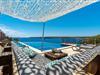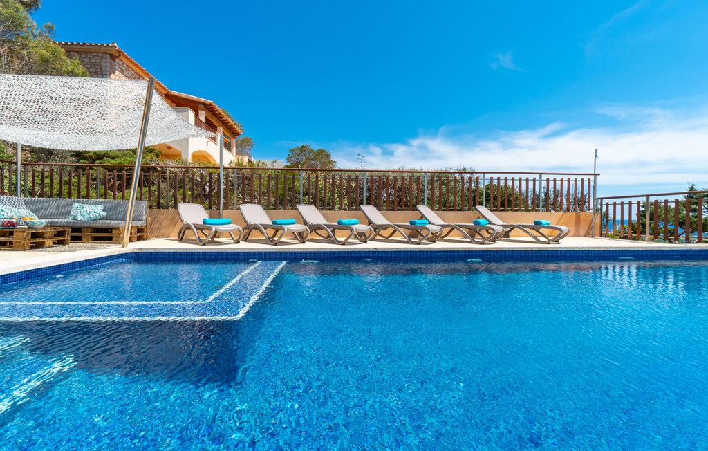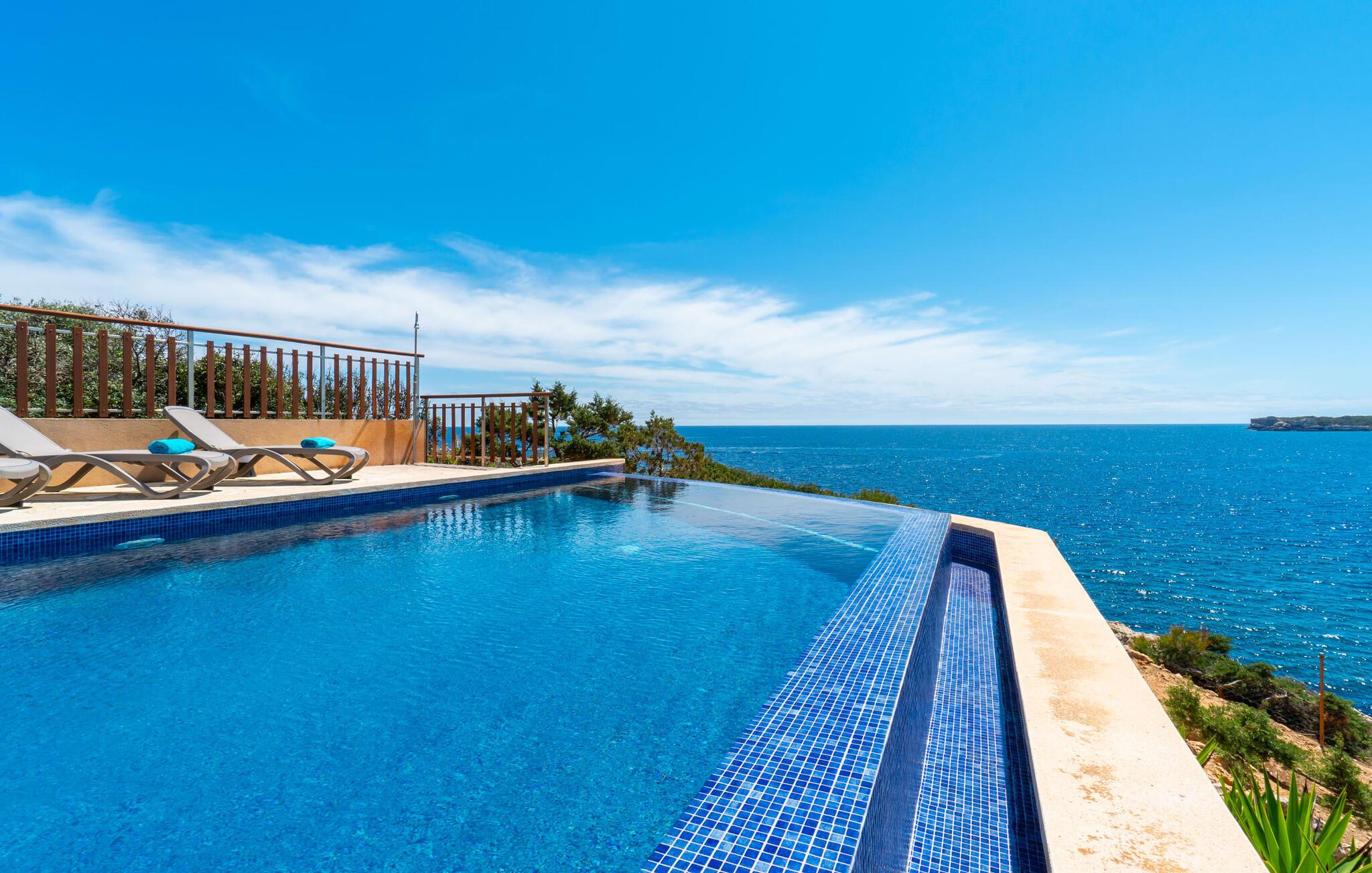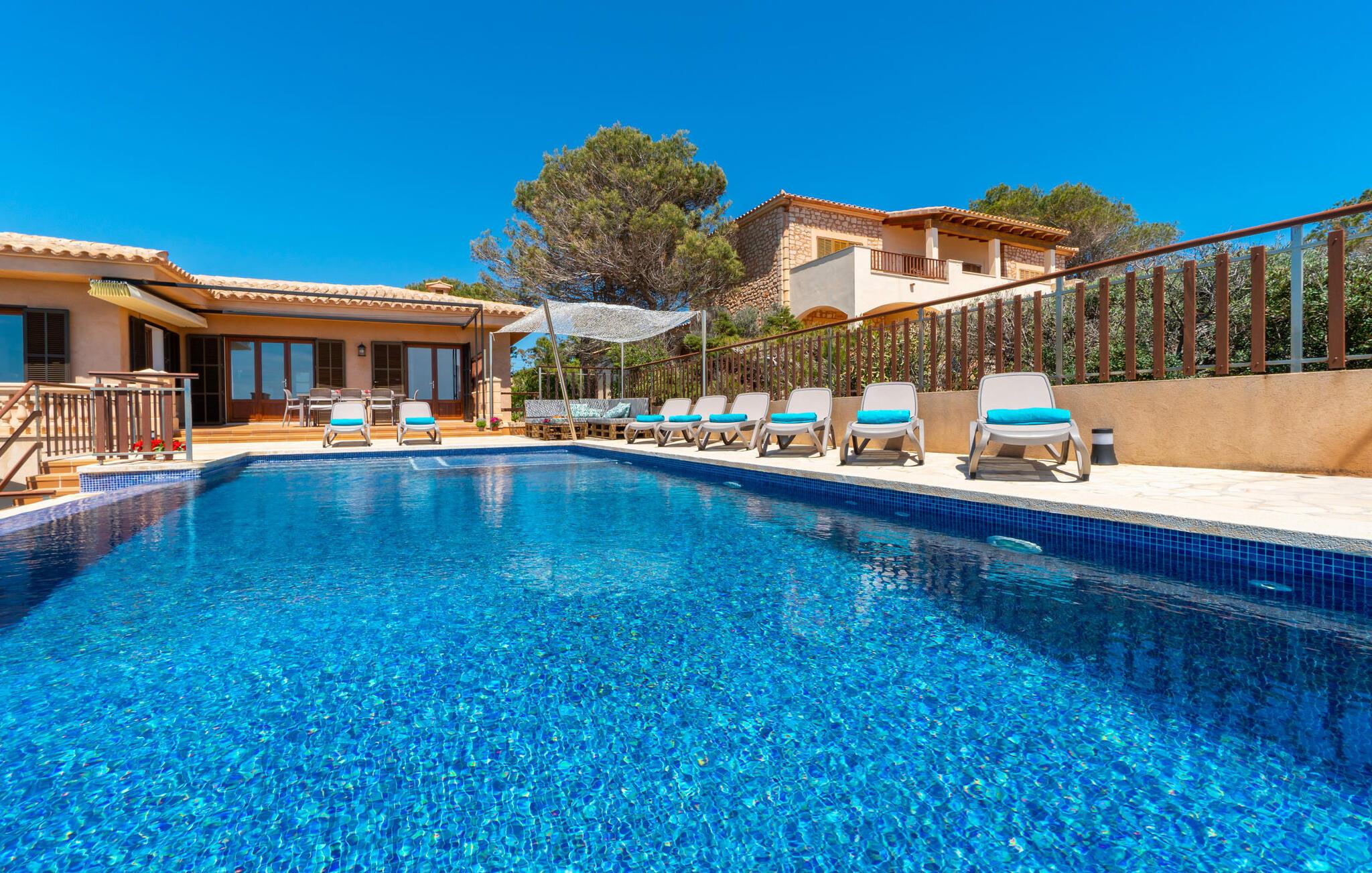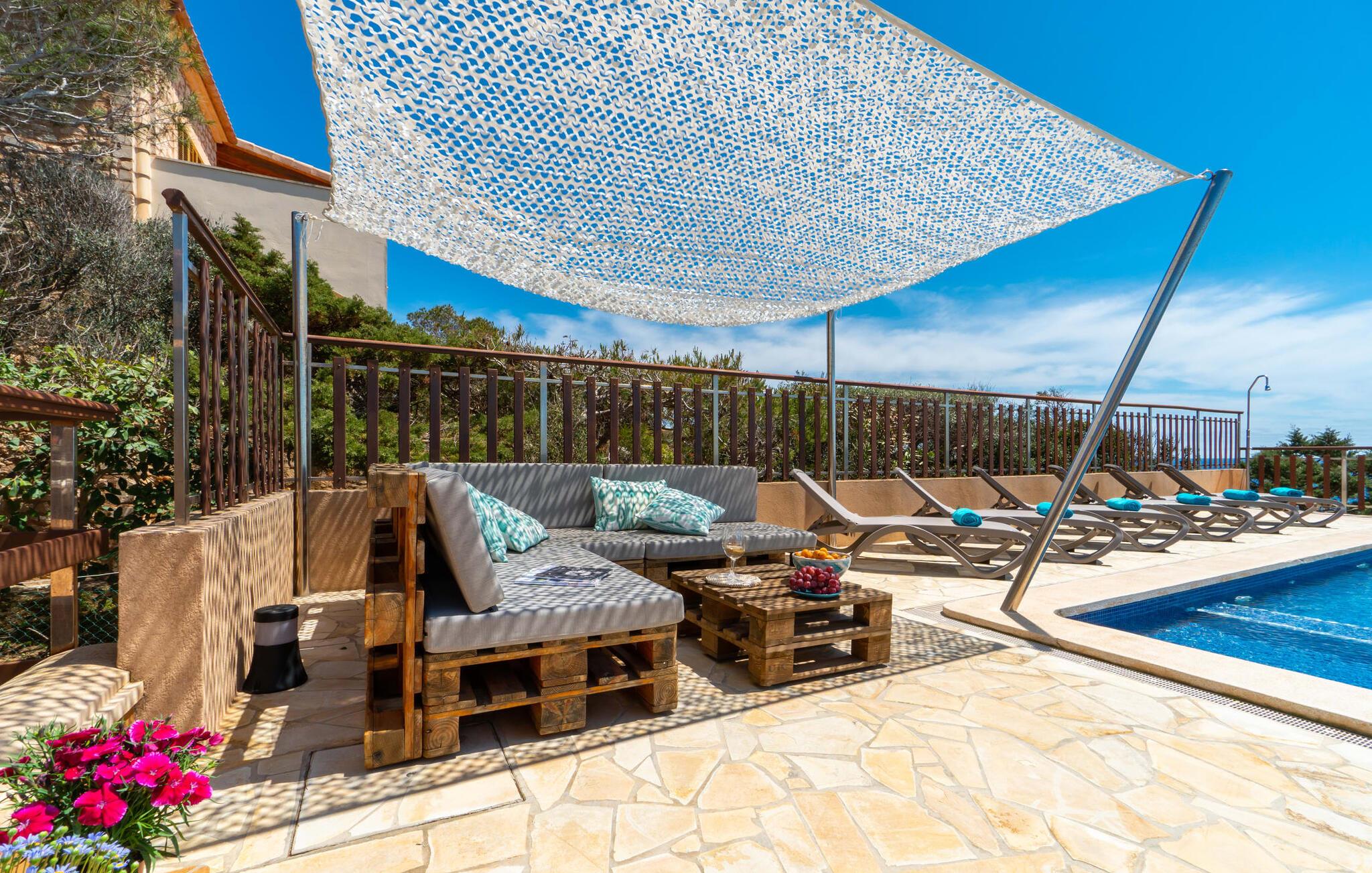 Med sit slående navn refererer den drømmeagtige villa "Ses Penyes Rotges" til et bemærkelsesværdigt naturskue - fordi det ligger direkte på de berømte røde klipper i den sydlige kystsektion mellem Portopetro og Mondragó Naturpark. Som ejendom i en eksklusiv urbanisering med lidt gennemkørende trafik, nyder I godt af en virkelig førsteklasses beliggenhed med kun få naboer. En smal sti og trin hugget ind i klipperne fører jer direkte til jeres private indgang til havet. Fra sommerhuset kan I nyde den frie udsigt til det funklende blå fra morgen til aften - enten fra en af de talrige altaner eller fra de rummelige overdækkede terrassearealer, hvor I kan opleve bordtennis og grill på en helt ny måde. Den kølige infinity-pool ser ud til at flyde direkte ud i Middelhavet og sikrer eksklusiv badeglæde. For de yngre gæster er der en ekstra børnepool, der erstatter soppebassinet. På trods af placeringen over klippeklipperne er hele området behageligt grønt. Denne typiske kystflora går igen i haveområdet med fyrretræer og kaktusser. Bemærk venligst, at adgang til havet ikke kan garanteres i tilfælde af dårligt vejr eller kraftig vind og ujævn hav. Ejerne vil så ikke bygge trappen. Hvis I gerne vil selvforplejning i dette vidunderlige sommerhus, så tag til fiskerlandsbyen Portopetro eller til de ugentlige markeder i den beboelige sydlige del af øen. I kan lave mad i det fuldt udstyrede køkken med et tidløst design og servere middelhavskøkkenets delikatesser via lugen direkte i den smarte spisestue. Den lyse og rummelige rumindretning med åben stue og spiseplads samt fire rummelige soveværelser understreges af et harmonisk farvevalg. Det lyse design med grå gulvfliser er kombineret med varme trætoner. Den moderne stil kombinerer den kølige adel af en maritim villa med typisk mallorcansk pragmatisme. Takket være de fuldt klimatiserede soveværelser kan I ikke bare håbe på en kølig brise fra havet. Tre moderne badeværelser, to af dem en suite, inviterer jer til at tage et brusebad. En af dem med et dobbeltværelse kan kun nås via den spanske terrasse med et ekstra loungehjørne. Flyd væk i dette perfekte sommerhus med op til otte personer, eller vær aktiv med båd- eller kajakudlejning, tag på fisketur eller tag en dukkert i havet. Spil bordtennis eller, hvis I foretrækker noget lidt mere generøst, besøg den nærliggende tennisbane - "Ses Penyes Rotges" tilbyder jer fantastiske rammer for jeres individuelle ferie! Den eksklusive villa "Ses Penyes Rotges" med pool og talrige terrasser er en sand juvel blandt mallorcanske feriehuse. Det ligger på den første kystlinje i den sydlige del af øen nær fiskerbyen Portopetro. Beliggende på kanten af en udsøgt urbanisering, vil I nyde en spektakulær udsigt over havet. I kan gøre jeres indkøb i de omkringliggende landsbyer eller tage på udflugter til de smukkeste steder i syd som Santanyí eller Cala D'Or. For at svømme i havet går I ned ad en privat sti med et par trin til badestigen indlejret i klippen. Aircondition i soveværelserne er inkluderet i prisen, men brugen er begrænset til mellem kl. 22.00 og kl. Gebyret afregnes herefter kontant på stedet.