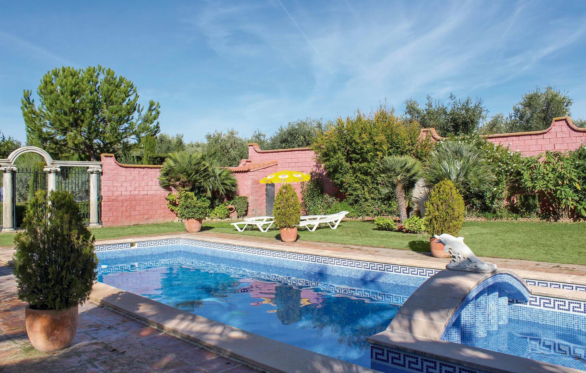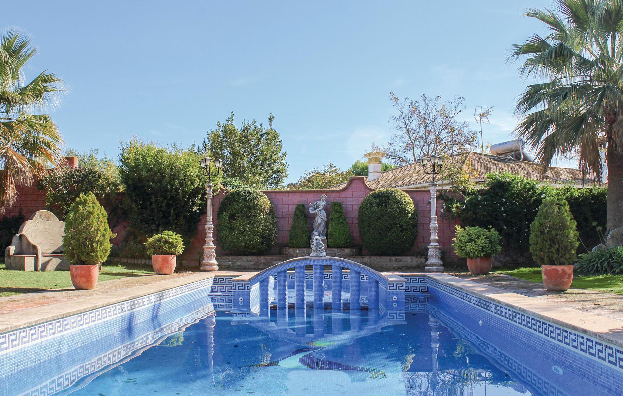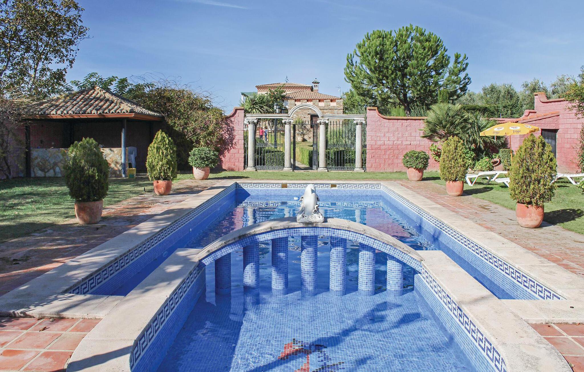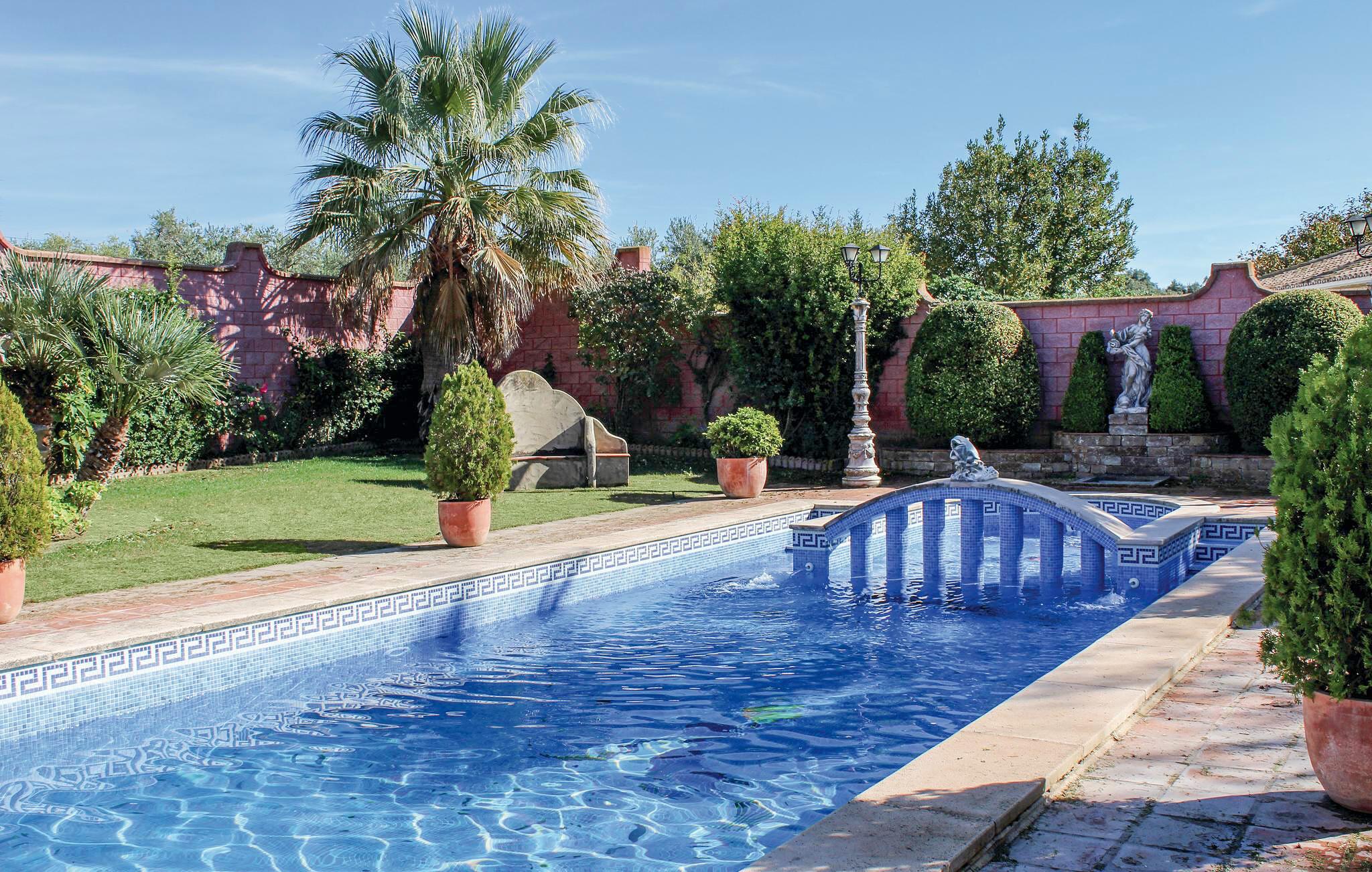 Træd ud i den store have og oplev adskillige afsidesliggende steder. Slap af ved poolens dekorative springvand og nyd forfriskende øjeblikke på varme dage. Tilbring tid på terrassen med det stilfulde spisebord, og kig ud over de velplejede græsplæner. Eller benyt jer af skyggefulde steder under træer eller arkader og se børnene lege i haveområdet med det dejlige legehus.