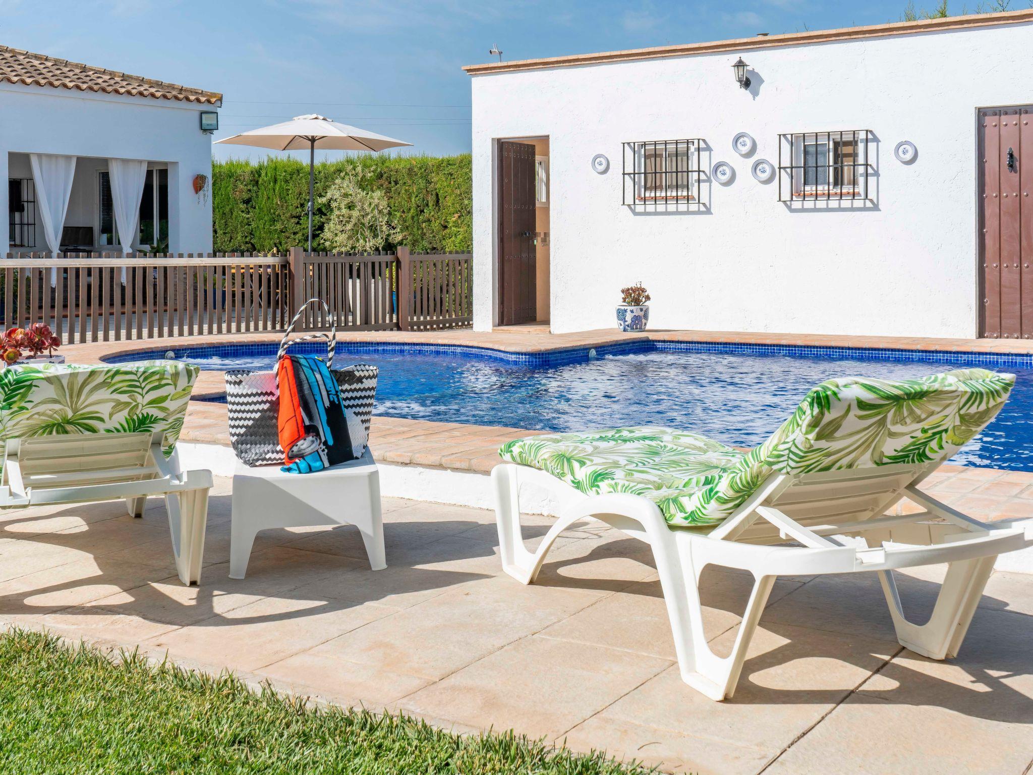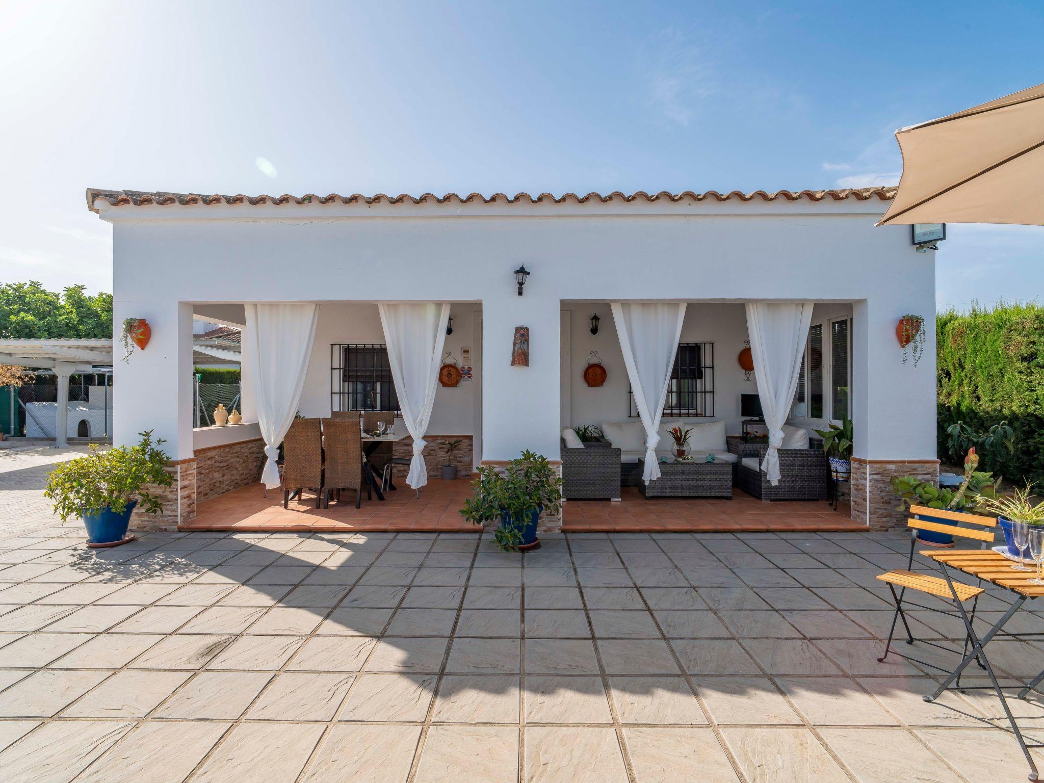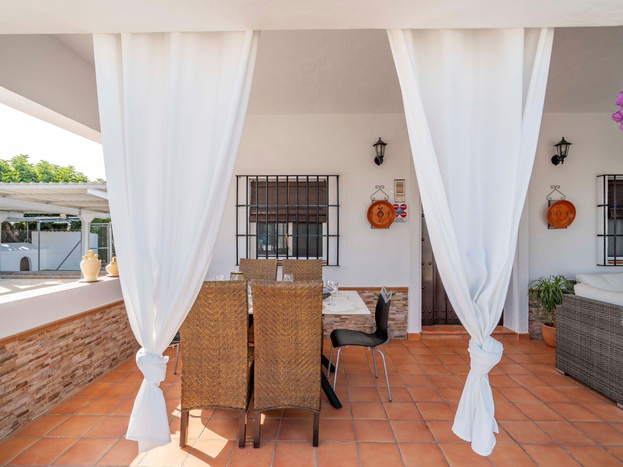 Porch 28 m2 house facing the pool with table and outdoor lounge with tv 32?.