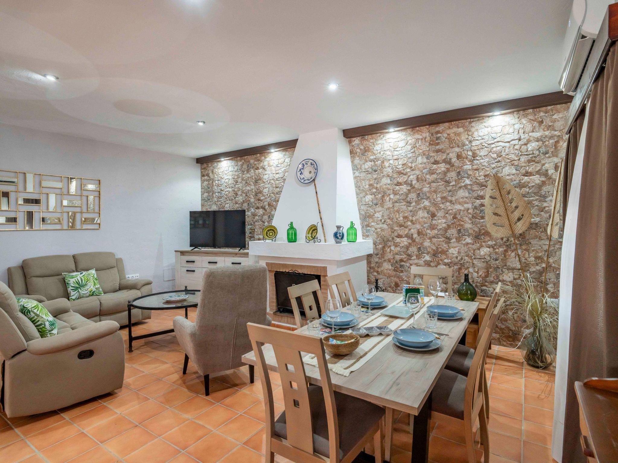 Living-dining room of 30 m2 with fireplace. sofas, air conditioning, Smart TV 65?, Wi-Fi.