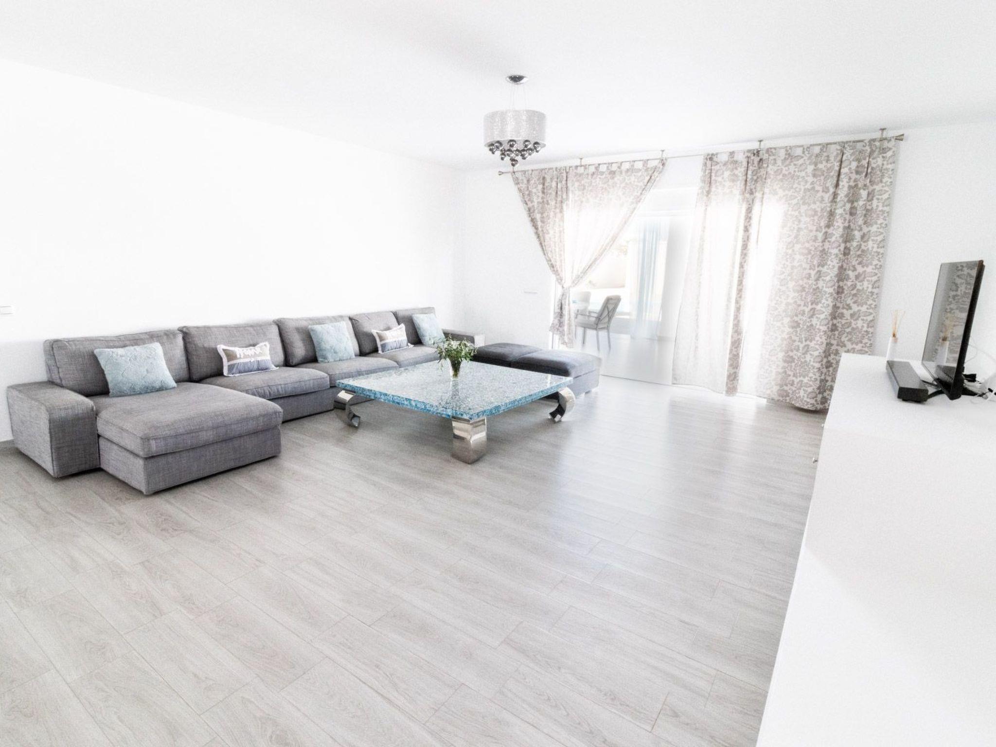 Spacious living-dining room of 80 m. with direct access to large porch and swimming pool, 50 inch TV, Wifi.
