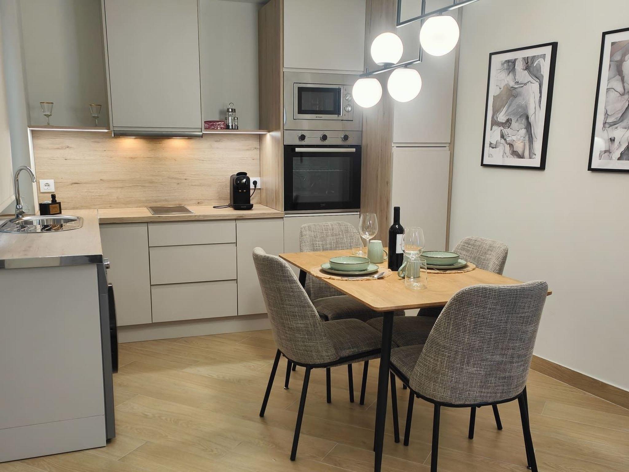 The interior of the flat is equipped with your comfort and convenience in mind. There is air conditioning in all rooms, guaranteeing a cool and pleasant atmosphere all year round. For your moments of relaxation, the living room has a Smart TV and a hydro-massage bathtub, perfect for de-stressing after a day of adventures. In addition, for your convenience, the flat offers a washing machine for your exclusive use and a kitchen equipped with a two-burner ceramic hob and a capsule coffee machine, allowing you to prepare delicious meals and coffees as if you were at home.