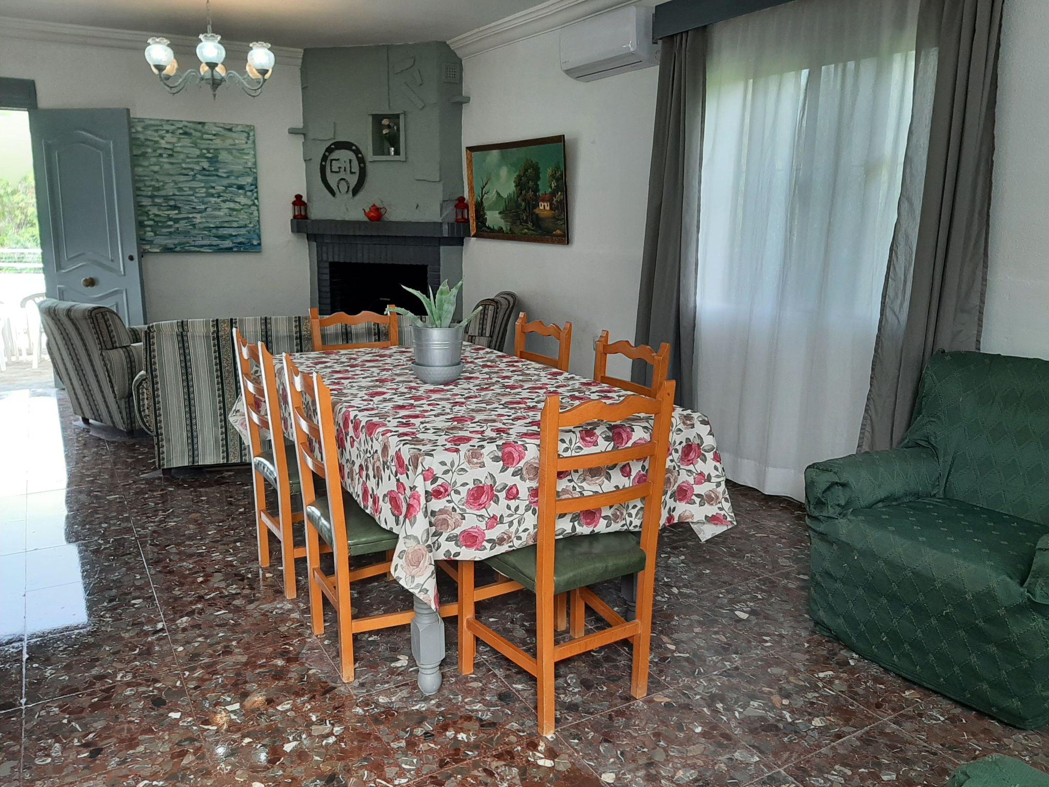 Inside, the house extends over 100 square metres, distributed in three comfortable bedrooms: one with a double bed and the other two with single beds of 90 cm. It has a spacious bathroom, a large living room with a fireplace that invites you to relax and spend time with your family, and a fully equipped open-plan kitchen. To ensure comfort in all seasons, the living room is equipped with air conditioning.
