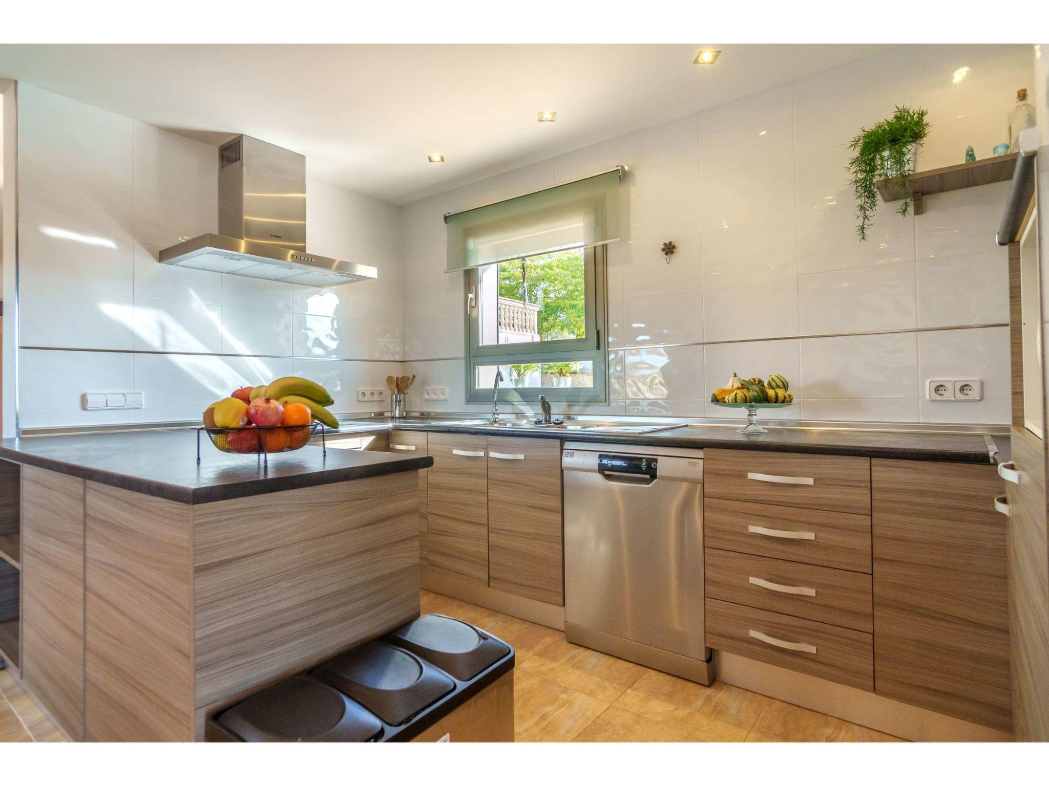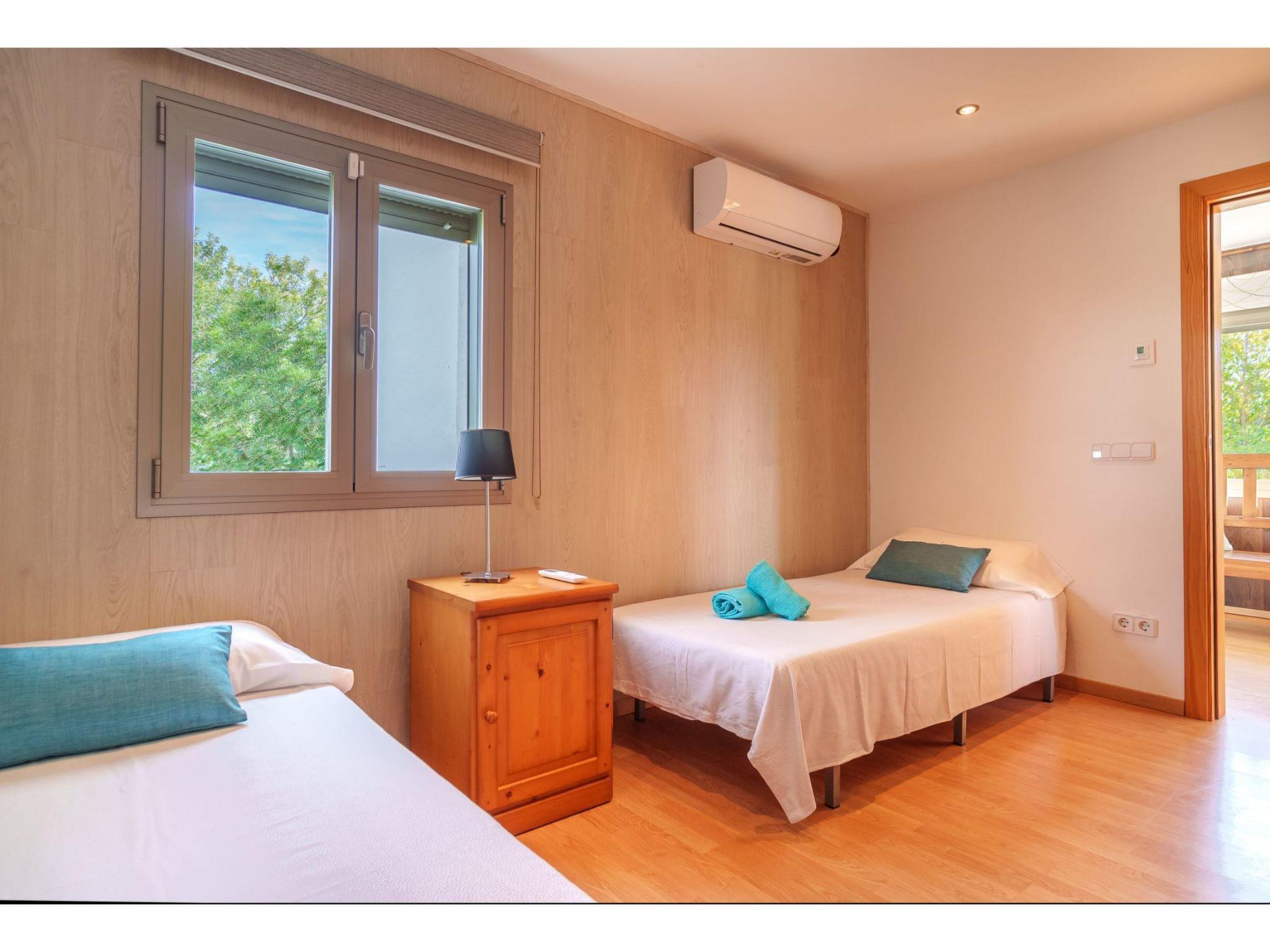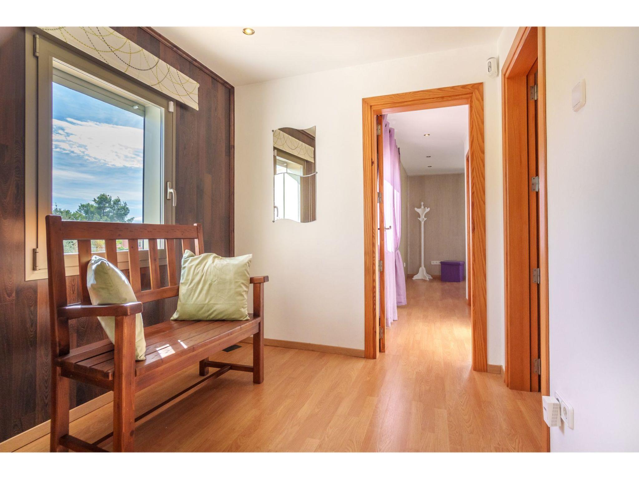 "Son Alcaines Sineu", 3-room house 150 m2 on 2 levels, north-west facing position. Object suitable for 4 adults. Bright, comfortable and beautiful furnishings: living/dining room with digital TV, international TV channels and air conditioning. Exit to the terrace, to the swimming pool. Kitchen-/living room (oven, dishwasher, 1 ceramic glass hob hotplate, 4 gas rings, toaster, kettle, microwave, electric coffee machine) with dining table, digital TV, international TV channels and air conditioning. Exit to the terrace, to the swimming pool. Shower/WC. Electric heating. Upper floor: 1 large double bedroom with panoramic window with 1 french bed (1 x 150 cm, length 190 cm), shower/WC, digital TV, international TV channels and air conditioning. 1 double bedroom with panoramic window with 2 beds (90 cm, length 190 cm), shower/WC, digital TV, international TV channels and air conditioning. Terrace furniture, barbecue (portable), deck chairs (4), covered balcony. Panoramic view of the swimming pool. Facilities: washing machine, iron, children's high chair, baby cot for up to 2 year olds, hair dryer. Internet (WiFi, free). Suitable for families. The pool mentioned in the description is for private use. ETV5345 // Reg. Nr.: ESFCTU000007011000585377000000000000000000000ETV53450