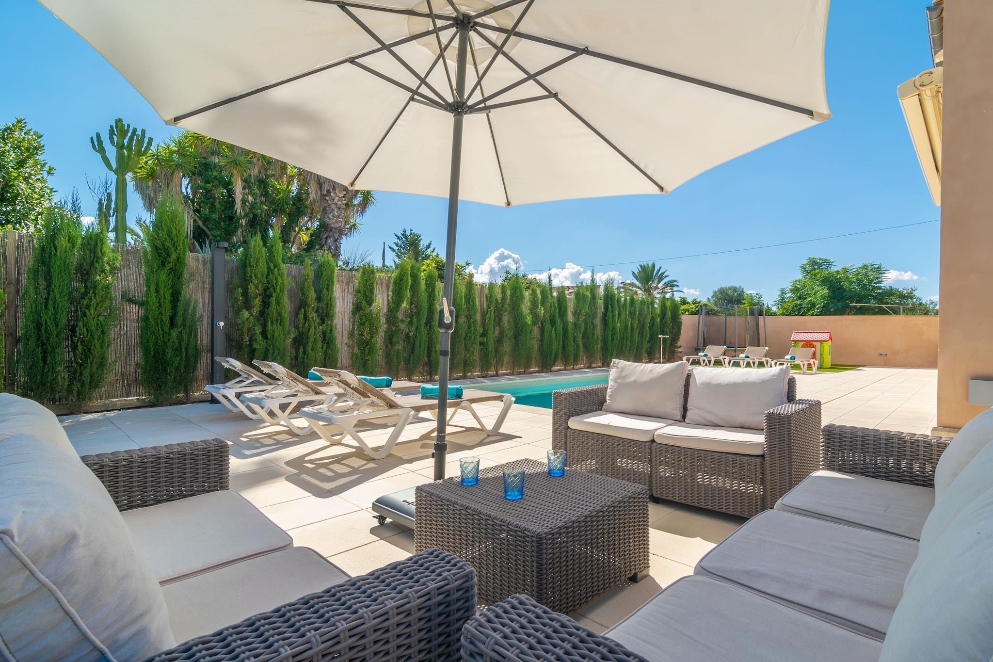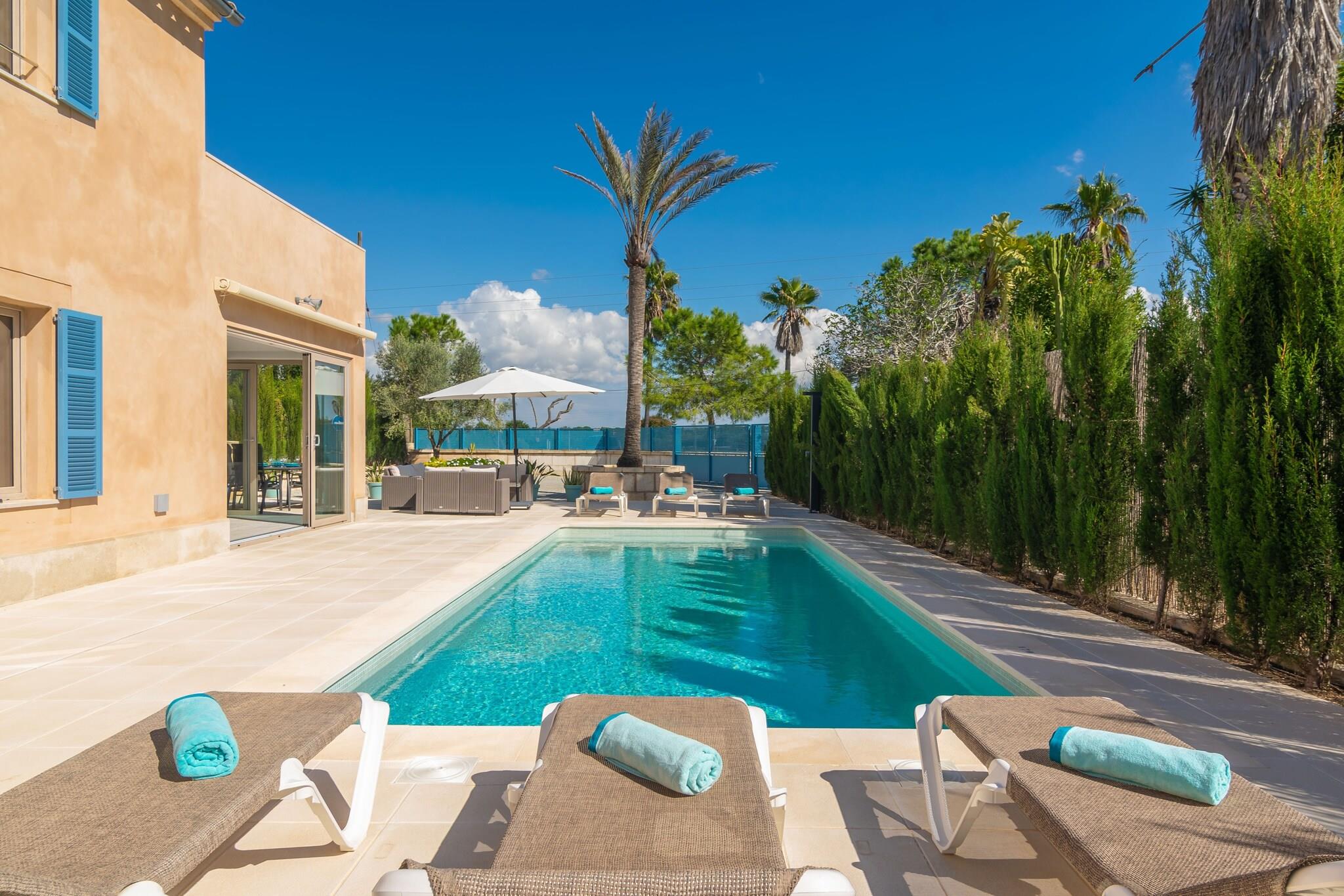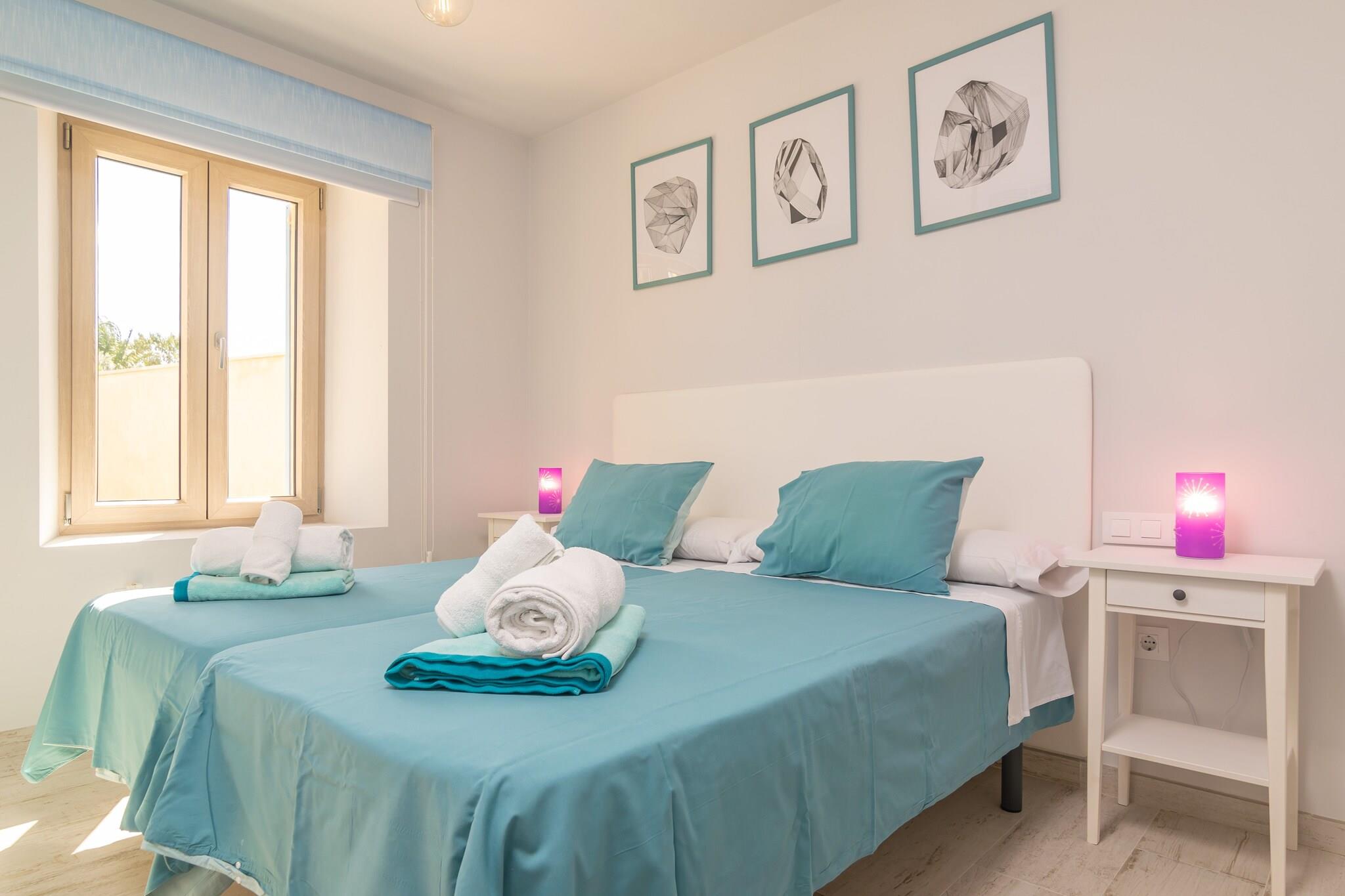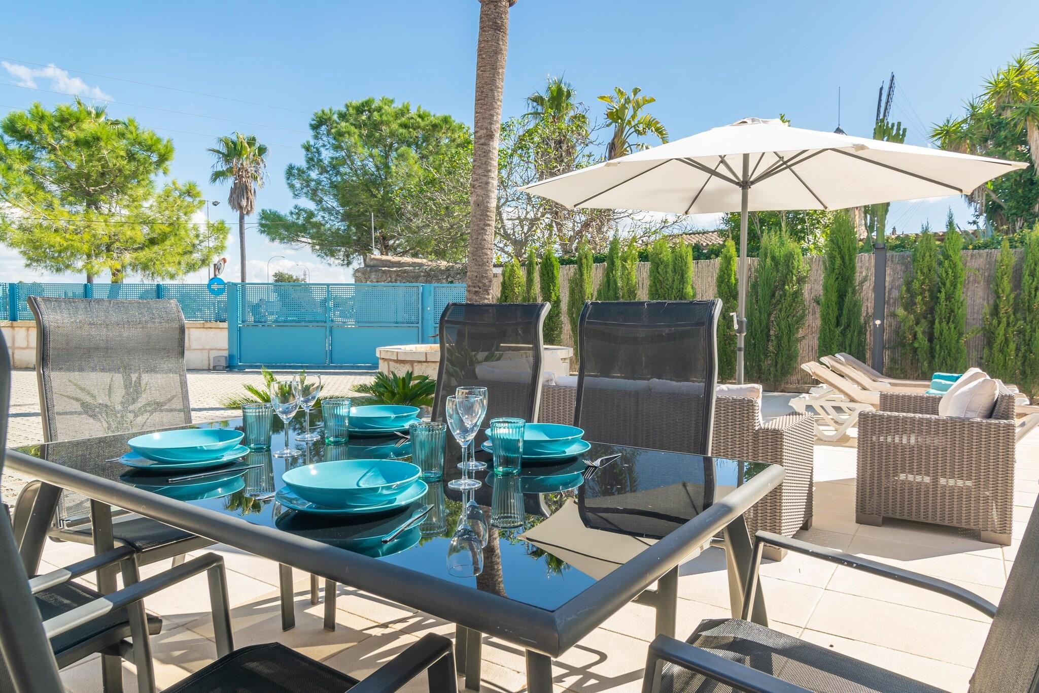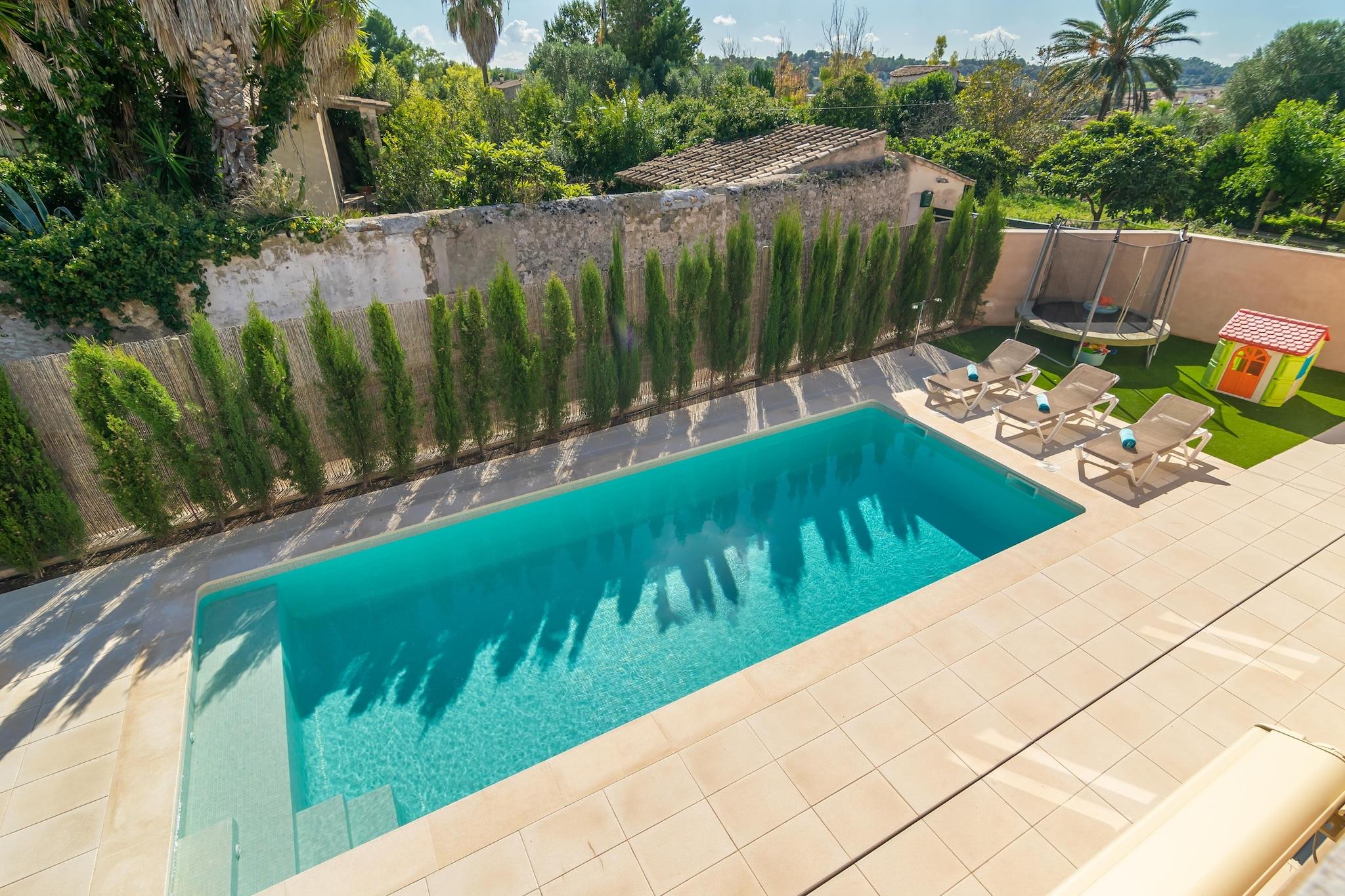 Tilbring dine dage med at nyde saltvandspoolen, der strækker sig 9x3 meter med liggestole indstillet til afslapning. Den indhegnede have har også et skyggefuldt opholdsområde, udendørs spisning med grill og et legehjørne for børn. Uanset om det er en stille eftermiddag ved poolen eller et familiemåltid udendørs, er rummene designet til at gøre dit ophold behageligt. Med naboer i nærheden tilbyder ejendommen et indbydende landsbymiljø, mens man holder privatlivets fred i tankerne. Den to-etagers villa blander moderne design med traditionelle mallorcanske detaljer. En lys spiseplads med glas fører ind i det fuldt udstyrede køkken og opholdsstue i åbent plan, komplet med satellit-tv og aircondition. Med tre soveværelser - hver med to enkeltsenge og aircondition - plus tre badeværelser, rummer hjemmet grupper med lethed. Et soveværelse og badeværelse er i stueetagen, tilgængelige for gæster med mobilitetsbehov, mens værelserne ovenpå har en-suite badeværelser og adgang til en solrig terrasse. Essentials såsom en vaskemaskine, barneseng og høj stol er også til rådighed. Beliggende kun 900 m fra centrum af Sineu, giver villaen dig adgang til en af ??Mallorcas mest autentiske byer. Sineu er berømt for sit onsdagsmarked og er også hjemsted for lokale restauranter, caféer og butikker inden for gåafstand. For en dag ved kysten er Can Picafort-stranden mindre end 20 km væk, mens cykelentusiaster vil sætte pris på villaens cykelrum og områdets naturskønne ruter.