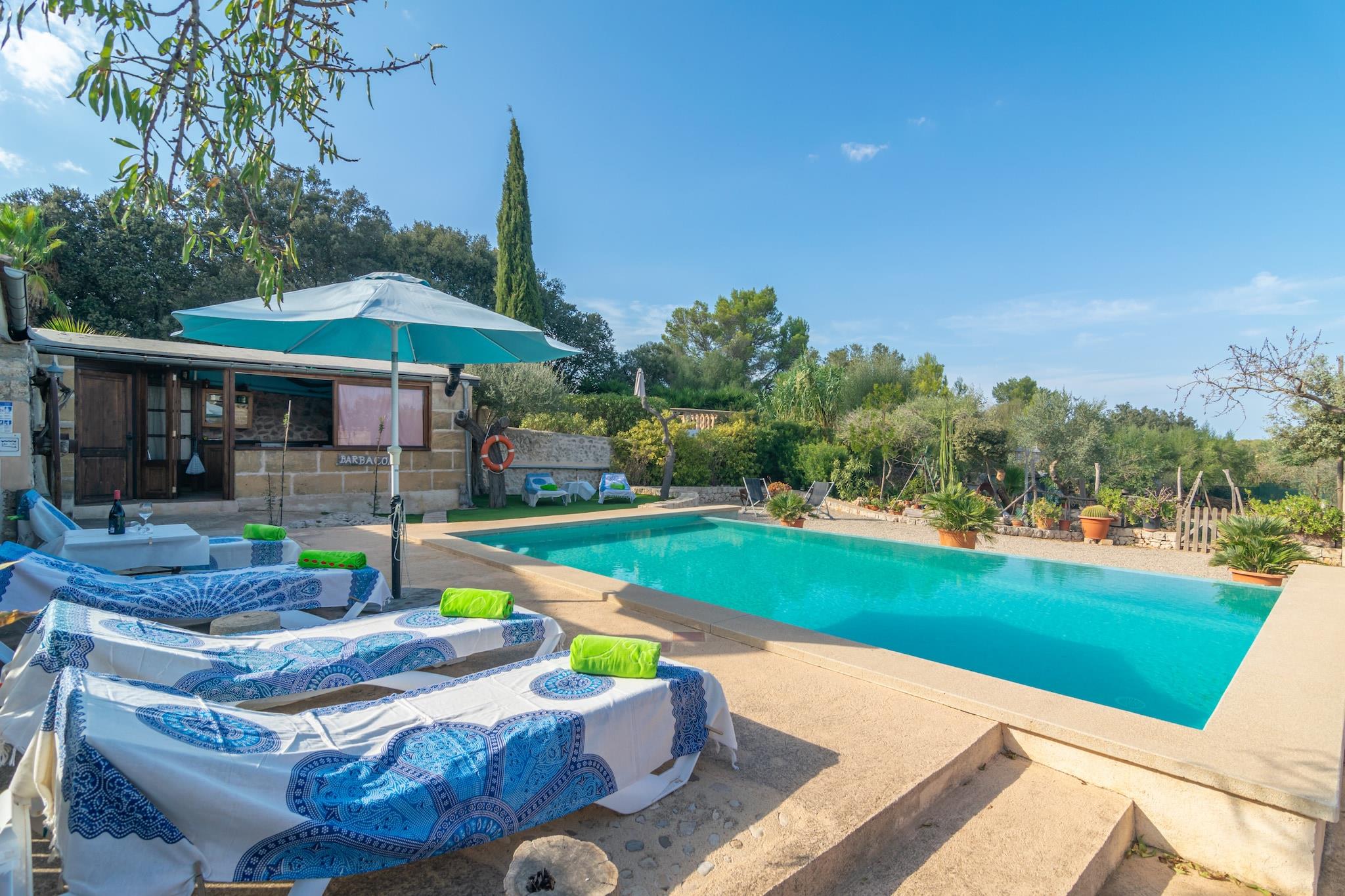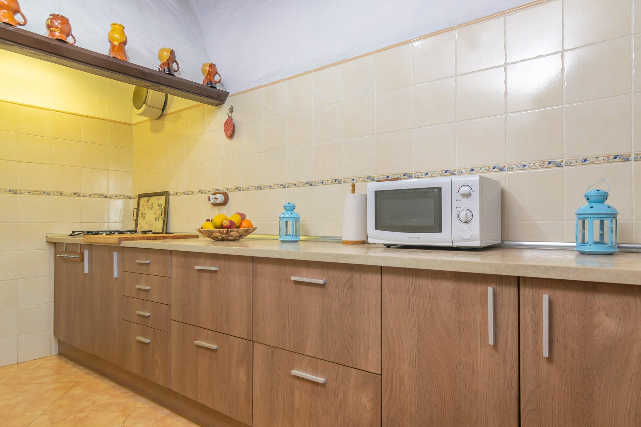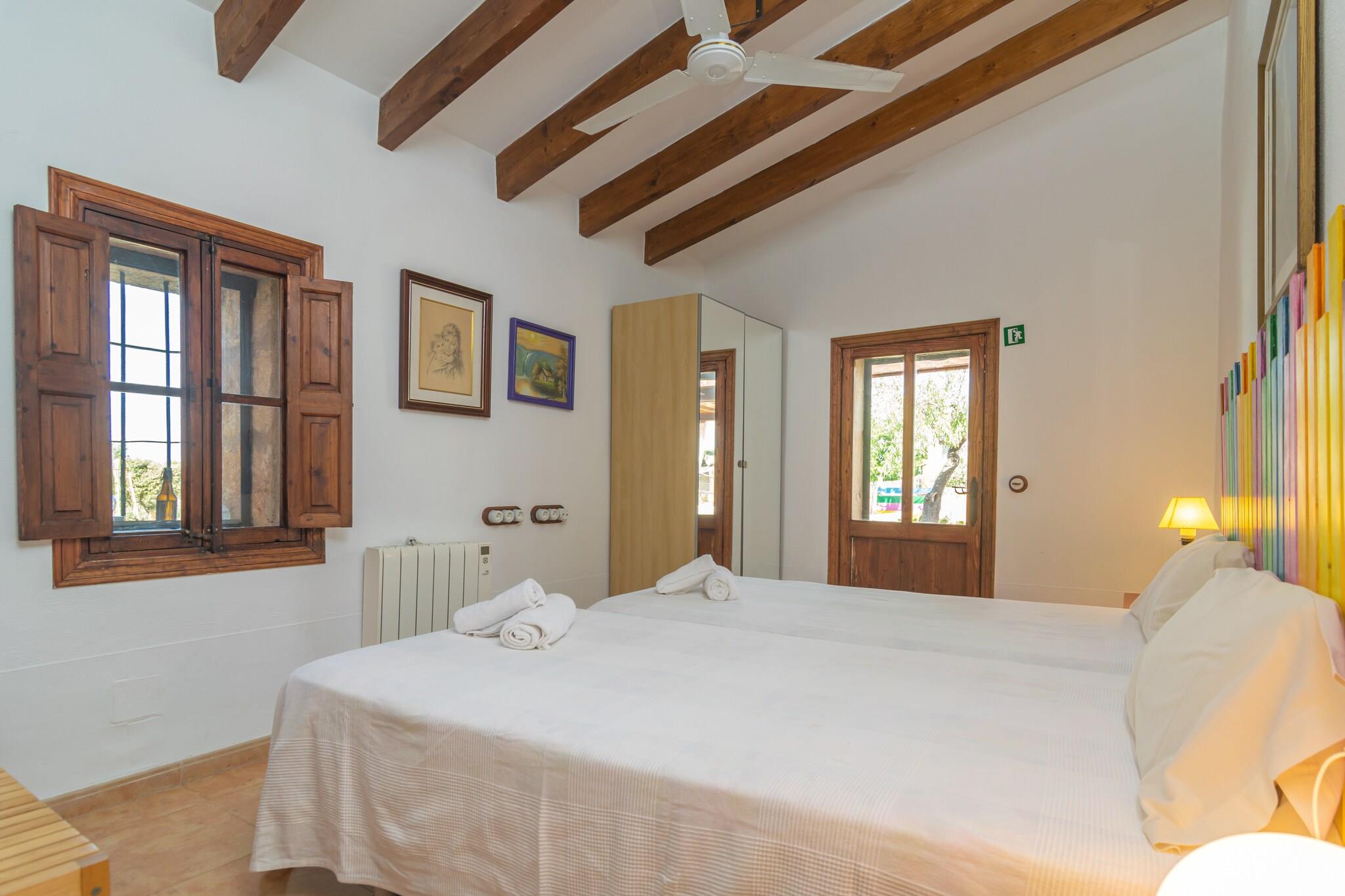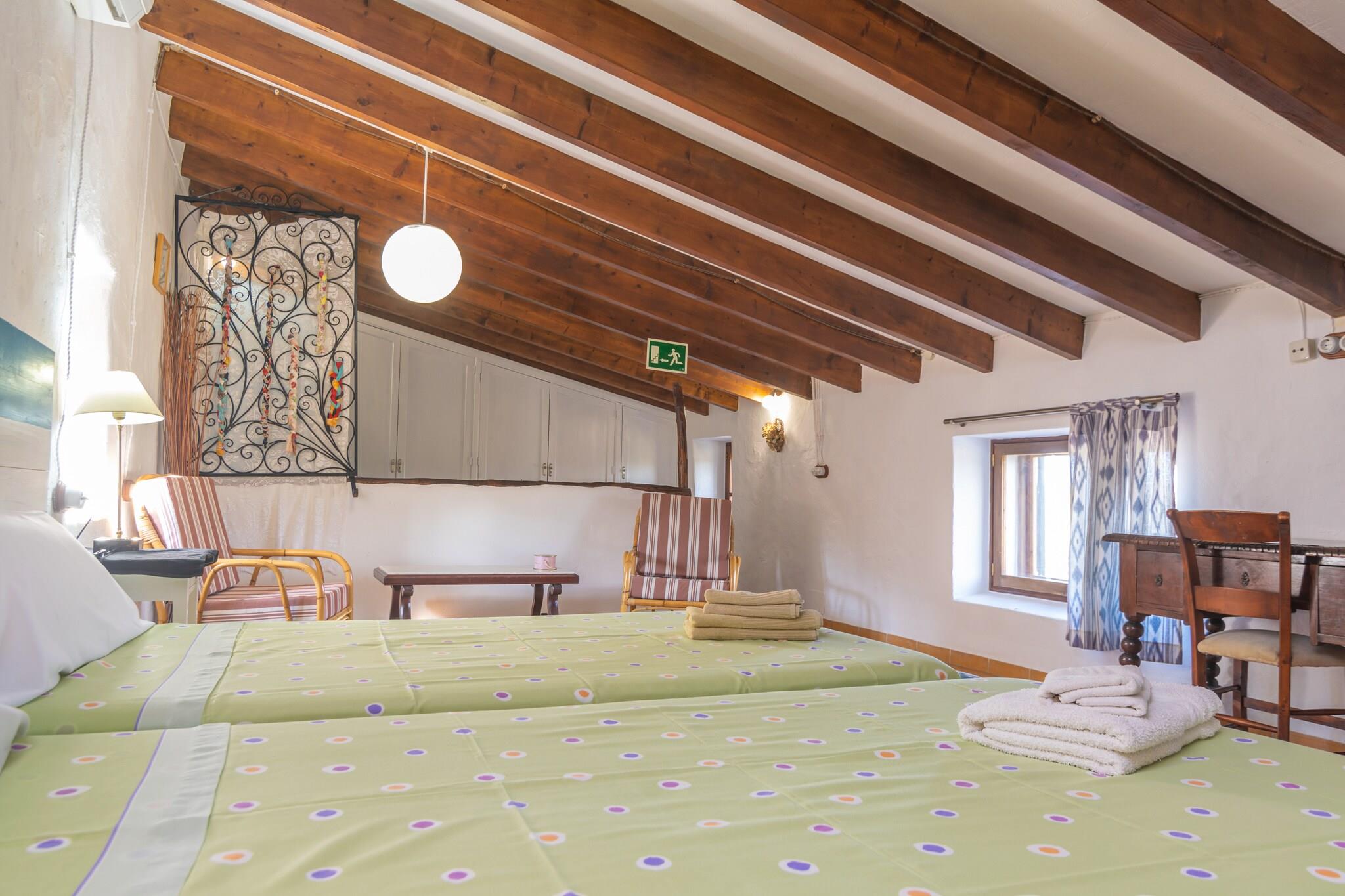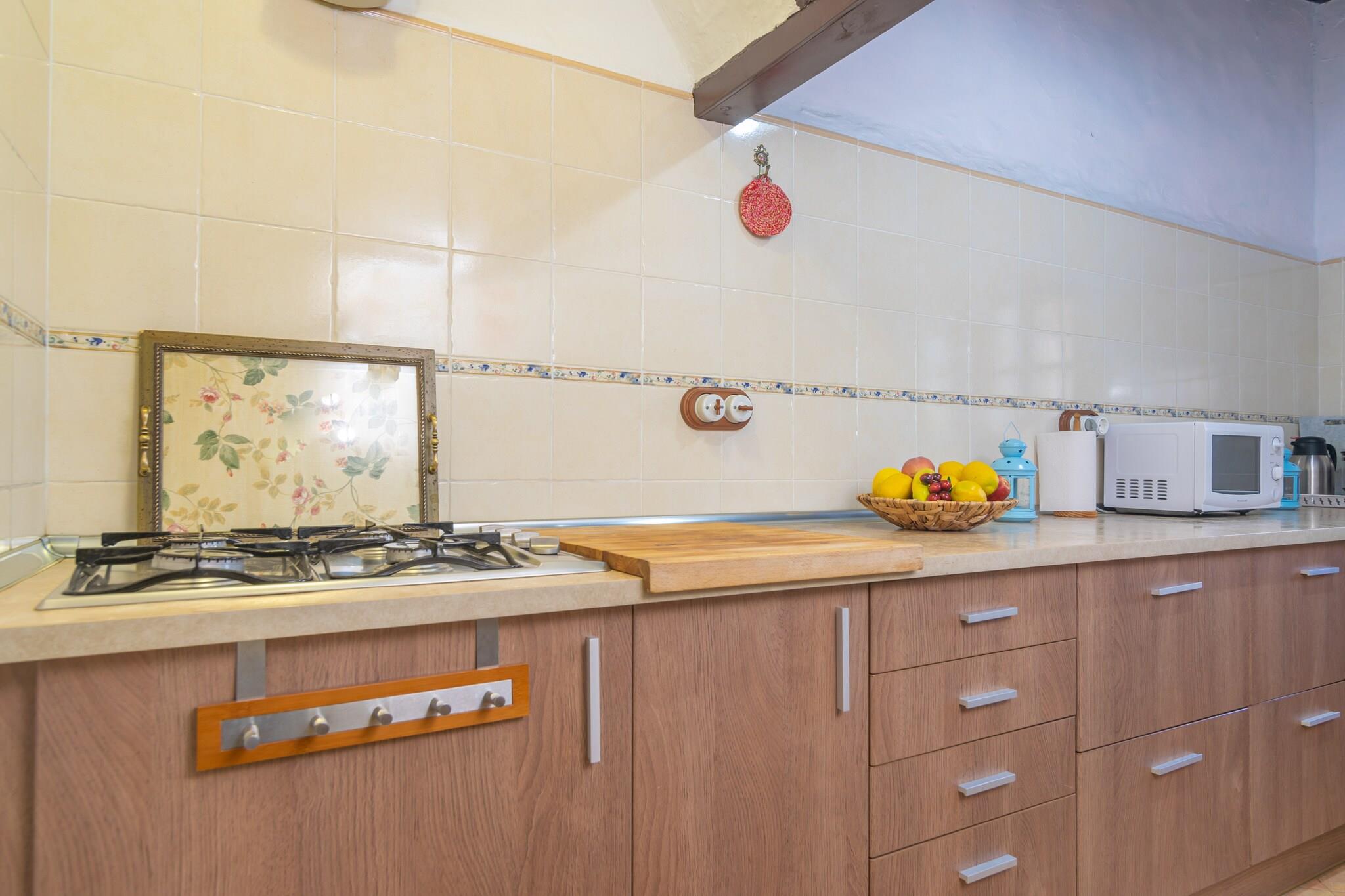 Denne charmerende villa i to etager har en saltvandspool omgivet af seks liggestole, en terrasse og et grillområde med gaskomfur, to ovne og brændeovn - ideel til udendørs måltider. Haven er foret med citron- og appelsintræer, der tilbyder et roligt sted at slappe af eller nyde middelhavsbrisen. To verandaer giver yderligere plads til samtale eller læsning. Indvendigt bevarer villaen sin mallorcanske karakter med stenvægge og træbjælker, mens moderne bekvemmeligheder omfatter soveværelser med aircondition, pilleovn, satellit-tv og fuldt udstyret køkken. Vaskefaciliteter, barneseng, høj stol og radiatorer sikrer et behageligt ophold. Parkering til tre biler er tilgængelig. Kæledyr er ikke tilladt, og arrangementer er forbudt. Inden for et par minutters gang kan du nå centrum af Sineu, hvor vandre- eller cykelture gennem de omkringliggende hvedemarker venter. Udforsk nabobyer som Maria de la Salut, Lloret de Vista Alegre og Llubí for lokal charme. Golfentusiaster kan spille på Son Gual 14,7 km derfra. Strande, herunder Puerto de Alcúdia, Ca'n Picafort og Puerto de Pollença, er inden for 30 minutter i bil til sol og sand. Sineu tilbyder traditionelle mallorcanske retter på lokale restauranter og "celler" sammen med friske råvarer på det ugentlige onsdagsmarked. Oplev autentiske smagsoplevelser, lokale vine og afslappet landsbyspisning, hvilket gør området ideelt til kulinarisk udforskning, mens du bor i villaen.