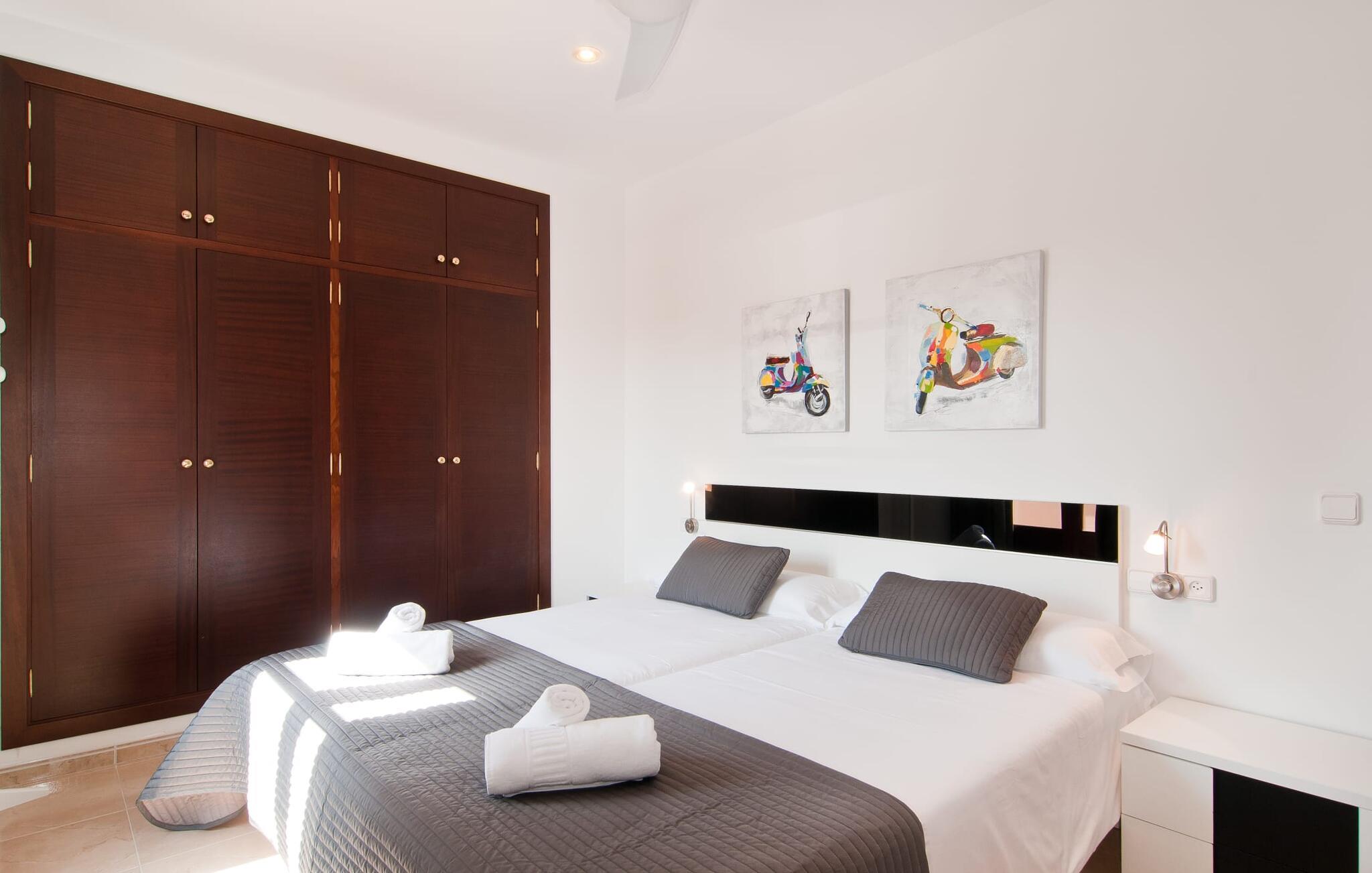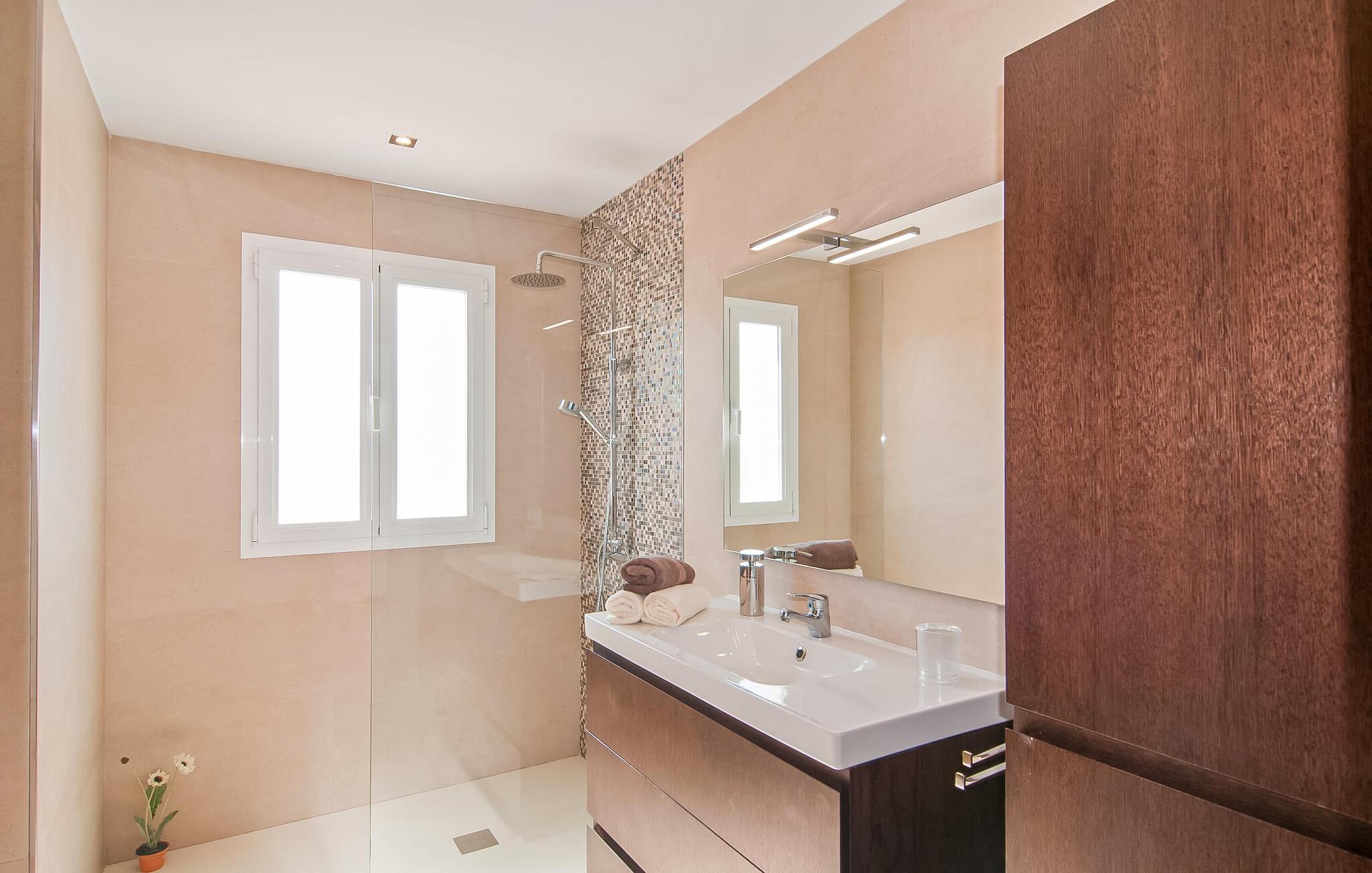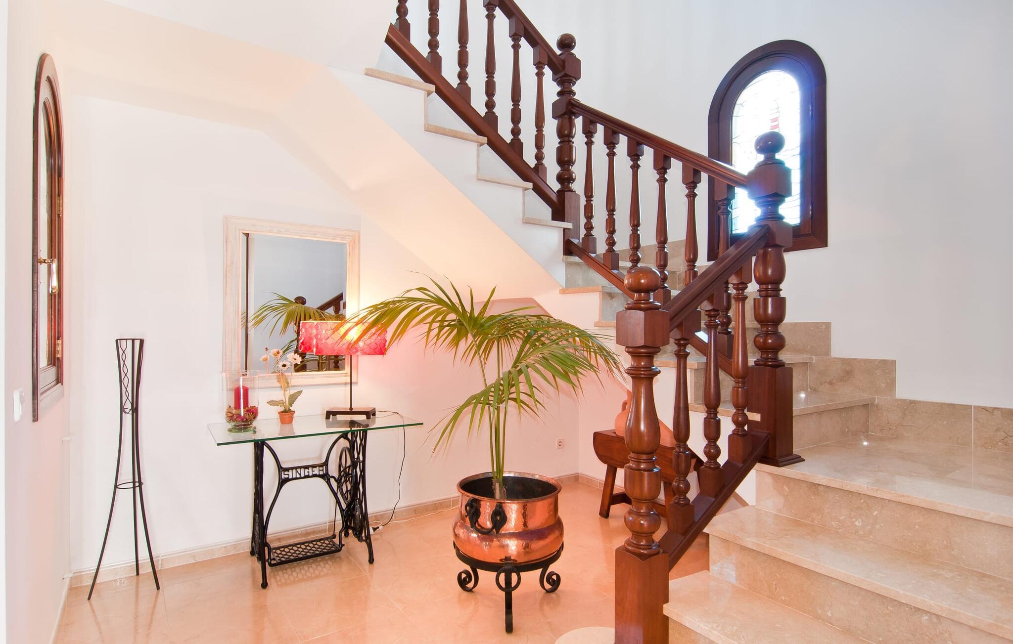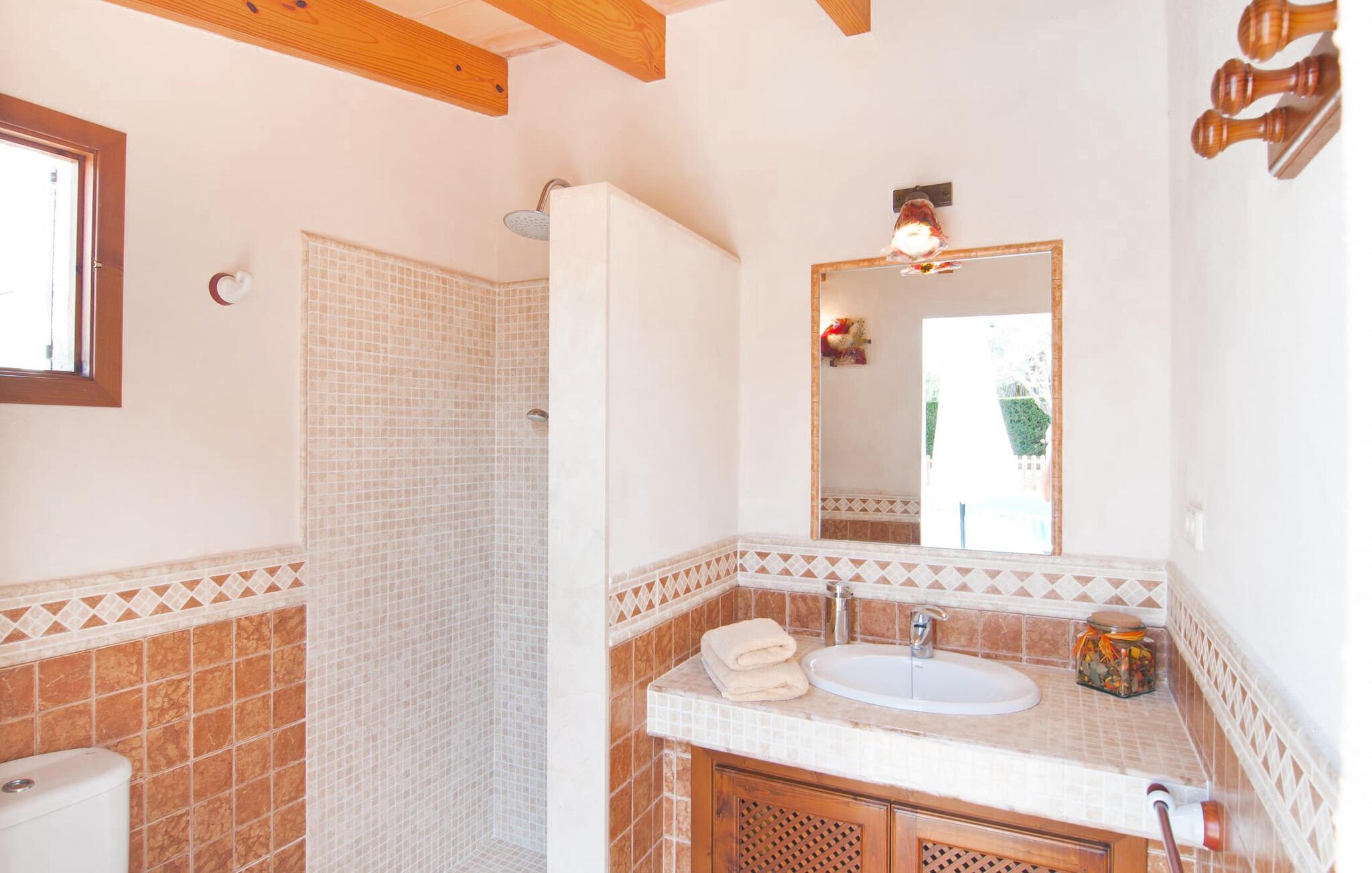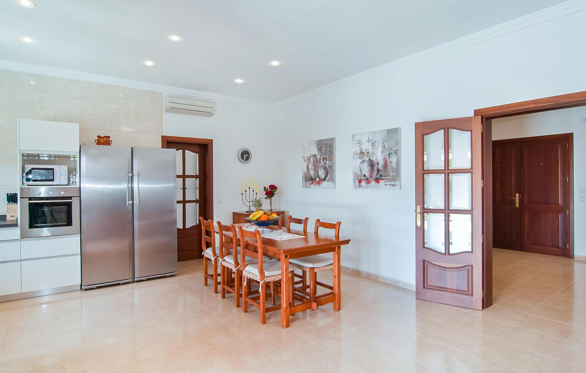 Villa "Sofia" er et charmerende, familievenligt tilflugtssted. Ved ankomsten bliver I mødt af to store bukser, mens en stille vej fører næsten direkte til huset til aflæsning og parkering. Den store græsplæne omkranser villaen og giver et skønt legeområde, mens et plankeværk sikrer poolen og sikrer tryghed. Nyd udendørslivet på den store skyggefulde veranda med en moderne elektrisk grill. Inde i villaen er der et lyst, moderne køkken med et langt spisebord, ideelt til sammenkomster. Den hyggelige stue byder på en rustik charme, mens tre elegant indrettede soveværelser deler badeværelse. Et ekstra soveværelse og badeværelse er placeret i stueetagen, hvilket gør det til et alsidigt rum for familier. Den smukke “Sofia” ligger nær strand og indkøbsmuligheder, midt i en rolig bebyggelse i Sa Coma. Beliggende på østkysten - mellem det sofistikerede Cala Millor og det maleriske Porto Cristo med dens havn og interessante kalkstensgrotter. To strande, Reserva Africa Safari Park og vidunderlige vandremuligheder på Punta de n'Amer-halvøen er i umiddelbar nærhed, og den nærmeste købmand er heller ikke langt væk. Elektricitet er inkluderet i prisen, hvis den anvendes hensigtsmæssigt. Gebyret afregnes herefter kontant på stedet. Bemærk venligst, at denne ejendom ikke accepterer ungdomsgrupper eller polterabender. En ungdomsgruppe på denne ejendom består af personer på 25 år eller derunder. Book ikke denne ejendom, hvis I er en ungdomsgruppe eller polterabend, da jeres reservation vil blive afvist, når den er booket, hvilket også kan være tilfældet ved ankomst til ejendommen eller under jeres ophold, og I vil ikke modtage en refusion