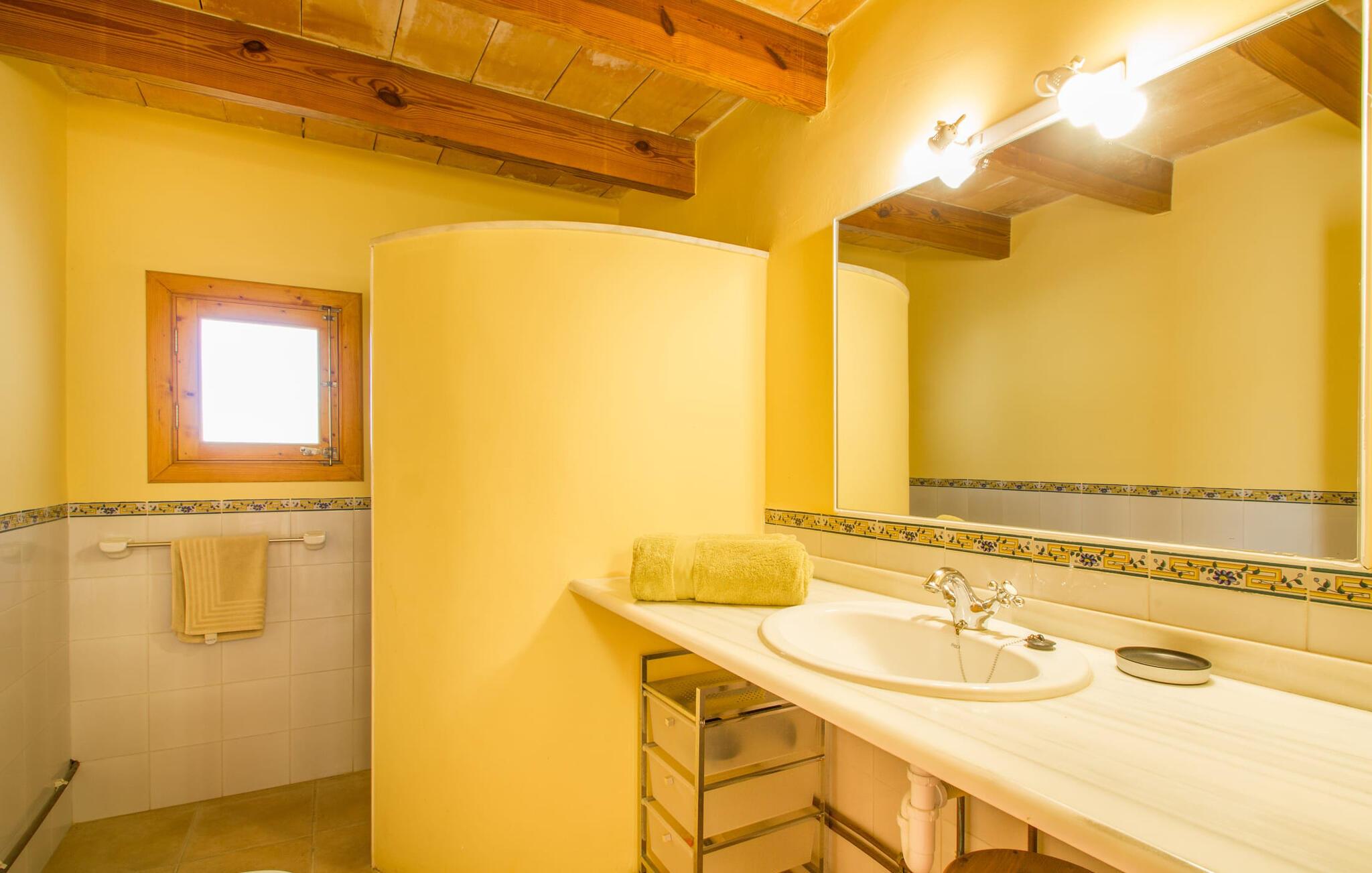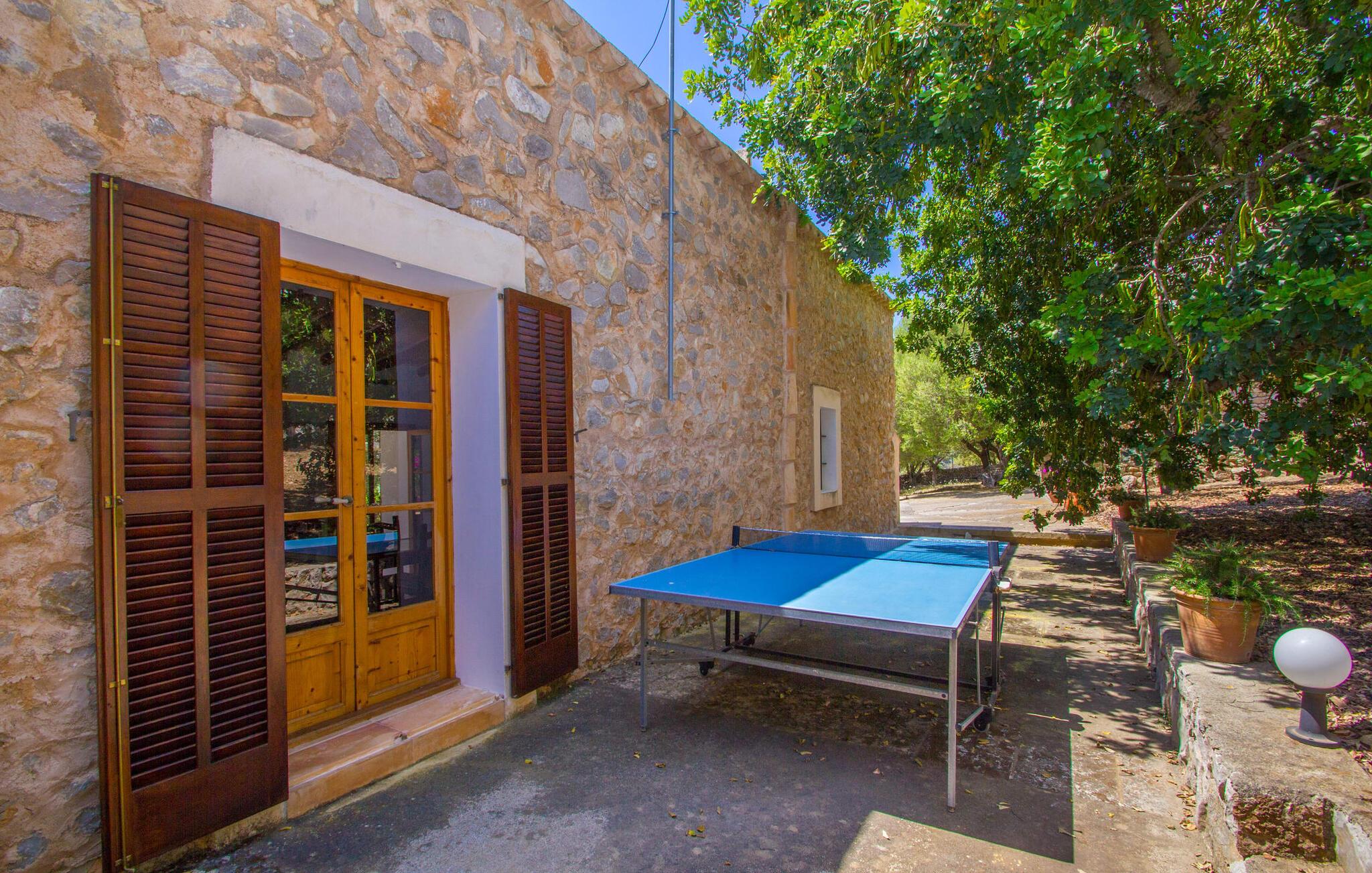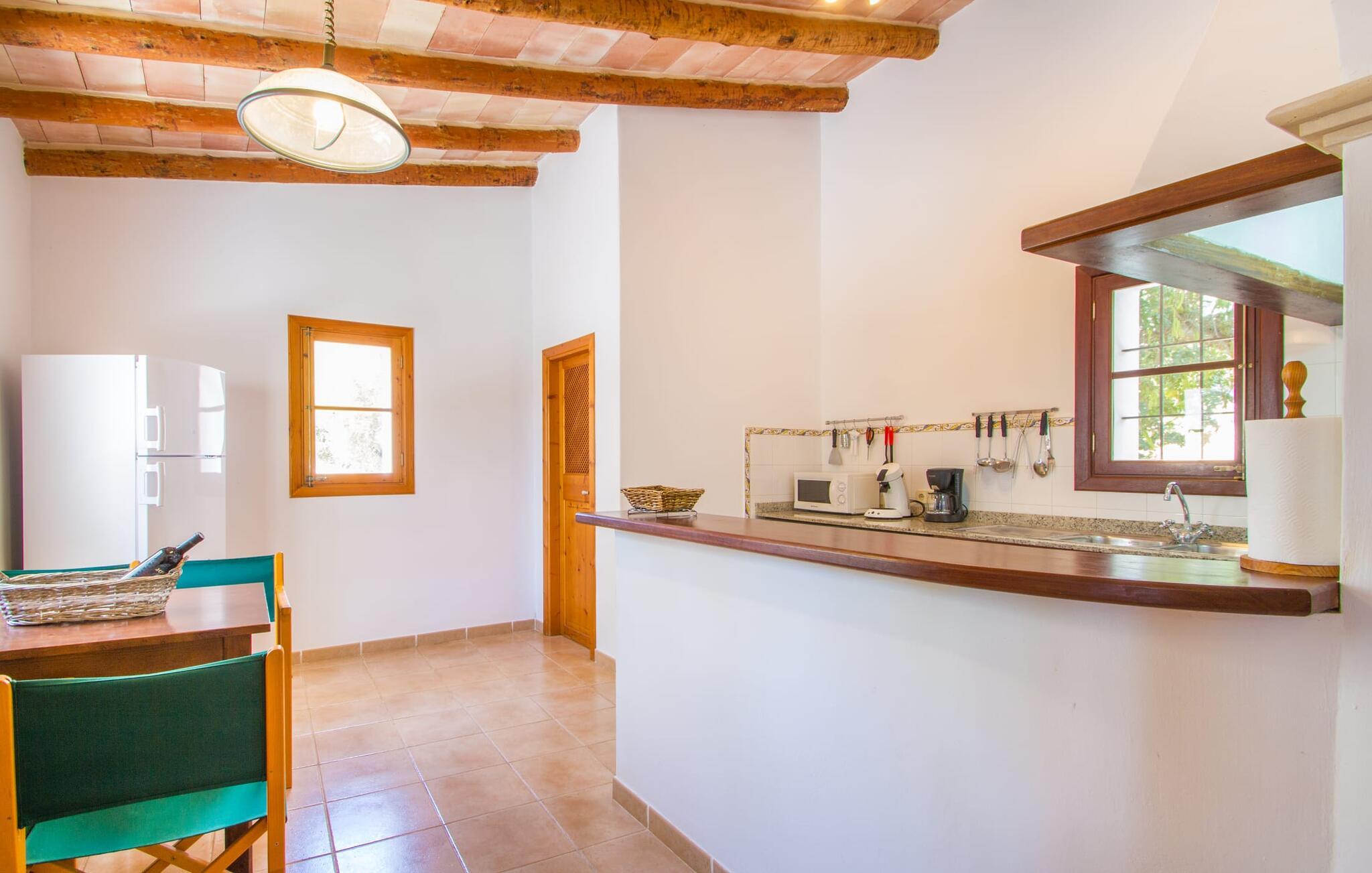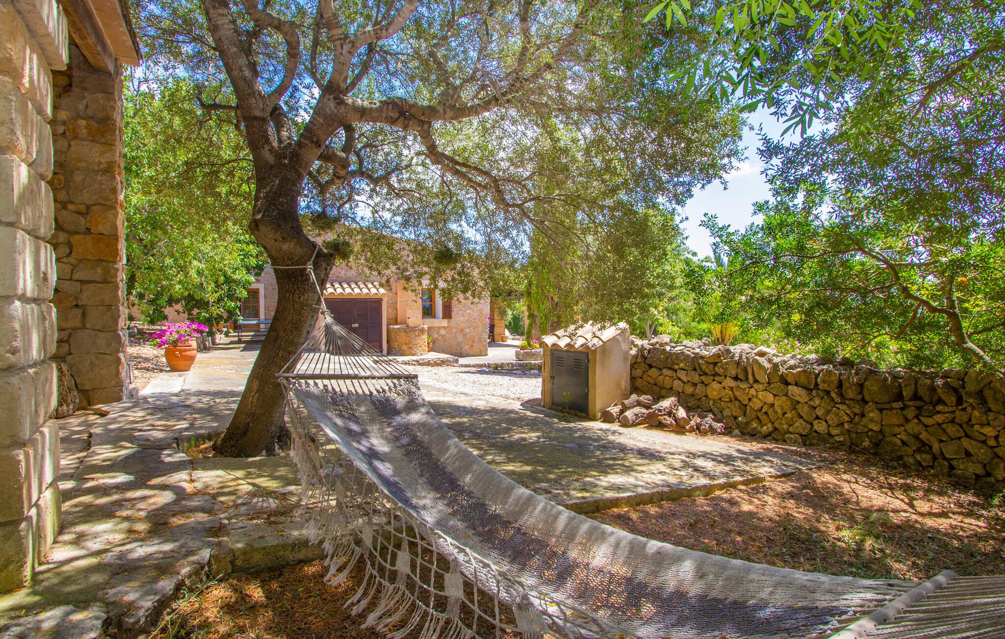 Den lille charmerende villa "Son Barbot de Can Robi Nou" ligger på en 70.000 m² stor grund, der er helt indhegnet. En pool lige ved siden af huset sikrer en afslappende familieferie, men også en stor loungesofa på den overdækkede terrasse, en hængekøje til afslapning og et bordtennisbord. Uanset om det er endeløs badesjov i den 7 x 5 m store pool med udendørs bruser eller slapper af i solen på en af de komfortable liggestole - her kommer I med garanti i feriestemning. Særlig smuk er den vide udsigt over de bølgende bakker og brede marker i det maleriske landskab helt ud til havet; Om aftenen bader den nedgående sol omgivelserne i et magisk lys. I kan tilberede lækre lækkerier på en BBQ, som I kan spise sammen ved det store spisebord på terrassen. Hele haven er en oase af afslapning: Gamle træer og ejendommens mangfoldige, farverige planter gør jeres villa til et sted, hvor I kan slappe af. Villaen, der er bygget helt i ét plan, strækker sig over 124 m² boligareal. Det lyse, åbne opholds- og spiseområde er indrettet i rustik mallorcansk stil: varme farver, masser af træ og moderne kunst på væggene - med stor sans for detaljer har nogen skabt et tilflugtssted for at byde deres besøgende velkommen. Et fuldt udstyret køkken med ovn, keramisk kogeplade, vaskemaskine, opvaskemaskine, elkedel, kaffemaskine, brødrister og mikroovn byder på alt, hvad I behøver for straks at føle jer hjemme. I kan sidde i en behagelig sofa ved den åbne pejs; Et stort spisebord udgør midten af rummet. Hvert af de to soveværelser med aircondition har sit eget badeværelse, hvoraf det ene er en-suite og tilgængeligt via en lille trappe. Det ene soveværelse har en 1,80 x 2,00 m dobbeltseng, det andet værelse har to enkeltsenge. De moderne, dagslysfyldte badeværelser er udstyret med rummelige håndvaske og store spejle. Der er også et brusekabine eller brusebad. Huset har et pengeskab til jeres værdigenstande. Placeringen af denne bolig er perfekt for feriegæster, der ønsker at udforske de mange facetter af øen væk fra masseturismen. Beliggende nær den lille by Sant Llorenc des Cardassar, er villaen idyllisk omgivet af olivenlunde, figentræer, dværgpalmer og rosmarinbuske: vi er beliggende i en frugtbar slette i Llevant-bjergene, som strækker sig over den østlige del af øen . Området omkring jeres villa byder på fantastiske muligheder for vandreture, cykling, golf og vandsport. Den gode forbindelse til det mallorcanske vejnet muliggør korte afstande til kystbyernes smukke strande og maleriske bugter. Udforsk for eksempel den fantastiske Cala Romantica, Cala Varques omgivet af klipper eller den fine sandstrand ved Costa dels Pins. Der er talrige shoppingmuligheder i de nærliggende byer Artà og Manacor. I Sant Llorenc er restauranten Es Pati blevet et mødested for gourmeter. Hver torsdag er der et lille gastromarked i byen. Et besøg i havnen i Porto Cristo kan også varmt anbefales. Dette er Mallorca for feinschmeckere! Uden for den slagne vej ligger denne lille perle nær den drømmende by Sant Llorenç des Cardassar på den østlige del af øen. I en landlig beliggenhed, men perfekt forbundet med transportnettet, kan I udforske de mange smukke strande og bugter på østkysten fra jeres villa. Fordyb jer i den mallorcanske livsstil og oplev de historiske byer Artà og Manacor med deres farverige markeder, udsøgte butikker og caféer, som bestemt er et besøg værd.