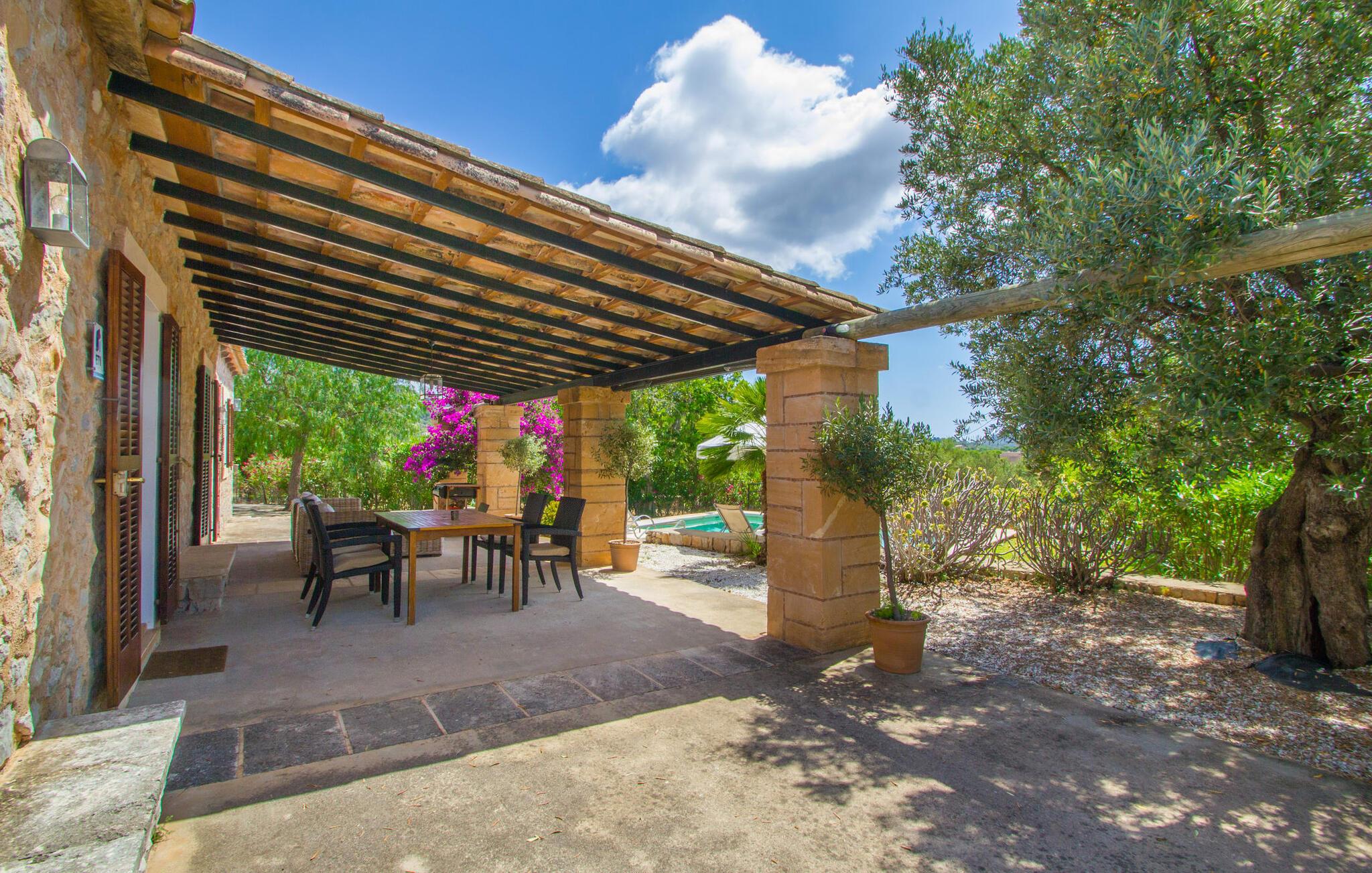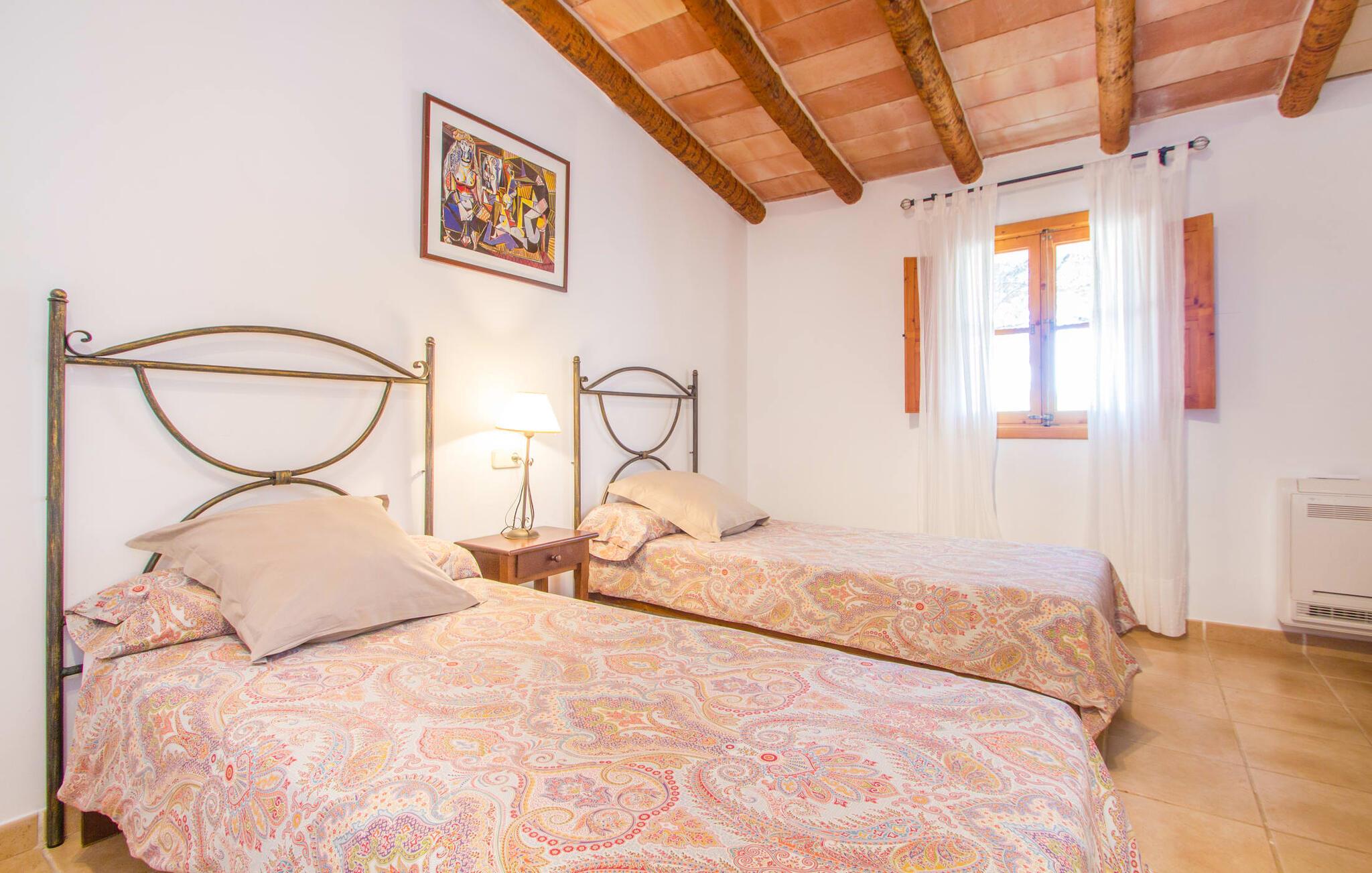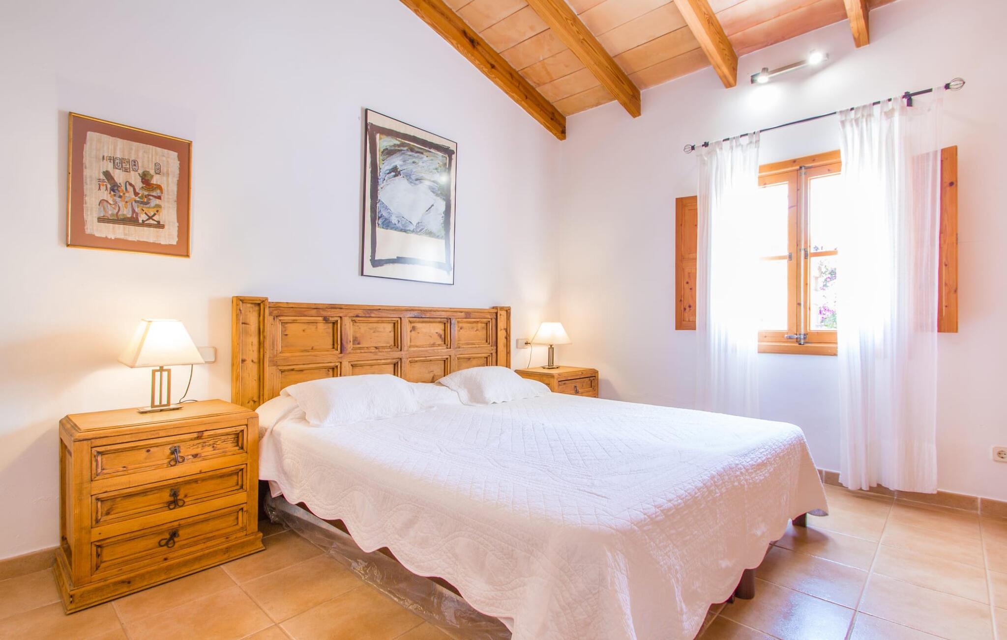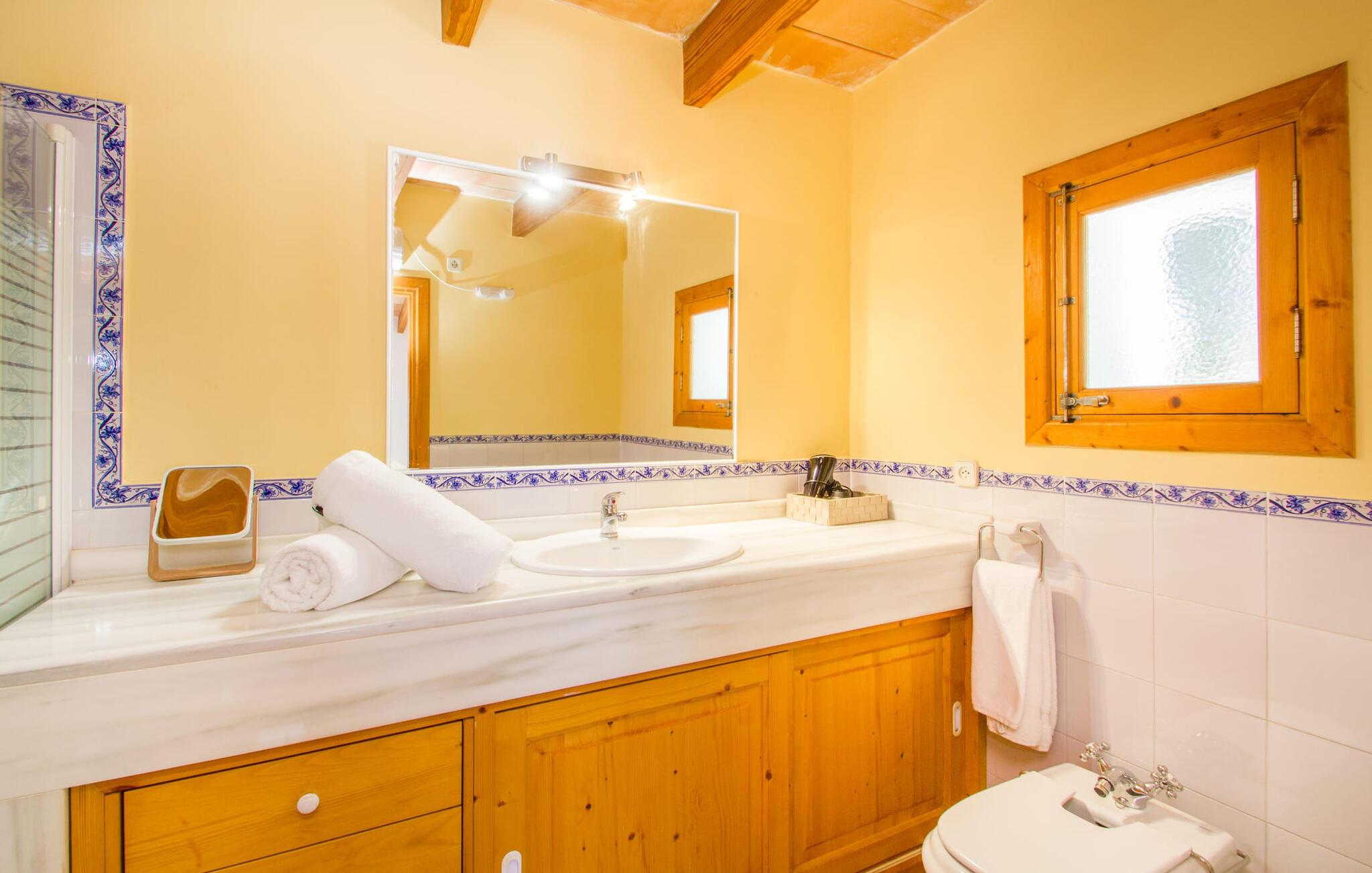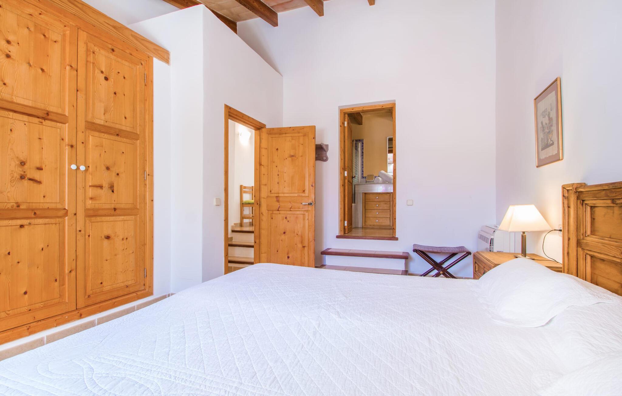 Den lille charmerende villa "Son Barbot de Can Robi Nou" ligger på en 70.000 m² stor grund, der er helt indhegnet. En pool lige ved siden af huset sikrer en afslappende familieferie, men også en stor loungesofa på den overdækkede terrasse, en hængekøje til afslapning og et bordtennisbord. Uanset om det er endeløs badesjov i den 7 x 5 m store pool med udendørs bruser eller slapper af i solen på en af de komfortable liggestole - her kommer I med garanti i feriestemning. Særlig smuk er den vide udsigt over de bølgende bakker og brede marker i det maleriske landskab helt ud til havet; Om aftenen bader den nedgående sol omgivelserne i et magisk lys. I kan tilberede lækre lækkerier på en BBQ, som I kan spise sammen ved det store spisebord på terrassen. Hele haven er en oase af afslapning: Gamle træer og ejendommens mangfoldige, farverige planter gør jeres villa til et sted, hvor I kan slappe af. Villaen, der er bygget helt i ét plan, strækker sig over 124 m² boligareal. Det lyse, åbne opholds- og spiseområde er indrettet i rustik mallorcansk stil: varme farver, masser af træ og moderne kunst på væggene - med stor sans for detaljer har nogen skabt et tilflugtssted for at byde deres besøgende velkommen. Et fuldt udstyret køkken med ovn, keramisk kogeplade, vaskemaskine, opvaskemaskine, elkedel, kaffemaskine, brødrister og mikroovn byder på alt, hvad I behøver for straks at føle jer hjemme. I kan sidde i en behagelig sofa ved den åbne pejs; Et stort spisebord udgør midten af rummet. Hvert af de to soveværelser med aircondition har sit eget badeværelse, hvoraf det ene er en-suite og tilgængeligt via en lille trappe. Det ene soveværelse har en 1,80 x 2,00 m dobbeltseng, det andet værelse har to enkeltsenge. De moderne, dagslysfyldte badeværelser er udstyret med rummelige håndvaske og store spejle. Der er også et brusekabine eller brusebad. Huset har et pengeskab til jeres værdigenstande. Placeringen af denne bolig er perfekt for feriegæster, der ønsker at udforske de mange facetter af øen væk fra masseturismen. Beliggende nær den lille by Sant Llorenc des Cardassar, er villaen idyllisk omgivet af olivenlunde, figentræer, dværgpalmer og rosmarinbuske: vi er beliggende i en frugtbar slette i Llevant-bjergene, som strækker sig over den østlige del af øen . Området omkring jeres villa byder på fantastiske muligheder for vandreture, cykling, golf og vandsport. Den gode forbindelse til det mallorcanske vejnet muliggør korte afstande til kystbyernes smukke strande og maleriske bugter. Udforsk for eksempel den fantastiske Cala Romantica, Cala Varques omgivet af klipper eller den fine sandstrand ved Costa dels Pins. Der er talrige shoppingmuligheder i de nærliggende byer Artà og Manacor. I Sant Llorenc er restauranten Es Pati blevet et mødested for gourmeter. Hver torsdag er der et lille gastromarked i byen. Et besøg i havnen i Porto Cristo kan også varmt anbefales. Dette er Mallorca for feinschmeckere! Uden for den slagne vej ligger denne lille perle nær den drømmende by Sant Llorenç des Cardassar på den østlige del af øen. I en landlig beliggenhed, men perfekt forbundet med transportnettet, kan I udforske de mange smukke strande og bugter på østkysten fra jeres villa. Fordyb jer i den mallorcanske livsstil og oplev de historiske byer Artà og Manacor med deres farverige markeder, udsøgte butikker og caféer, som bestemt er et besøg værd.