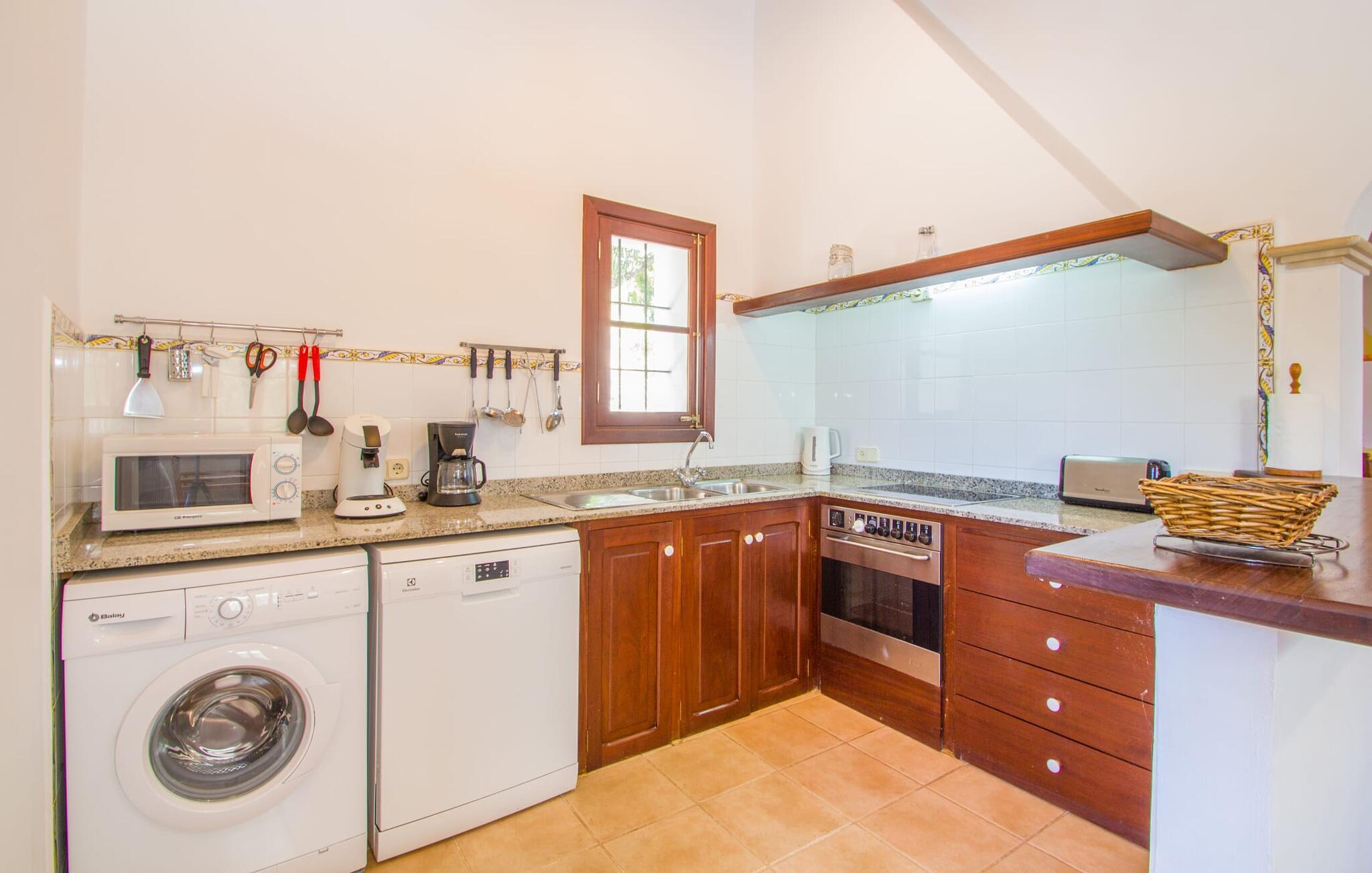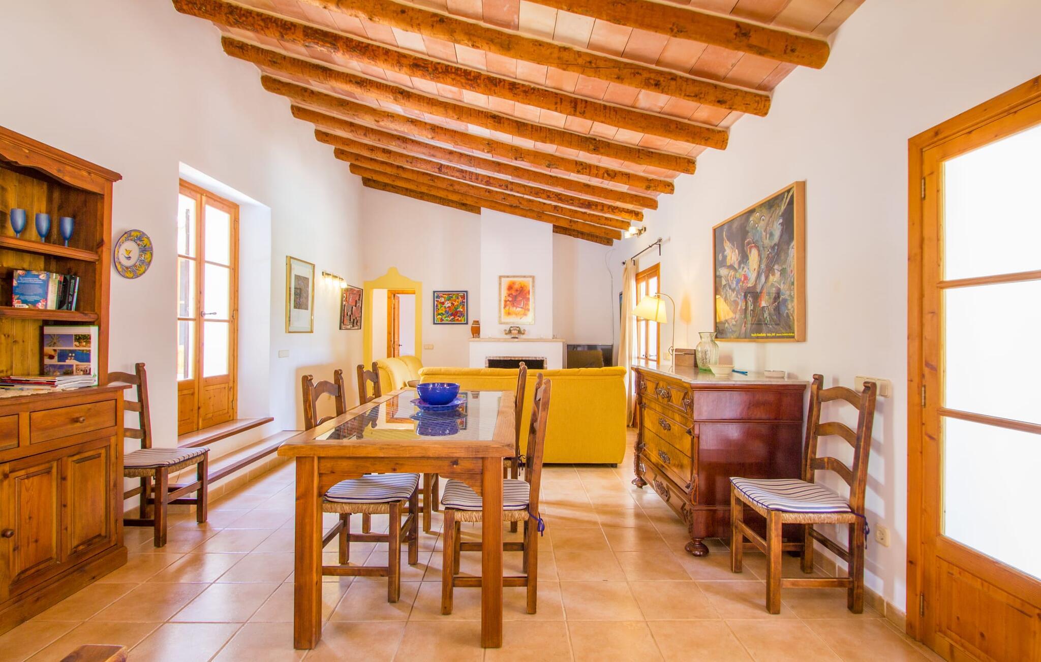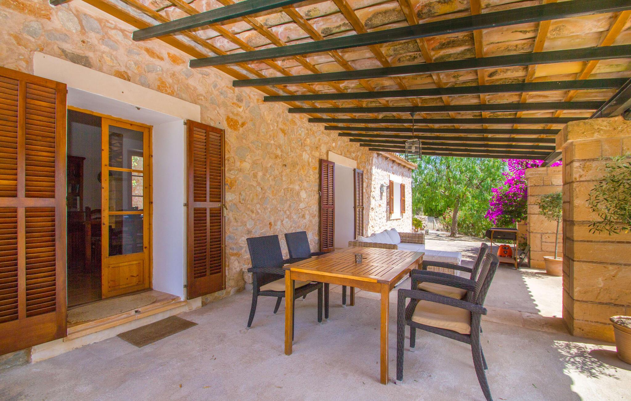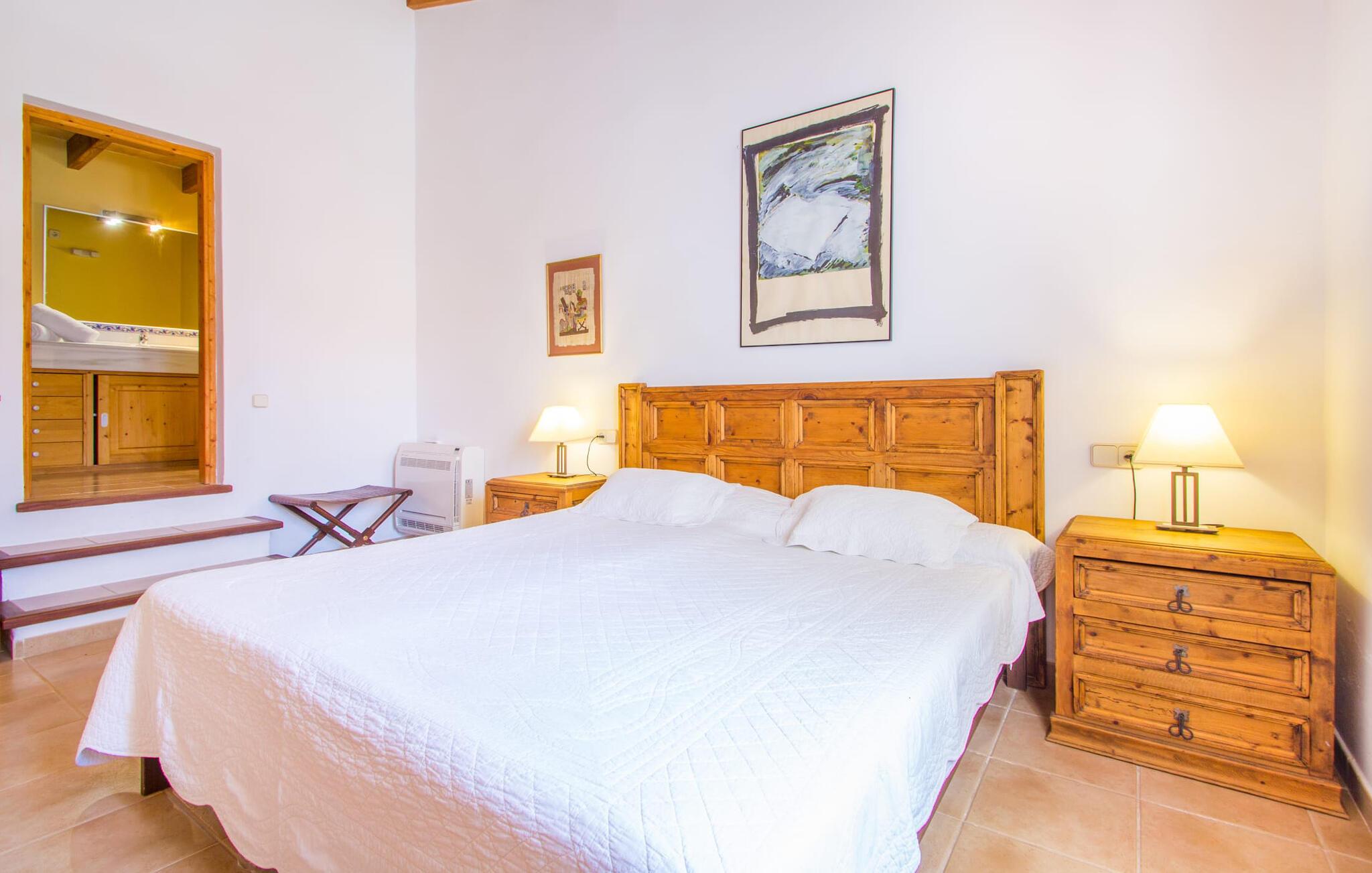 Den lille charmerende villa "Son Barbot de Can Robi Nou" ligger på en 70.000 m² stor grund, der er helt indhegnet. En pool lige ved siden af huset sikrer en afslappende familieferie, men også en stor loungesofa på den overdækkede terrasse, en hængekøje til afslapning og et bordtennisbord. Uanset om det er endeløs badesjov i den 7 x 5 m store pool med udendørs bruser eller slapper af i solen på en af de komfortable liggestole - her kommer I med garanti i feriestemning. Særlig smuk er den vide udsigt over de bølgende bakker og brede marker i det maleriske landskab helt ud til havet; Om aftenen bader den nedgående sol omgivelserne i et magisk lys. I kan tilberede lækre lækkerier på en BBQ, som I kan spise sammen ved det store spisebord på terrassen. Hele haven er en oase af afslapning: Gamle træer og ejendommens mangfoldige, farverige planter gør jeres villa til et sted, hvor I kan slappe af. Villaen, der er bygget helt i ét plan, strækker sig over 124 m² boligareal. Det lyse, åbne opholds- og spiseområde er indrettet i rustik mallorcansk stil: varme farver, masser af træ og moderne kunst på væggene - med stor sans for detaljer har nogen skabt et tilflugtssted for at byde deres besøgende velkommen. Et fuldt udstyret køkken med ovn, keramisk kogeplade, vaskemaskine, opvaskemaskine, elkedel, kaffemaskine, brødrister og mikroovn byder på alt, hvad I behøver for straks at føle jer hjemme. I kan sidde i en behagelig sofa ved den åbne pejs; Et stort spisebord udgør midten af rummet. Hvert af de to soveværelser med aircondition har sit eget badeværelse, hvoraf det ene er en-suite og tilgængeligt via en lille trappe. Det ene soveværelse har en 1,80 x 2,00 m dobbeltseng, det andet værelse har to enkeltsenge. De moderne, dagslysfyldte badeværelser er udstyret med rummelige håndvaske og store spejle. Der er også et brusekabine eller brusebad. Huset har et pengeskab til jeres værdigenstande. Placeringen af denne bolig er perfekt for feriegæster, der ønsker at udforske de mange facetter af øen væk fra masseturismen. Beliggende nær den lille by Sant Llorenc des Cardassar, er villaen idyllisk omgivet af olivenlunde, figentræer, dværgpalmer og rosmarinbuske: vi er beliggende i en frugtbar slette i Llevant-bjergene, som strækker sig over den østlige del af øen . Området omkring jeres villa byder på fantastiske muligheder for vandreture, cykling, golf og vandsport. Den gode forbindelse til det mallorcanske vejnet muliggør korte afstande til kystbyernes smukke strande og maleriske bugter. Udforsk for eksempel den fantastiske Cala Romantica, Cala Varques omgivet af klipper eller den fine sandstrand ved Costa dels Pins. Der er talrige shoppingmuligheder i de nærliggende byer Artà og Manacor. I Sant Llorenc er restauranten Es Pati blevet et mødested for gourmeter. Hver torsdag er der et lille gastromarked i byen. Et besøg i havnen i Porto Cristo kan også varmt anbefales. Dette er Mallorca for feinschmeckere! Uden for den slagne vej ligger denne lille perle nær den drømmende by Sant Llorenç des Cardassar på den østlige del af øen. I en landlig beliggenhed, men perfekt forbundet med transportnettet, kan I udforske de mange smukke strande og bugter på østkysten fra jeres villa. Fordyb jer i den mallorcanske livsstil og oplev de historiske byer Artà og Manacor med deres farverige markeder, udsøgte butikker og caféer, som bestemt er et besøg værd.