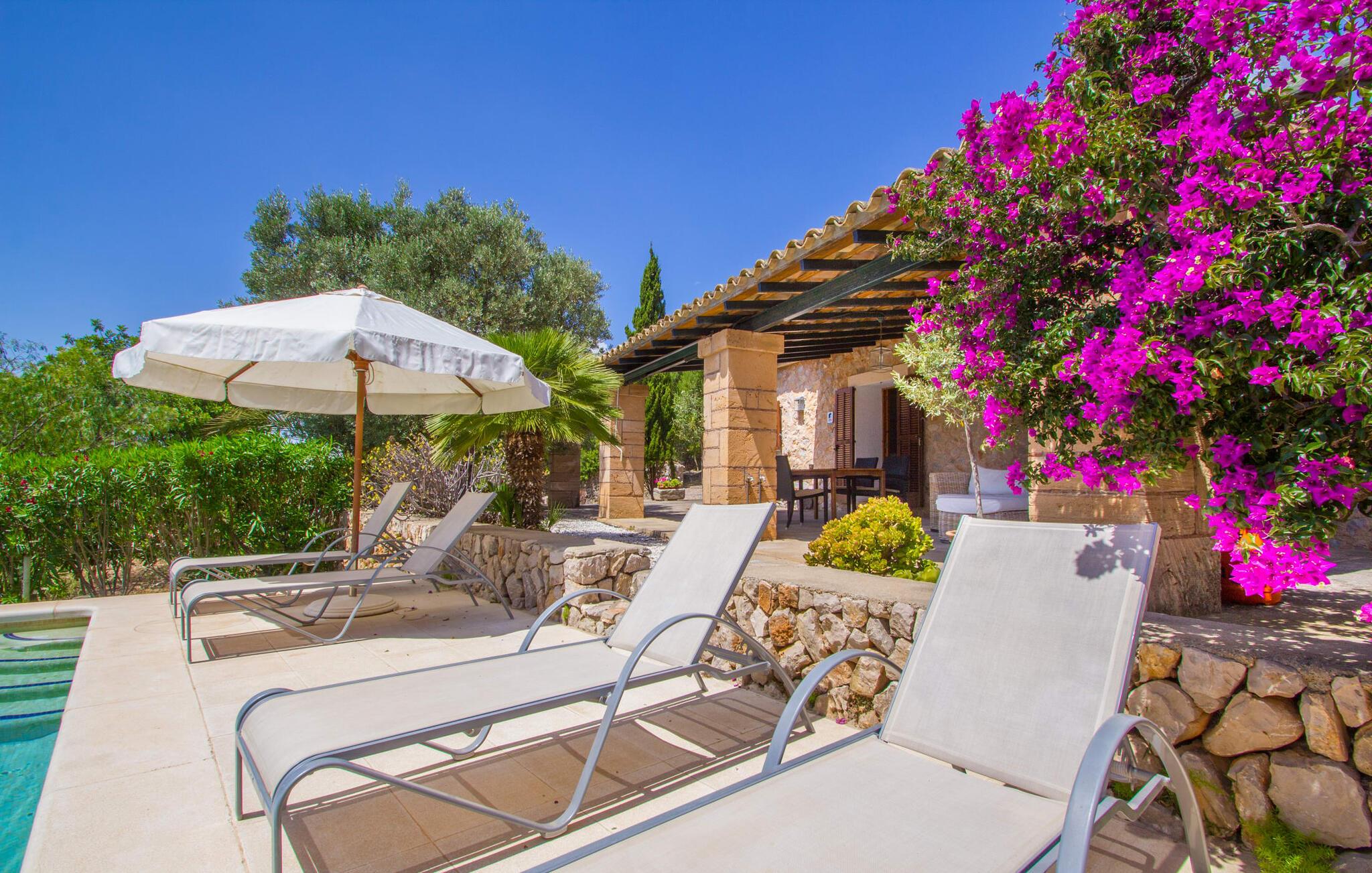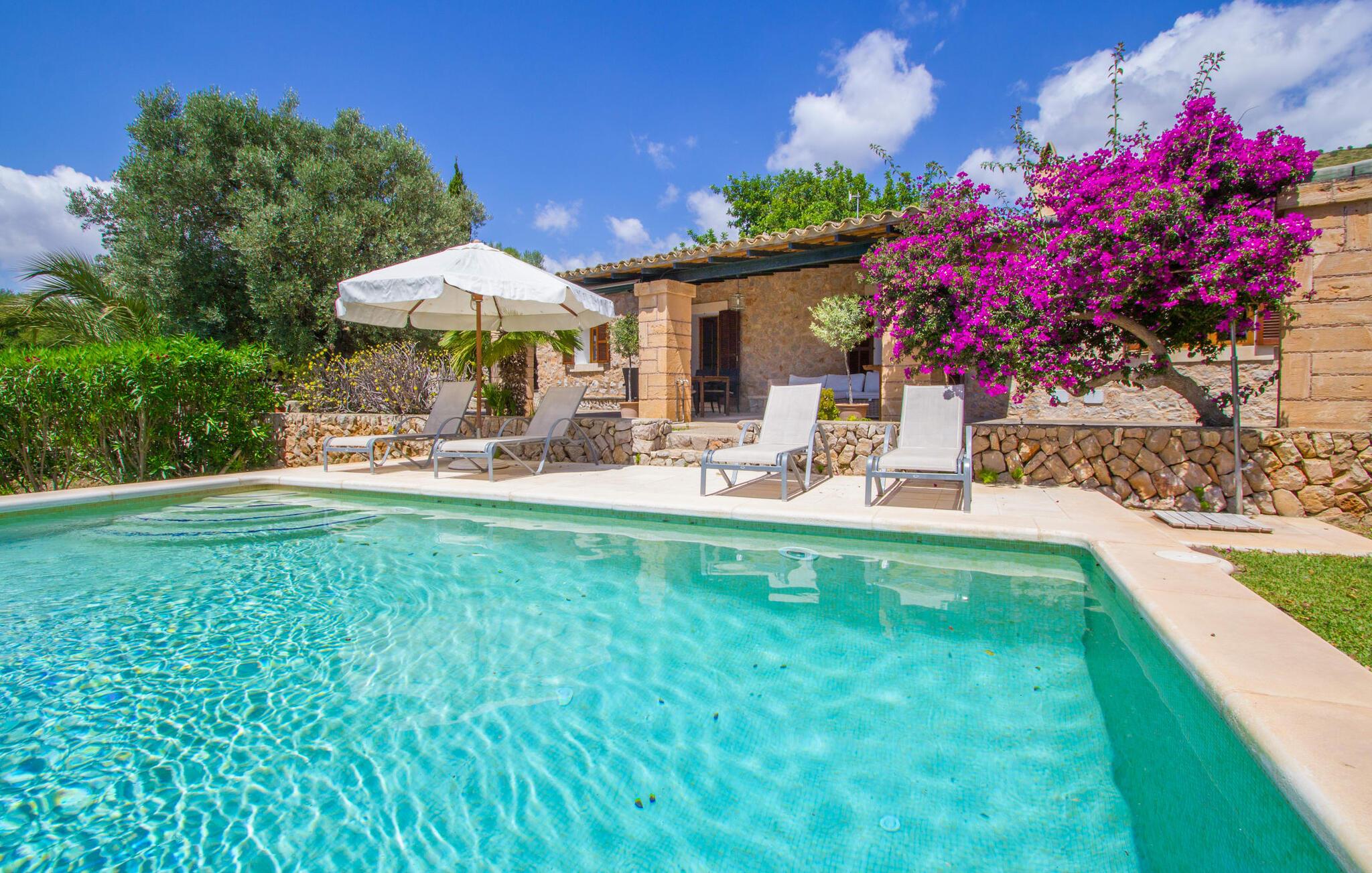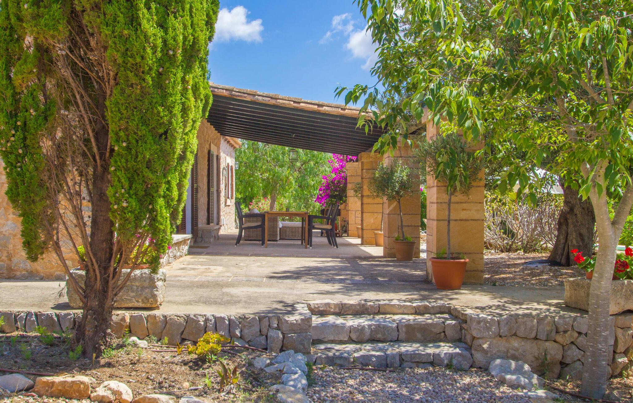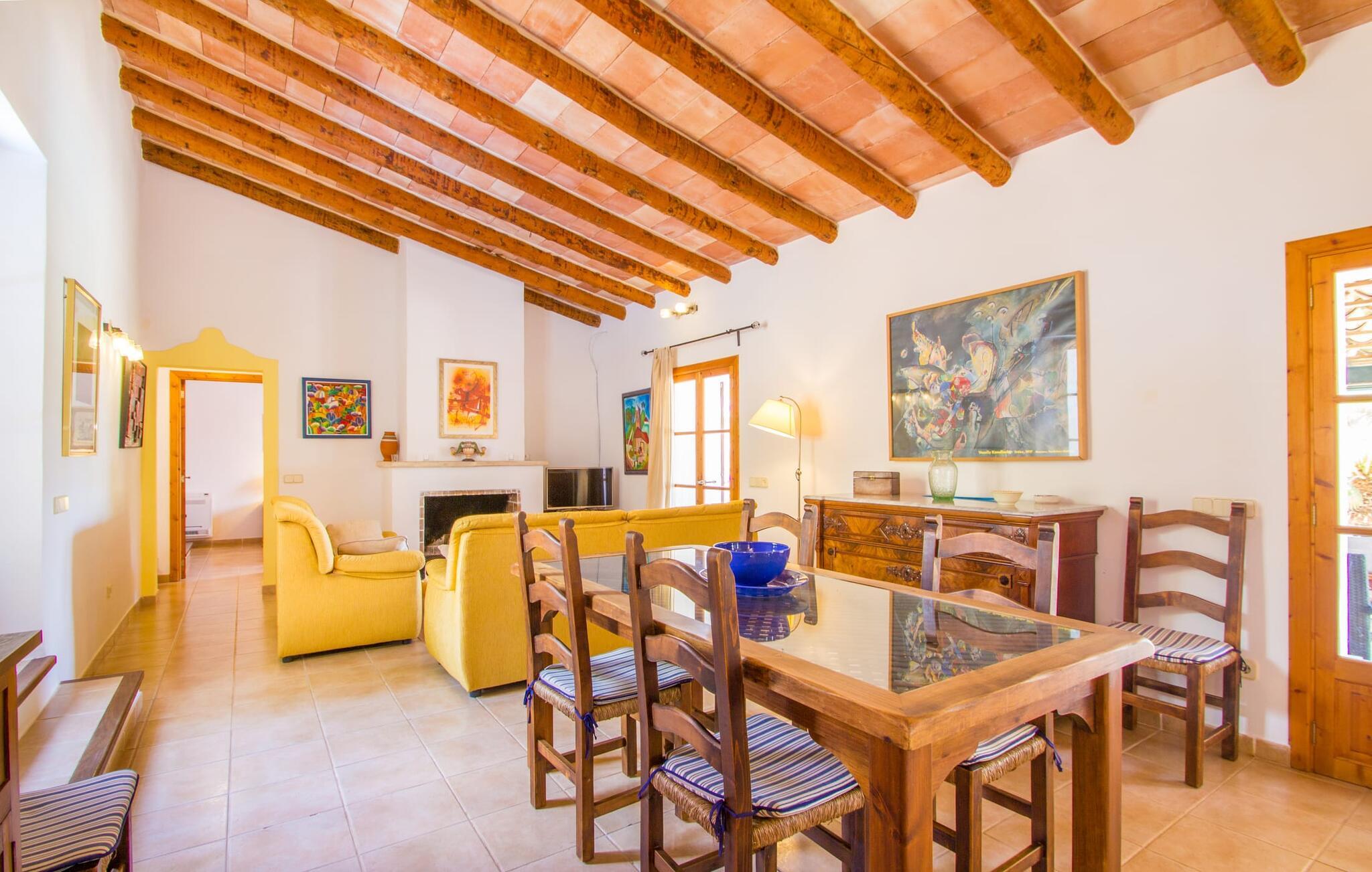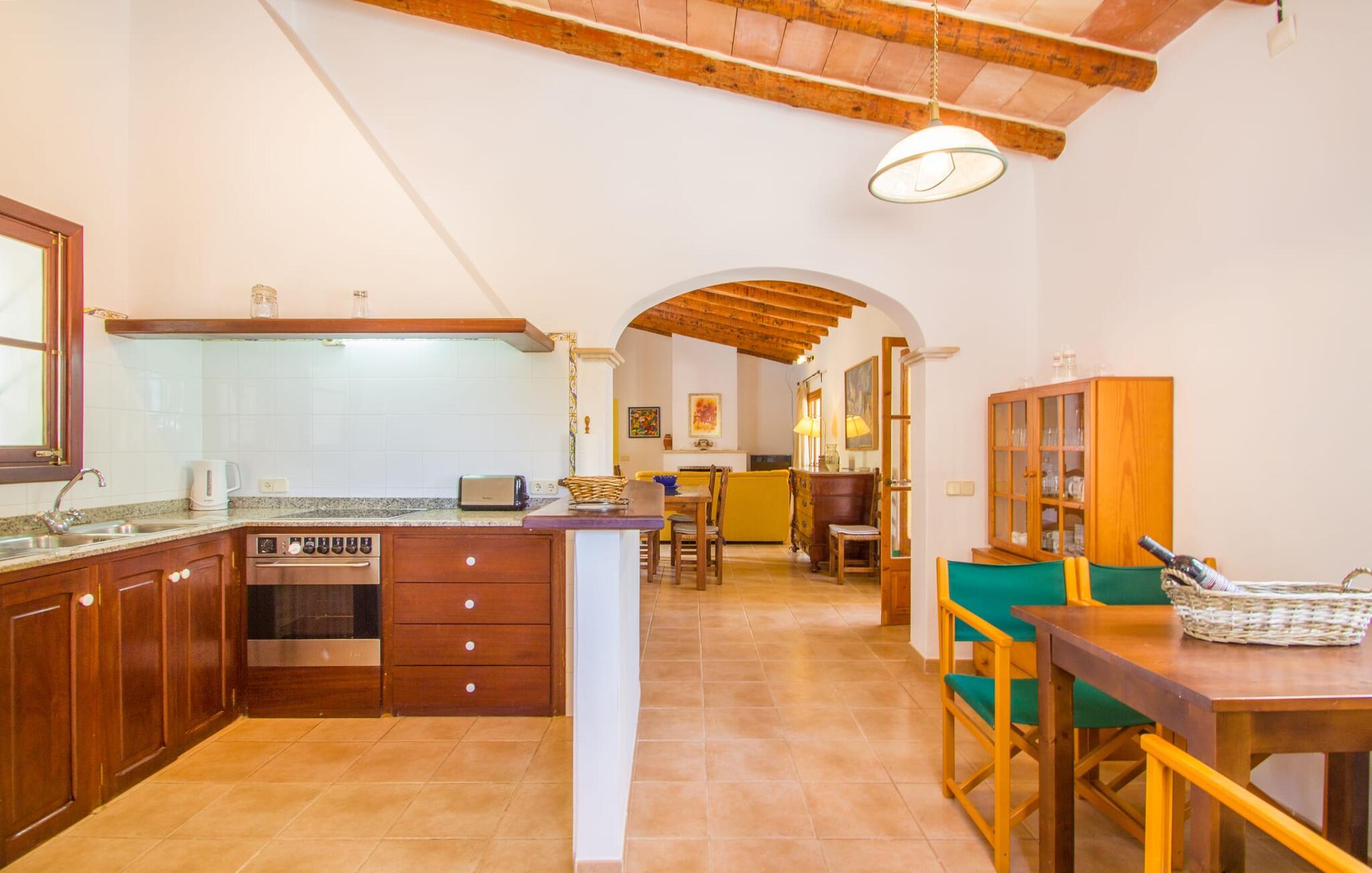 Den lille charmerende villa "Son Barbot de Can Robi Nou" ligger på en 70.000 m² stor grund, der er helt indhegnet. En pool lige ved siden af huset sikrer en afslappende familieferie, men også en stor loungesofa på den overdækkede terrasse, en hængekøje til afslapning og et bordtennisbord. Uanset om det er endeløs badesjov i den 7 x 5 m store pool med udendørs bruser eller slapper af i solen på en af de komfortable liggestole - her kommer I med garanti i feriestemning. Særlig smuk er den vide udsigt over de bølgende bakker og brede marker i det maleriske landskab helt ud til havet; Om aftenen bader den nedgående sol omgivelserne i et magisk lys. I kan tilberede lækre lækkerier på en BBQ, som I kan spise sammen ved det store spisebord på terrassen. Hele haven er en oase af afslapning: Gamle træer og ejendommens mangfoldige, farverige planter gør jeres villa til et sted, hvor I kan slappe af. Villaen, der er bygget helt i ét plan, strækker sig over 124 m² boligareal. Det lyse, åbne opholds- og spiseområde er indrettet i rustik mallorcansk stil: varme farver, masser af træ og moderne kunst på væggene - med stor sans for detaljer har nogen skabt et tilflugtssted for at byde deres besøgende velkommen. Et fuldt udstyret køkken med ovn, keramisk kogeplade, vaskemaskine, opvaskemaskine, elkedel, kaffemaskine, brødrister og mikroovn byder på alt, hvad I behøver for straks at føle jer hjemme. I kan sidde i en behagelig sofa ved den åbne pejs; Et stort spisebord udgør midten af rummet. Hvert af de to soveværelser med aircondition har sit eget badeværelse, hvoraf det ene er en-suite og tilgængeligt via en lille trappe. Det ene soveværelse har en 1,80 x 2,00 m dobbeltseng, det andet værelse har to enkeltsenge. De moderne, dagslysfyldte badeværelser er udstyret med rummelige håndvaske og store spejle. Der er også et brusekabine eller brusebad. Huset har et pengeskab til jeres værdigenstande. Placeringen af denne bolig er perfekt for feriegæster, der ønsker at udforske de mange facetter af øen væk fra masseturismen. Beliggende nær den lille by Sant Llorenc des Cardassar, er villaen idyllisk omgivet af olivenlunde, figentræer, dværgpalmer og rosmarinbuske: vi er beliggende i en frugtbar slette i Llevant-bjergene, som strækker sig over den østlige del af øen . Området omkring jeres villa byder på fantastiske muligheder for vandreture, cykling, golf og vandsport. Den gode forbindelse til det mallorcanske vejnet muliggør korte afstande til kystbyernes smukke strande og maleriske bugter. Udforsk for eksempel den fantastiske Cala Romantica, Cala Varques omgivet af klipper eller den fine sandstrand ved Costa dels Pins. Der er talrige shoppingmuligheder i de nærliggende byer Artà og Manacor. I Sant Llorenc er restauranten Es Pati blevet et mødested for gourmeter. Hver torsdag er der et lille gastromarked i byen. Et besøg i havnen i Porto Cristo kan også varmt anbefales. Dette er Mallorca for feinschmeckere! Uden for den slagne vej ligger denne lille perle nær den drømmende by Sant Llorenç des Cardassar på den østlige del af øen. I en landlig beliggenhed, men perfekt forbundet med transportnettet, kan I udforske de mange smukke strande og bugter på østkysten fra jeres villa. Fordyb jer i den mallorcanske livsstil og oplev de historiske byer Artà og Manacor med deres farverige markeder, udsøgte butikker og caféer, som bestemt er et besøg værd.