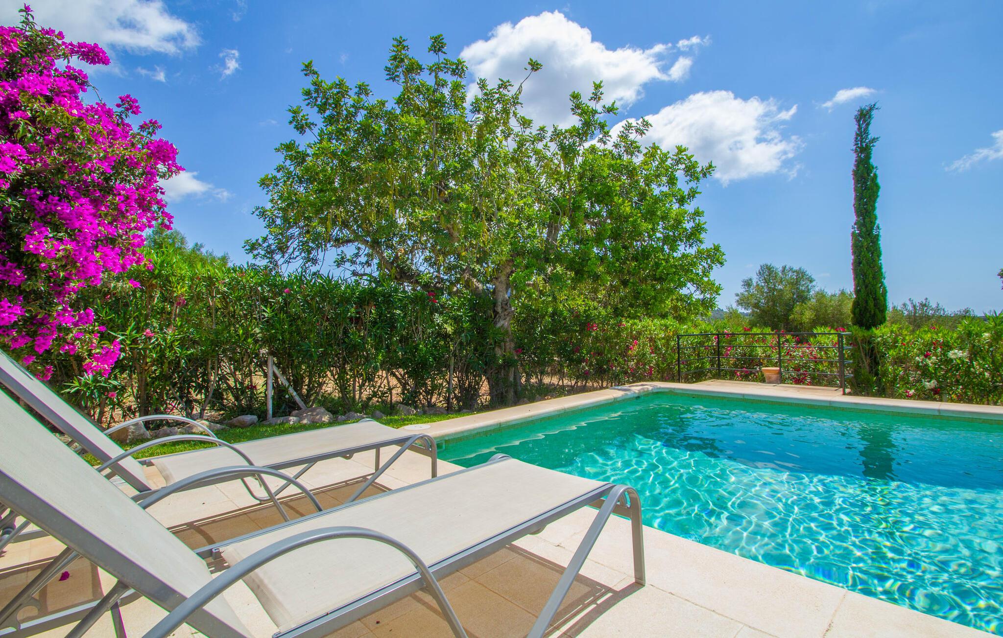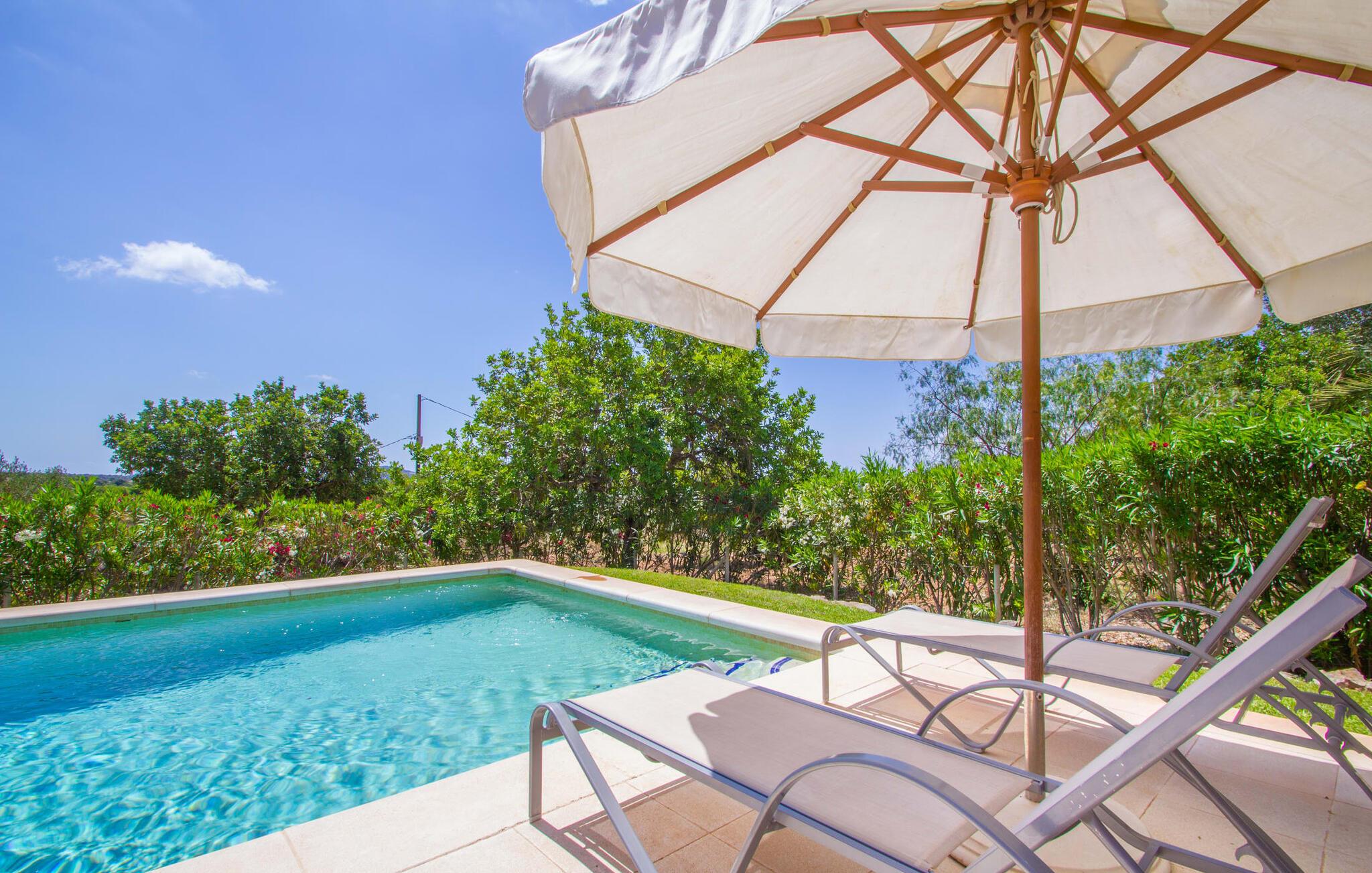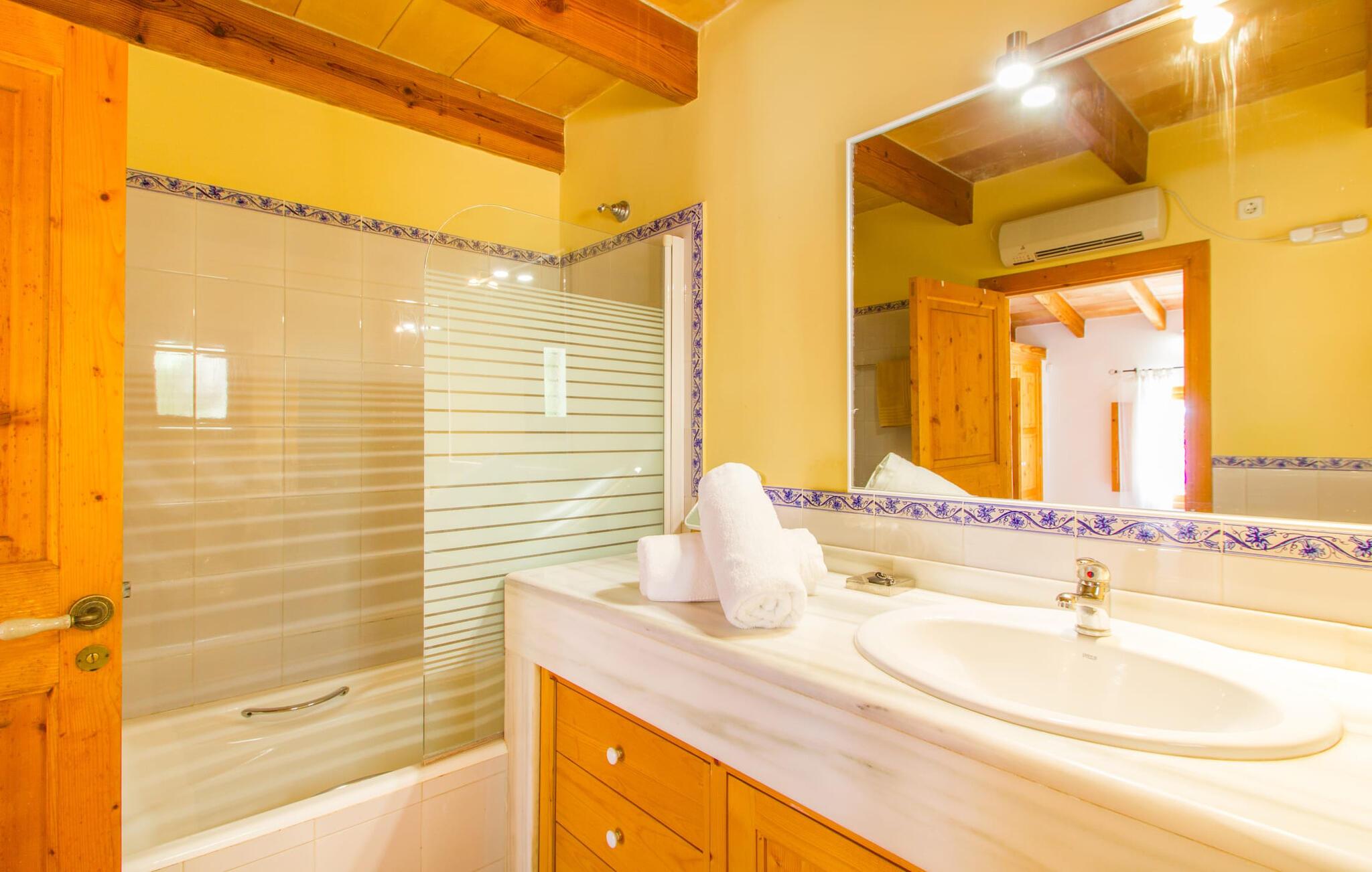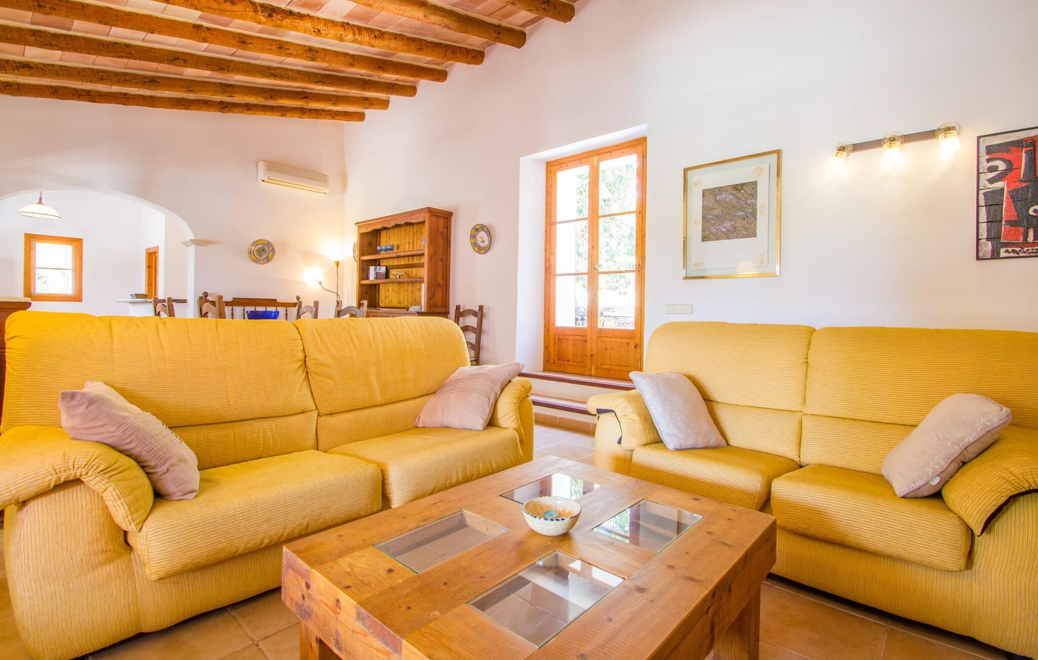 Den lille charmerende villa "Son Barbot de Can Robi Nou" ligger på en 70.000 m² stor grund, der er helt indhegnet. En pool lige ved siden af huset sikrer en afslappende familieferie, men også en stor loungesofa på den overdækkede terrasse, en hængekøje til afslapning og et bordtennisbord. Uanset om det er endeløs badesjov i den 7 x 5 m store pool med udendørs bruser eller slapper af i solen på en af de komfortable liggestole - her kommer I med garanti i feriestemning. Særlig smuk er den vide udsigt over de bølgende bakker og brede marker i det maleriske landskab helt ud til havet; Om aftenen bader den nedgående sol omgivelserne i et magisk lys. I kan tilberede lækre lækkerier på en BBQ, som I kan spise sammen ved det store spisebord på terrassen. Hele haven er en oase af afslapning: Gamle træer og ejendommens mangfoldige, farverige planter gør jeres villa til et sted, hvor I kan slappe af. Villaen, der er bygget helt i ét plan, strækker sig over 124 m² boligareal. Det lyse, åbne opholds- og spiseområde er indrettet i rustik mallorcansk stil: varme farver, masser af træ og moderne kunst på væggene - med stor sans for detaljer har nogen skabt et tilflugtssted for at byde deres besøgende velkommen. Et fuldt udstyret køkken med ovn, keramisk kogeplade, vaskemaskine, opvaskemaskine, elkedel, kaffemaskine, brødrister og mikroovn byder på alt, hvad I behøver for straks at føle jer hjemme. I kan sidde i en behagelig sofa ved den åbne pejs; Et stort spisebord udgør midten af rummet. Hvert af de to soveværelser med aircondition har sit eget badeværelse, hvoraf det ene er en-suite og tilgængeligt via en lille trappe. Det ene soveværelse har en 1,80 x 2,00 m dobbeltseng, det andet værelse har to enkeltsenge. De moderne, dagslysfyldte badeværelser er udstyret med rummelige håndvaske og store spejle. Der er også et brusekabine eller brusebad. Huset har et pengeskab til jeres værdigenstande. Placeringen af denne bolig er perfekt for feriegæster, der ønsker at udforske de mange facetter af øen væk fra masseturismen. Beliggende nær den lille by Sant Llorenc des Cardassar, er villaen idyllisk omgivet af olivenlunde, figentræer, dværgpalmer og rosmarinbuske: vi er beliggende i en frugtbar slette i Llevant-bjergene, som strækker sig over den østlige del af øen . Området omkring jeres villa byder på fantastiske muligheder for vandreture, cykling, golf og vandsport. Den gode forbindelse til det mallorcanske vejnet muliggør korte afstande til kystbyernes smukke strande og maleriske bugter. Udforsk for eksempel den fantastiske Cala Romantica, Cala Varques omgivet af klipper eller den fine sandstrand ved Costa dels Pins. Der er talrige shoppingmuligheder i de nærliggende byer Artà og Manacor. I Sant Llorenc er restauranten Es Pati blevet et mødested for gourmeter. Hver torsdag er der et lille gastromarked i byen. Et besøg i havnen i Porto Cristo kan også varmt anbefales. Dette er Mallorca for feinschmeckere! Uden for den slagne vej ligger denne lille perle nær den drømmende by Sant Llorenç des Cardassar på den østlige del af øen. I en landlig beliggenhed, men perfekt forbundet med transportnettet, kan I udforske de mange smukke strande og bugter på østkysten fra jeres villa. Fordyb jer i den mallorcanske livsstil og oplev de historiske byer Artà og Manacor med deres farverige markeder, udsøgte butikker og caféer, som bestemt er et besøg værd.