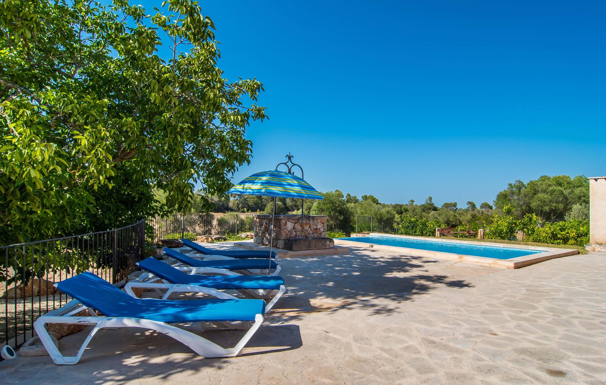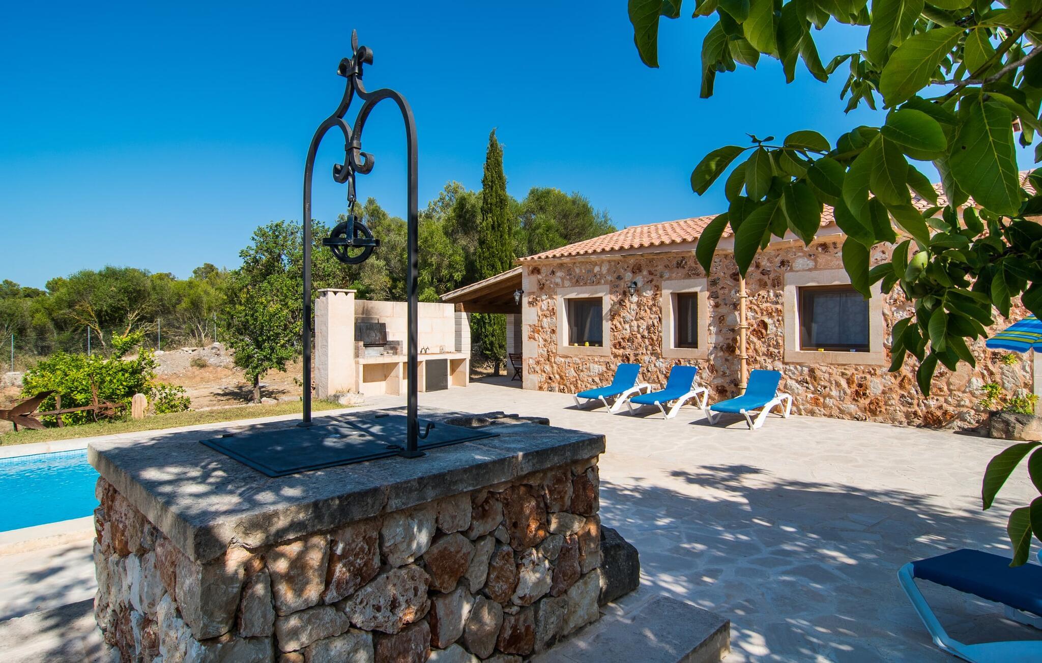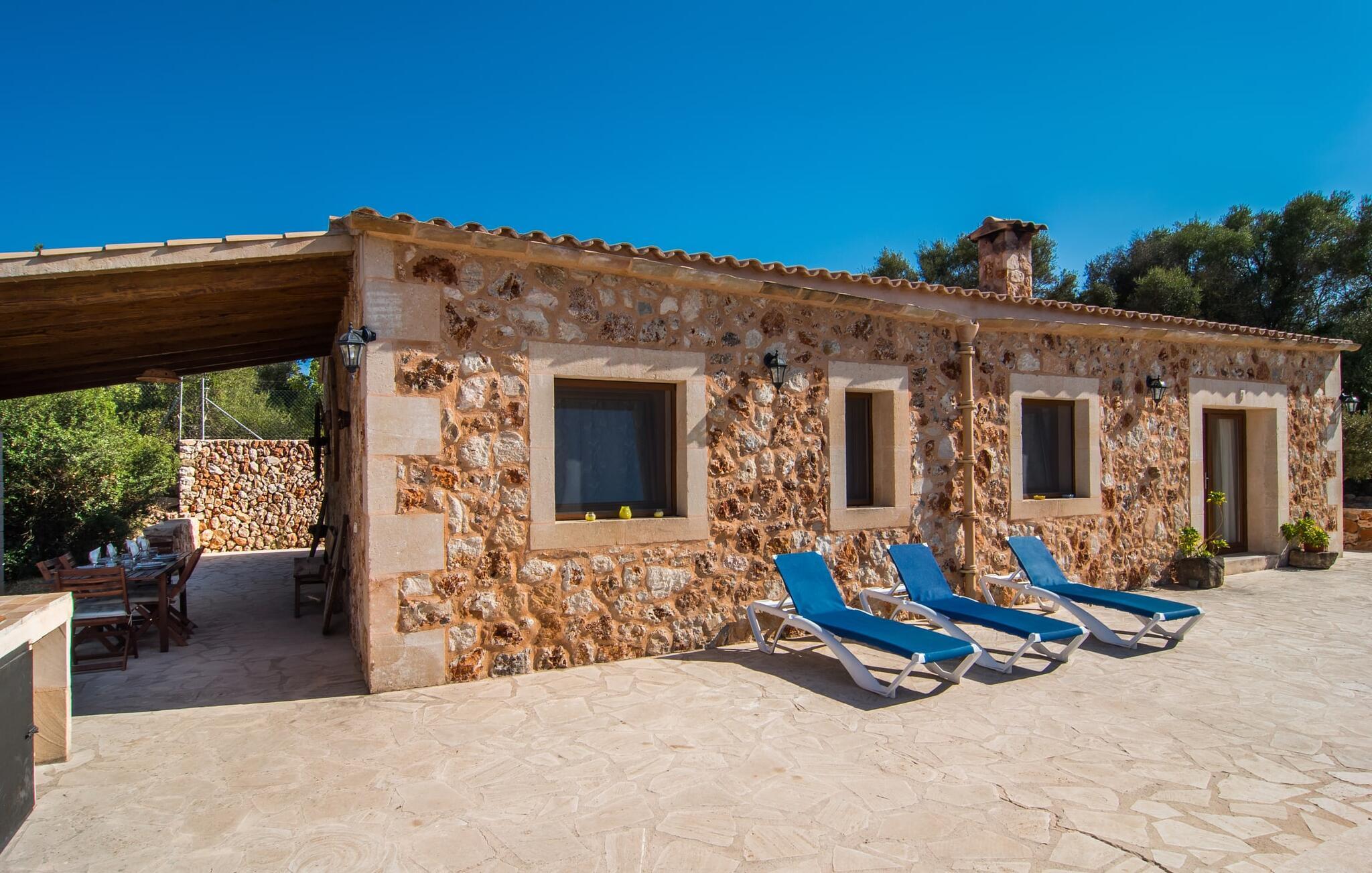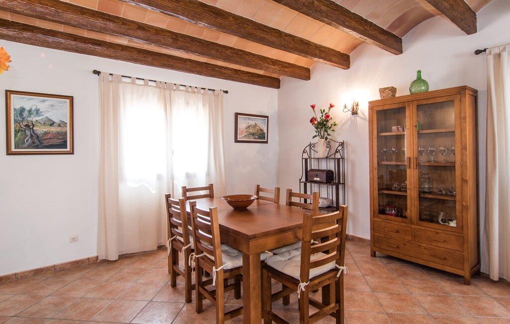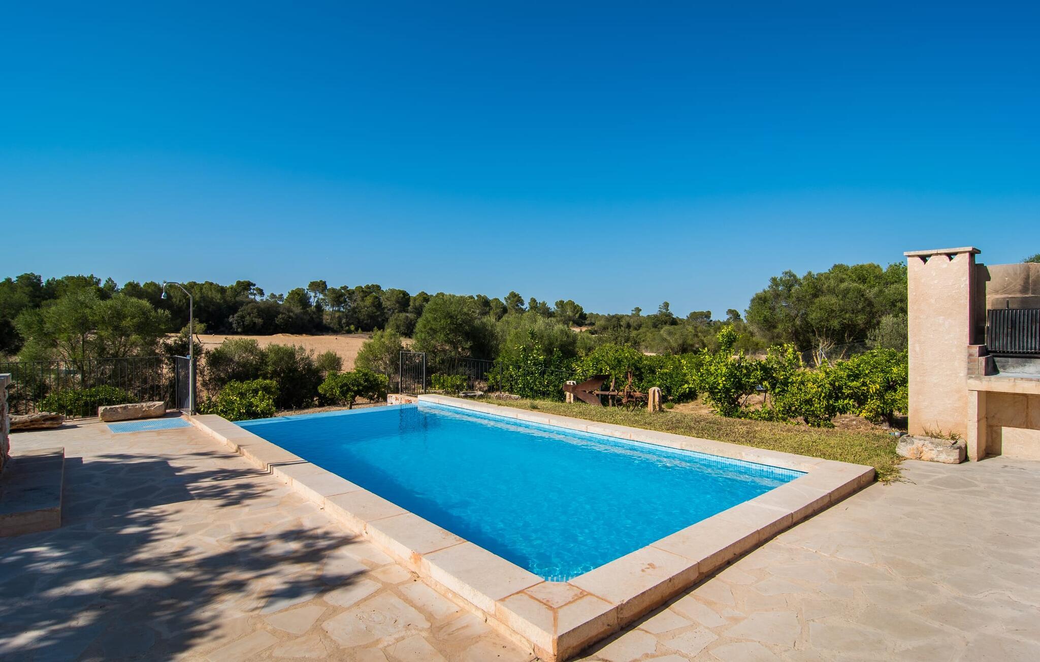 Denne charmerende lille villa ligger i en absolut rolig beliggenhed, perfekt egnet til de landlige, skovklædte omgivelser: et uforstyrret stenhus med et praktisk udekøkken med grill - privatlivets fred er meget vigtigt her. Den sidste del af ruten er dog lidt ujævn, så jeres lejebil bør være forberedt på dette. Der er et par trin op til indgangen - så det er særligt rart, at der er en barrierefri rampe til vogne eller en klapvogn. I skal dog passe på, at kravlemus ikke bryder ind uopfordret. Herfra eller fra den anden side kan I også nå den naturlige have under træerne, hvor I kan opdage en eller to stenbænke til øjeblikke af tilbagetog. Solen smiler til den velindlejrede pool ved huset, hvor man nærmest kan svømme ud på markerne; I kan sidde køligt og i skyggen eller nyde et måltid eller en afslappende siesta på sideterrassen. Dovne mennesker er velkomne hos "Son Barrigo"! Husets indretning er lige så enkelt og enkelt som selve ejendommen, men uden at gå på kompromis med komforten. Den rummelige stue/spisestue med pejs og lædermøbler samt det åbne, velindrettede køkken lover en behagelig kølighed; Alt hvad I skal bruge er lige ved hånden eller godt opbevaret, det store køleskab er fyldt med frugt og grøntsager fra markedet og giver et dagligt løft af friskhed. I vil føle jer godt tilpas ved det lille bord, selvom I skal åbne den bærbare computer for at holde jer opdateret eller planlægge jeres næste rejse. Tre konservativt indrettede soveværelser med indbyggede skabe, dobbeltseng og enkeltsenge deler et mindre brusebadeværelse, et stort badeværelse med badekar og bruseniche og den udendørs bruser ved poolen. Nyd det landlige mallorcanske liv mellem saftige abrikoser og meloner med honningsmag og udsigten over de frugtbare sletter i Santuarie de Mont-Sion! Køleskabet og picnickurven er altid godt fyldt op. Søde kager fra Porreres lavet af chokolade og Villafranca frister jer med frugtboder ved indgangen til landsbyen og Festa del Meló i begyndelsen af september. I Llucmajor skal I have en café i det historiske Colón og shoppe på det store grøntsagsmarked, prøve mandelcroissanterne i Campos og prøve boderne fra Sa Rápita til Cala Santanyí - hver især smukkere end sidst. Hvis I foretrækker at sætte jer ved et forberedt bord efter en lang dag med sightseeing, så bliv overrasket over, hvad L'Escrivania i Porreres kan fremtrylle fra lokale "albaricoques". Placeringen af den lille, velholdte villa "Son Barrigo" i de bølgende bakker mellem Porreres og Vilafranca er meget bekvemt forbundet med Ma-15 og Ma-19 og er alligevel helt stille. Det betyder, at I hurtigt kan nå attraktive turistmål som Palma, Llucmajor, Manacor og sydens drømmestrande, som ligger omkring en halv time væk; Det store udvalg af butikker, grøntsagsmarkeder og idylliske pladser med barer og caféer er en yderligere fordel ved det afsondrede ø-center, som kan udforskes på cykel.
