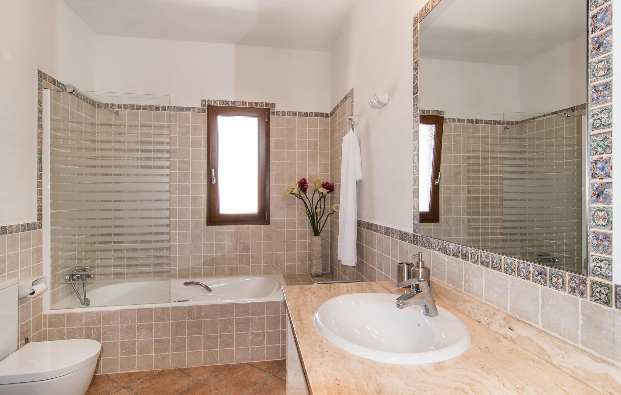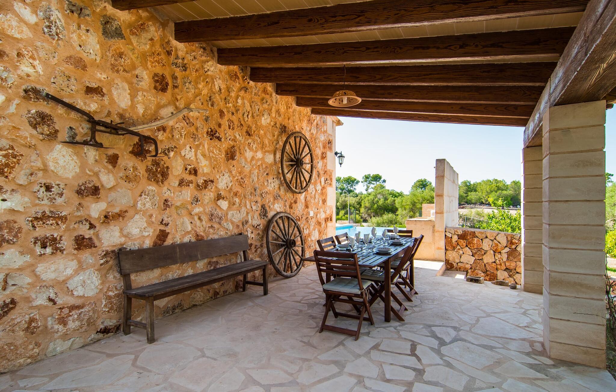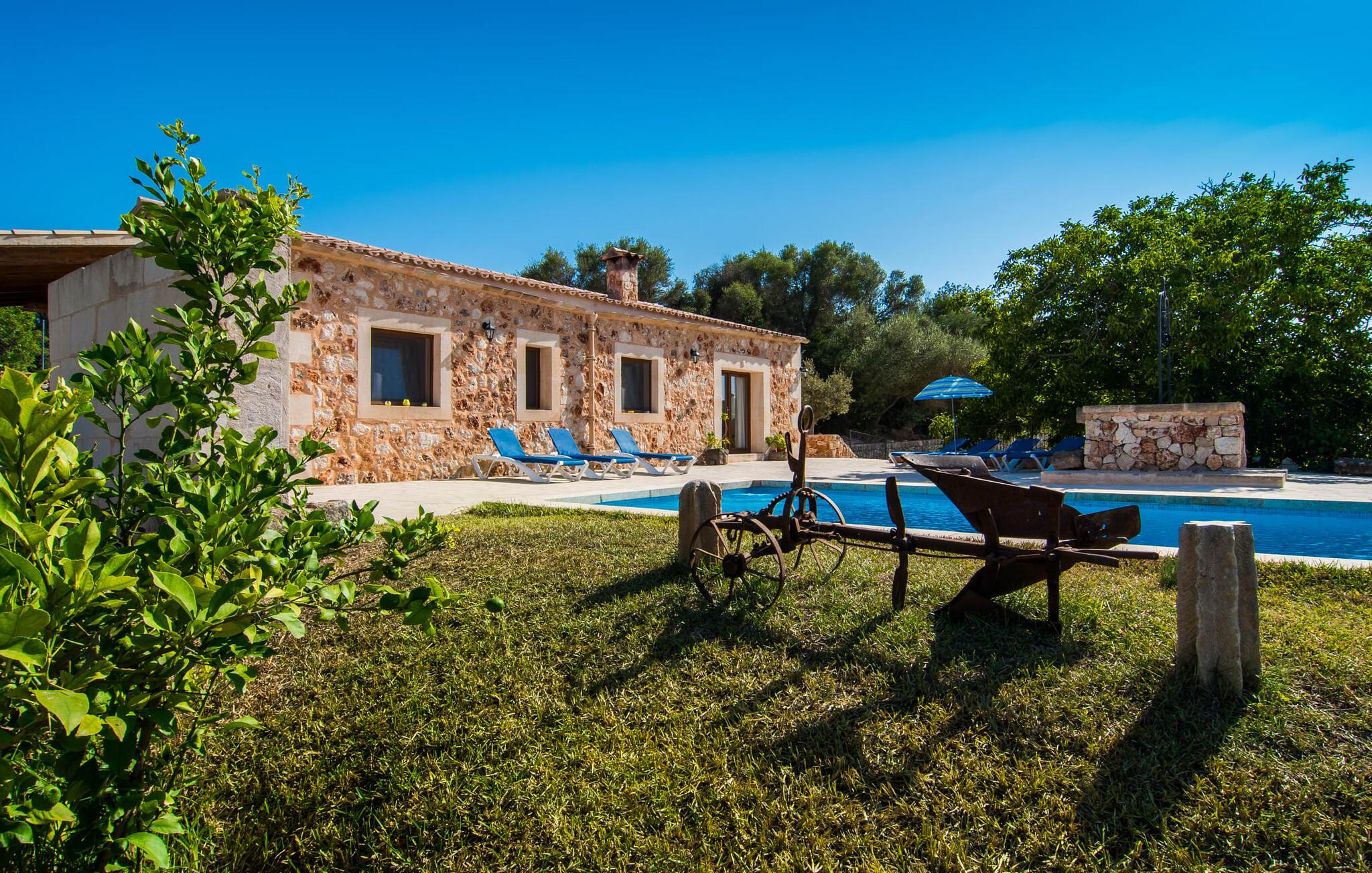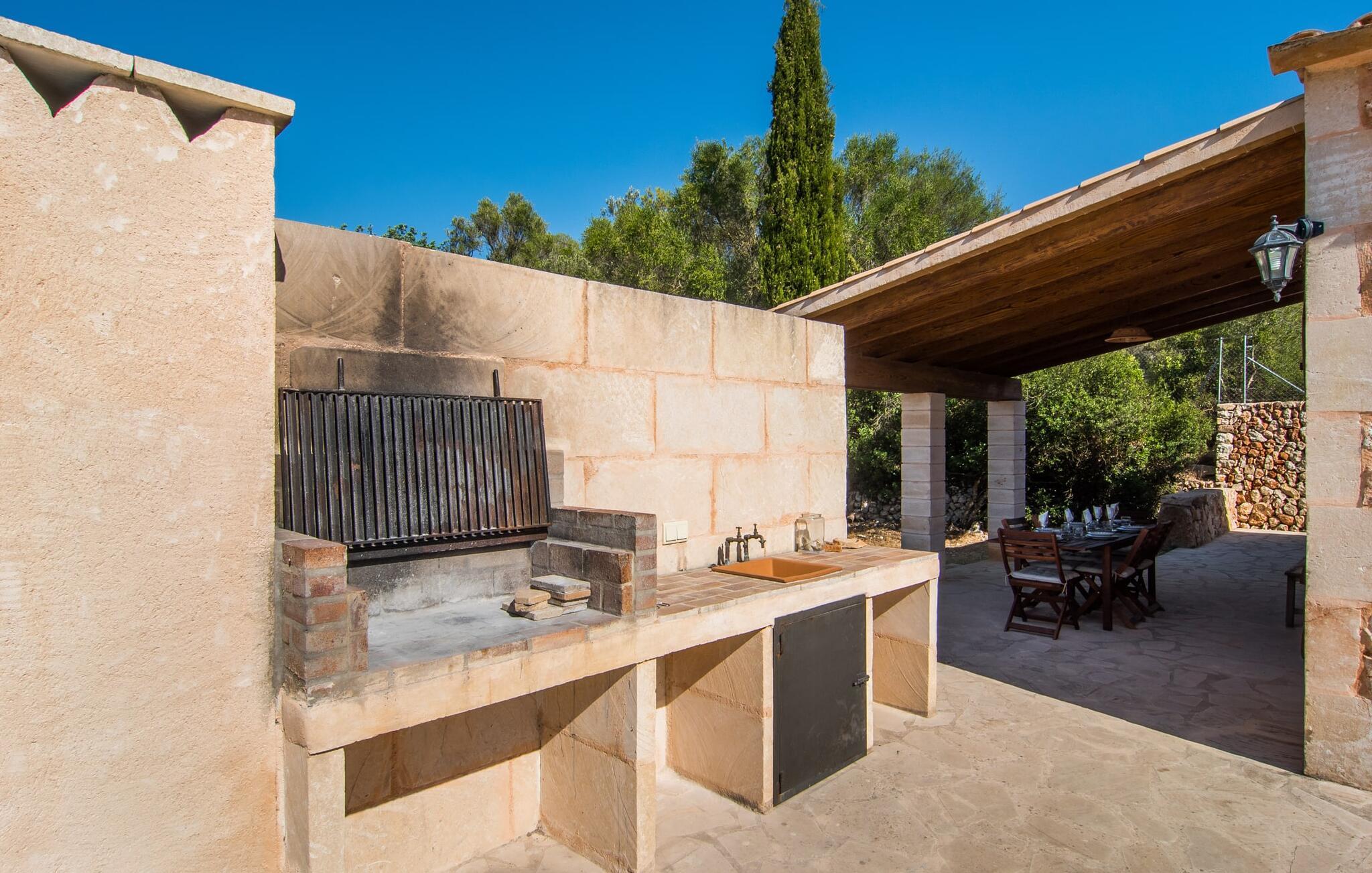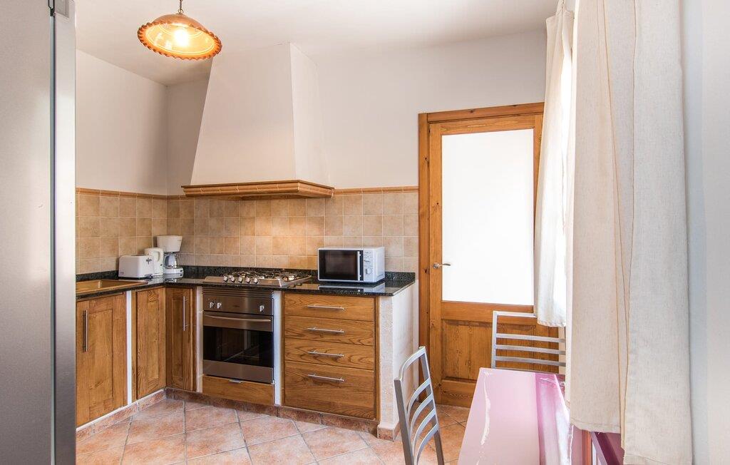Denne charmerende lille villa ligger i en absolut rolig beliggenhed, perfekt egnet til de landlige, skovklædte omgivelser: et uforstyrret stenhus med et praktisk udekøkken med grill - privatlivets fred er meget vigtigt her. Den sidste del af ruten er dog lidt ujævn, så jeres lejebil bør være forberedt på dette. Der er et par trin op til indgangen - så det er særligt rart, at der er en barrierefri rampe til vogne eller en klapvogn. I skal dog passe på, at kravlemus ikke bryder ind uopfordret. Herfra eller fra den anden side kan I også nå den naturlige have under træerne, hvor I kan opdage en eller to stenbænke til øjeblikke af tilbagetog. Solen smiler til den velindlejrede pool ved huset, hvor man nærmest kan svømme ud på markerne; I kan sidde køligt og i skyggen eller nyde et måltid eller en afslappende siesta på sideterrassen. Dovne mennesker er velkomne hos "Son Barrigo"! Husets indretning er lige så enkelt og enkelt som selve ejendommen, men uden at gå på kompromis med komforten. Den rummelige stue/spisestue med pejs og lædermøbler samt det åbne, velindrettede køkken lover en behagelig kølighed; Alt hvad I skal bruge er lige ved hånden eller godt opbevaret, det store køleskab er fyldt med frugt og grøntsager fra markedet og giver et dagligt løft af friskhed. I vil føle jer godt tilpas ved det lille bord, selvom I skal åbne den bærbare computer for at holde jer opdateret eller planlægge jeres næste rejse. Tre konservativt indrettede soveværelser med indbyggede skabe, dobbeltseng og enkeltsenge deler et mindre brusebadeværelse, et stort badeværelse med badekar og bruseniche og den udendørs bruser ved poolen. Nyd det landlige mallorcanske liv mellem saftige abrikoser og meloner med honningsmag og udsigten over de frugtbare sletter i Santuarie de Mont-Sion! Køleskabet og picnickurven er altid godt fyldt op. Søde kager fra Porreres lavet af chokolade og Villafranca frister jer med frugtboder ved indgangen til landsbyen og Festa del Meló i begyndelsen af september. I Llucmajor skal I have en café i det historiske Colón og shoppe på det store grøntsagsmarked, prøve mandelcroissanterne i Campos og prøve boderne fra Sa Rápita til Cala Santanyí - hver især smukkere end sidst. Hvis I foretrækker at sætte jer ved et forberedt bord efter en lang dag med sightseeing, så bliv overrasket over, hvad L'Escrivania i Porreres kan fremtrylle fra lokale "albaricoques". Placeringen af den lille, velholdte villa "Son Barrigo" i de bølgende bakker mellem Porreres og Vilafranca er meget bekvemt forbundet med Ma-15 og Ma-19 og er alligevel helt stille. Det betyder, at I hurtigt kan nå attraktive turistmål som Palma, Llucmajor, Manacor og sydens drømmestrande, som ligger omkring en halv time væk; Det store udvalg af butikker, grøntsagsmarkeder og idylliske pladser med barer og caféer er en yderligere fordel ved det afsondrede ø-center, som kan udforskes på cykel.