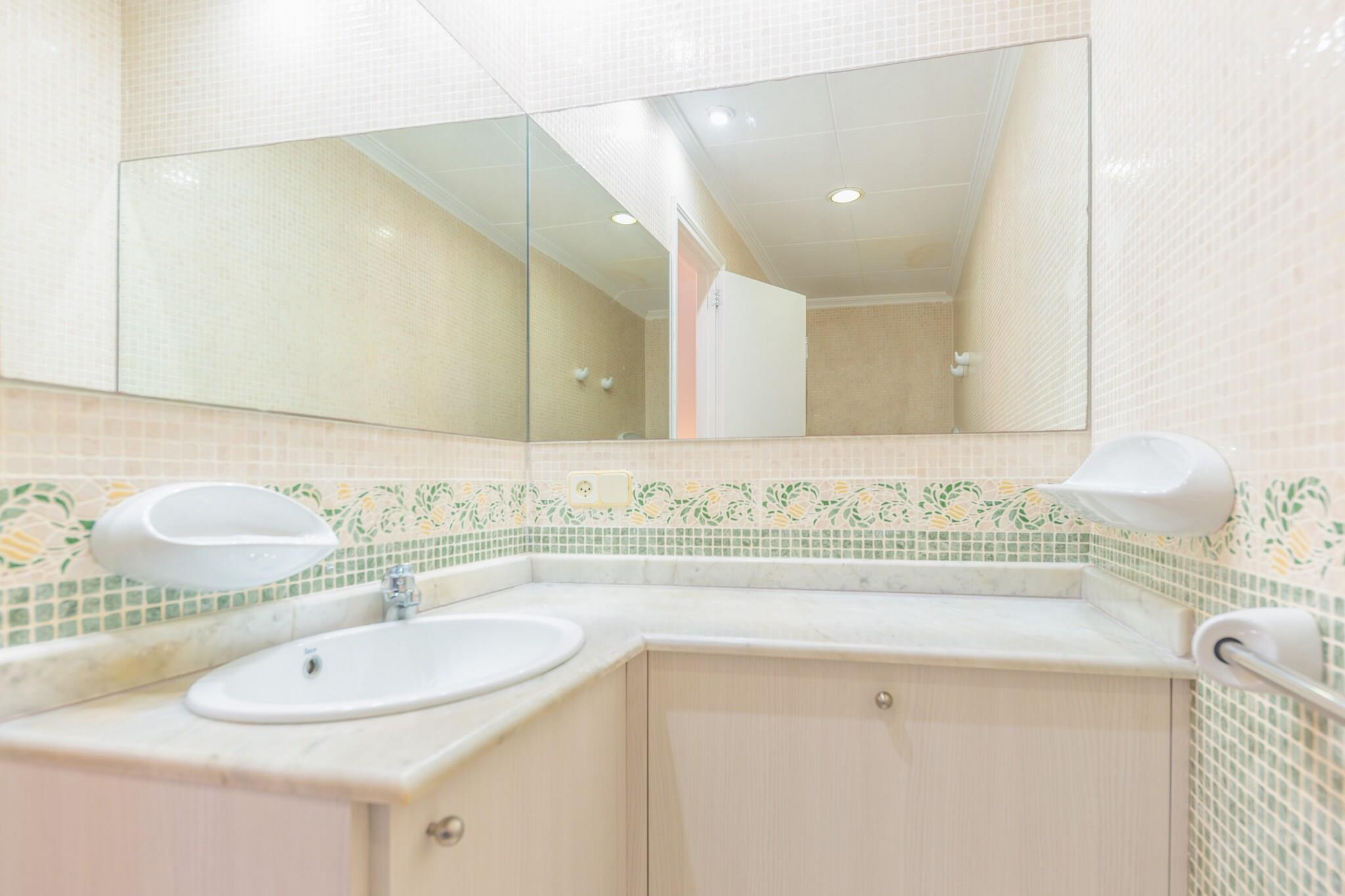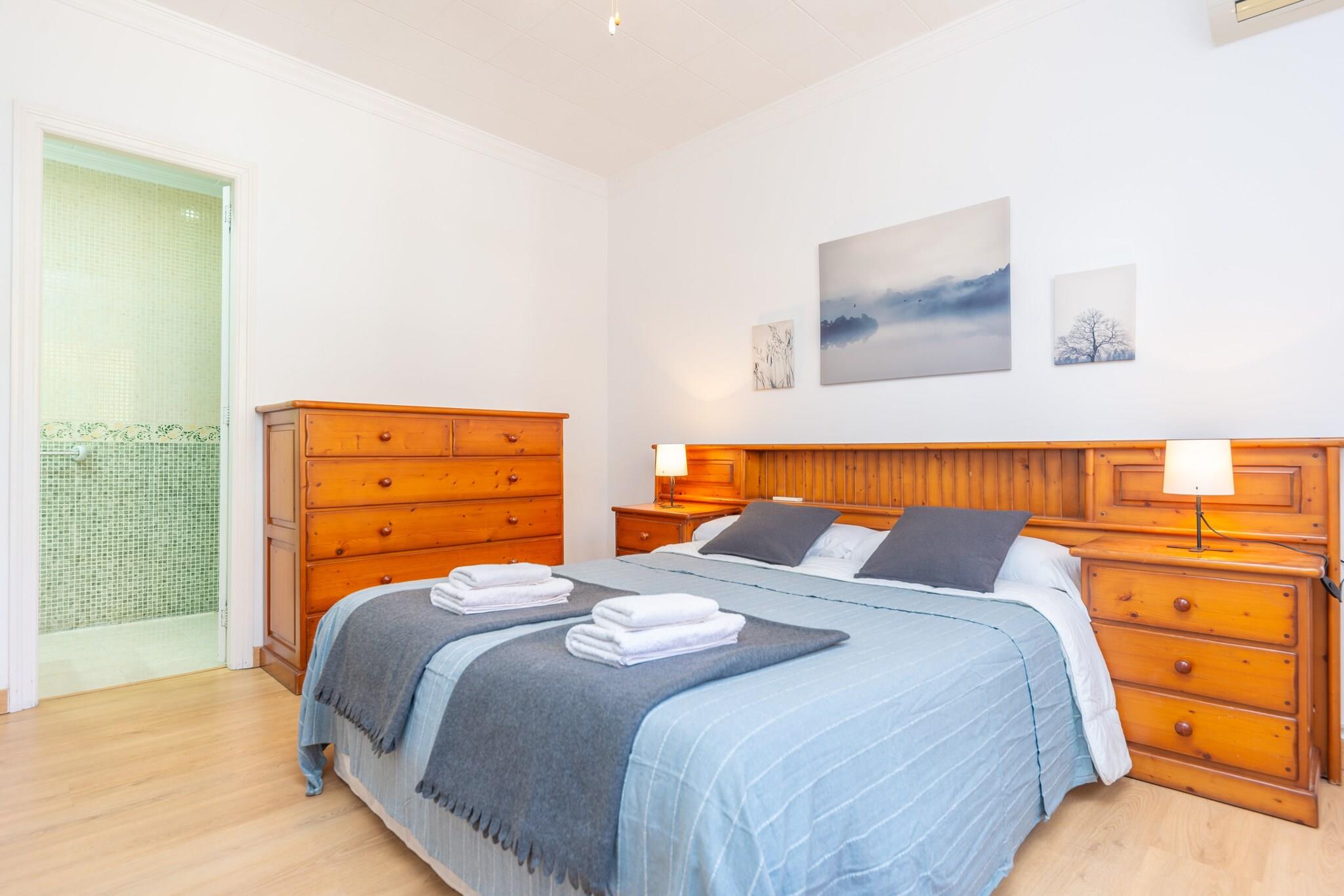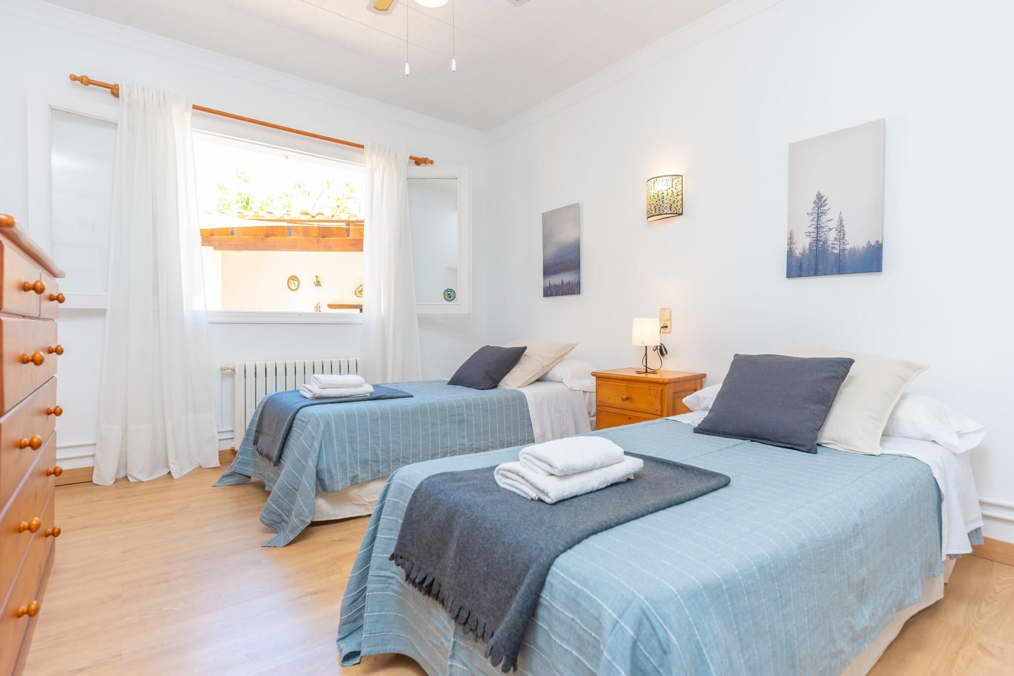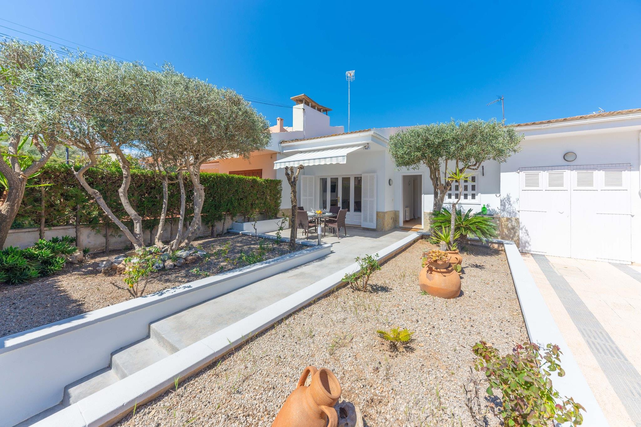 Sol og afslapning ved poolen Dette indbydende hus har en privat saltvandspool, der måler 8×4m med en dybde på 1-1,5m, omgivet af seks liggestole. Flere terrasser giver ideelle pladser til at grille, nyde en aperitif eller slappe af med en drink under solen. En udendørs bruser tilføjer bekvemmelighed efter en forfriskende dukkert. Med stranden kun 300 m væk, kan du når som helst slentre langs sandet og nyde kystbrisen. Komfortabelt interiør Indenfor byder en rummelig stue/spisestue på SAT-TV og et indbydende område til måltider eller socialt samvær. Køkkenet, der er udstyret med keramisk kogeplade og alt nødvendigt, har også et praktisk bord til morgenmad eller kaffe. Vaskerummet har vaskemaskine, strygejern og strygebræt. Villaen har tre soveværelser med AC og ventilatorer - to med to enkeltsenge og en dobbeltseng med en-suite bruser. Et ekstra badeværelse med bruser, en barneseng, en høj stol, hårtørrer og fem ventilatorer sikrer komfort for alle gæster. Can Picafort Convenience Beliggende i Can Picafort, blander dette hjem ro med adgang til lokale tjenester, herunder barer, restauranter, isbarer og supermarkeder. Strandpromenaden er perfekt til morgenvandringer eller gåture i solnedgangen. Golfentusiaster kan nå Golf d'Alcanada på 17 km, og den nærmeste lufthavn ligger 63,4 km væk. Kæledyr er ikke tilladt, arrangementer er forbudt, og Ecotasa turistskat gælder. Denne villa af