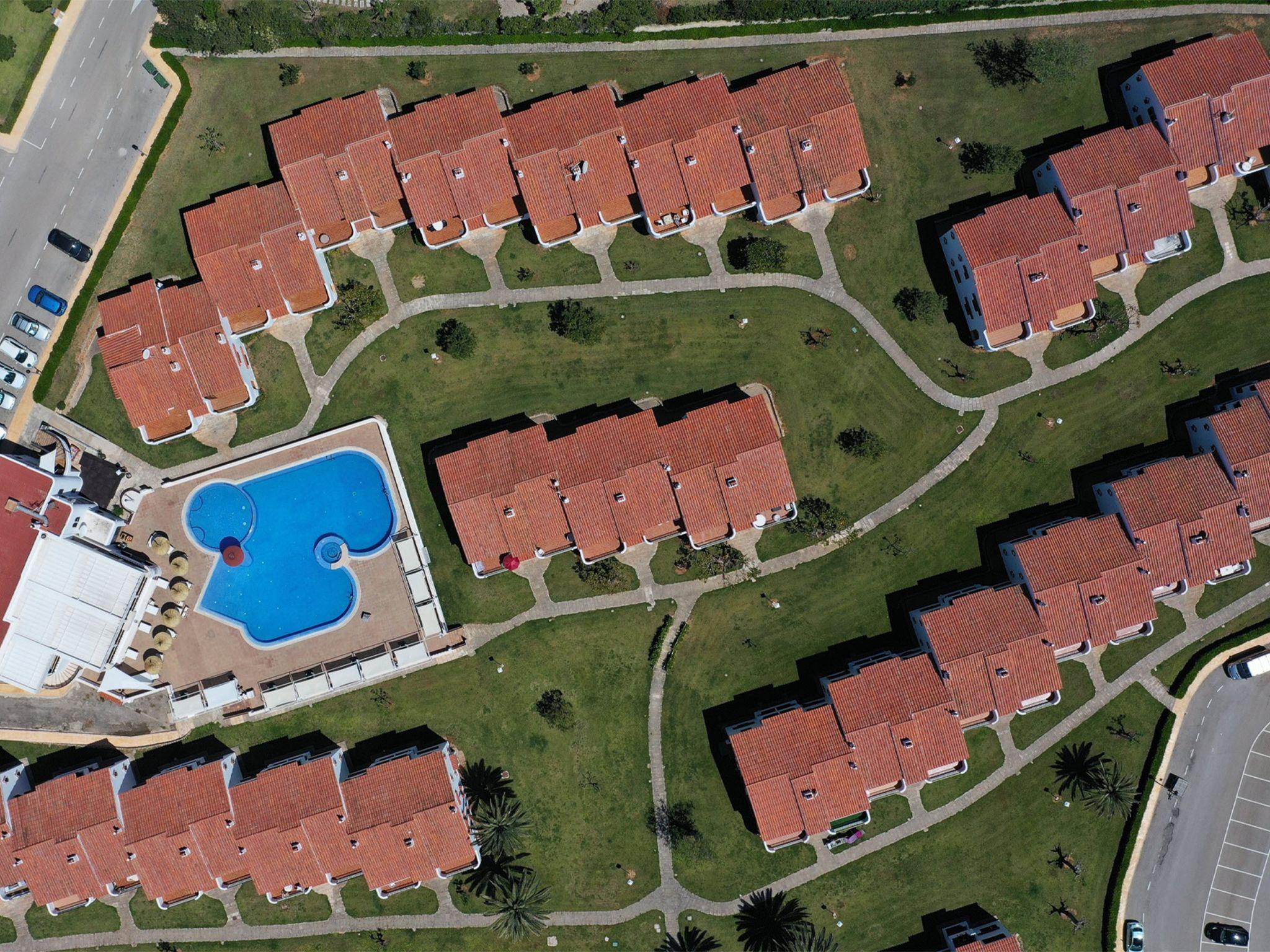 Son Bou: The swimming pools are not managed by the resort. They are managed by the restaurants in the area and the use of sunbeds / umbrellas is subject to a supplement. Some restaurants also require guests to consume in order to swim. Child friendly, cosy, rustic holiday development "Son Bou Grdens 3 dorm", surrounded by trees. In the centre of Son Bou, in a central, sunny position, 1 km from the sea. For shared use: park, garden, swimming pool (24 x 11 m, seasonal availability: 30.Apr. - 24.Oct.). Children's pool, outdoor shower, children's playground. In the house: internet access, WiFi. Shop, grocery, supermarket, restaurant 500 m, bus stop "Son Bou" 450 m, sandy beach 1 km. Golf course (18 hole) 20 km, tennis 800 m, riding stable 1 km, children's playground 800 m. Please note: car recommended. Suitable for families, suitable for seniors baby equipment on request. Object suitable for 5 adults groups of teenagers on request only. Airfield 2 km from the property.