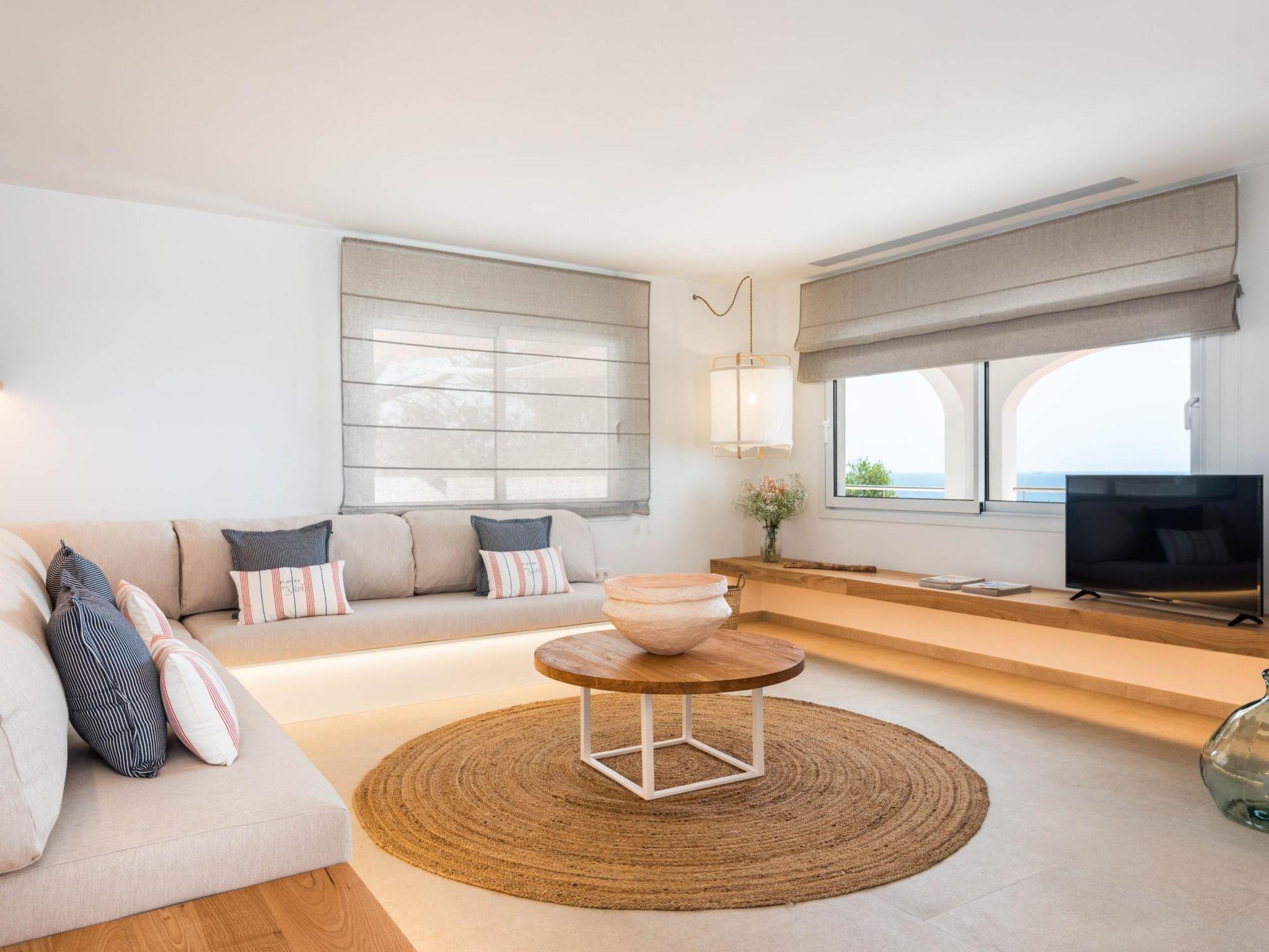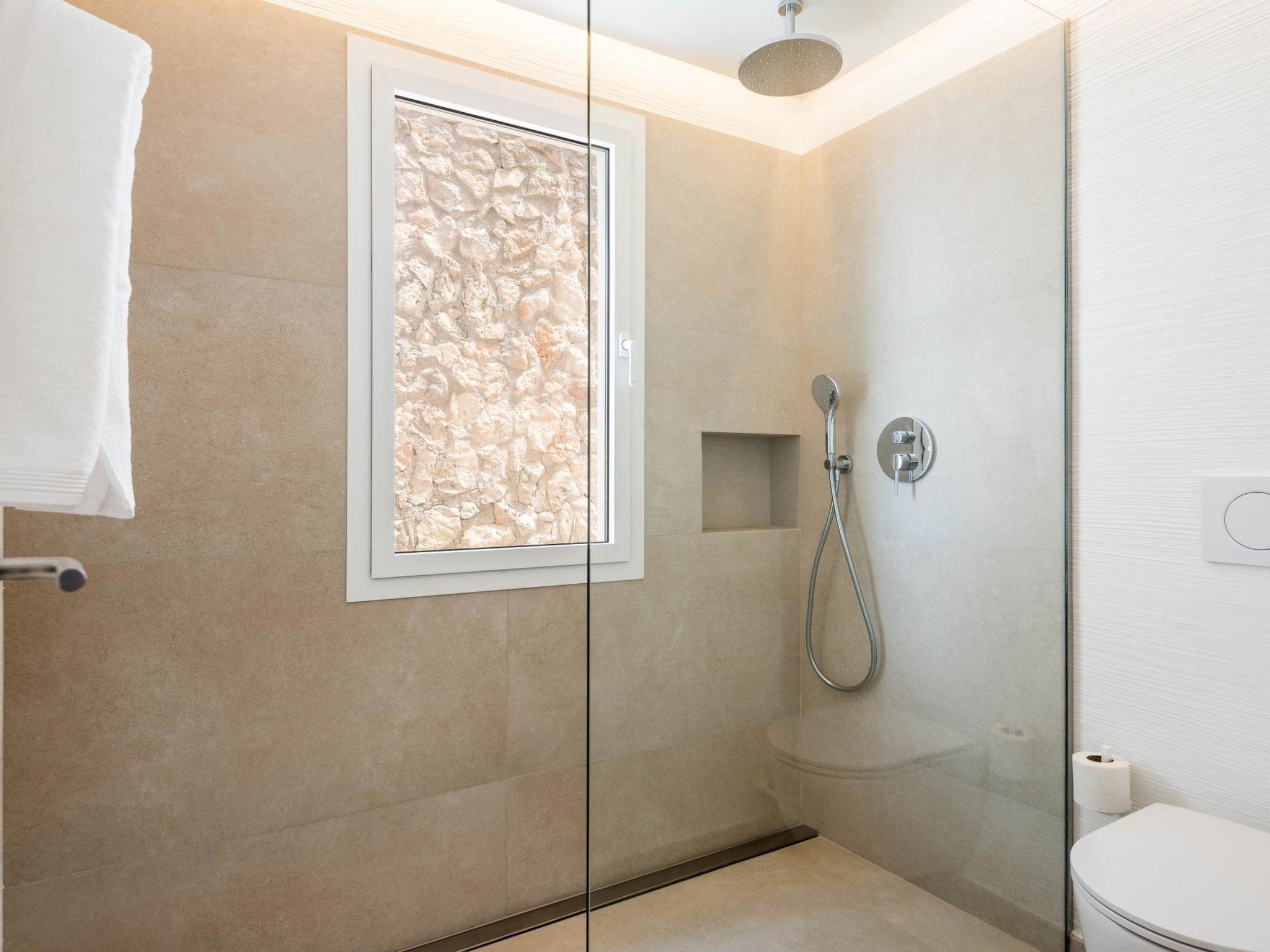 Son Bou: Very modern, beautiful villa "Villa Atalis", renovated in 2022. In the centre of San Jaime, 700 m from the sea. Private: property 782 m2, swimming pool (8 x 4 m, seasonal availability: 20.Apr. - 01.Nov.). Outdoor shower, barbecue. In the house: internet access, WiFi, washing machine. Parking on the premises. Shop 700 m, grocery 800 m, restaurant 600 m, bus stop "Son Bou" 450 m, sandy beach 700 m. Please note: car recommended. Baby equipment on request. Groups of teenagers on request only. Loading and unloading of baggage is possible at the holiday house. Main road 300 m from the property. Airfield 20 km from the property.