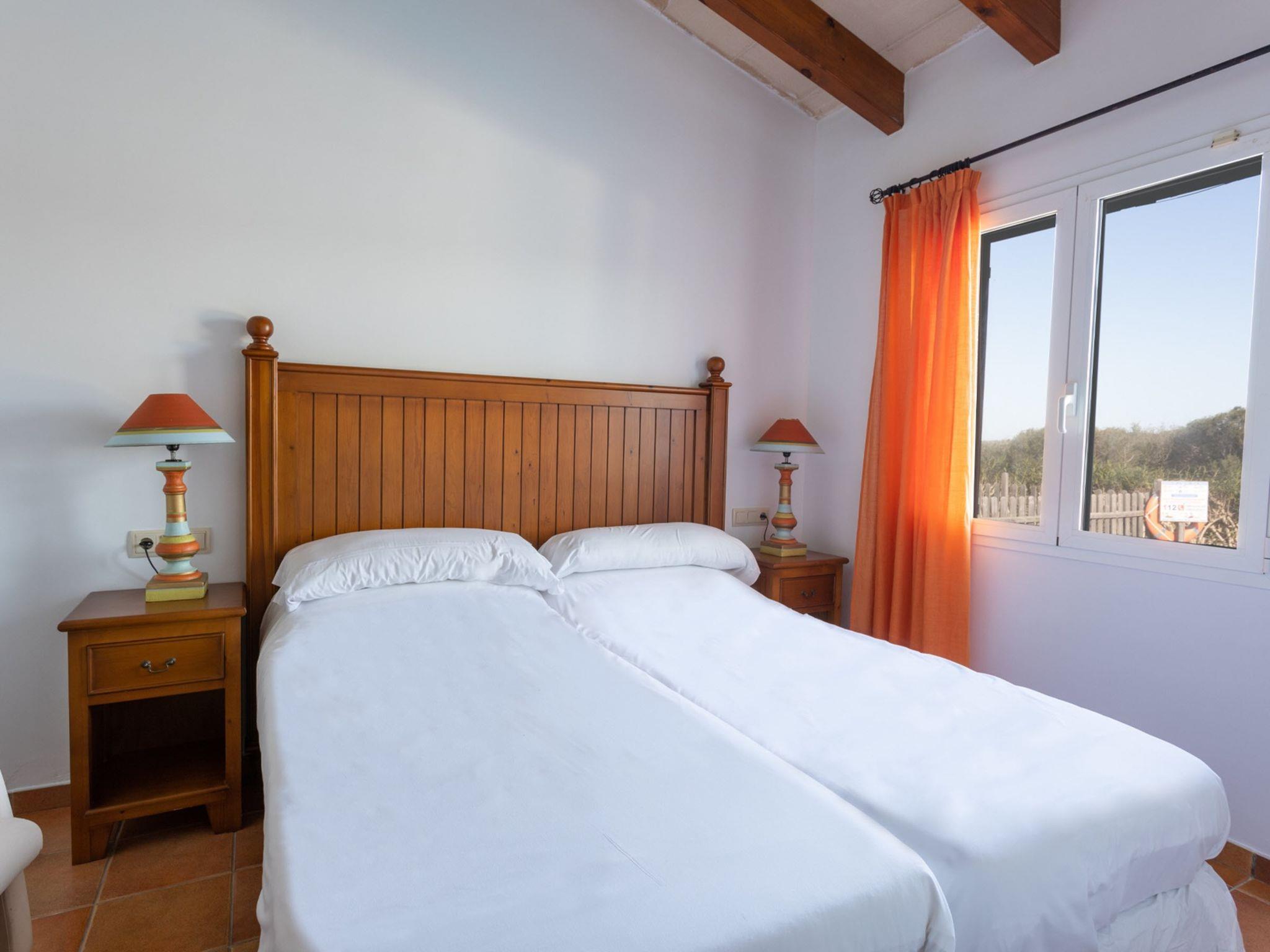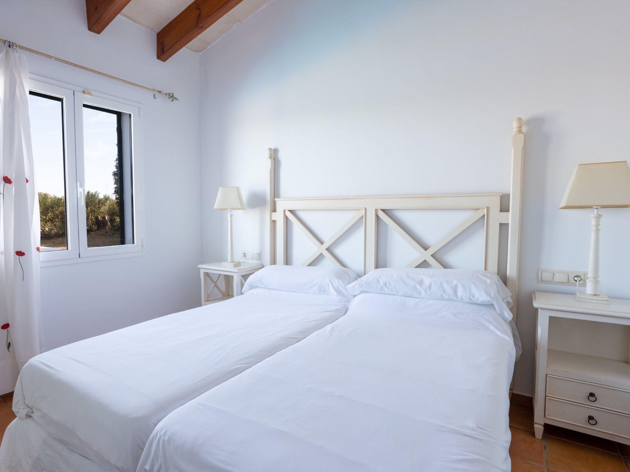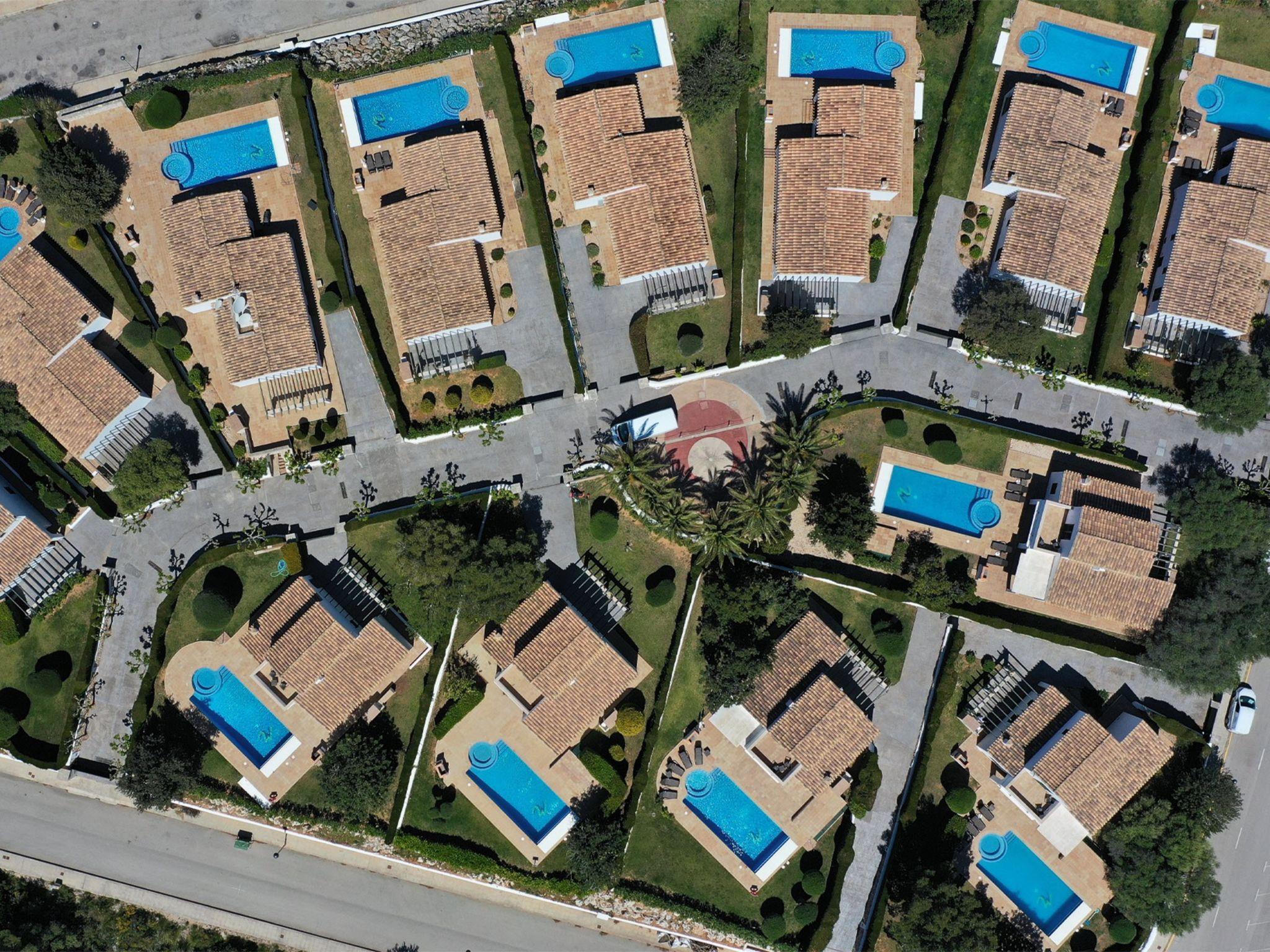 Son Bou: Modern, beautiful, luxurious villa "Villa Finesse Type 2 Duplex", surrounded by trees. On the outskirts Son Bou, in a sunny, elevated position, 2 km from the sea. Private: property, garden, swimming pool (4 x 10 m, seasonal availability: 30.Apr. - 24.Oct.). In the house: WiFi, air conditioning, washing machine. Parking at the house on the premises. Shop 2 km, grocery 2 km, supermarket 1 km, restaurant 2 km, bus stop "Son Bou" 450 m, sandy beach 2 km. Golf course (18 hole) 20 km, tennis 1.9 km, riding stable 1 km. Please note: car recommended. Suitable for families, suitable for seniors. Object suitable for 6 adults groups of teenagers on request only. Loading and unloading of baggage is possible at the holiday house. Airfield 20 km from the property.