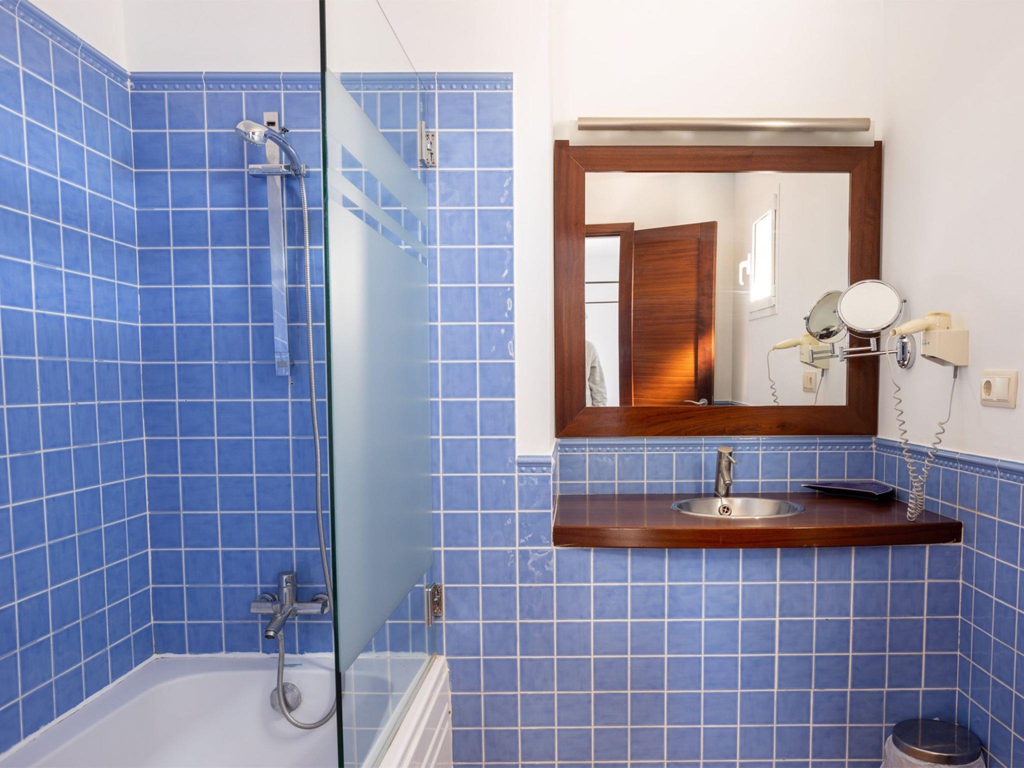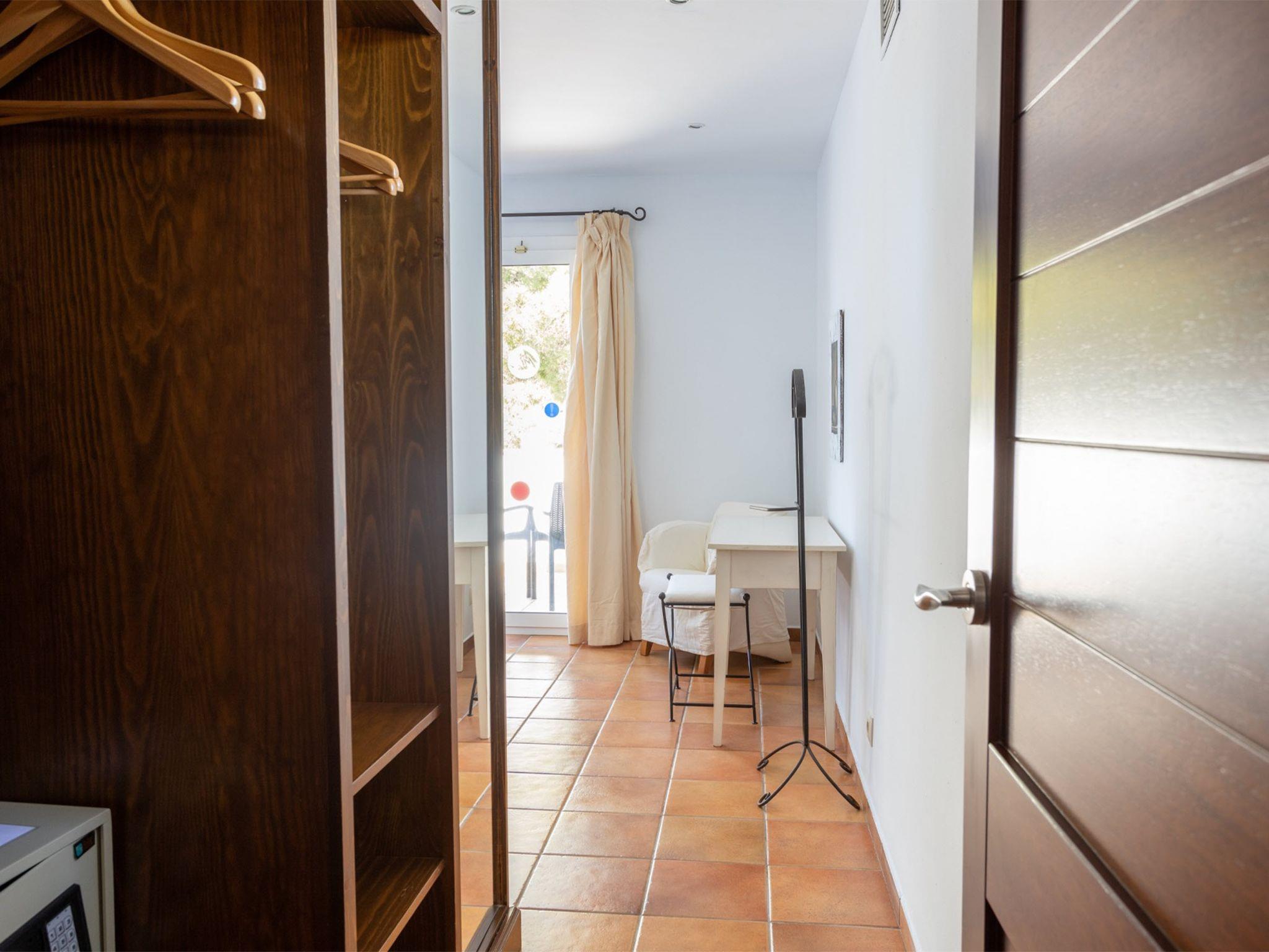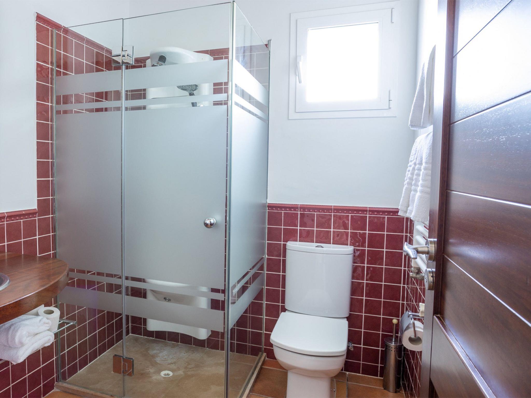 Son Bou: Modern, beautiful, luxurious villa "Villa Finesse Type 2 Duplex", surrounded by trees. On the outskirts Son Bou, in a sunny, elevated position, 2 km from the sea. Private: property, garden, swimming pool (4 x 10 m, seasonal availability: 30.Apr. - 24.Oct.). In the house: WiFi, air conditioning, washing machine. Parking at the house on the premises. Shop 2 km, grocery 2 km, supermarket 1 km, restaurant 2 km, bus stop "Son Bou" 450 m, sandy beach 2 km. Golf course (18 hole) 20 km, tennis 1.9 km, riding stable 1 km. Please note: car recommended. Suitable for families, suitable for seniors. Object suitable for 6 adults groups of teenagers on request only. Loading and unloading of baggage is possible at the holiday house. Airfield 20 km from the property.