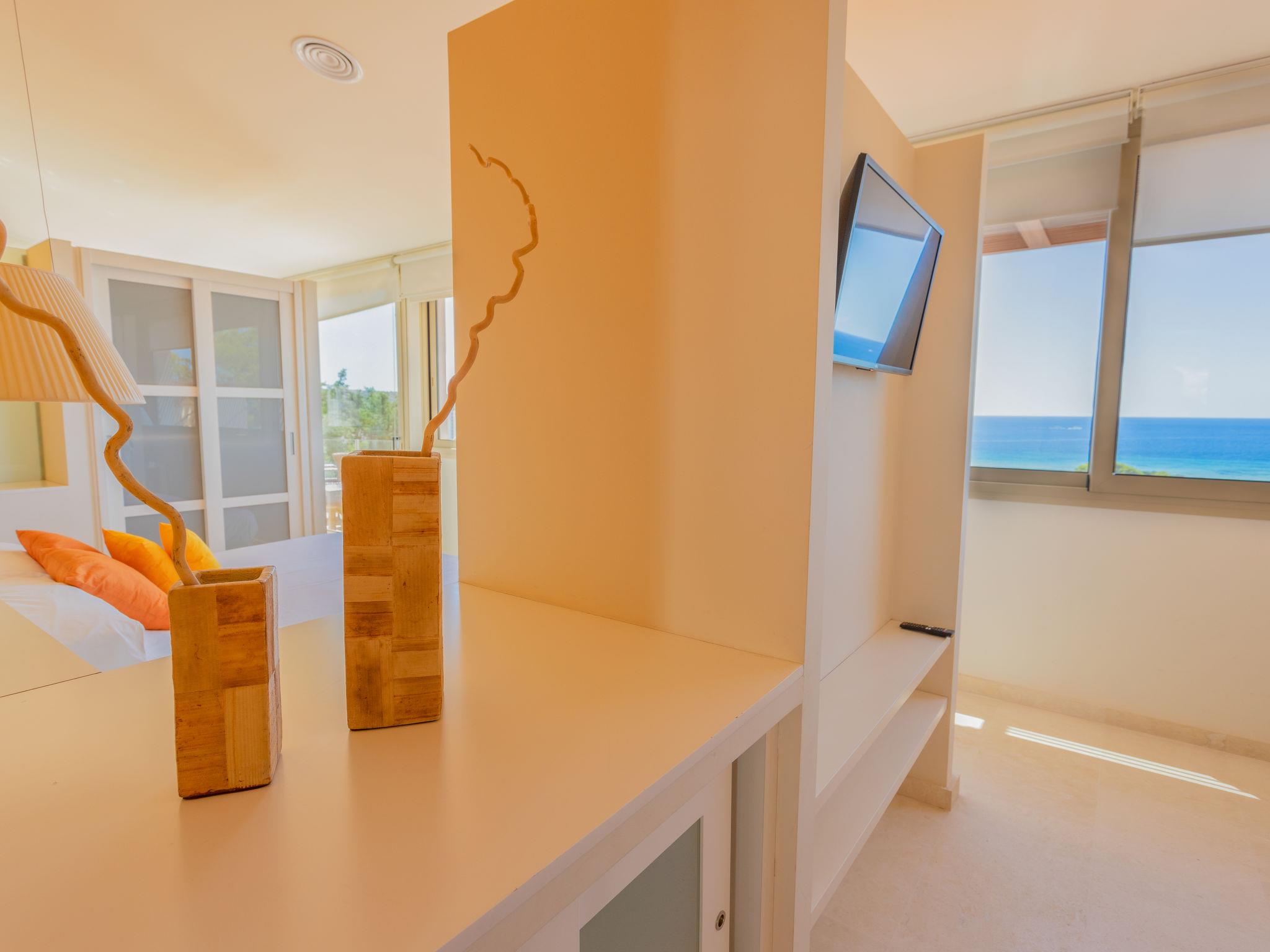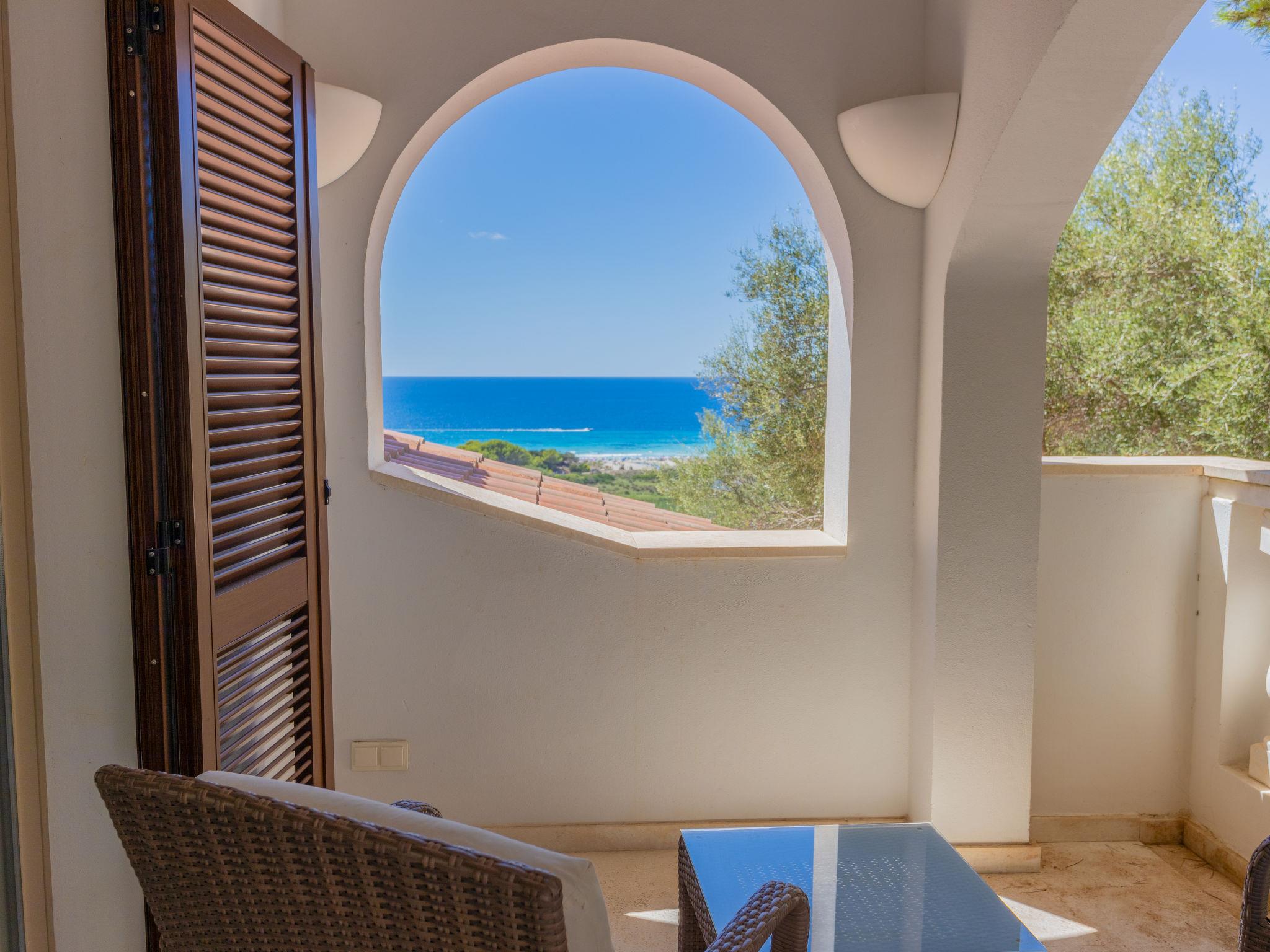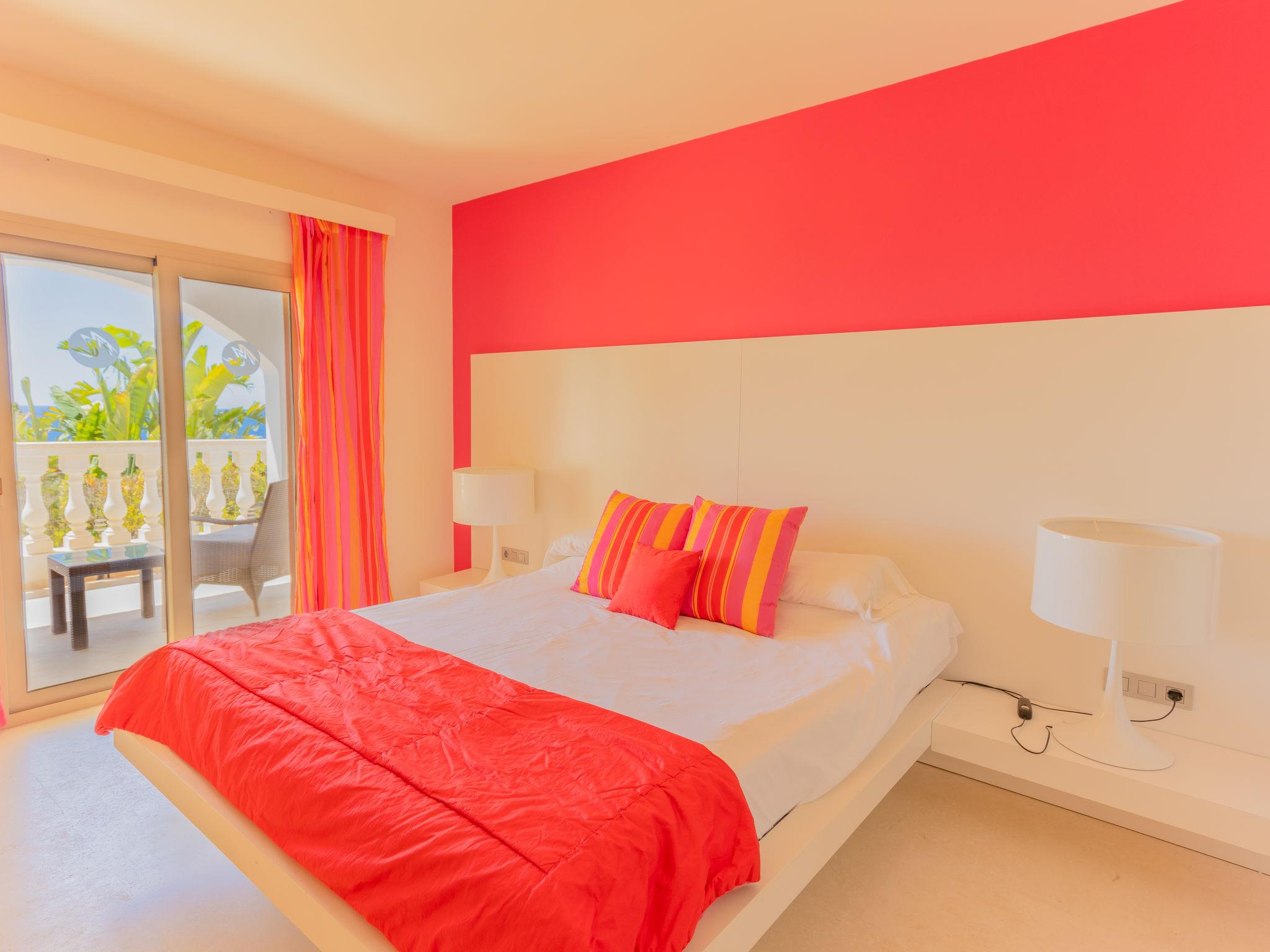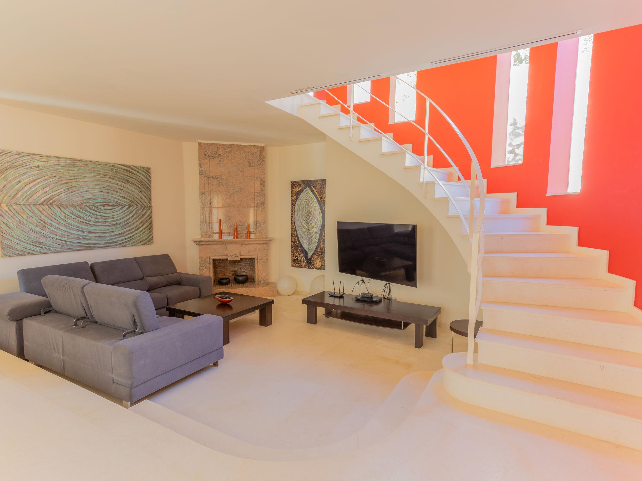 "Villa Maitreya", 7-room villa 470 m2 on 2 levels. Object suitable for 12 adults. Comfortable and cosy furnishings: open large living/dining room with open-hearth fireplace (only for decoration), dining table, satellite TV, digital TV, international TV channels and flat screen. Exit to the patio, to the swimming pool. 1 large double bedroom with 2 beds (90 cm, length 200 cm), hydro massage shower, TV and air conditioning. Exit to the patio, to the swimming pool. 1 large double bedroom with 2 beds (90 cm, length 200 cm), shower/WC and air conditioning. Exit to the patio, to the swimming pool. 1 large double bedroom with 1 french bed (180 cm, length 200 cm), bath/shower/WC, double hand-basin, hydro massage bath, TV, international TV channels, flat screen and air conditioning. Exit to the patio, to the swimming pool. Kitchen (oven, dishwasher, 4 induction hot plates, toaster, kettle, microwave, freezer, electric coffee machine). Upper floor: 1 large double bedroom 45 m2 with 1 french bed (180 cm, length 200 cm), bath/shower/WC, double hand-basin, hydro massage bath, TV, international TV channels, flat screen and air conditioning. Exit to the balcony, to the terrace. 1 large double bedroom with 1 french bed (180 cm, length 200 cm), bath/WC, double hand-basin, hydro massage bath and air conditioning. Exit to the balcony, to the terrace. 1 double bedroom 25 m2 with 1 french bed (160 cm, length 200 cm), bath/WC, hydro massage bath and air conditioning. Patio. Terrace furniture, balcony furniture, barbecue, deck chairs (12), covered balcony, sitting area. Very beautiful view of the sea, the swimming pool, the garden, the countryside and the resort. Facilities: washing machine, dryer, iron, children's high chair, baby cot for up to 2 year olds, hair dryer. Internet (WiFi, free). Please note: suitable for families. Fire extinguisher. VT357ME // Reg. Nr.: ESFCTU000007013000453182000000000000000000000VT357ME5