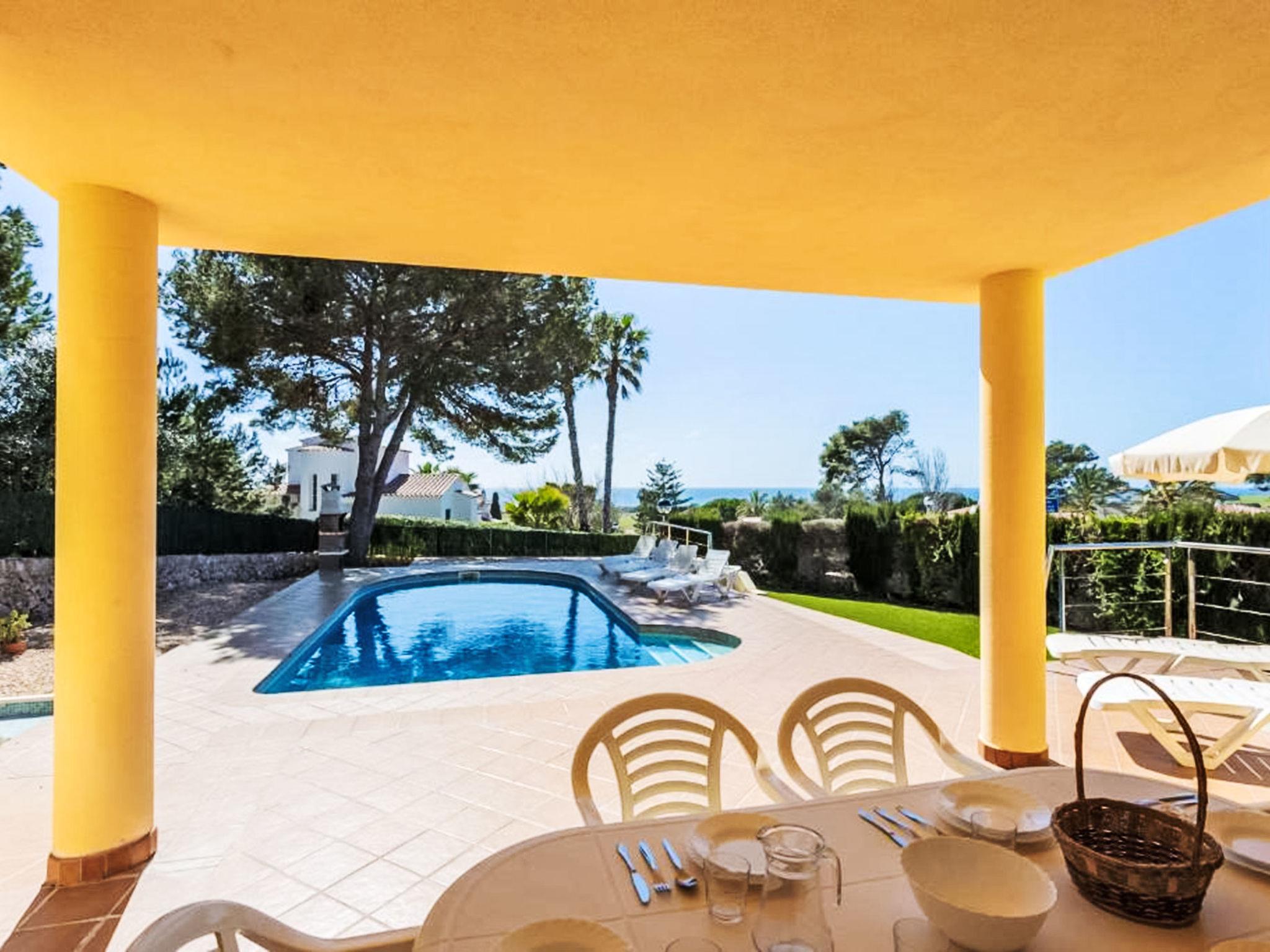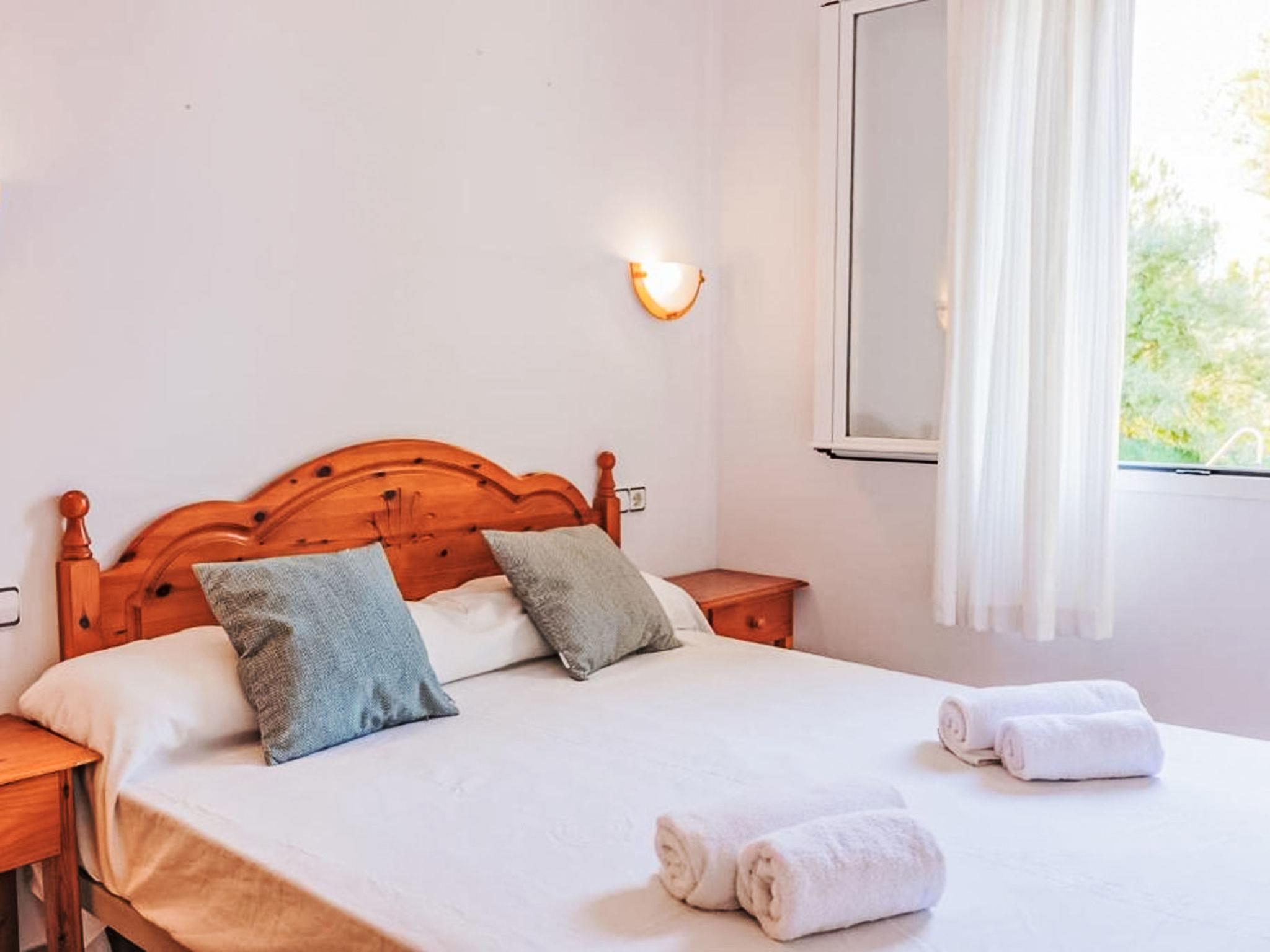 "Llebeig 155", 4-room villa 157 m2. Object suitable for 6 adults. Spacious and bright, tasteful and cosy furnishings: living room with flat screen, air conditioning and forced-air heating. Exit to the patio, to the swimming pool. 1 double bedroom with 2 beds (90 cm, length 200 cm), bath/bidet/WC. 1 double bedroom with 1 french bed (150 cm, length 200 cm), shower/WC. 1 double bedroom with 2 beds (90 cm, length 200 cm). Kitchen-/living room (oven, dishwasher, 3 ceramic glass hob hotplates, toaster, kettle, microwave, freezer, electric coffee machine) with bar, dining table. Bath or shower/WC. Terrace. Terrace furniture, barbecue, deck chairs (6), covered balcony. View of the sea, the swimming pool and the countryside. Facilities: washing machine, iron, children's high chair, baby cot for up to 2 year olds, hair dryer. Internet (WiFi, free). Suitable for families. VTV276ME // Reg. Nr.: ESFCTU000007013000381256000000000000000000VTV 276 ME3